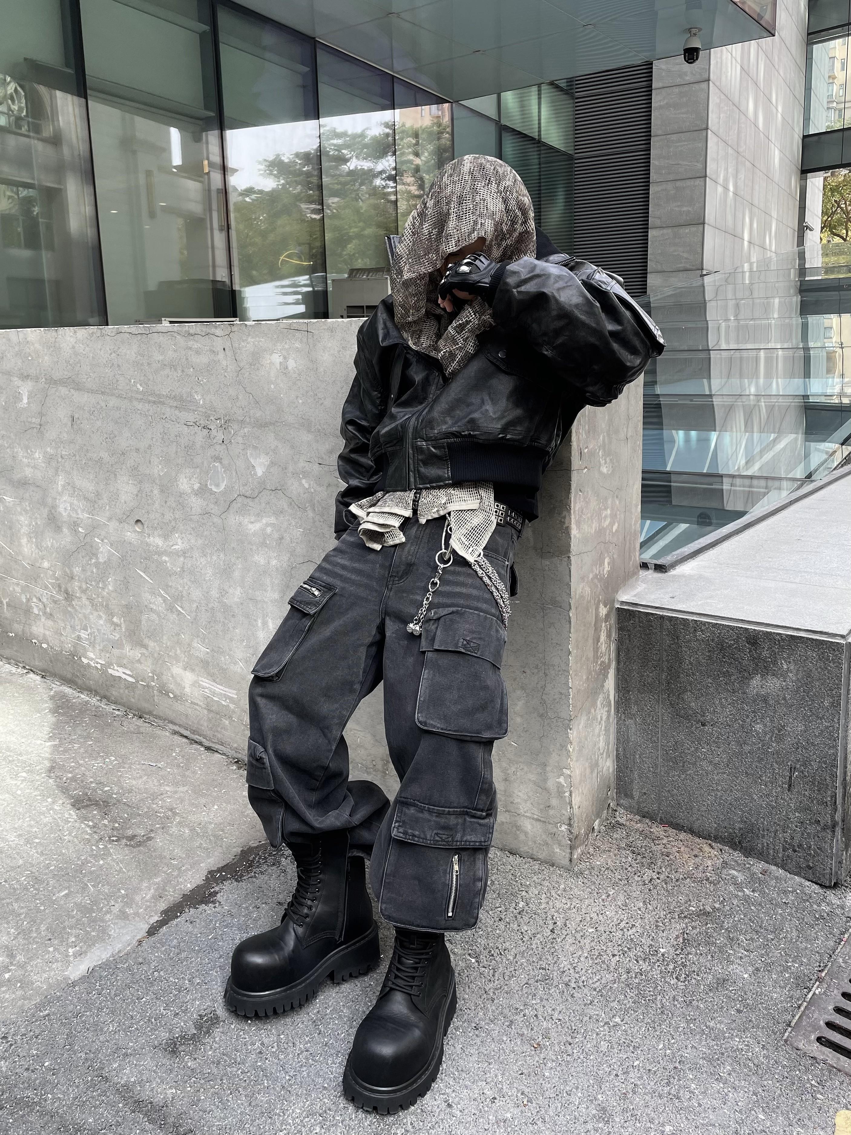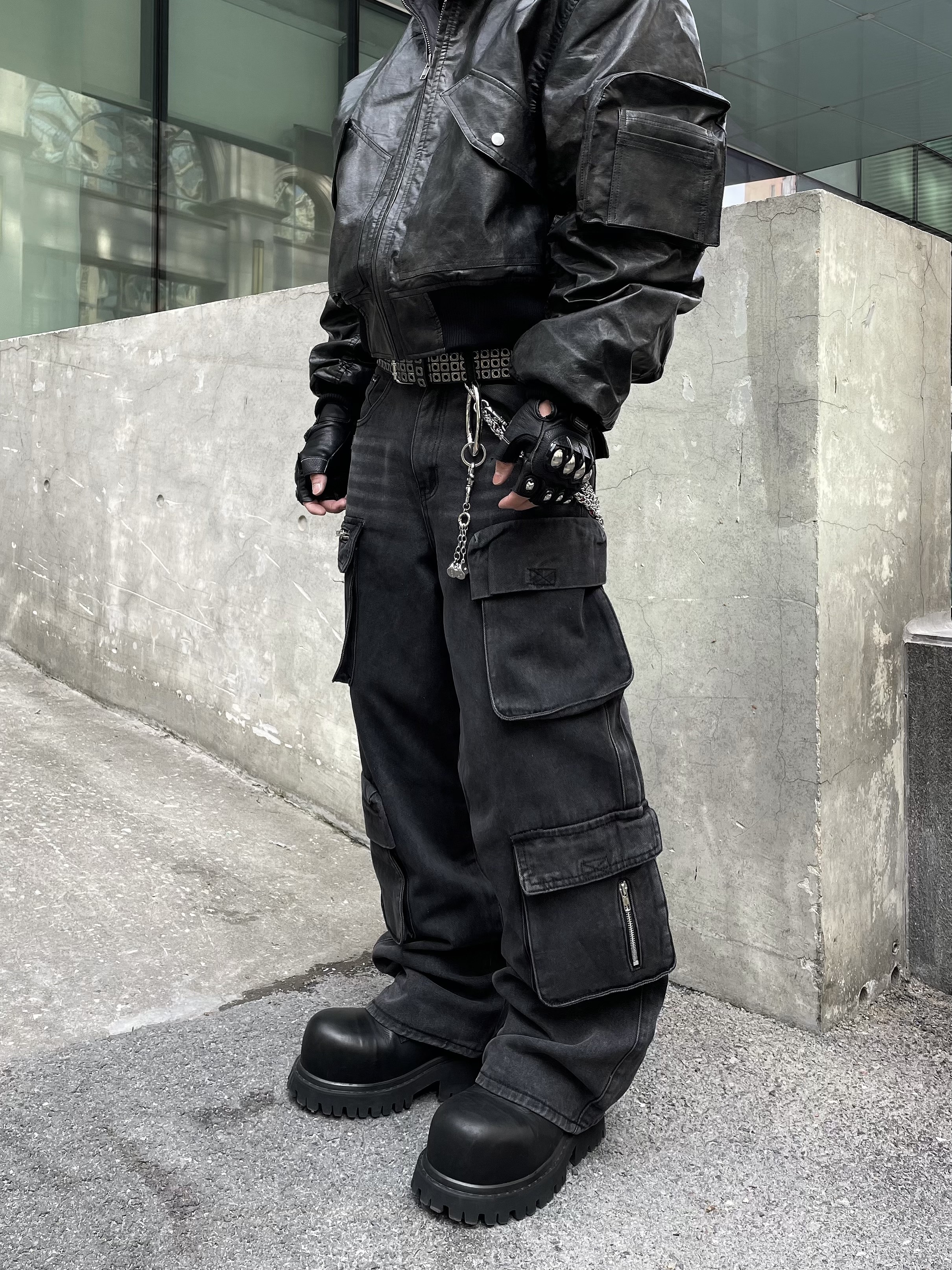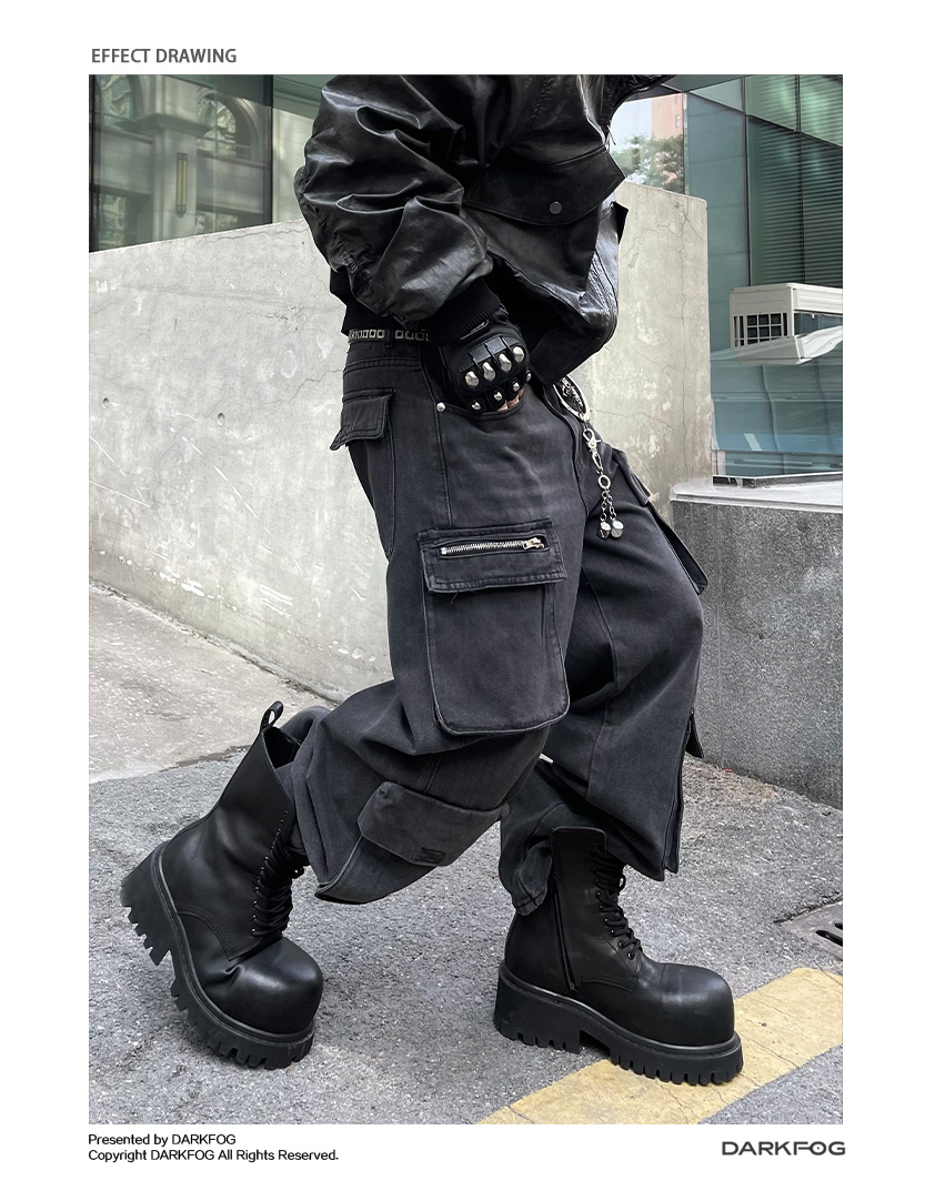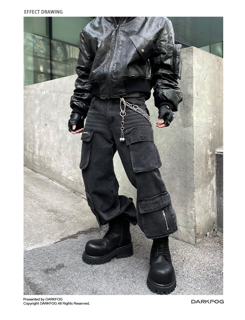 Multi-Pocket Utility Straight Cargo Denim Jeans WN12881