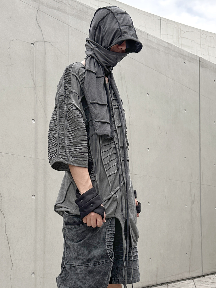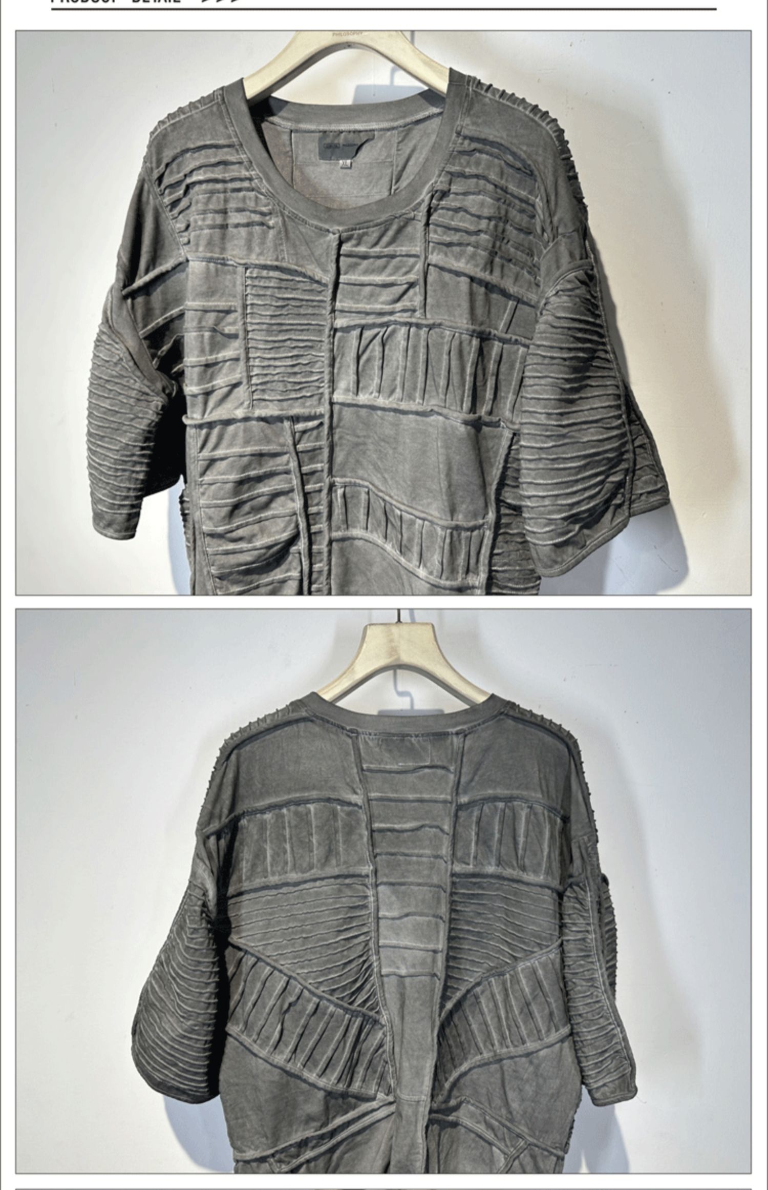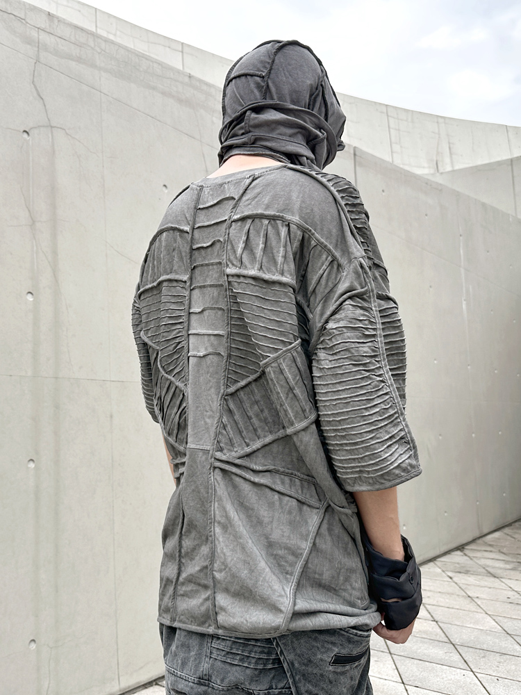Pleats Tie-Dye Washed 3D-Cut Short Sleeve T-Shirt WN13849