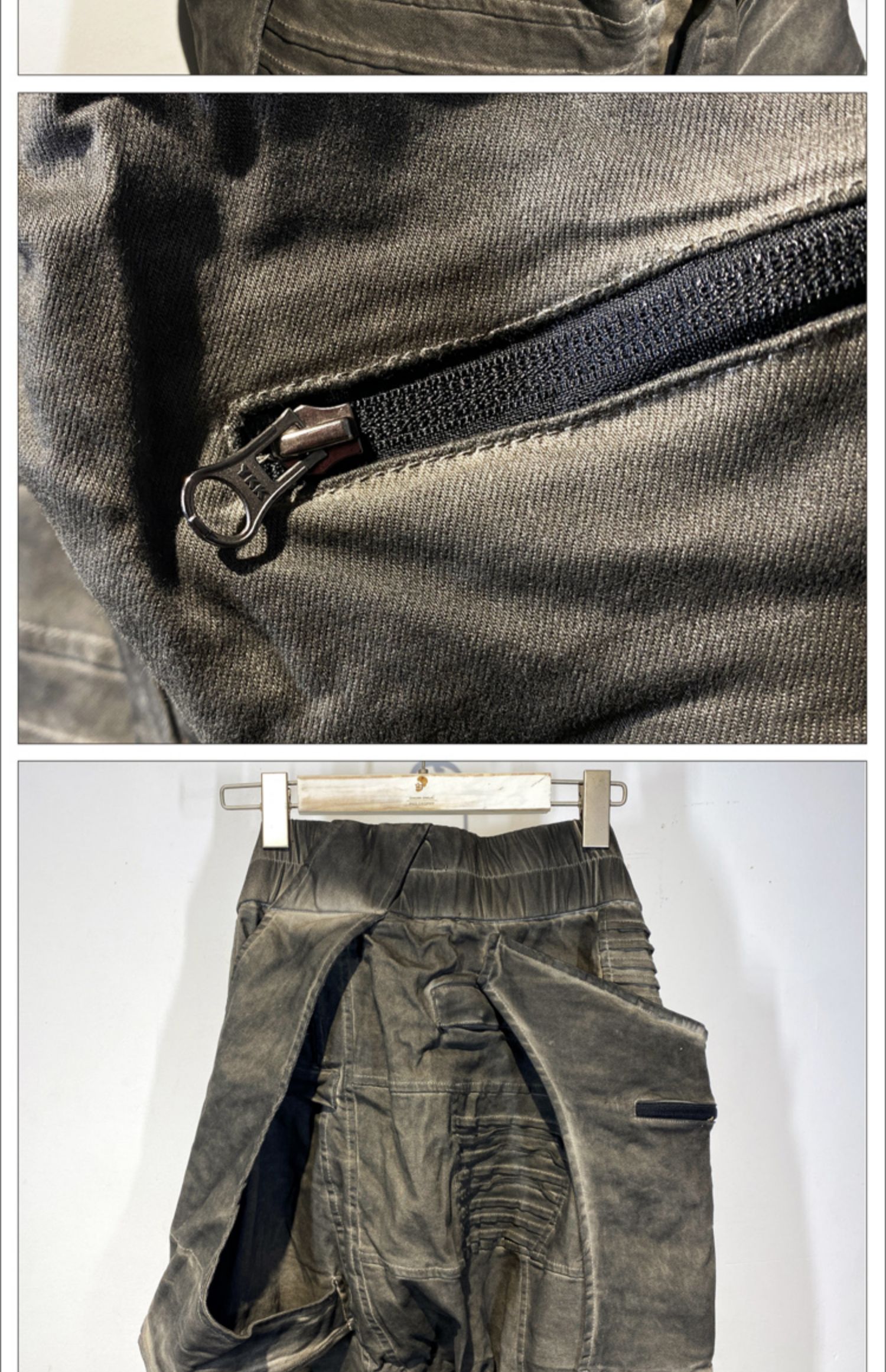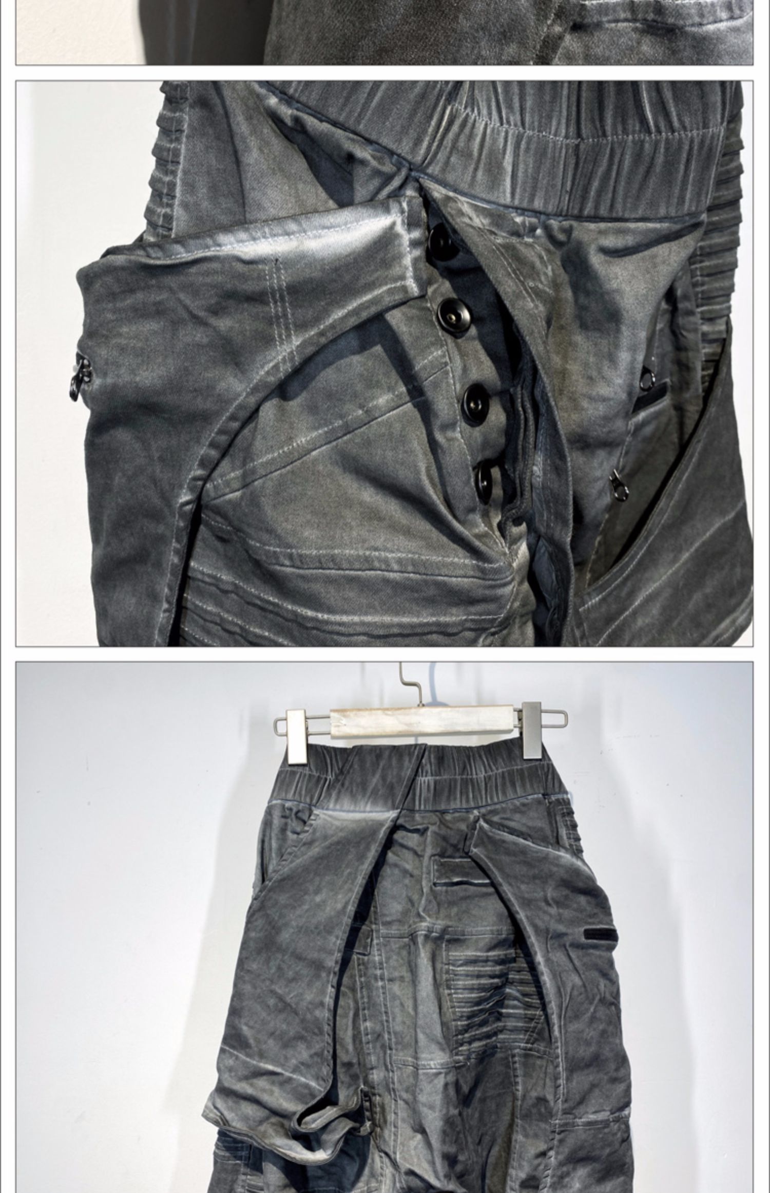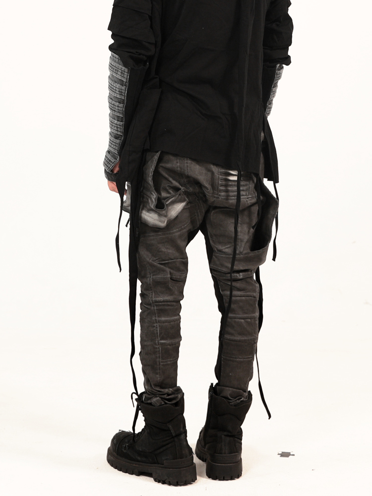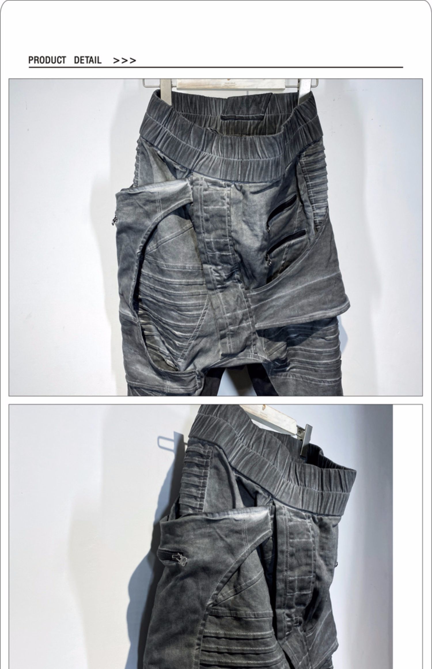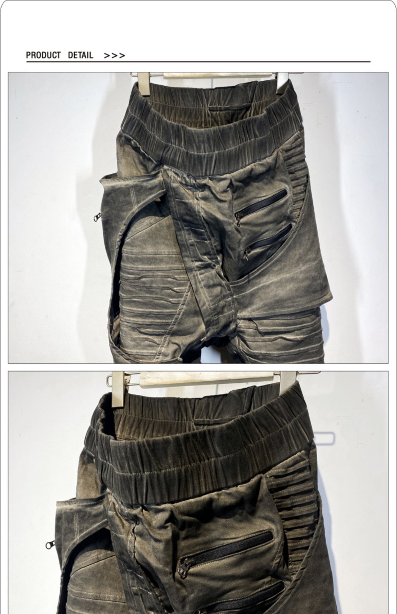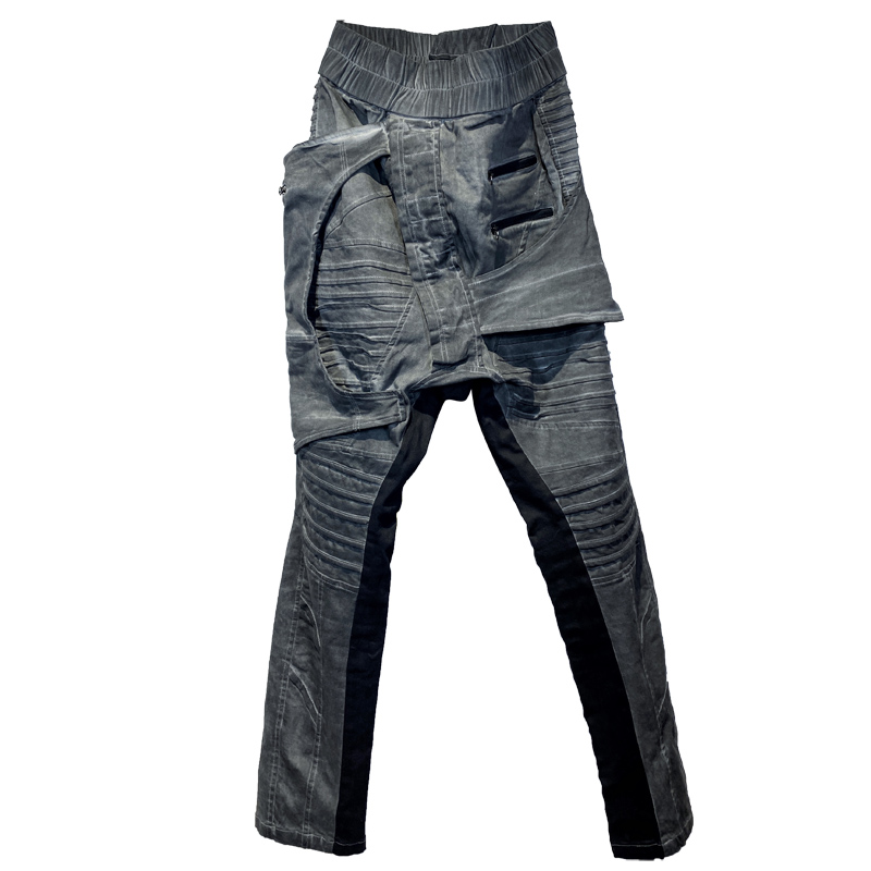 Skirt-Paneled Drop-Crotch Tapered Washed Pants WN13851