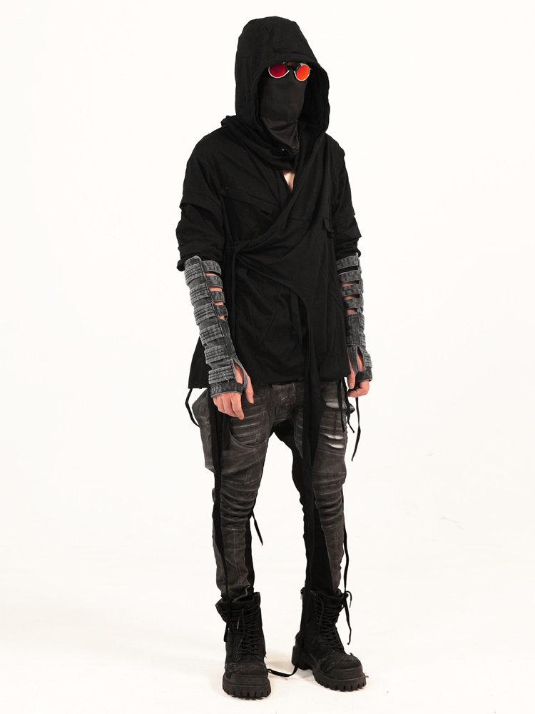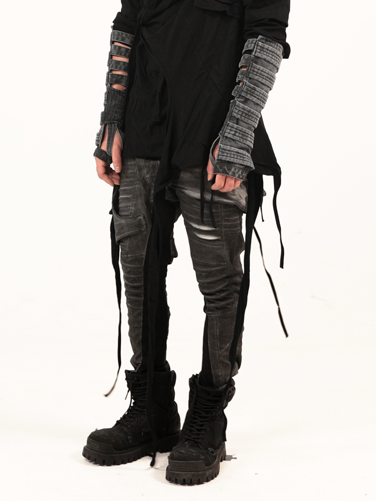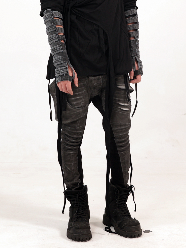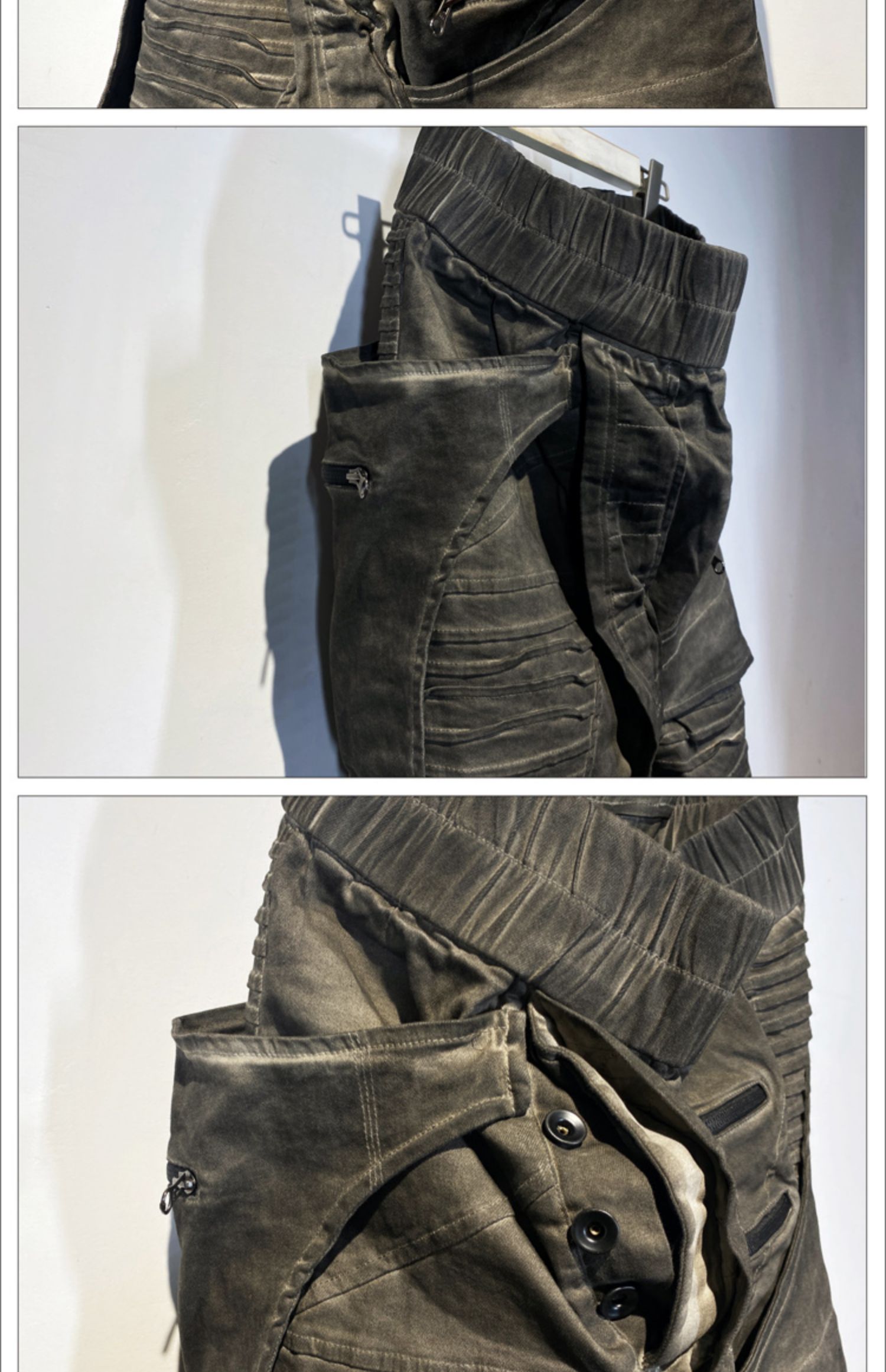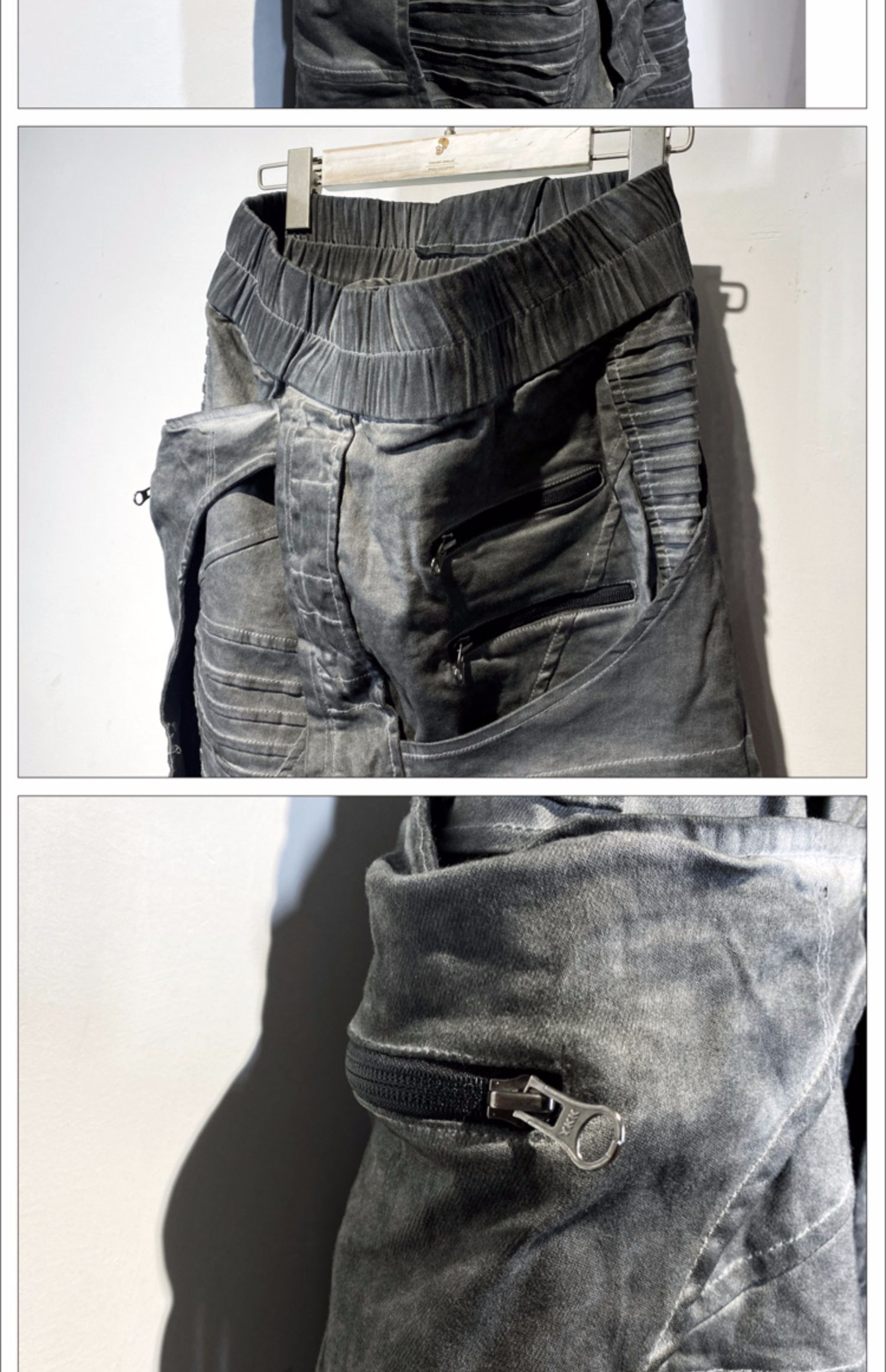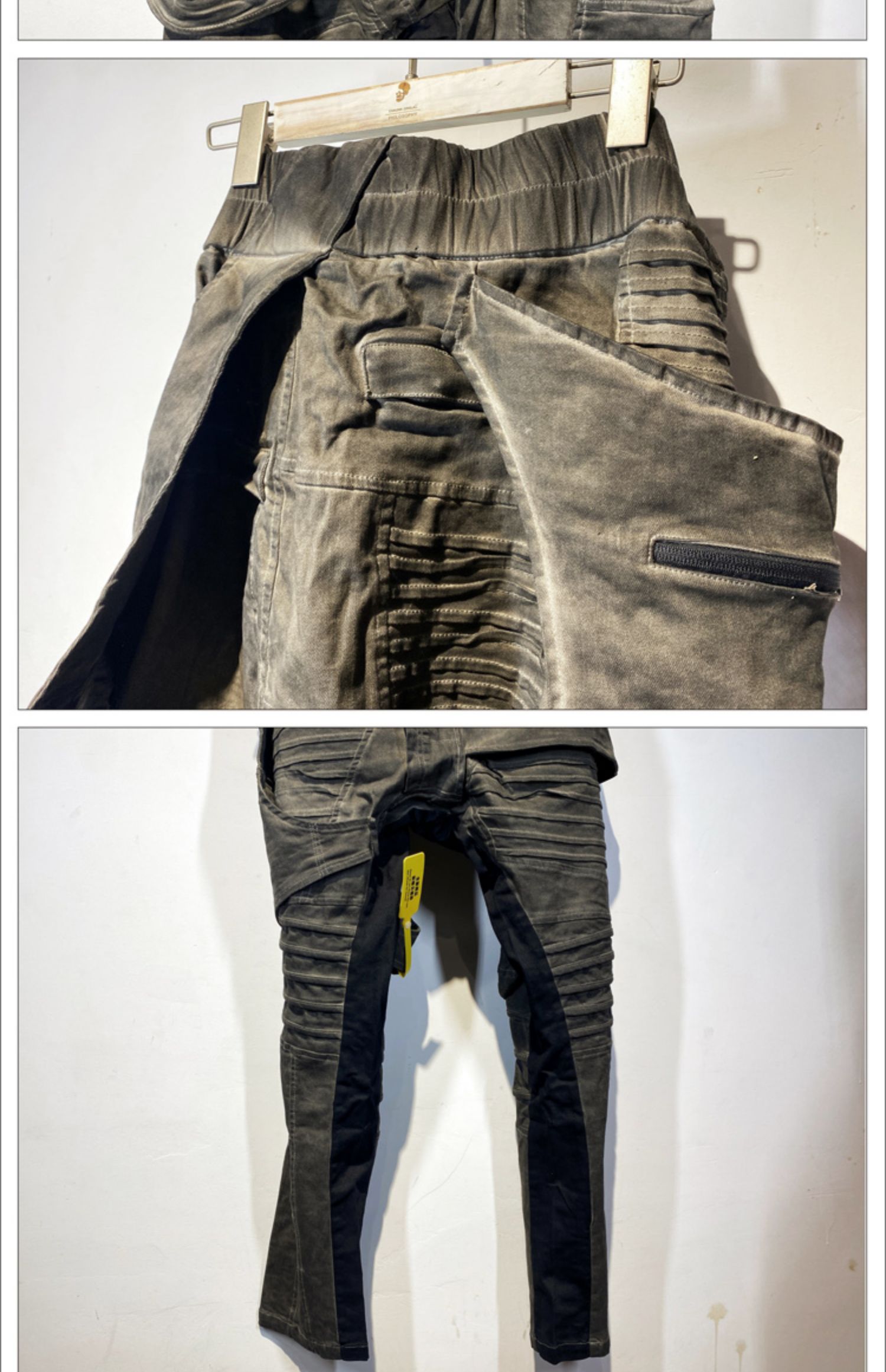 Skirt-Paneled Drop-Crotch Tapered Washed Pants WN13851