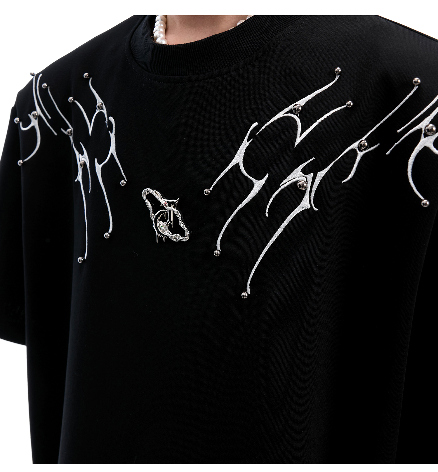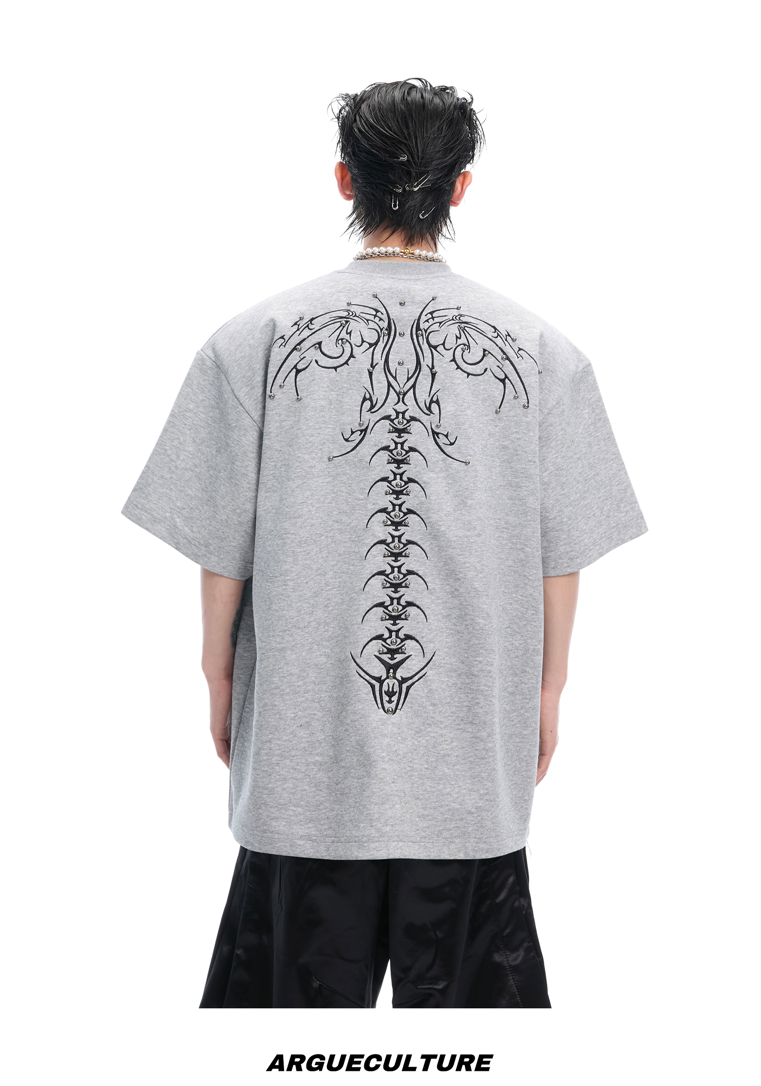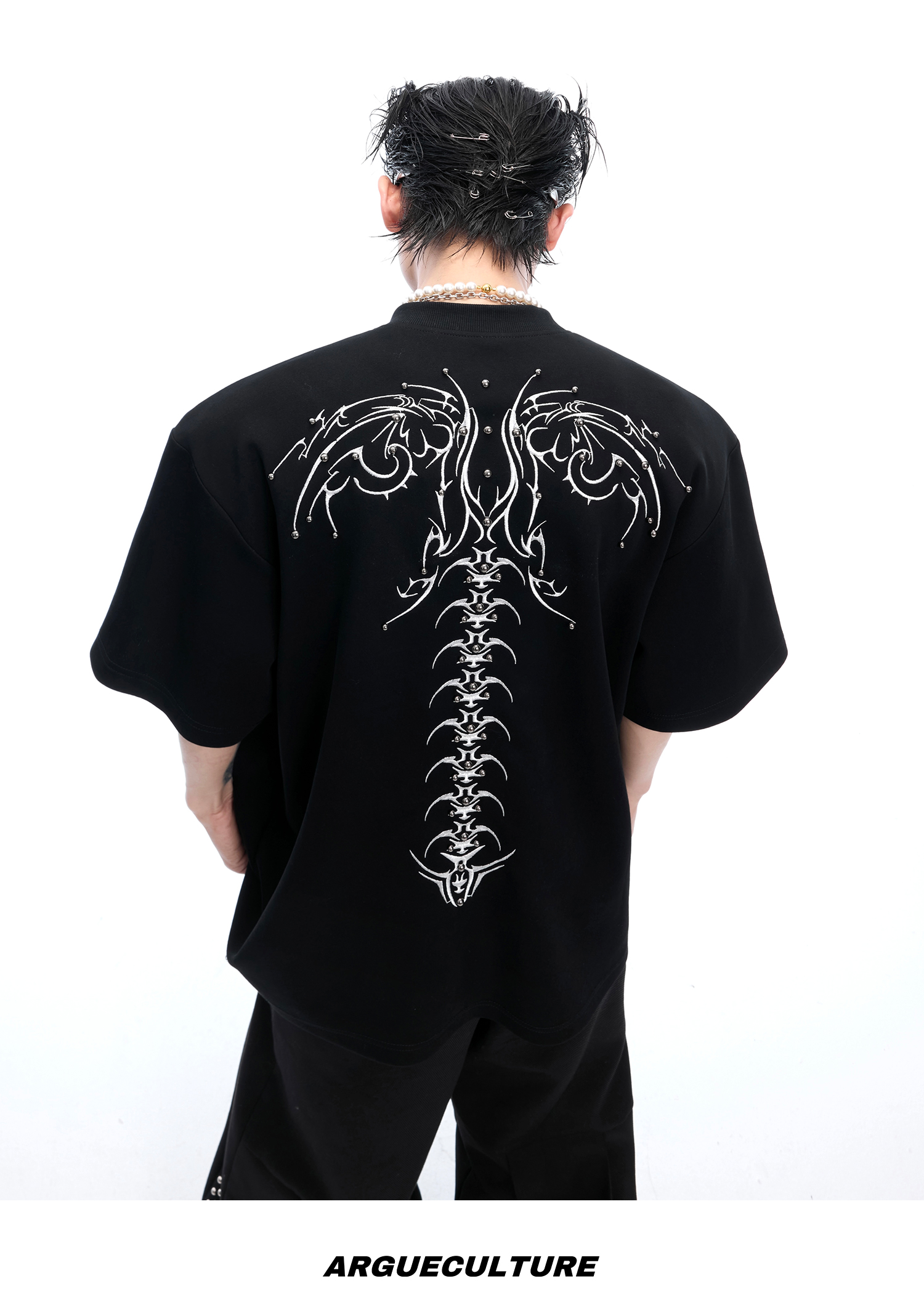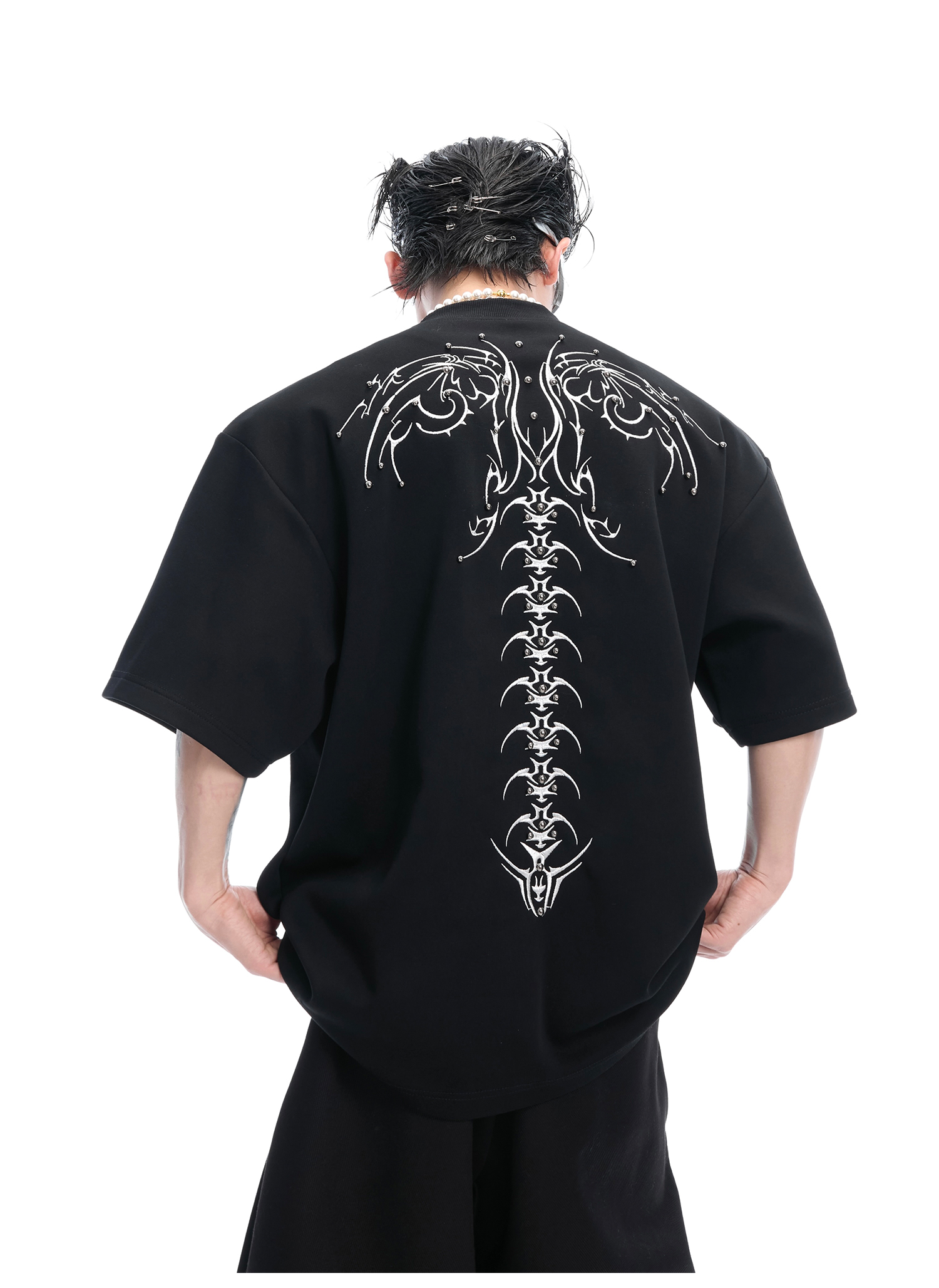3D Spine Embroidery Short Sleeve T-Shirt WN14954