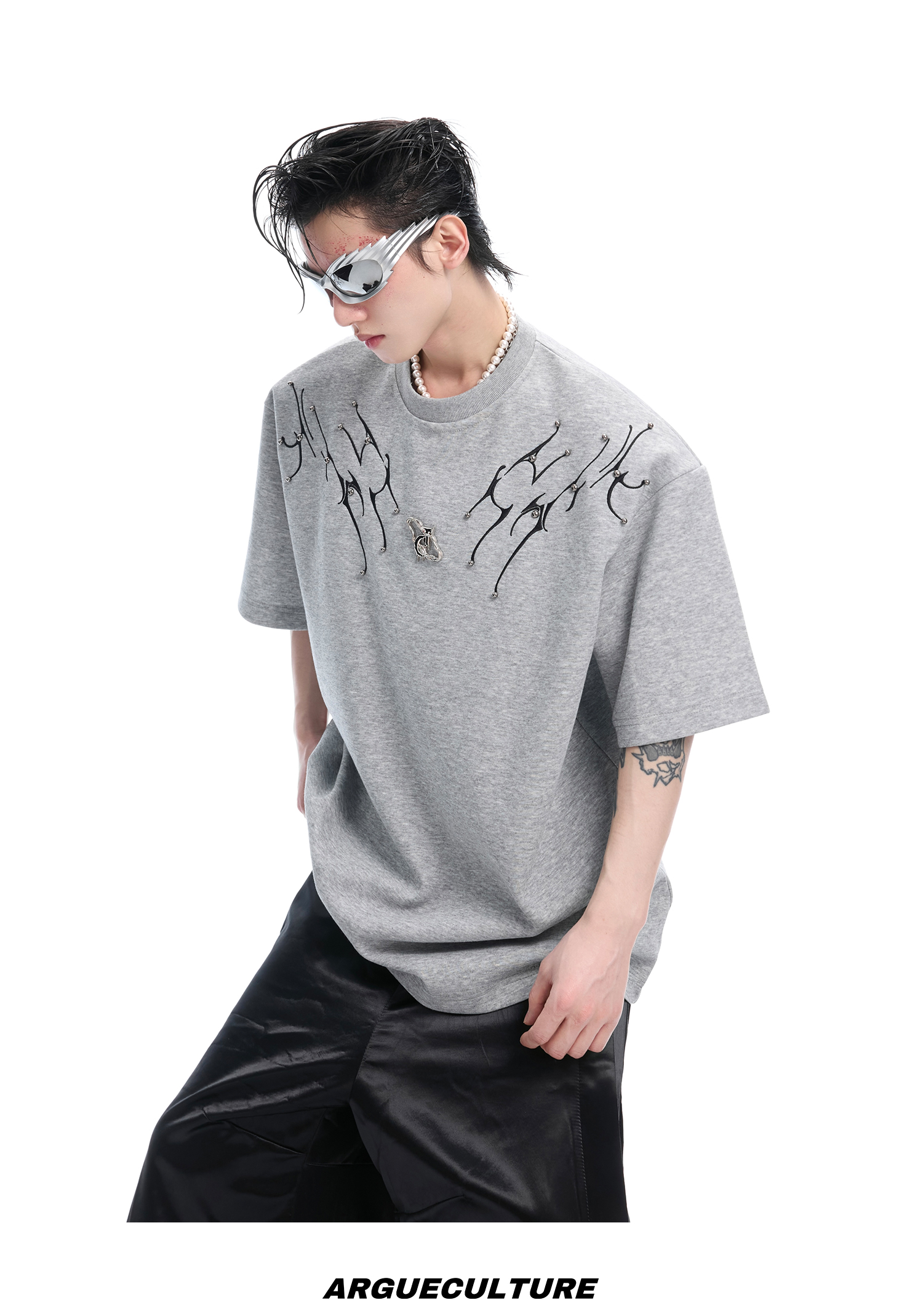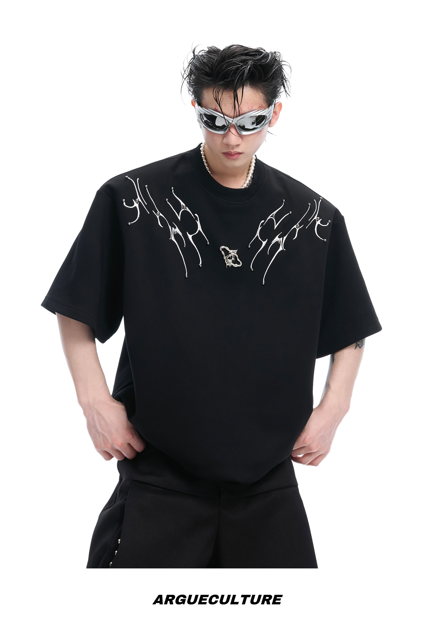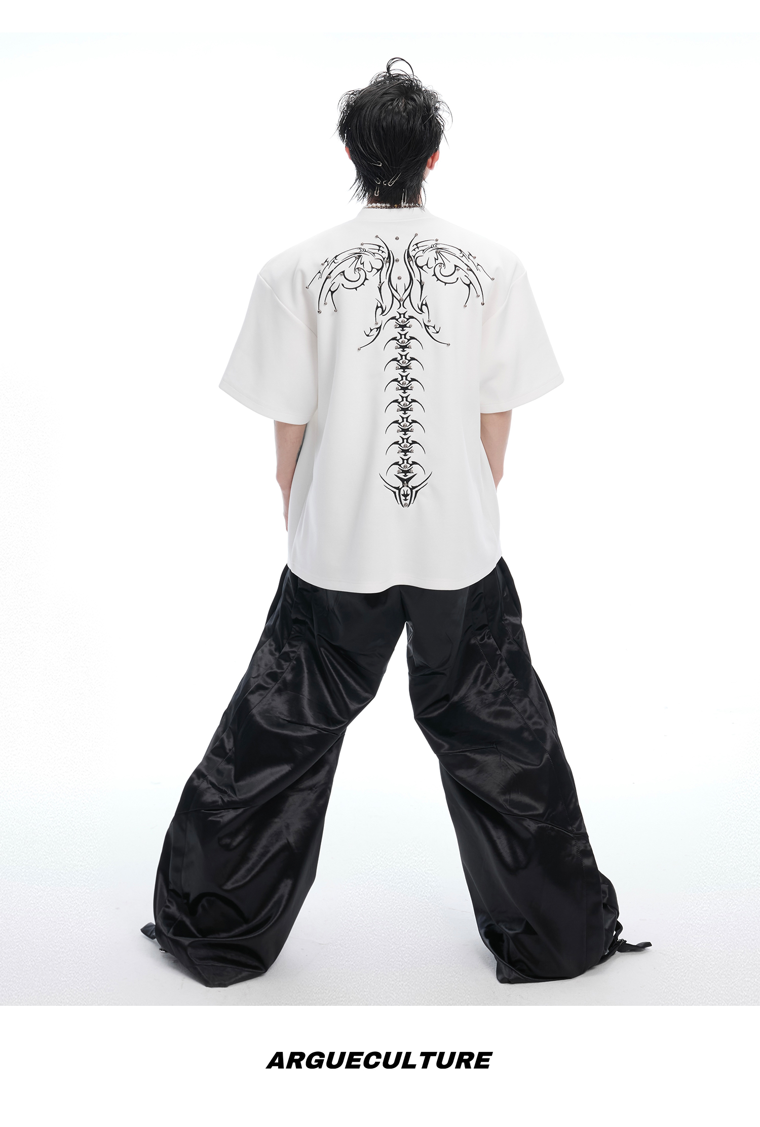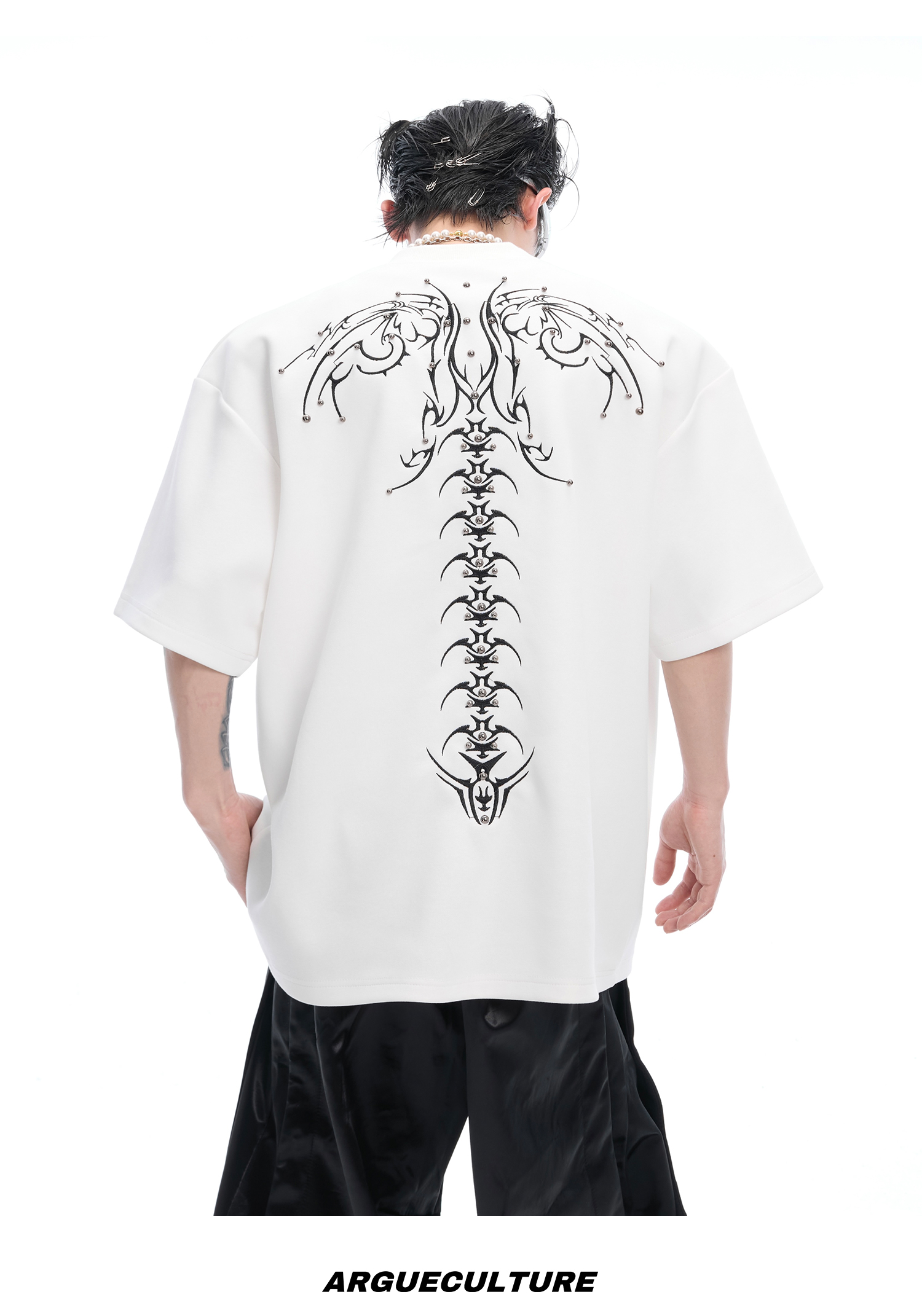 3D Spine Embroidery Short Sleeve T-Shirt WN14954