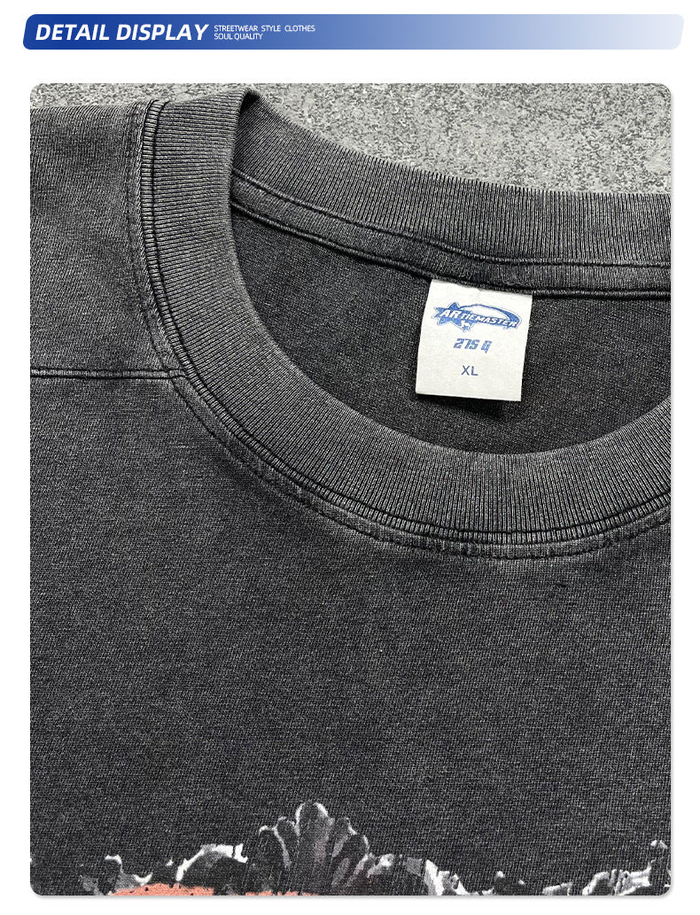 Wax Dye Washed Graphic Print Short Sleeve T-Shirt WN16253