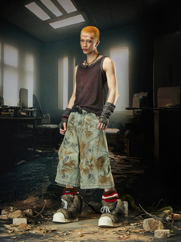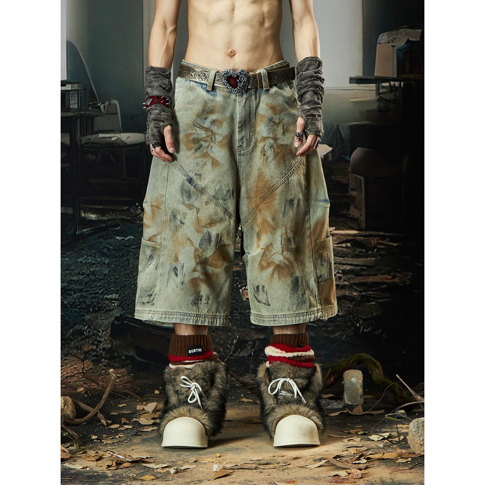 Wash Side Pleats Layered Wide Leg Half Pants WN18473