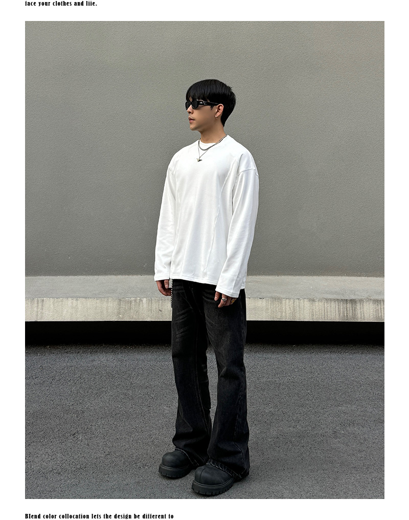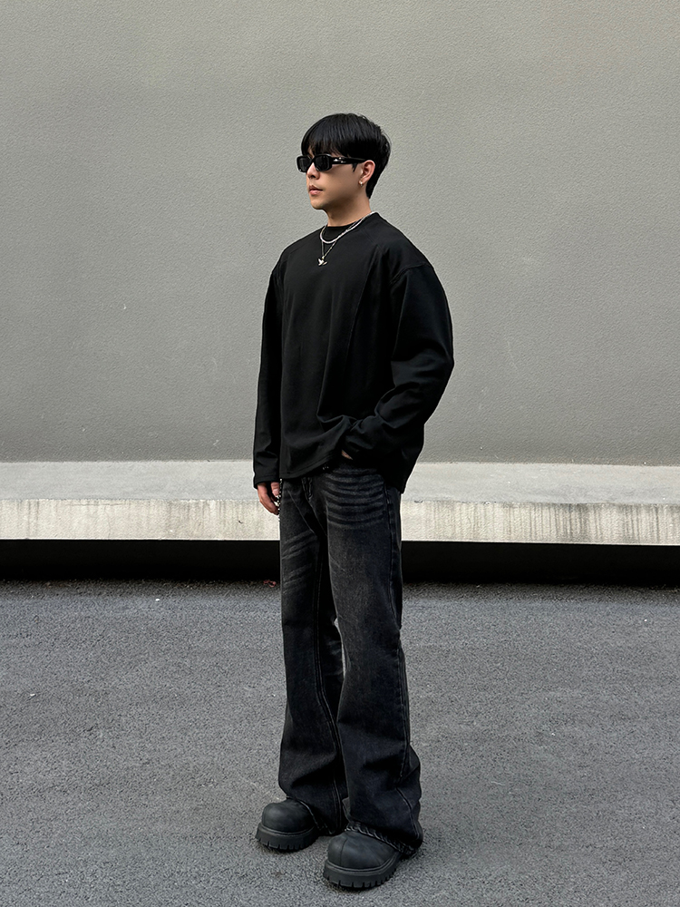 Fleece Patchwork Inner Long Sleeve T-Shirt WN19524
