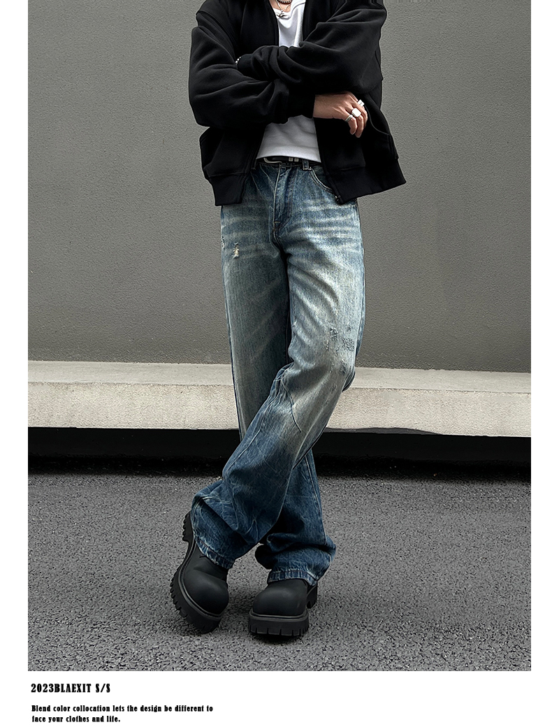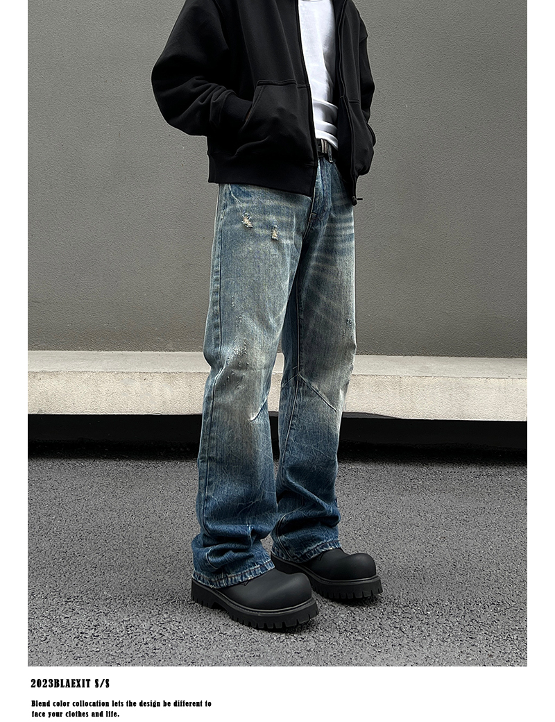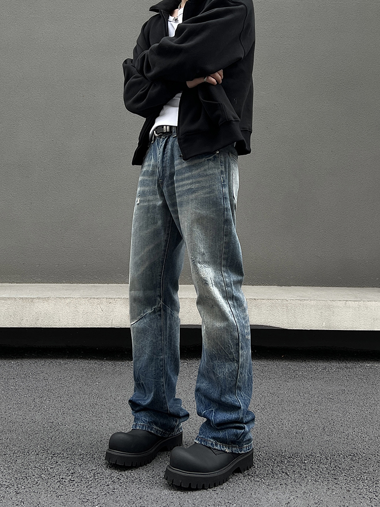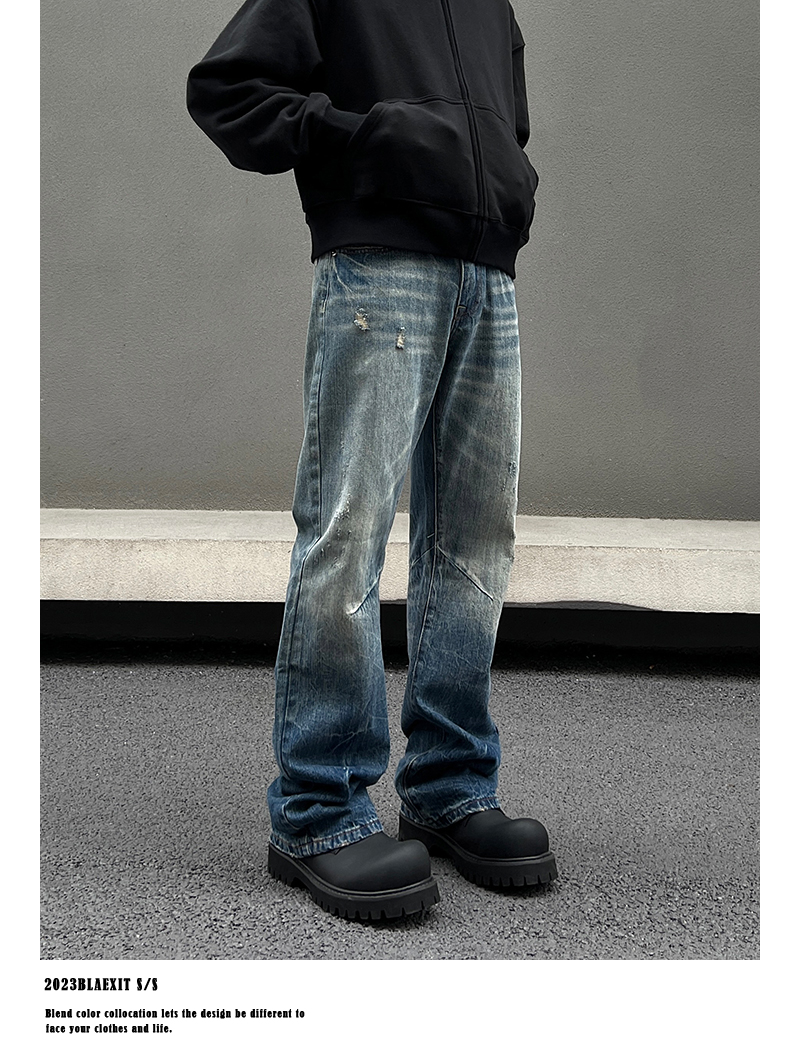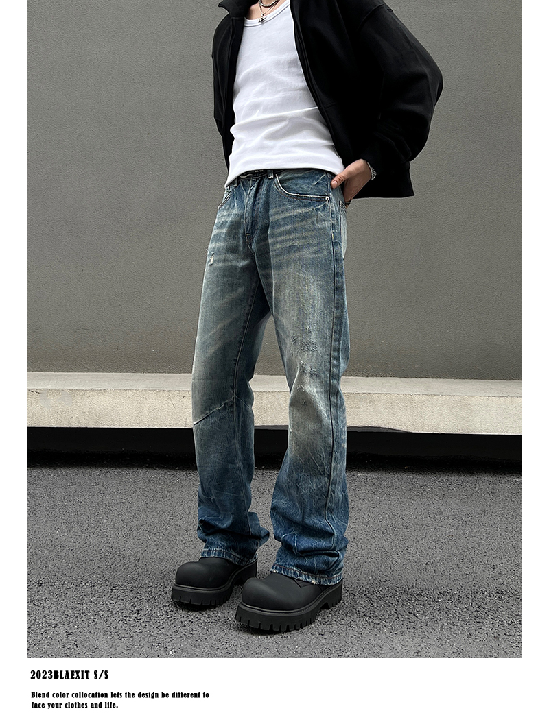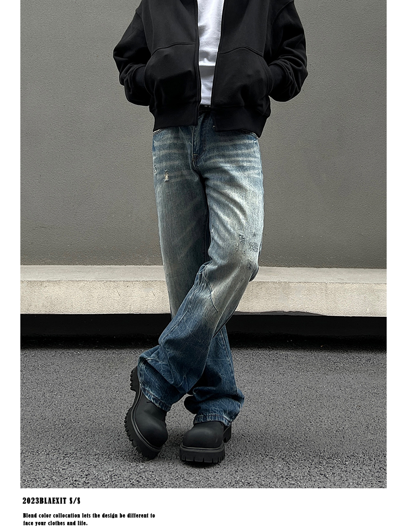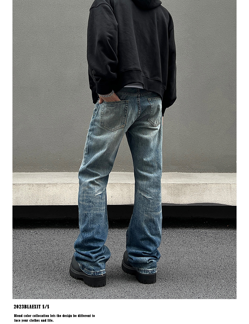 Washed Lightning Pattern Flare Denim Jeans WN19534