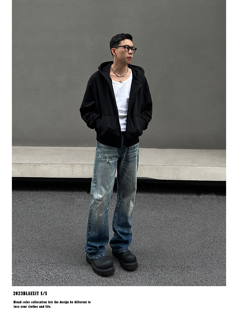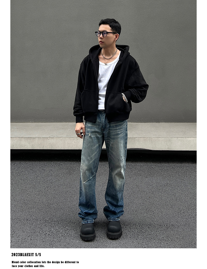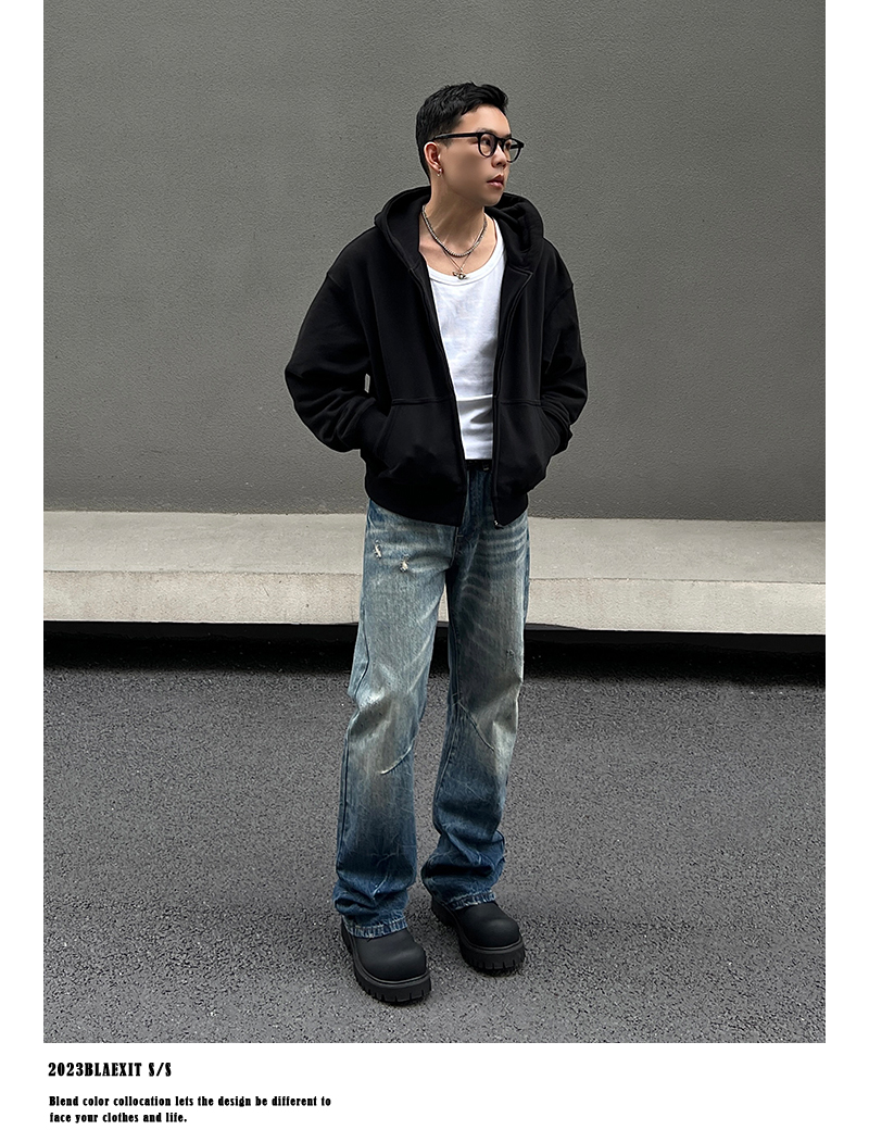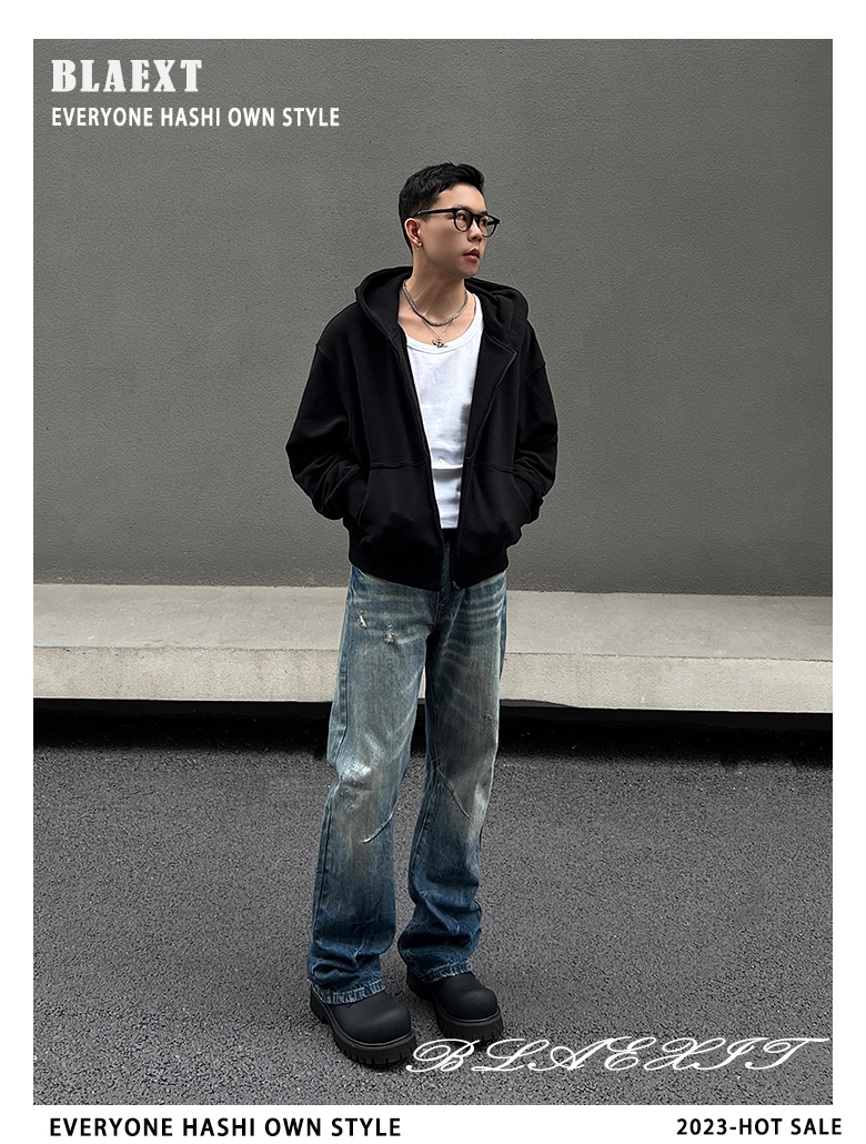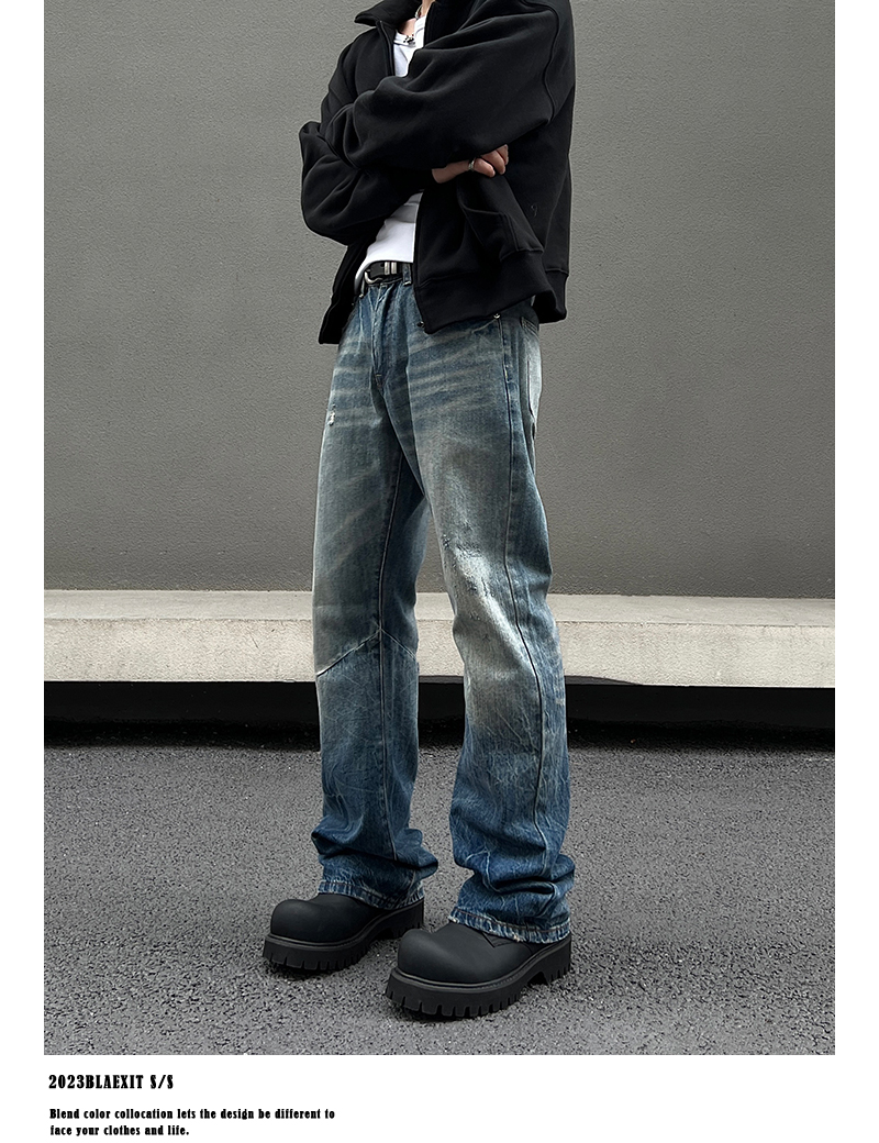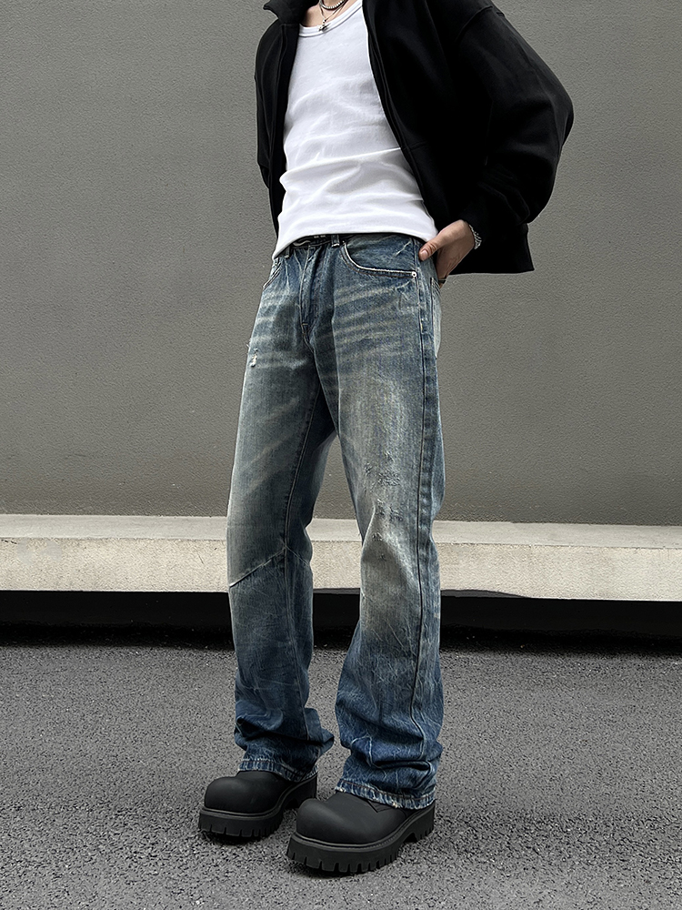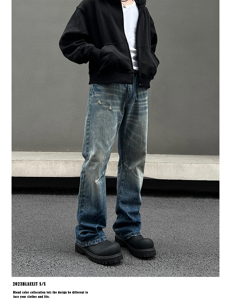 Washed Lightning Pattern Flare Denim Jeans WN19534
