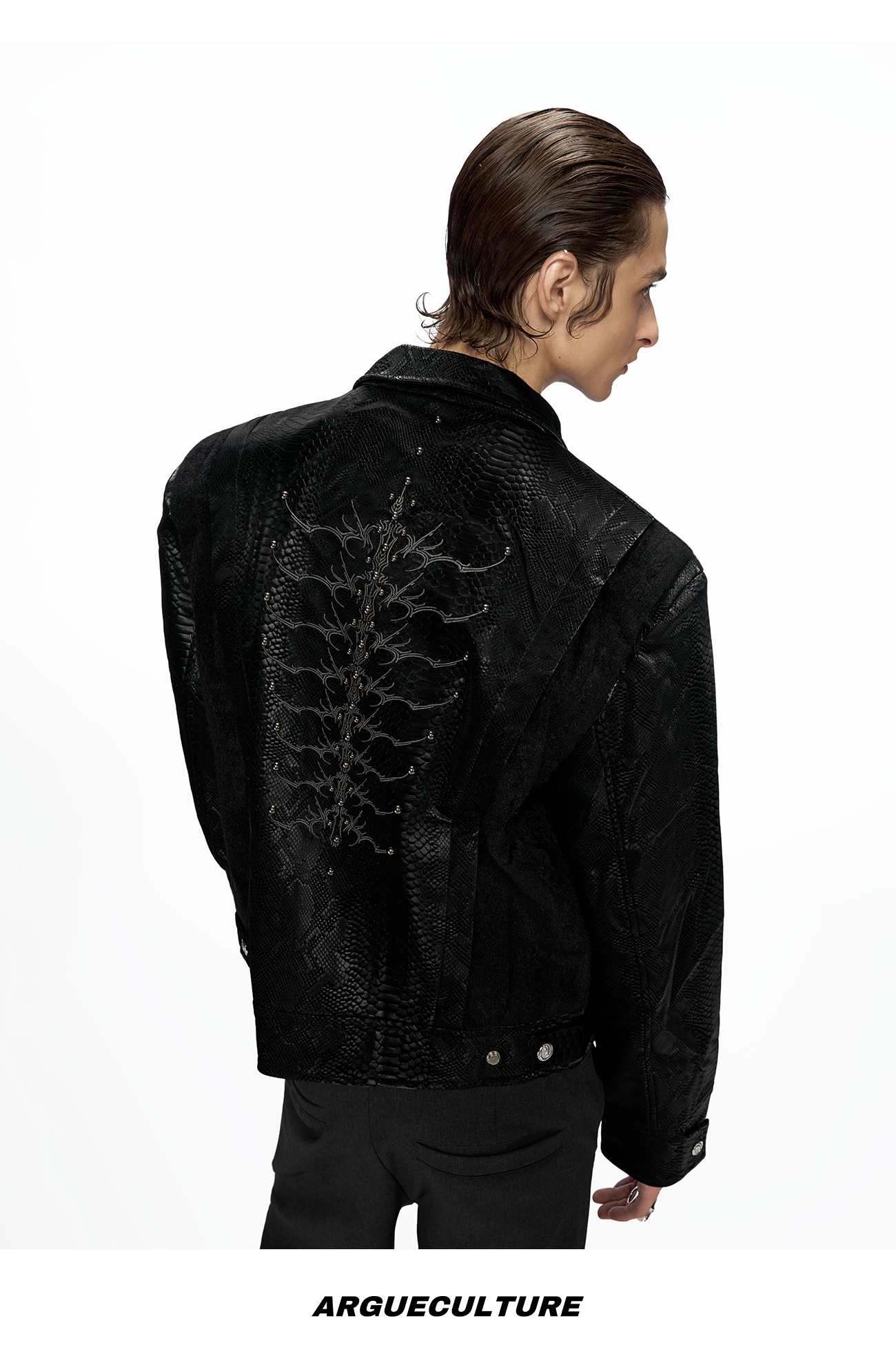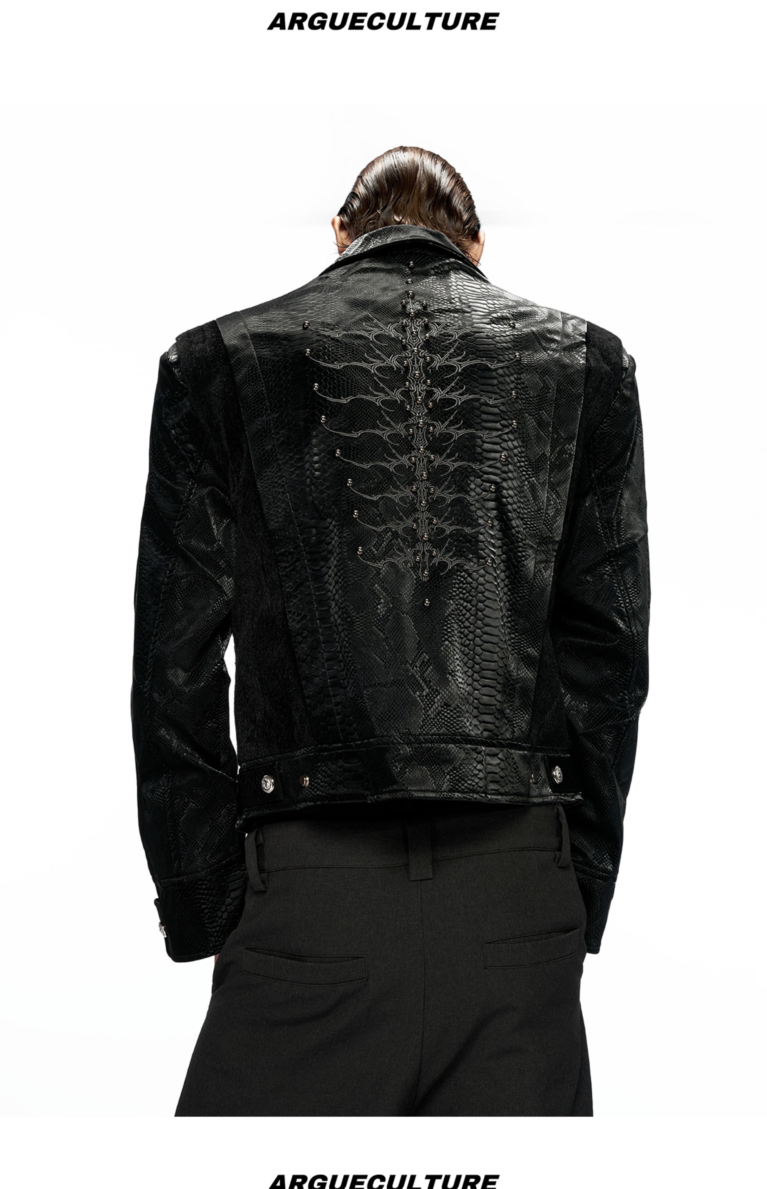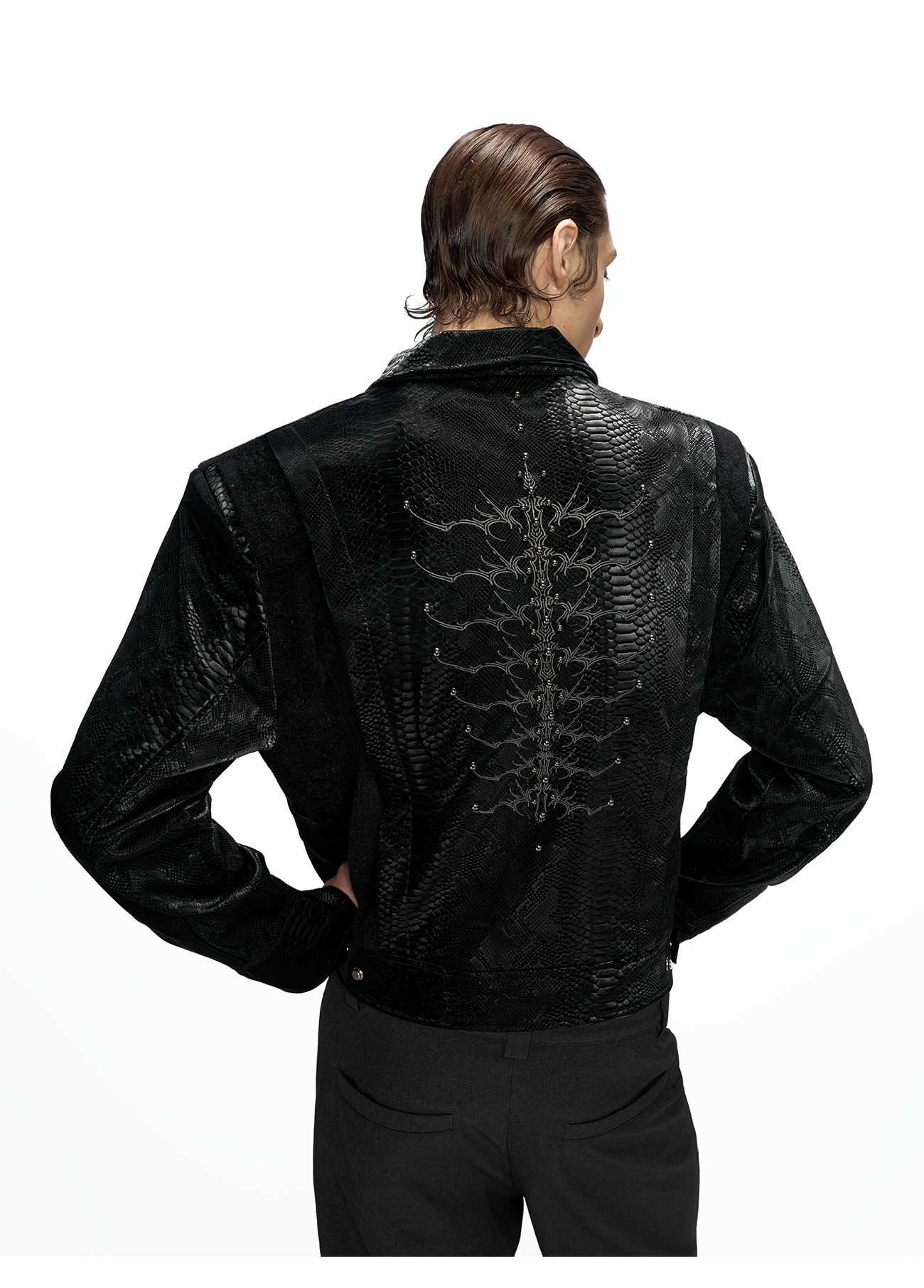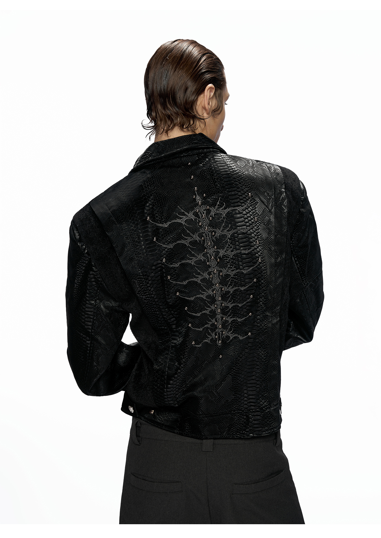 Crocodile Pattern Rivet PU Leather Jacket WN20518