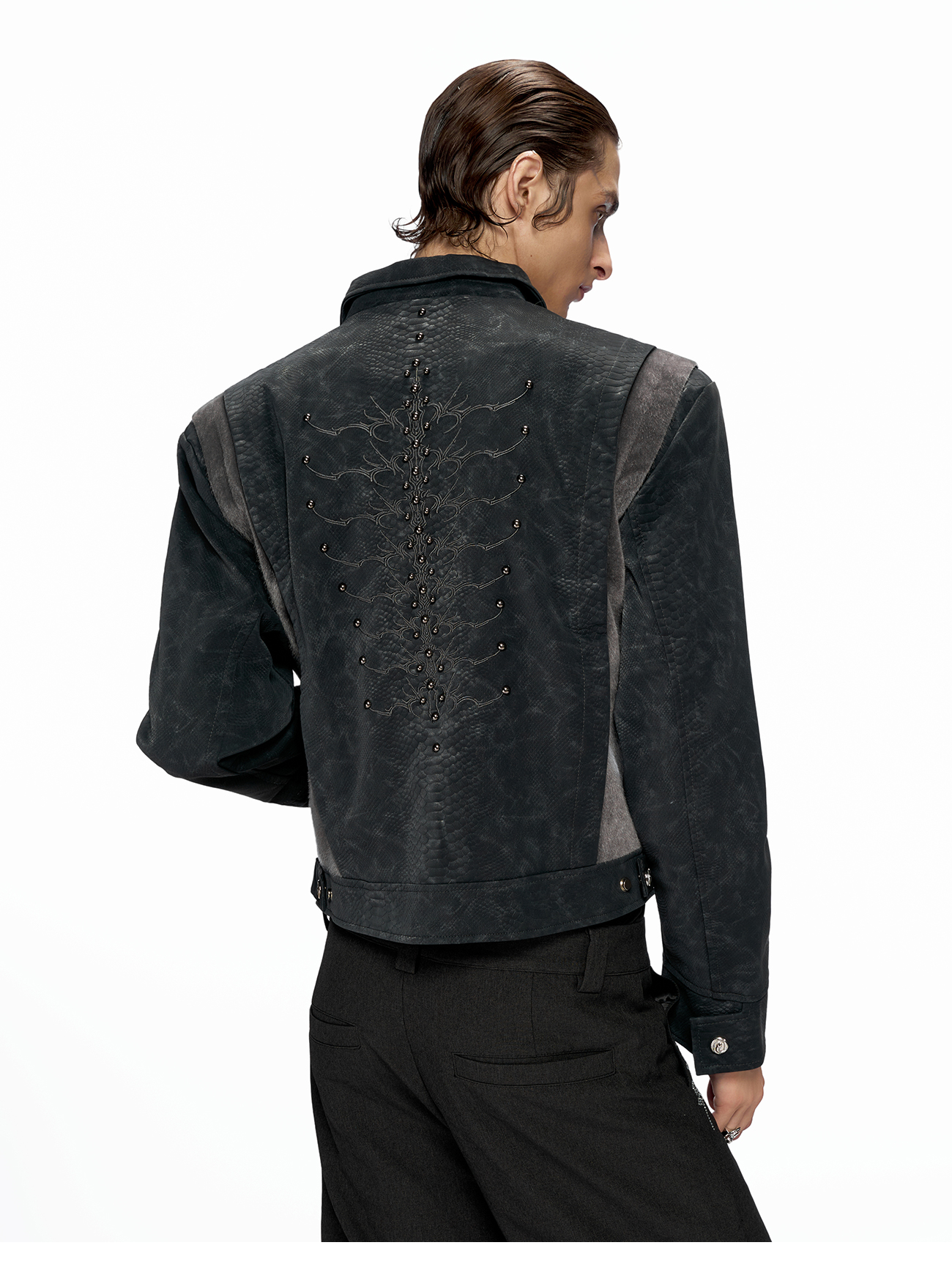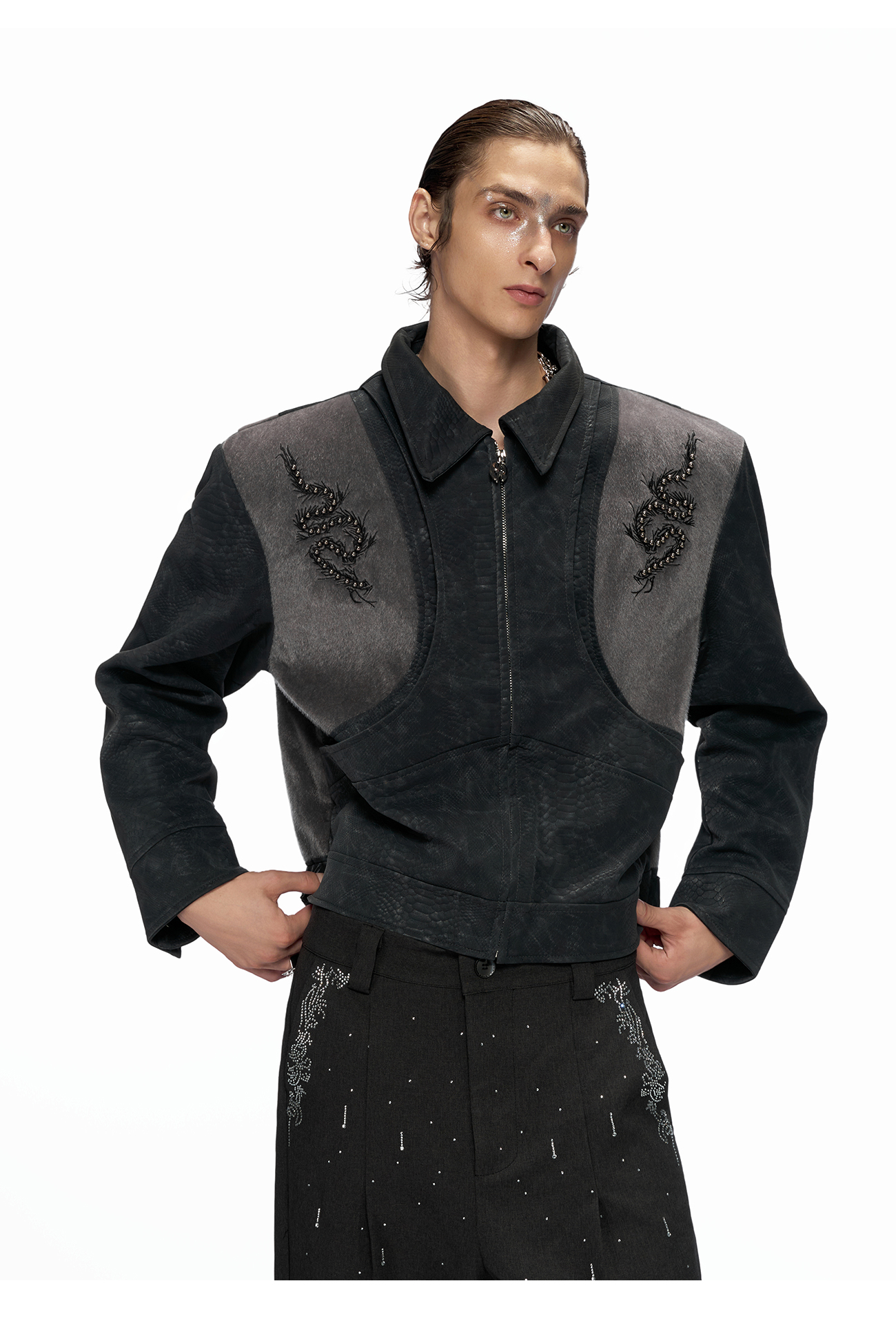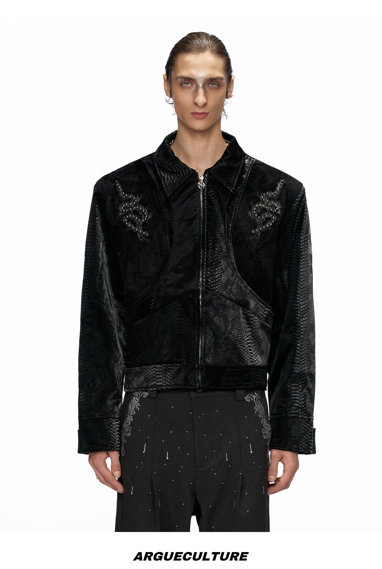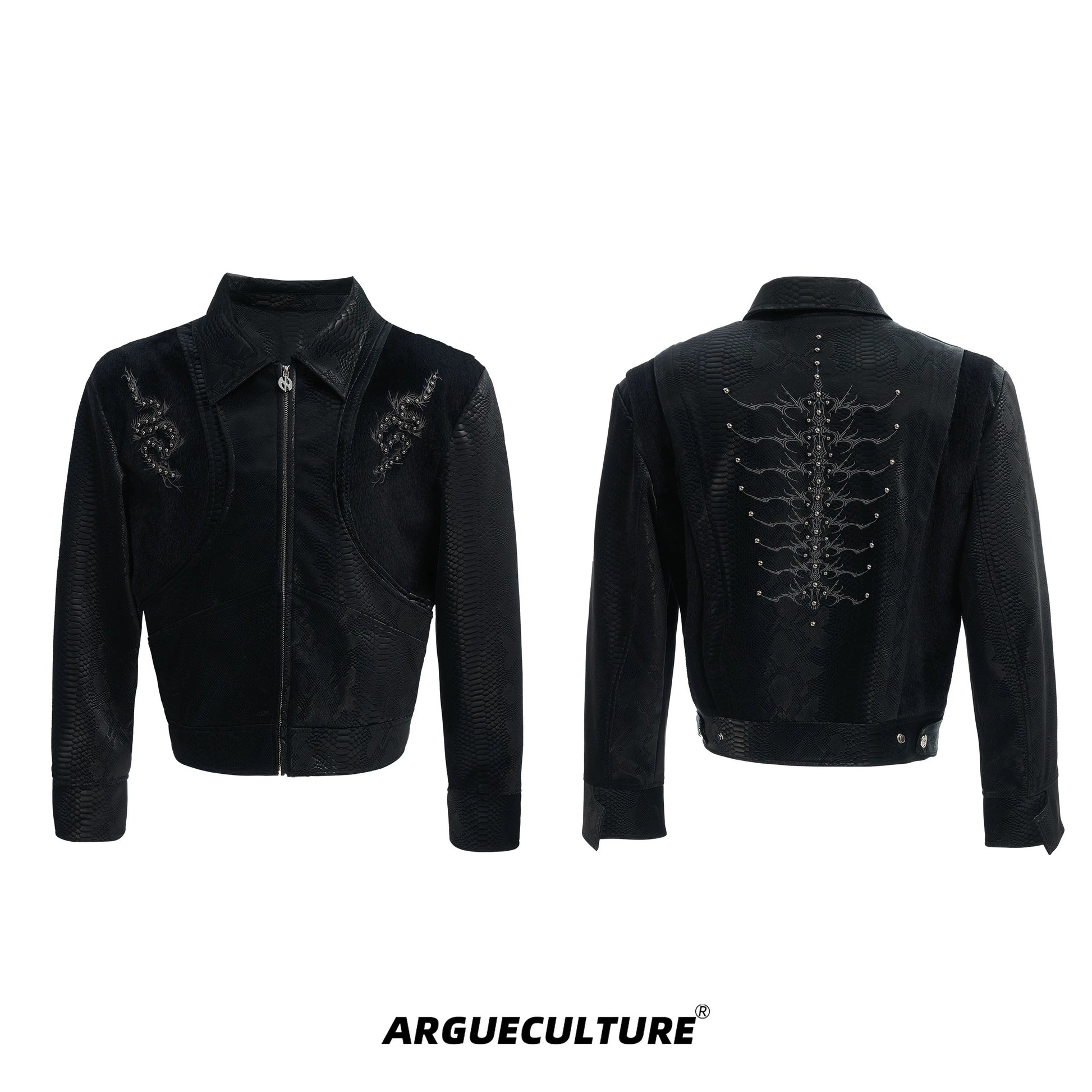 Crocodile Pattern Rivet PU Leather Jacket WN20518