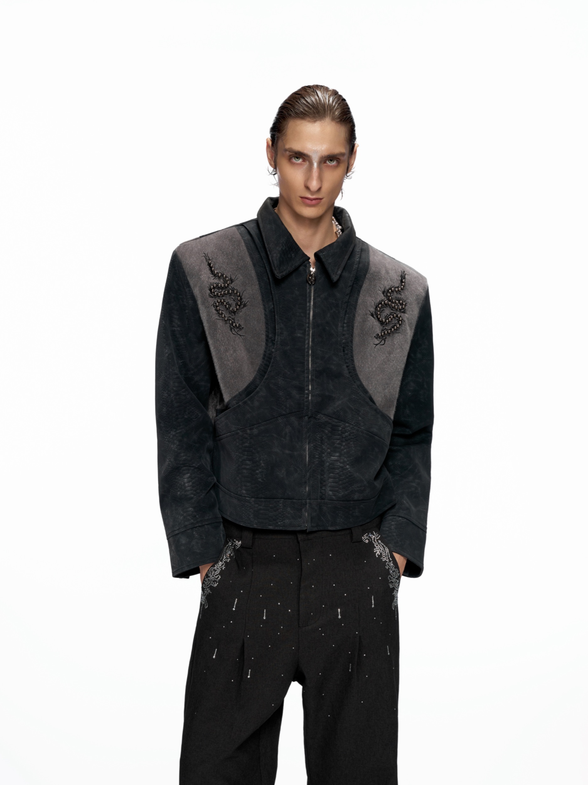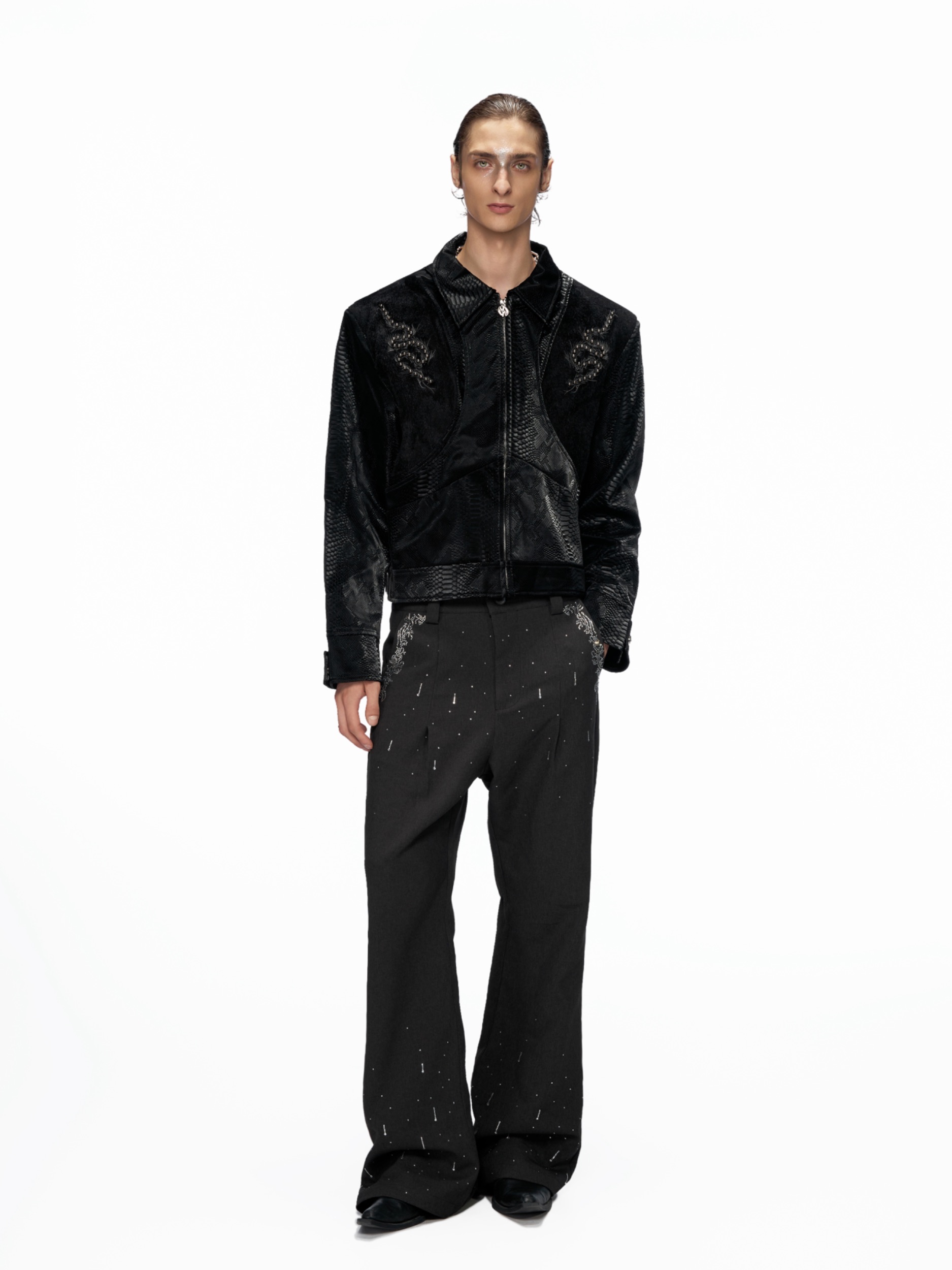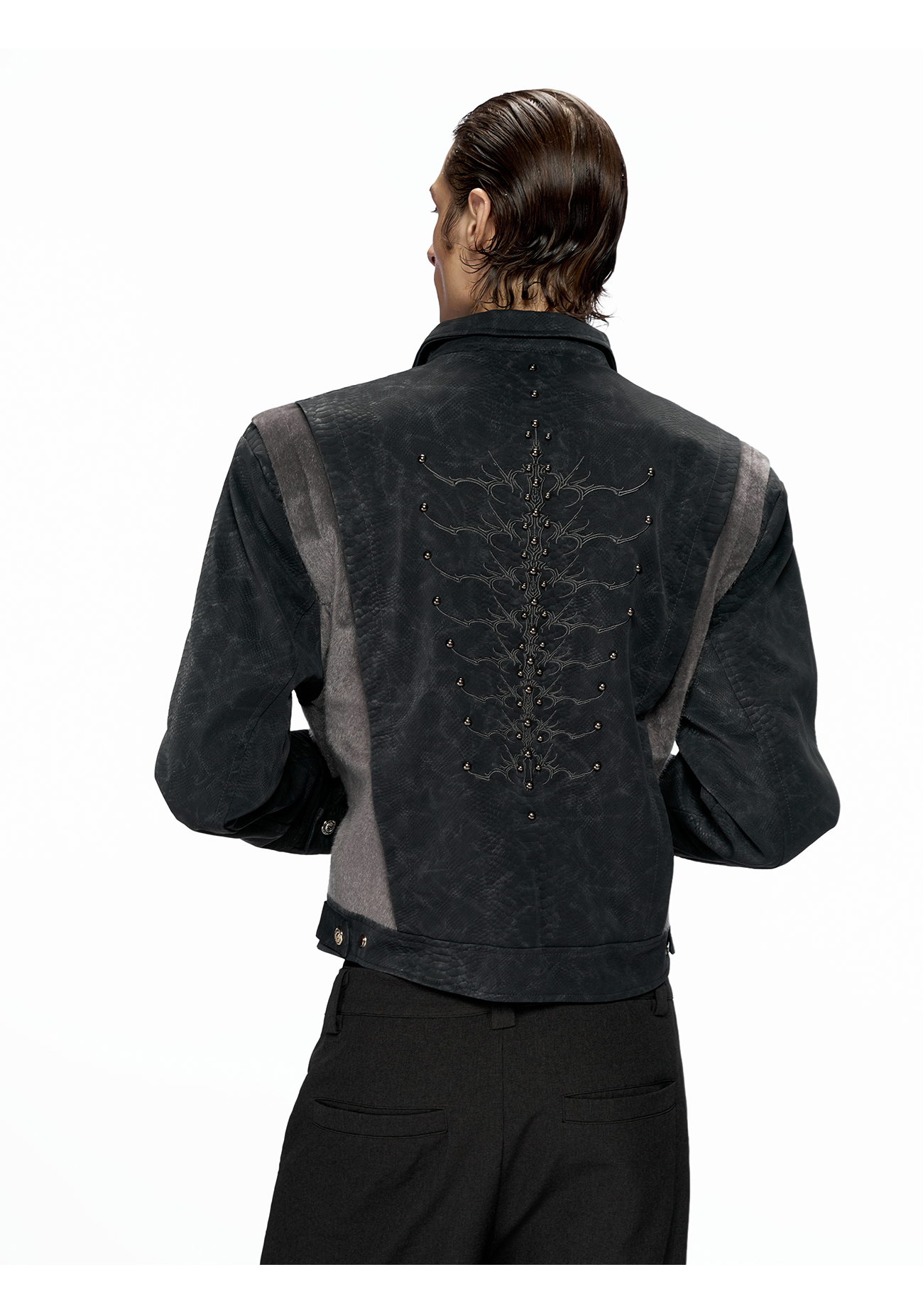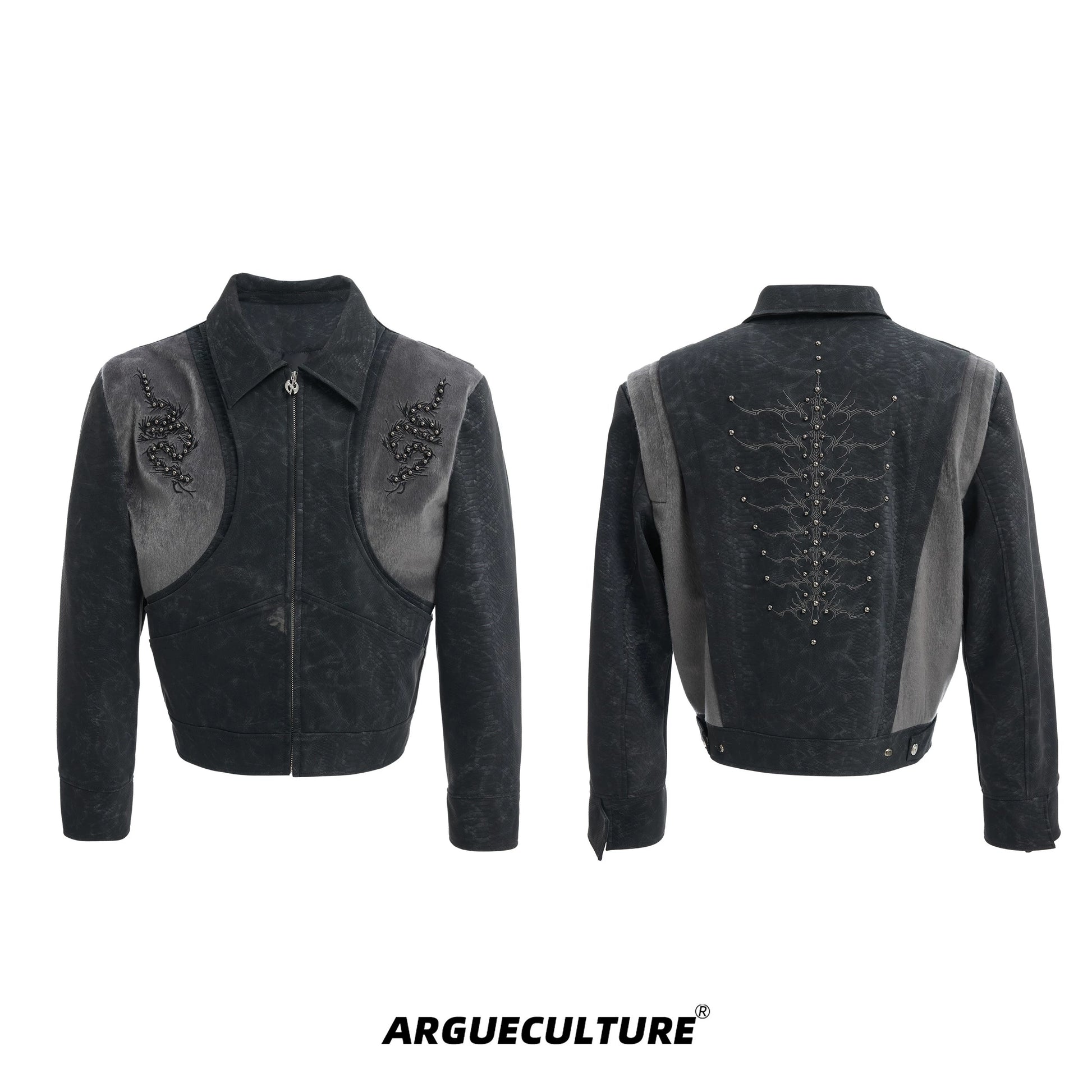 Crocodile Pattern Rivet PU Leather Jacket WN20518