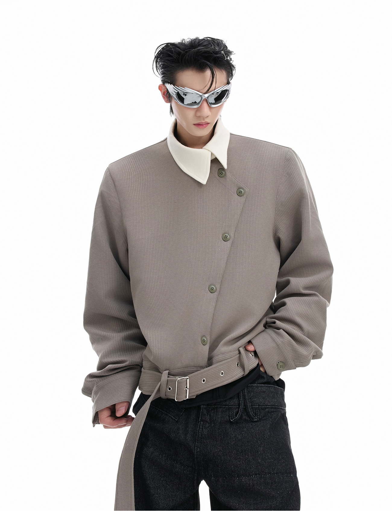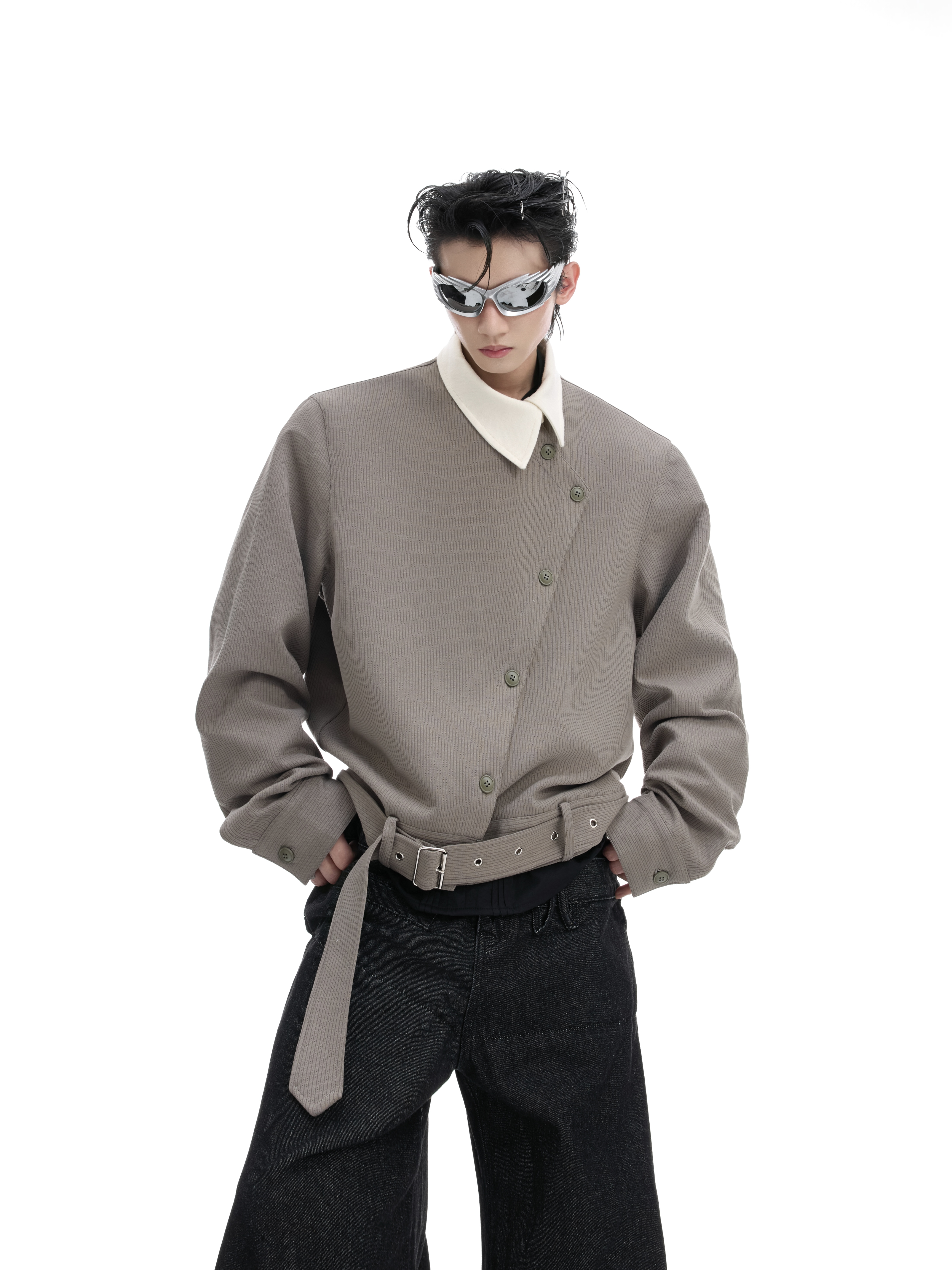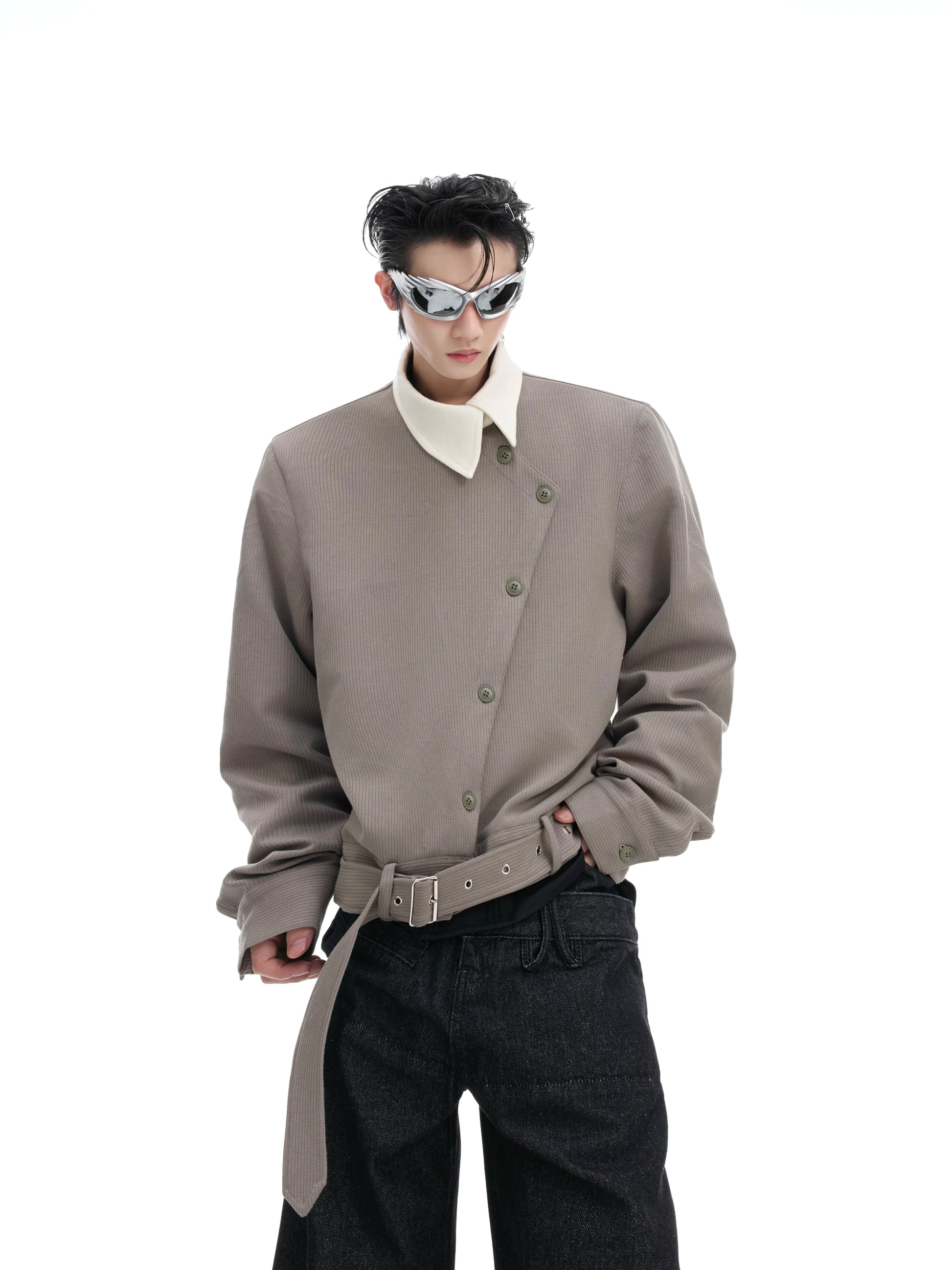 Asymmetric Button Pointed-Collar Jacket WN20521