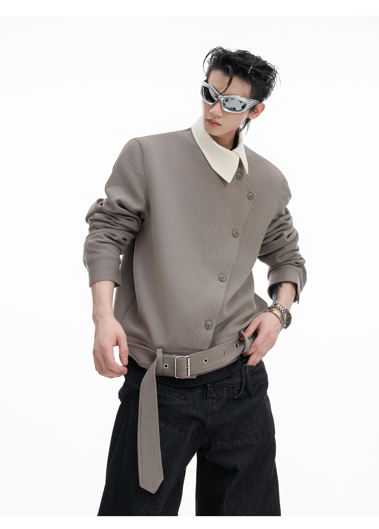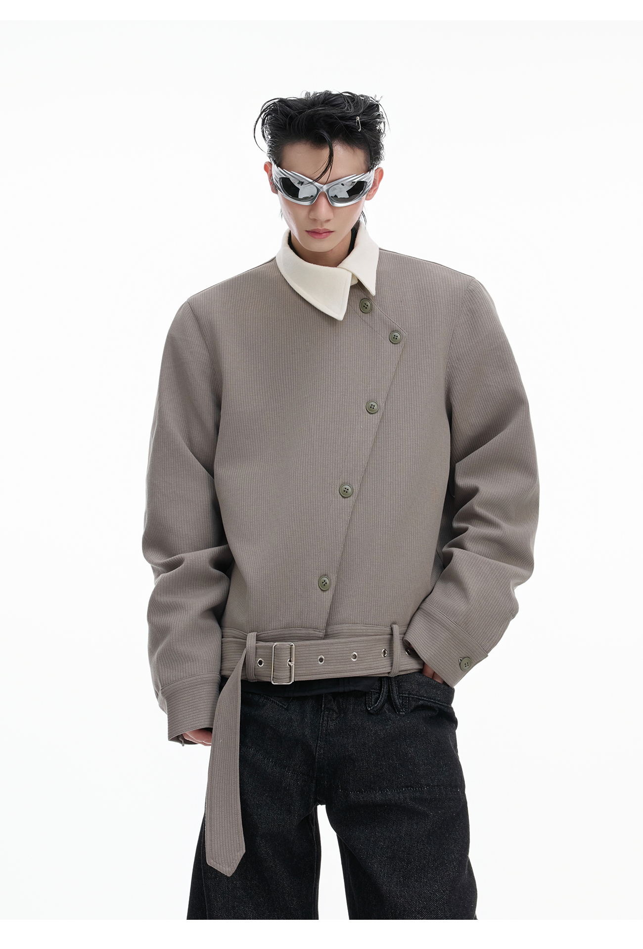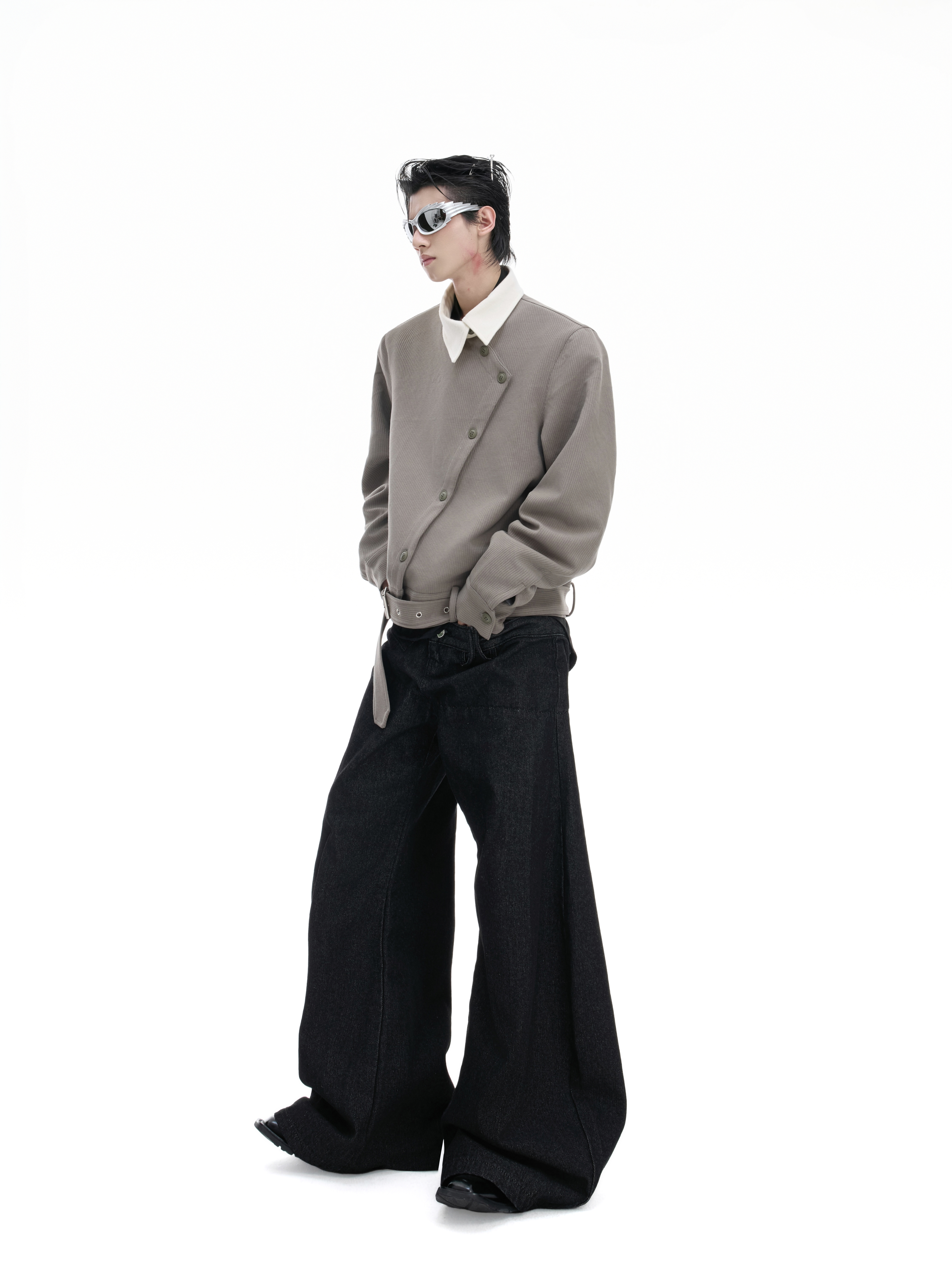 Asymmetric Button Pointed-Collar Jacket WN20521