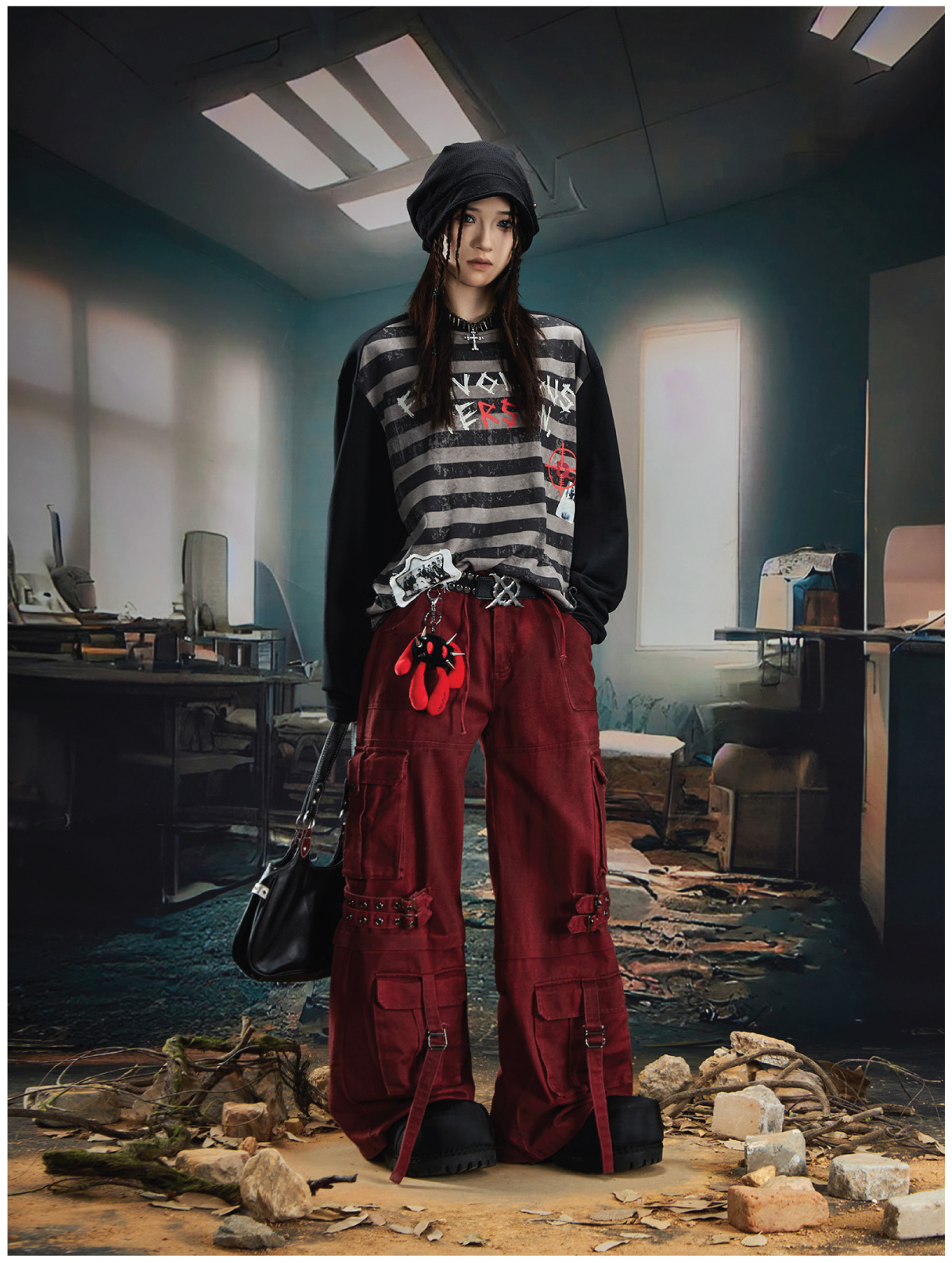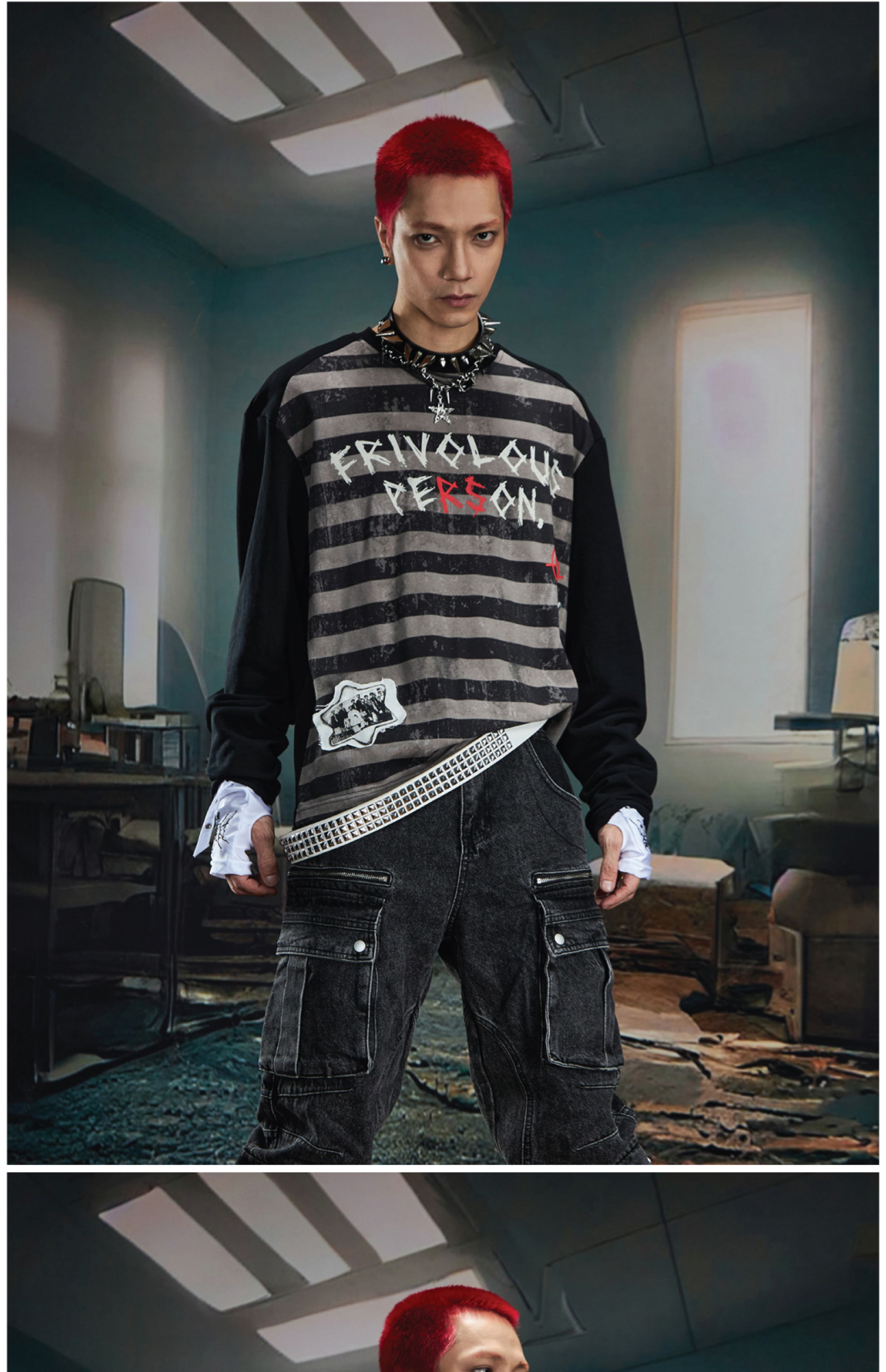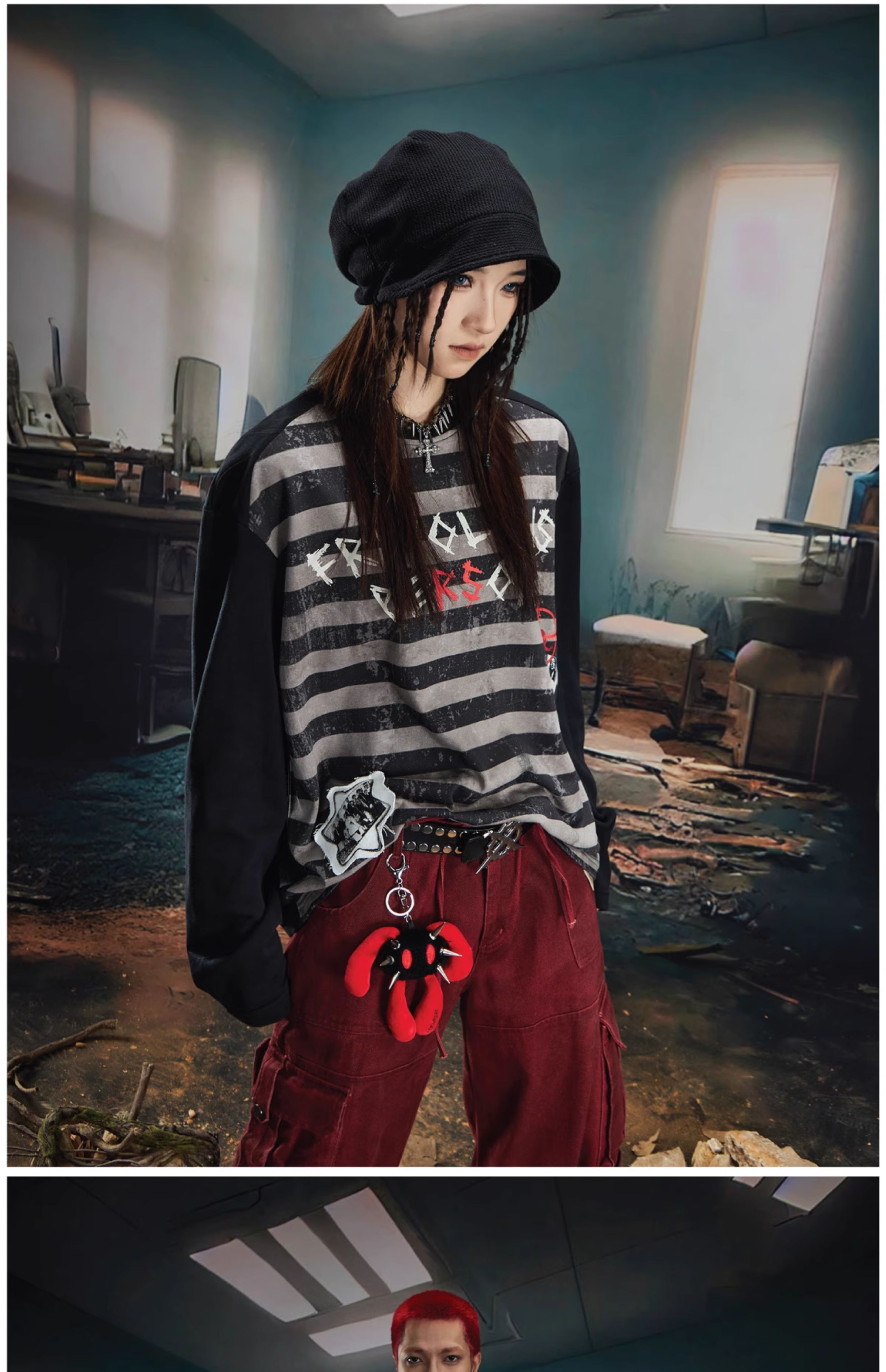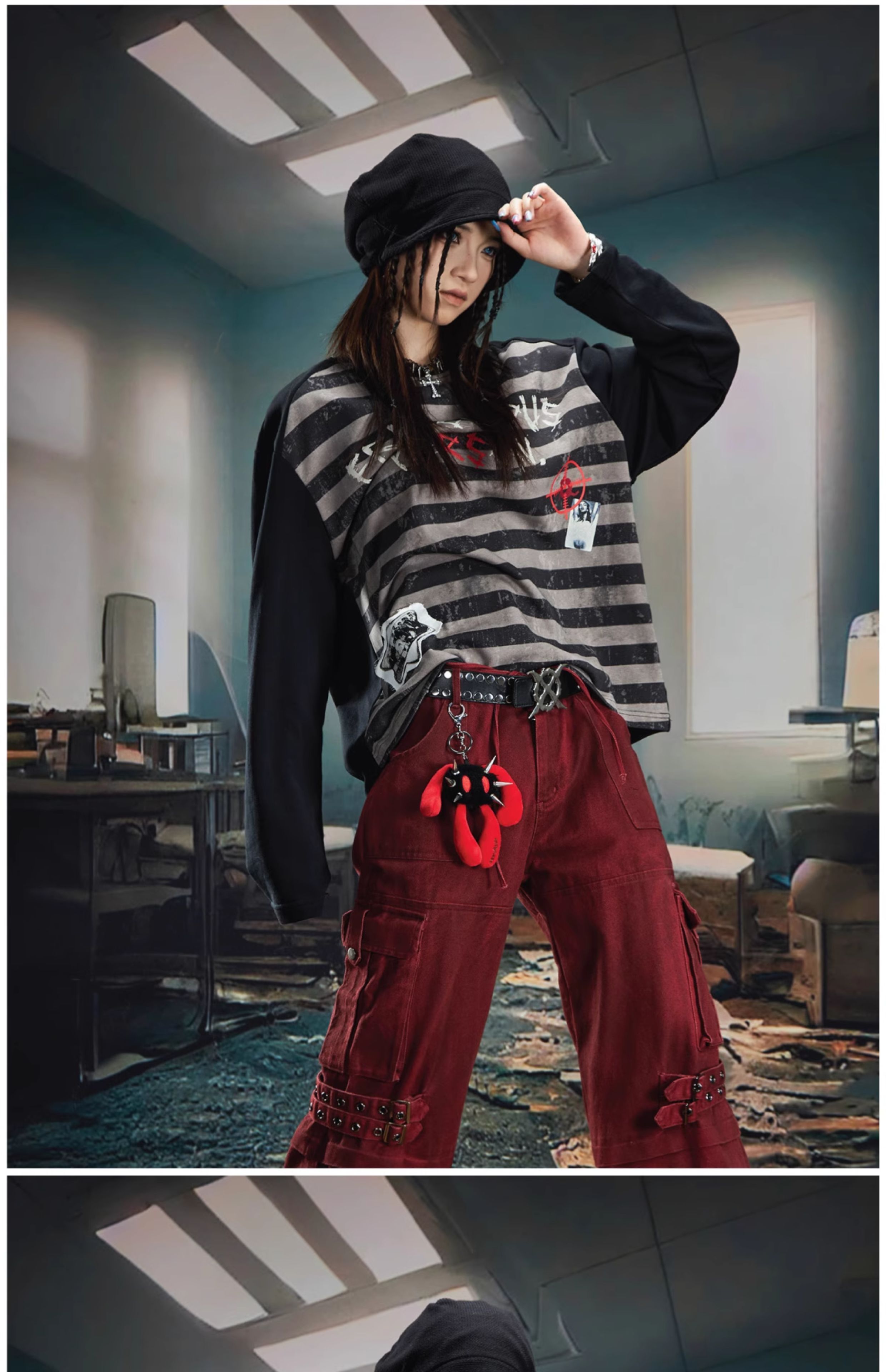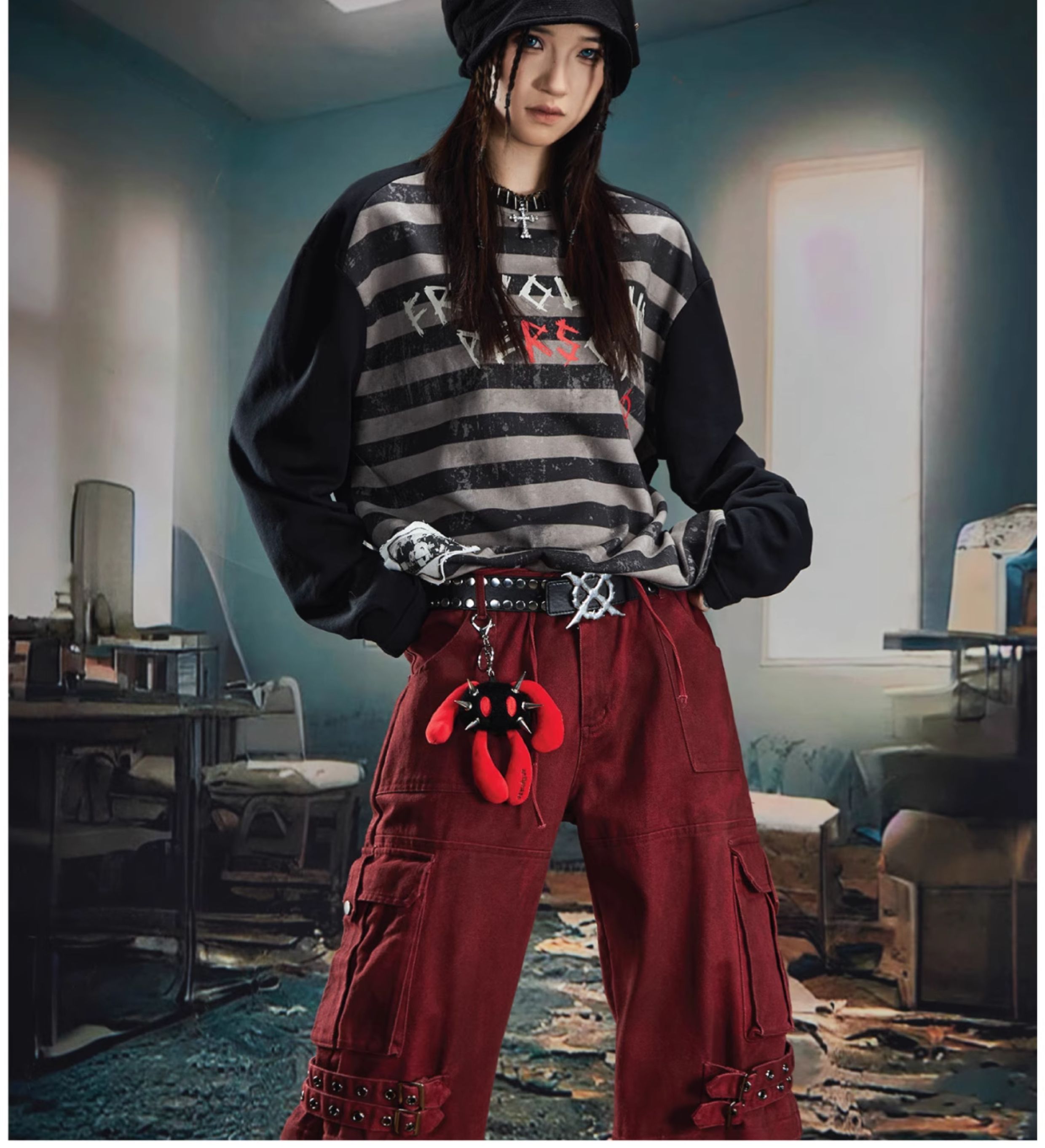 Graffiti Letter Print Stripe Long Sleeve T-Shirt WN20561