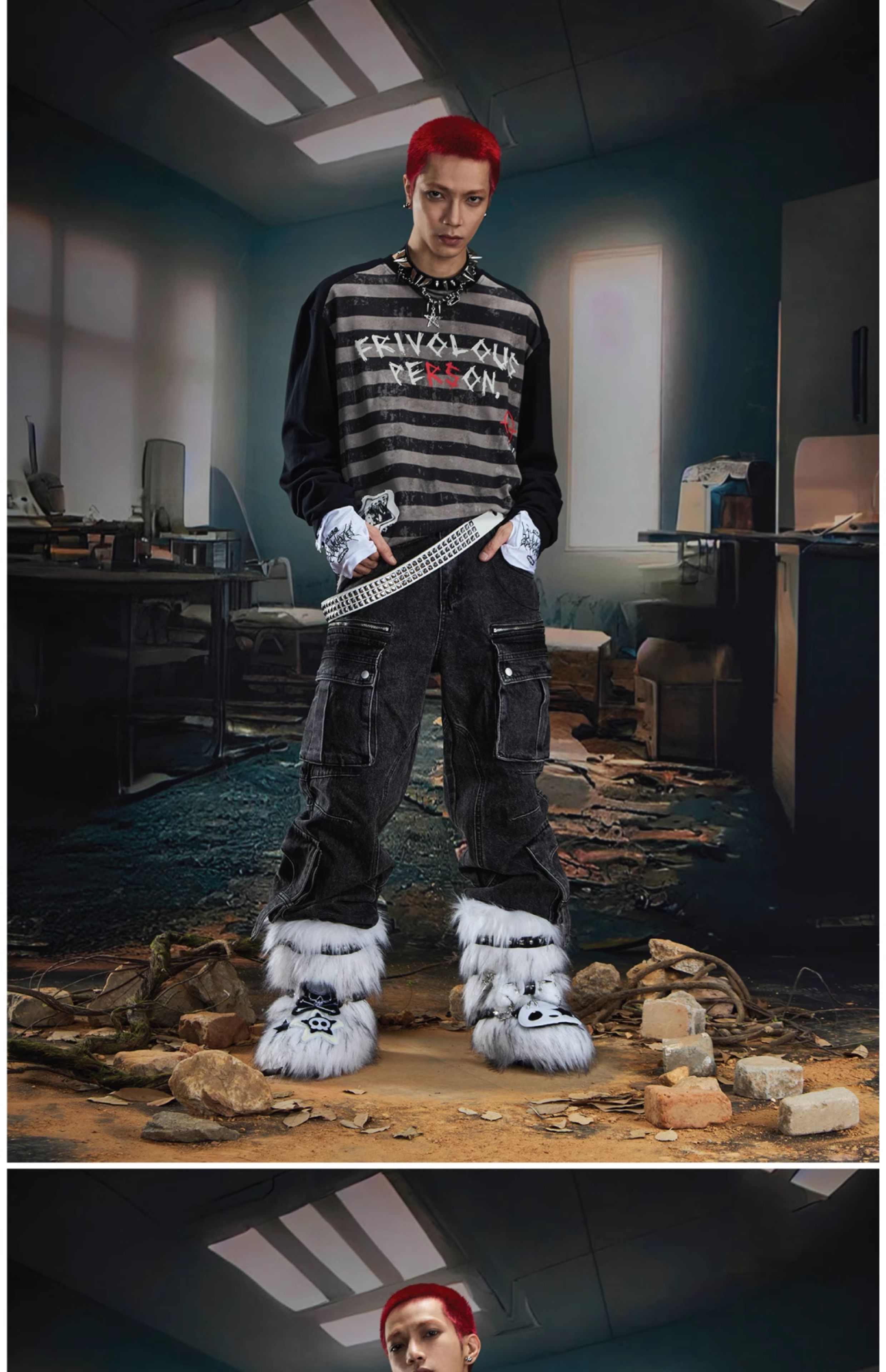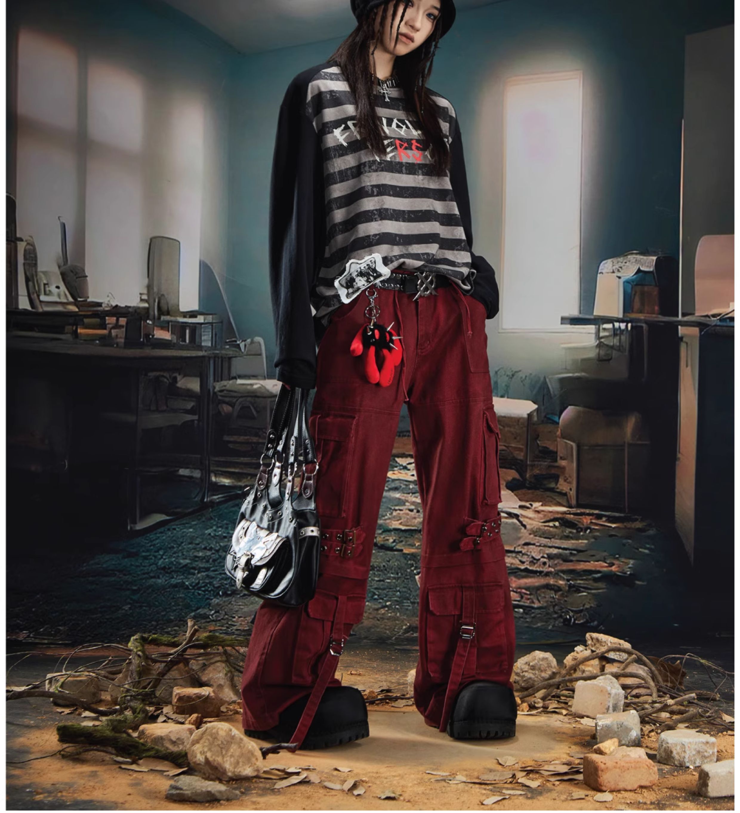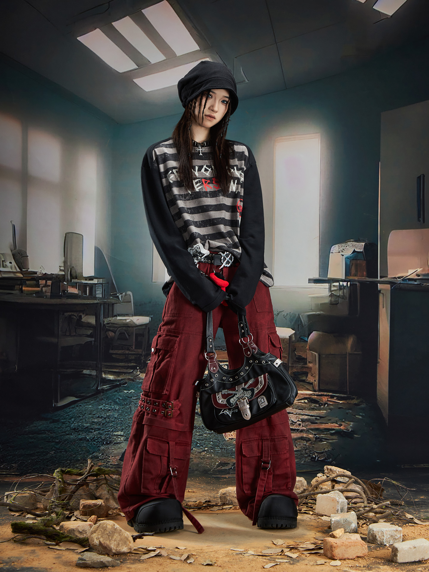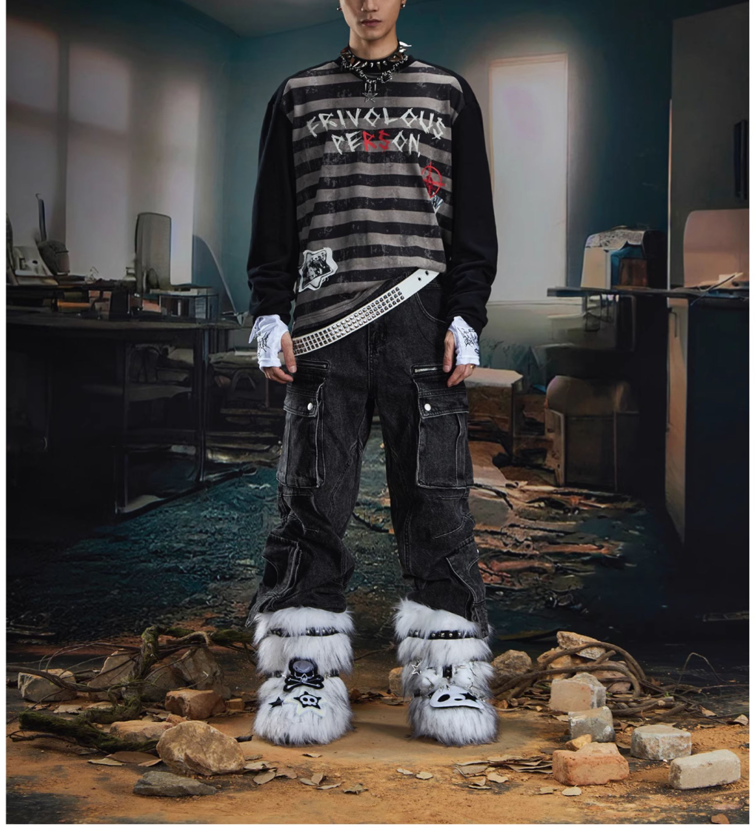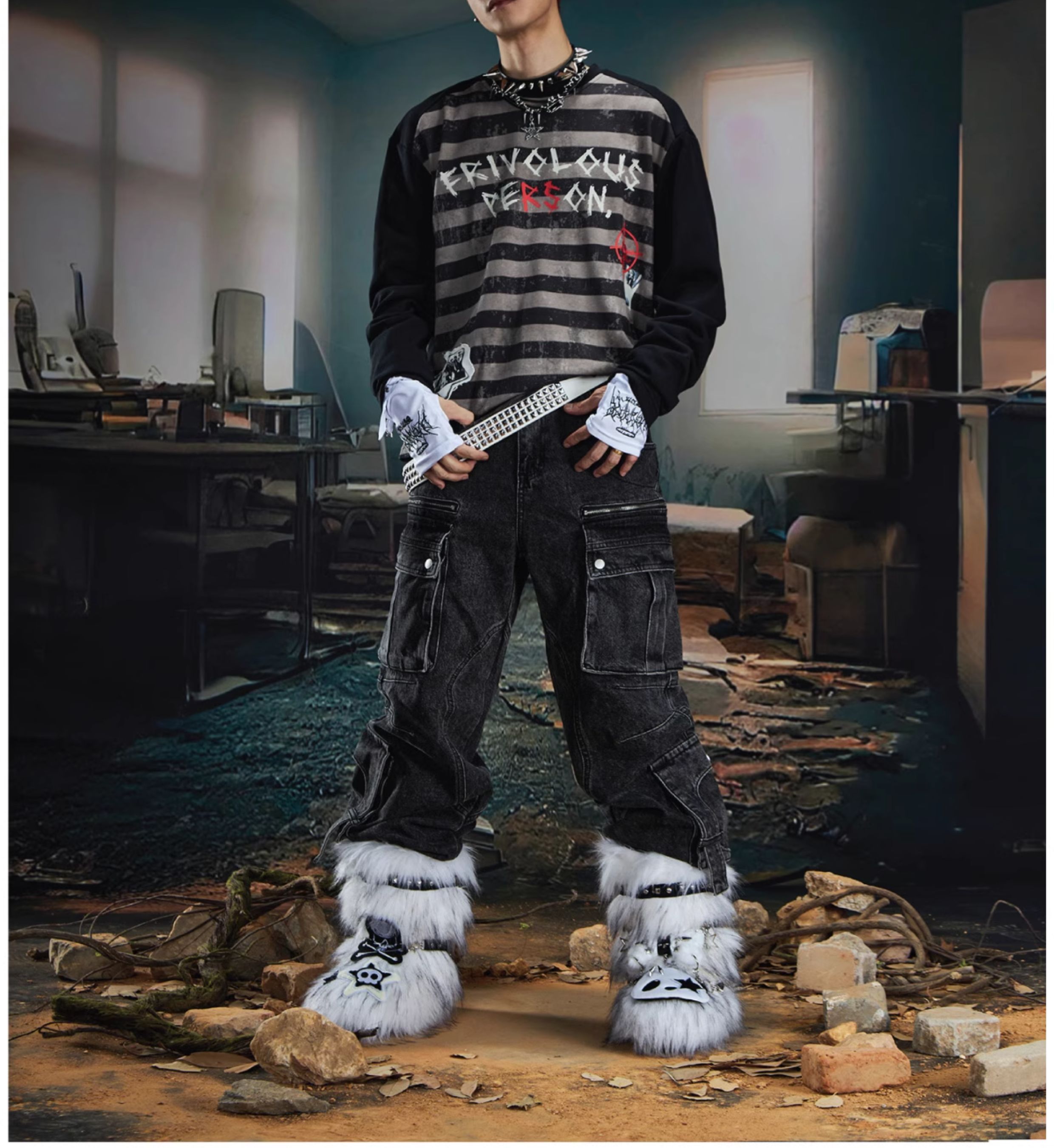 Graffiti Letter Print Stripe Long Sleeve T-Shirt WN20561
