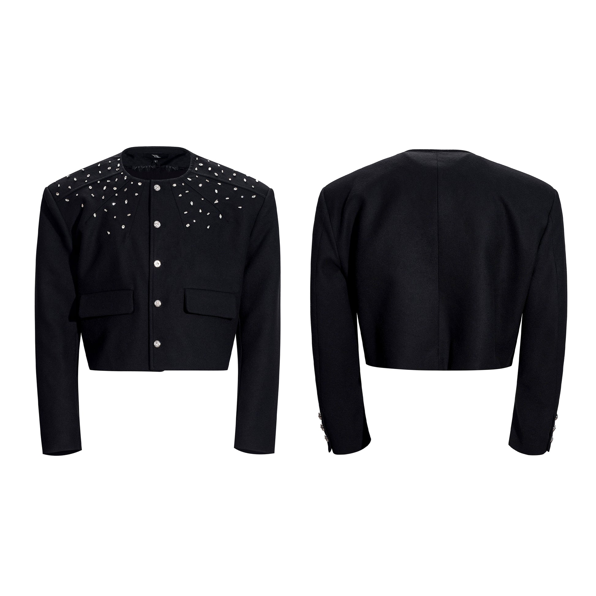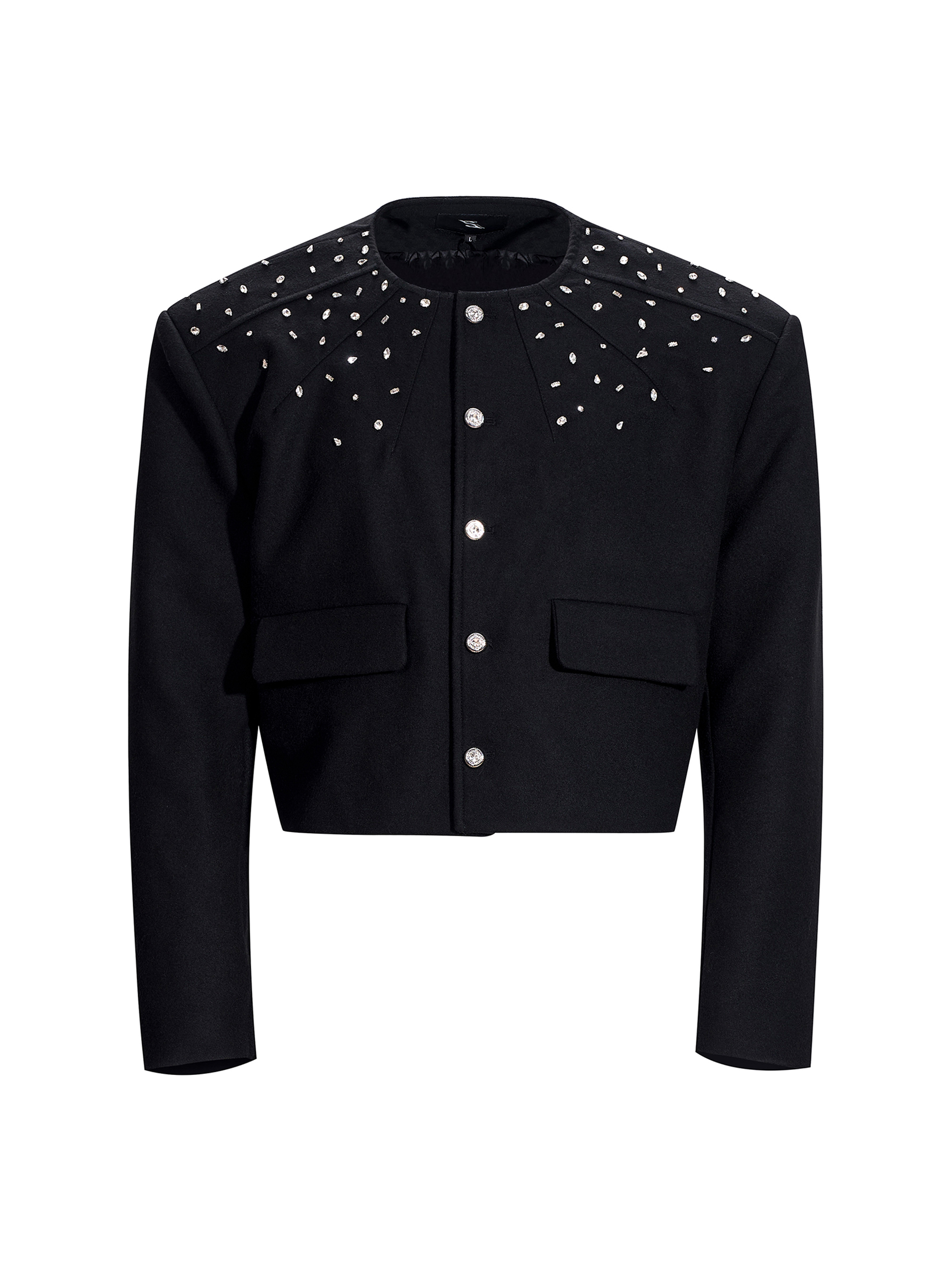 Shoulder-Pad Rhinestone Wool Short Jacket WN22125