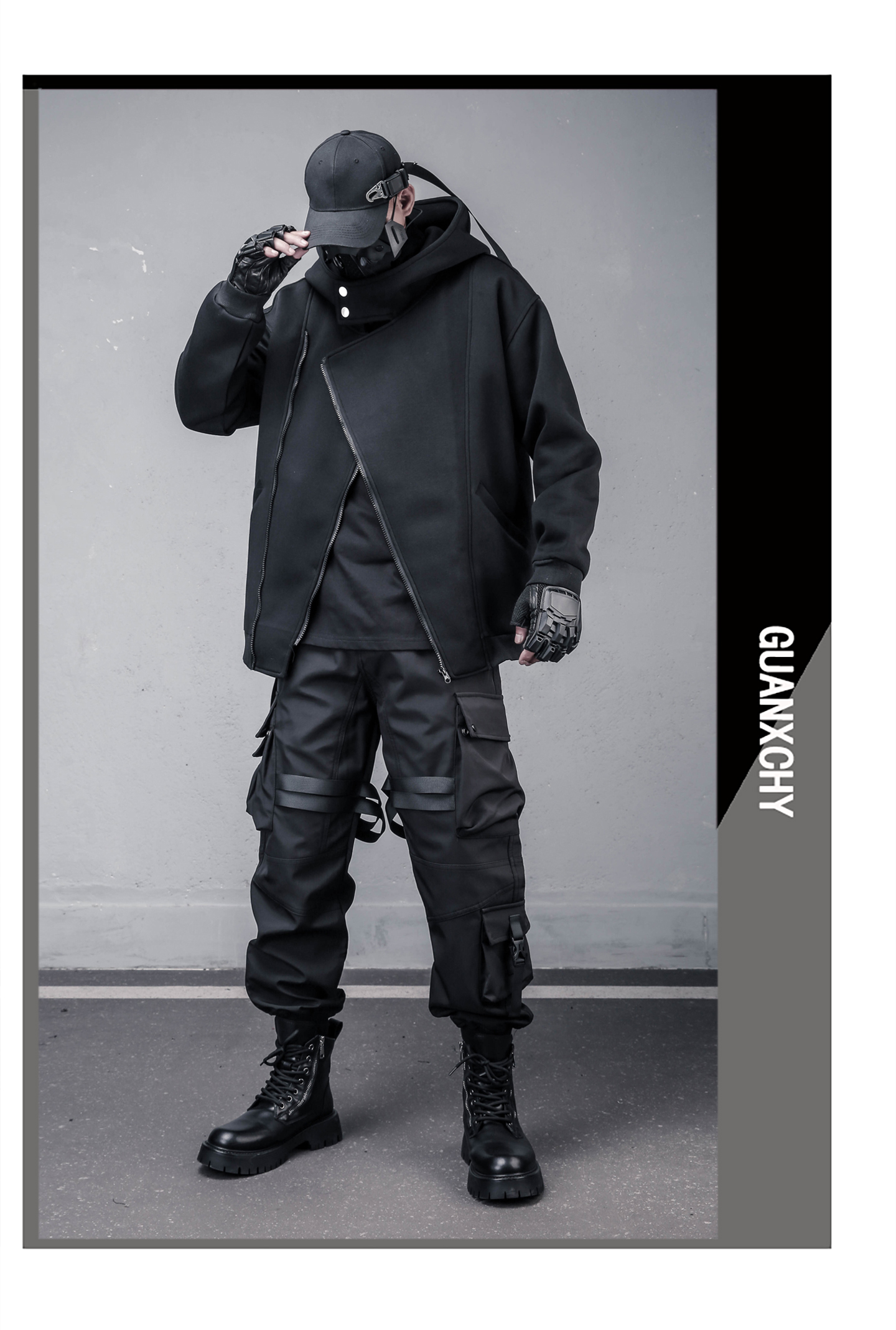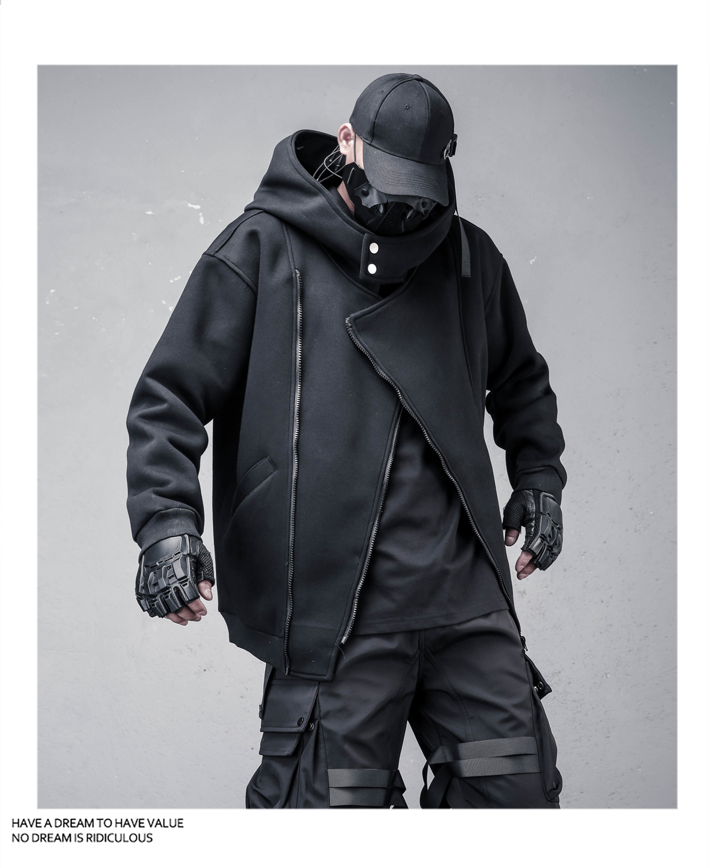 Oversize Asymmetric Zip Tactical Hoodie WN22312