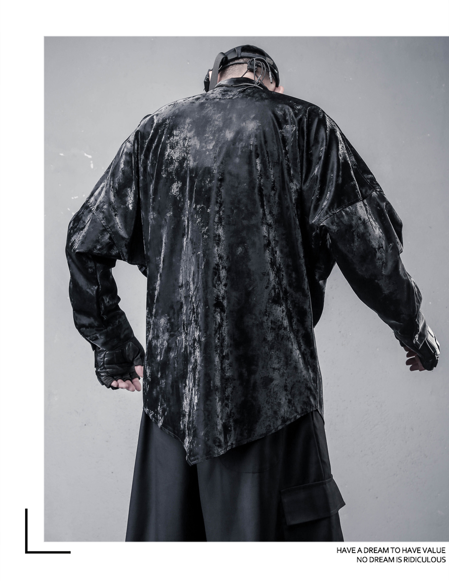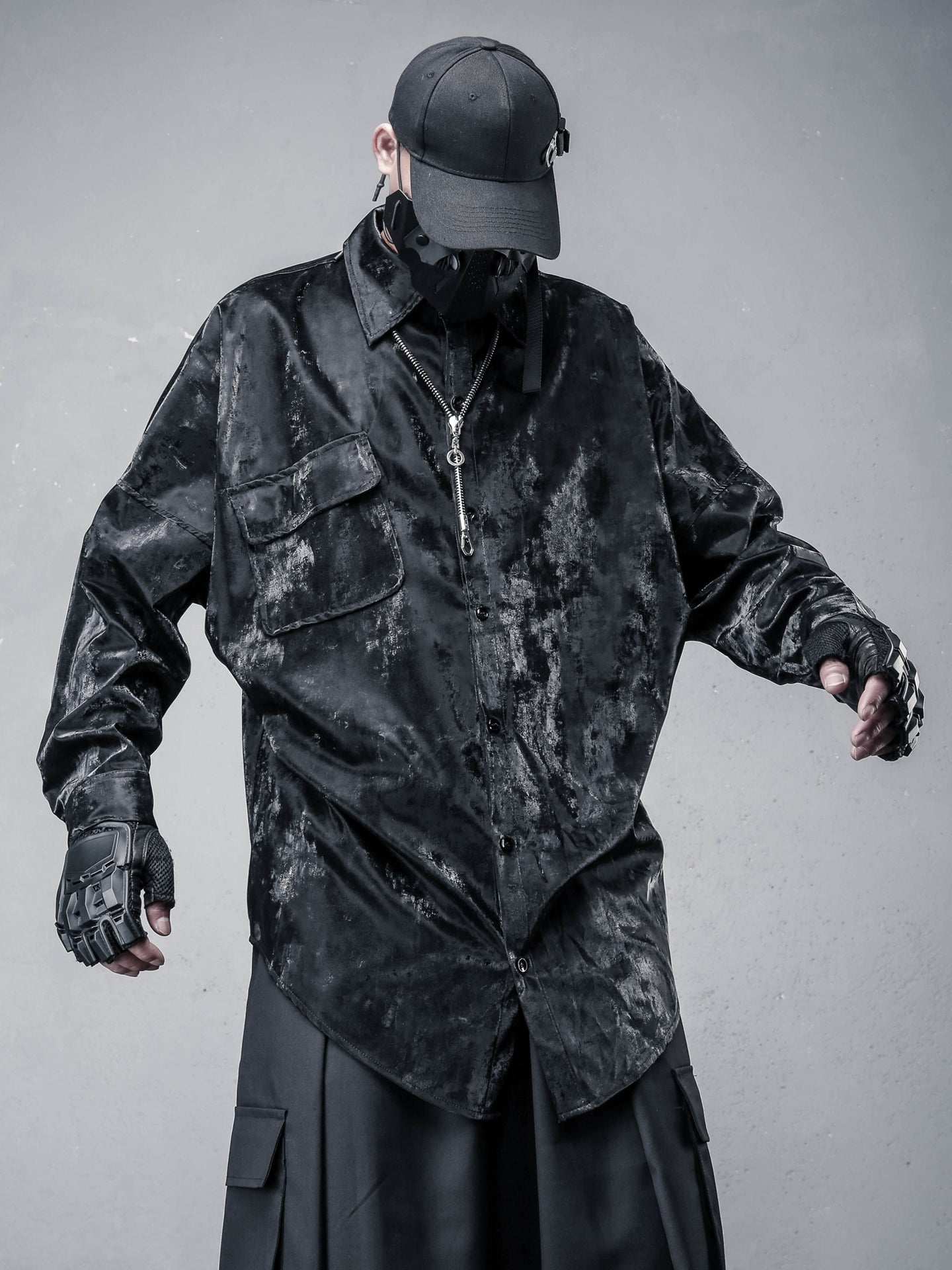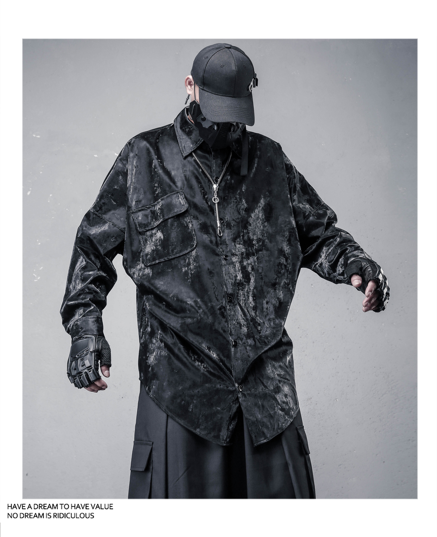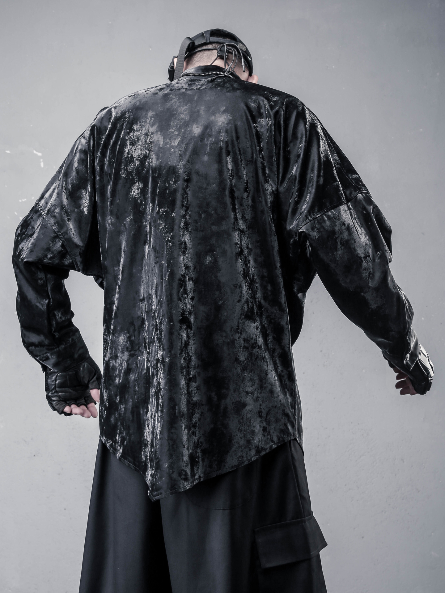 PU Leather Gloss Oversize Long Sleeve Shirt WN22327