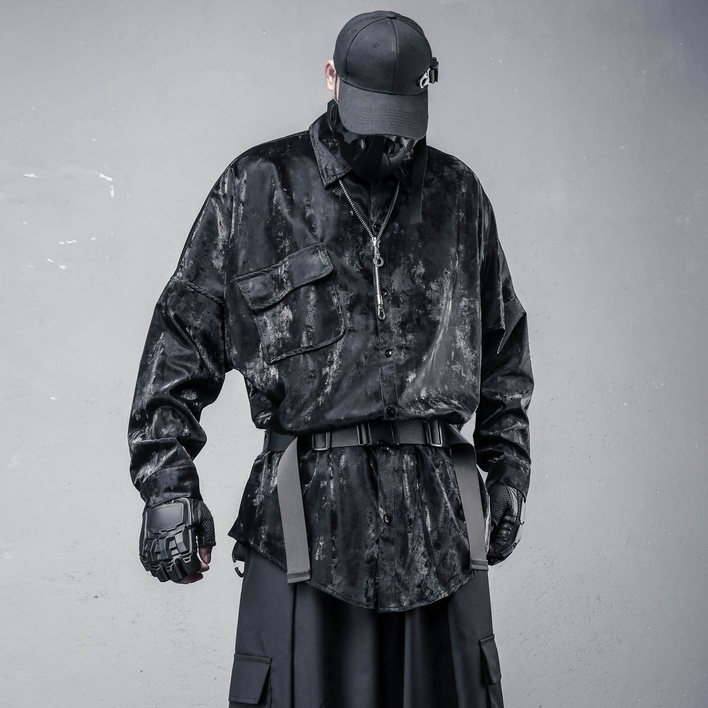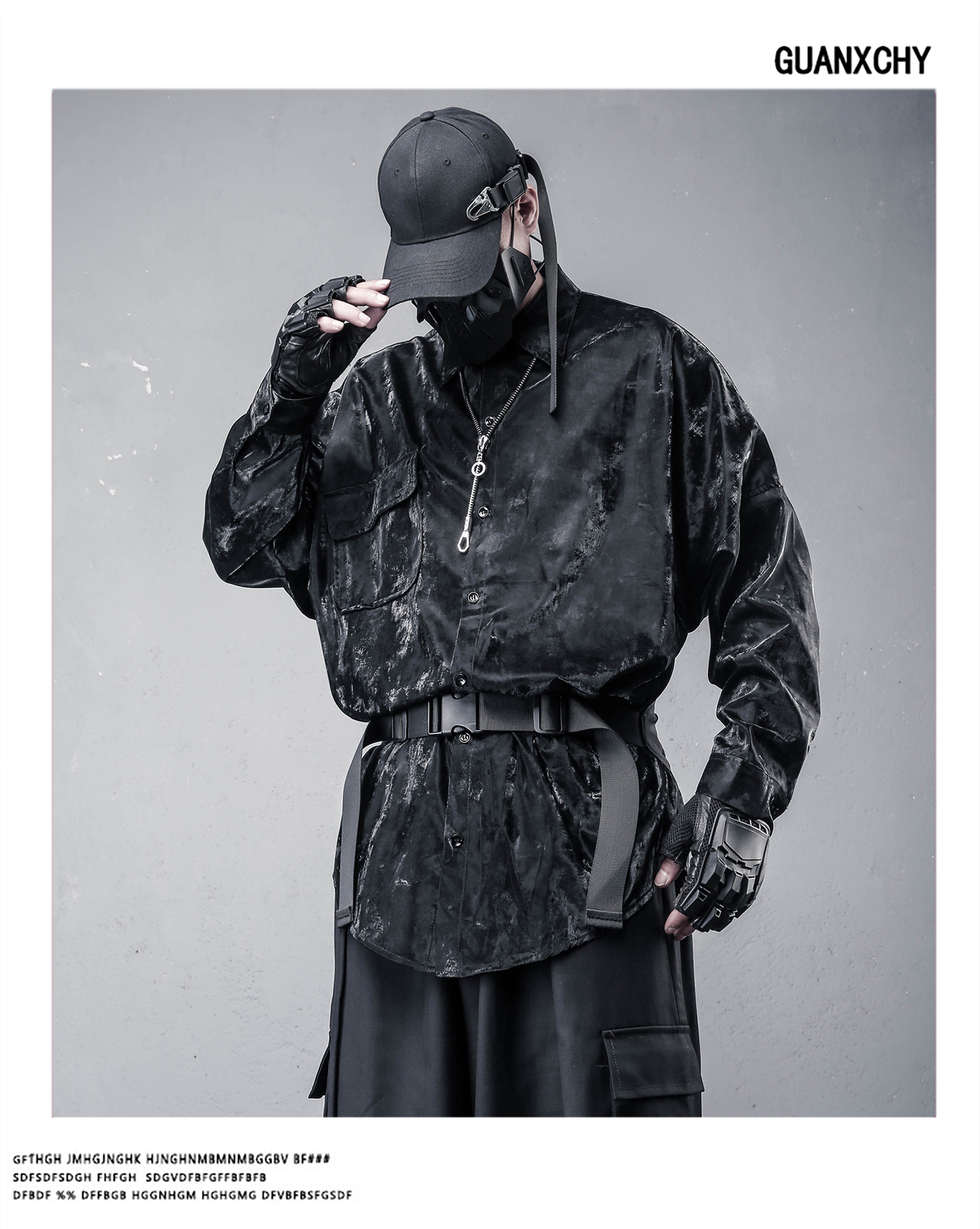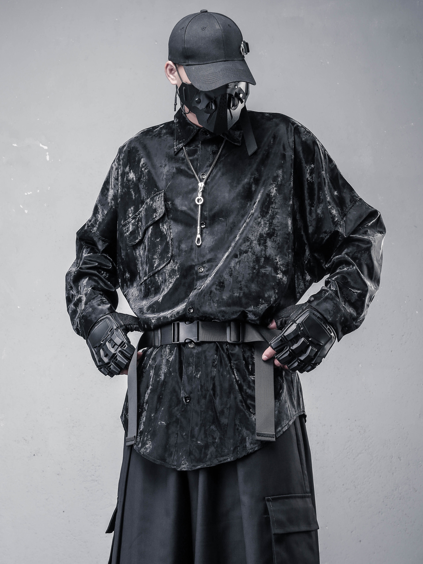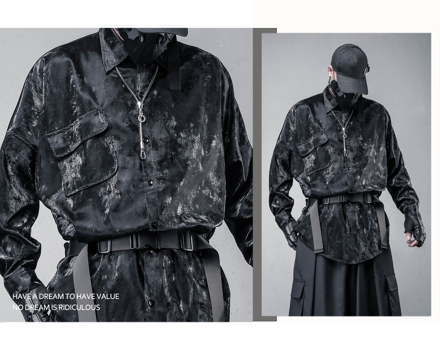 PU Leather Gloss Oversize Long Sleeve Shirt WN22327