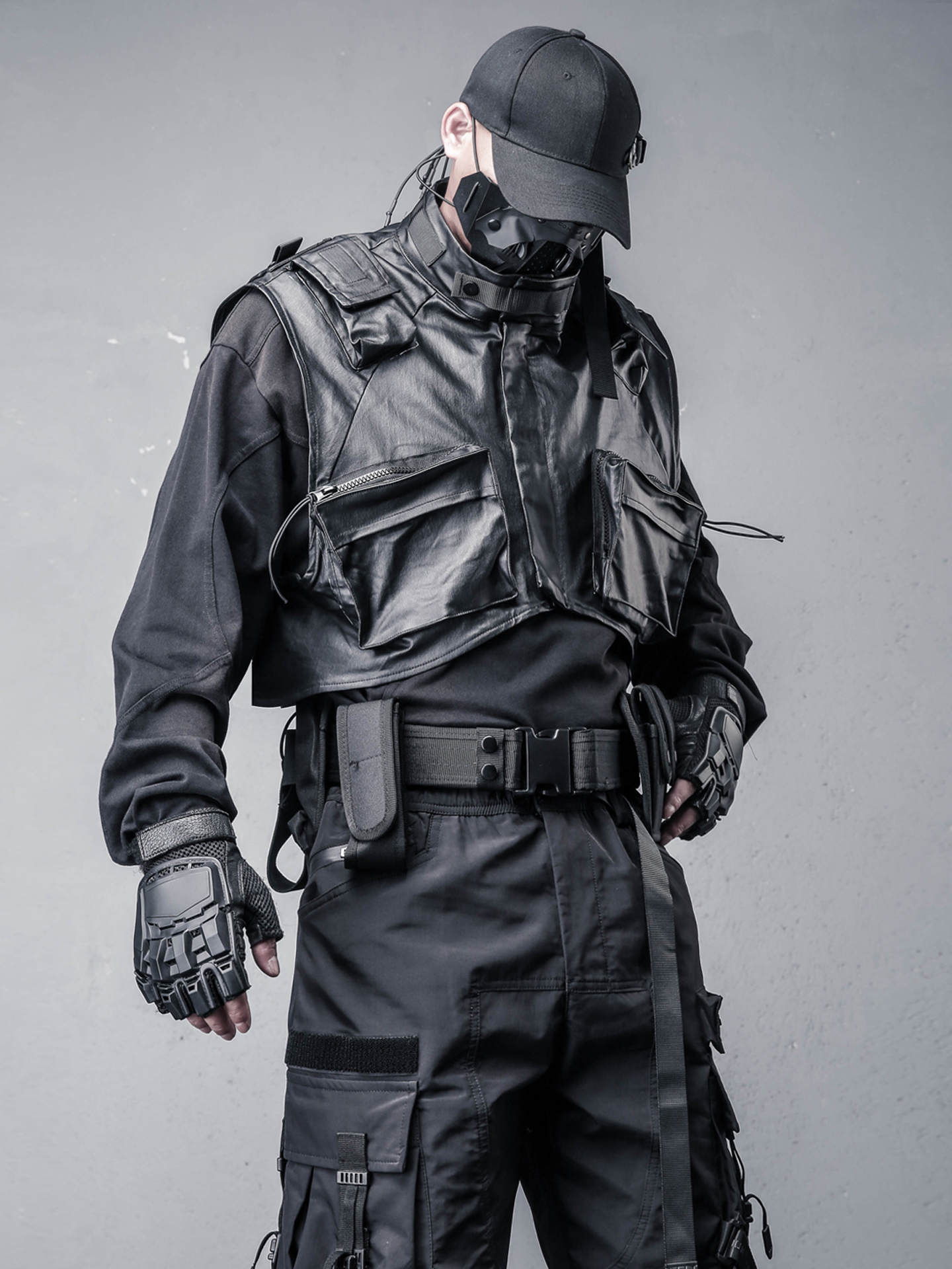 Stand Neck Large Pockets Tactical Coating Vest WN22360