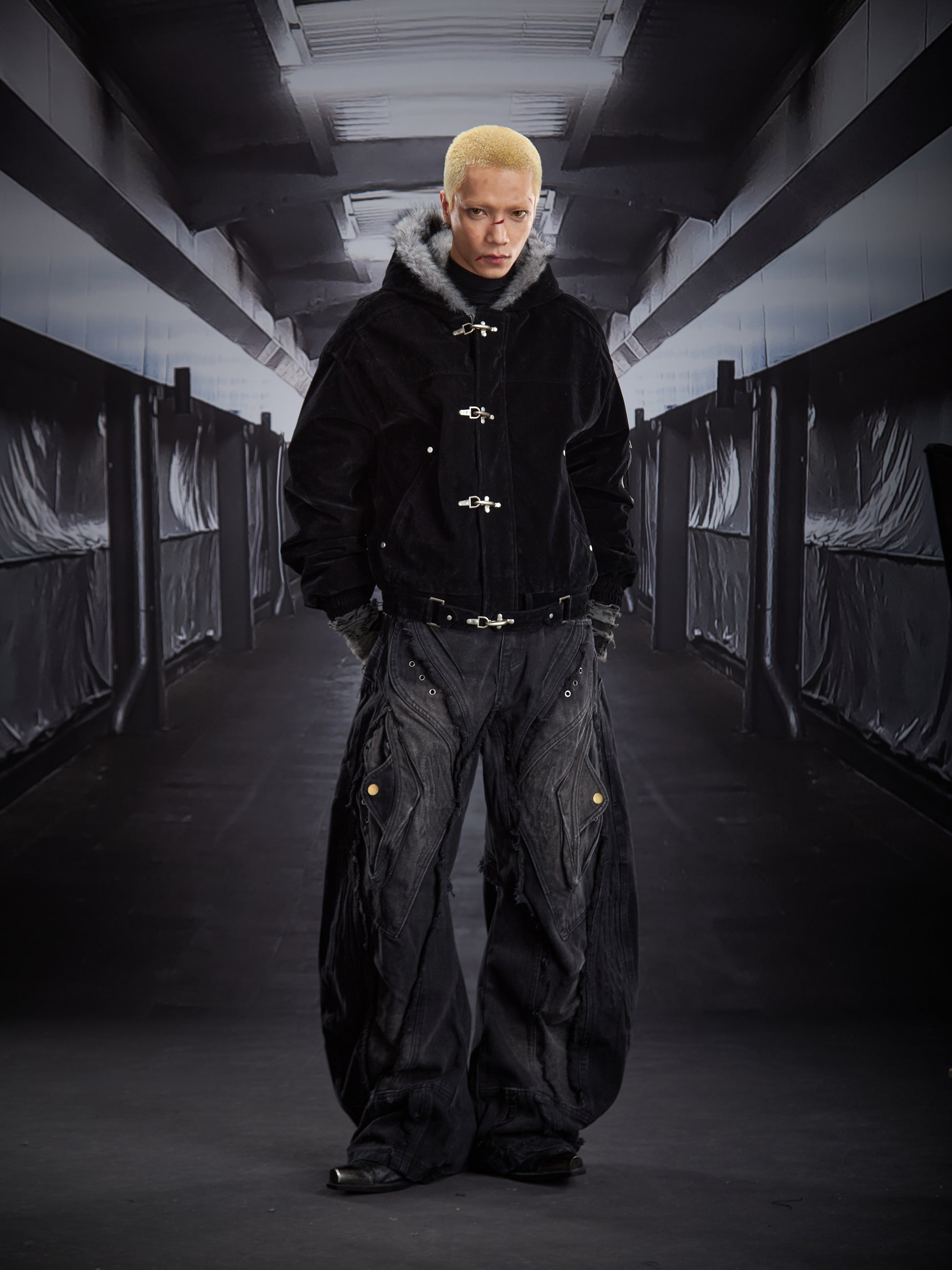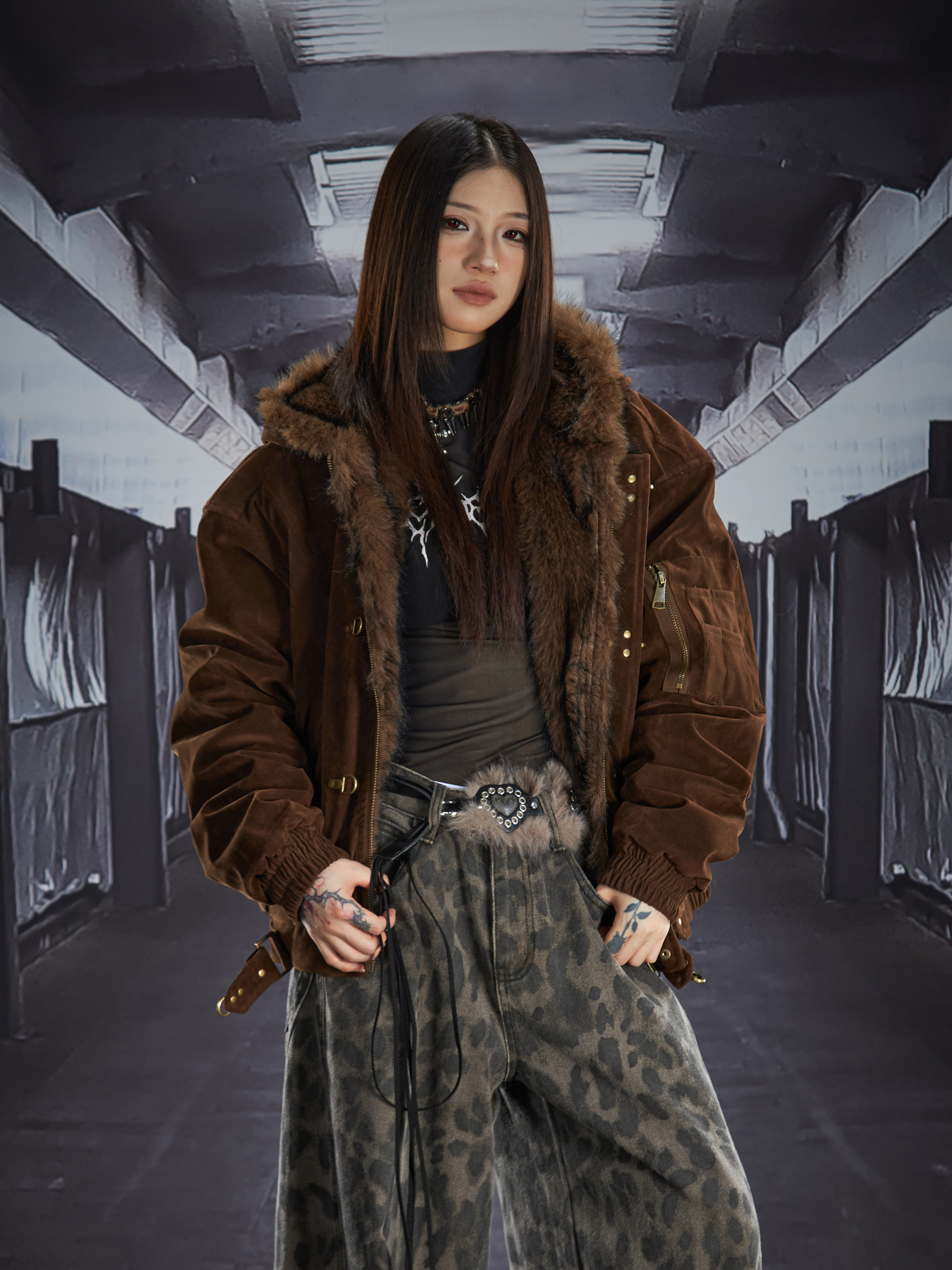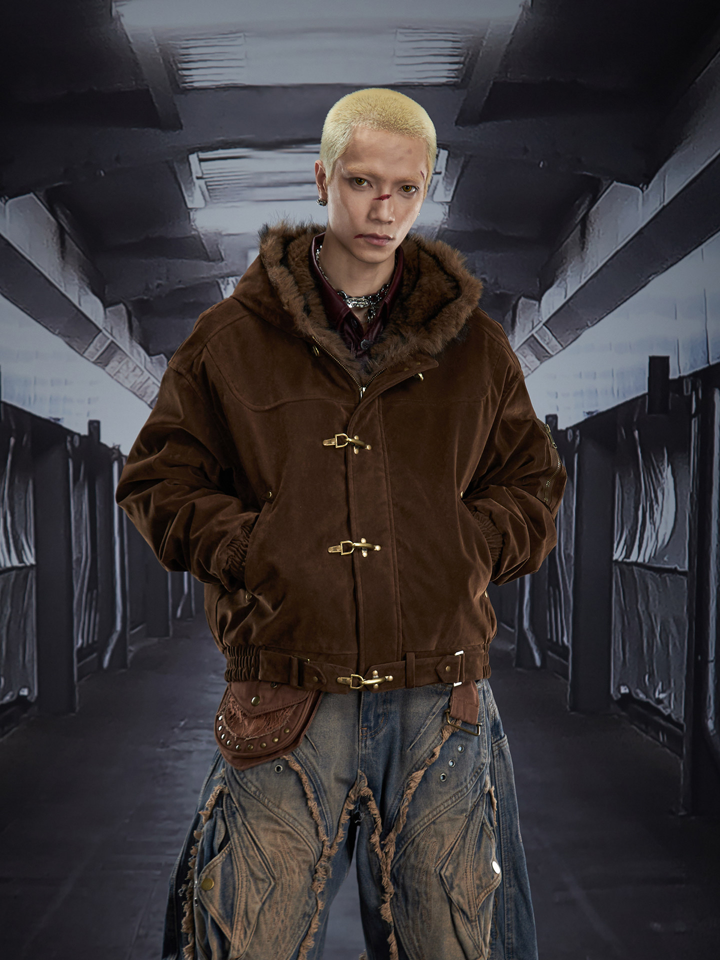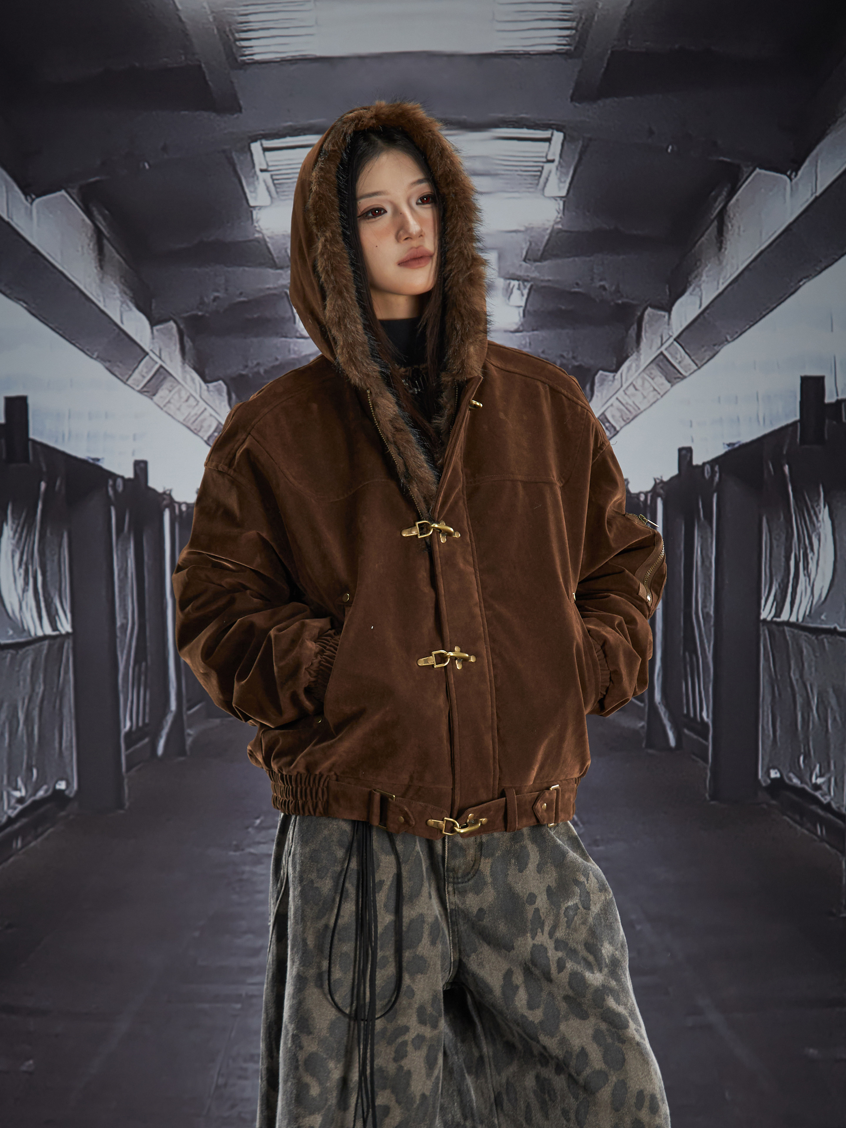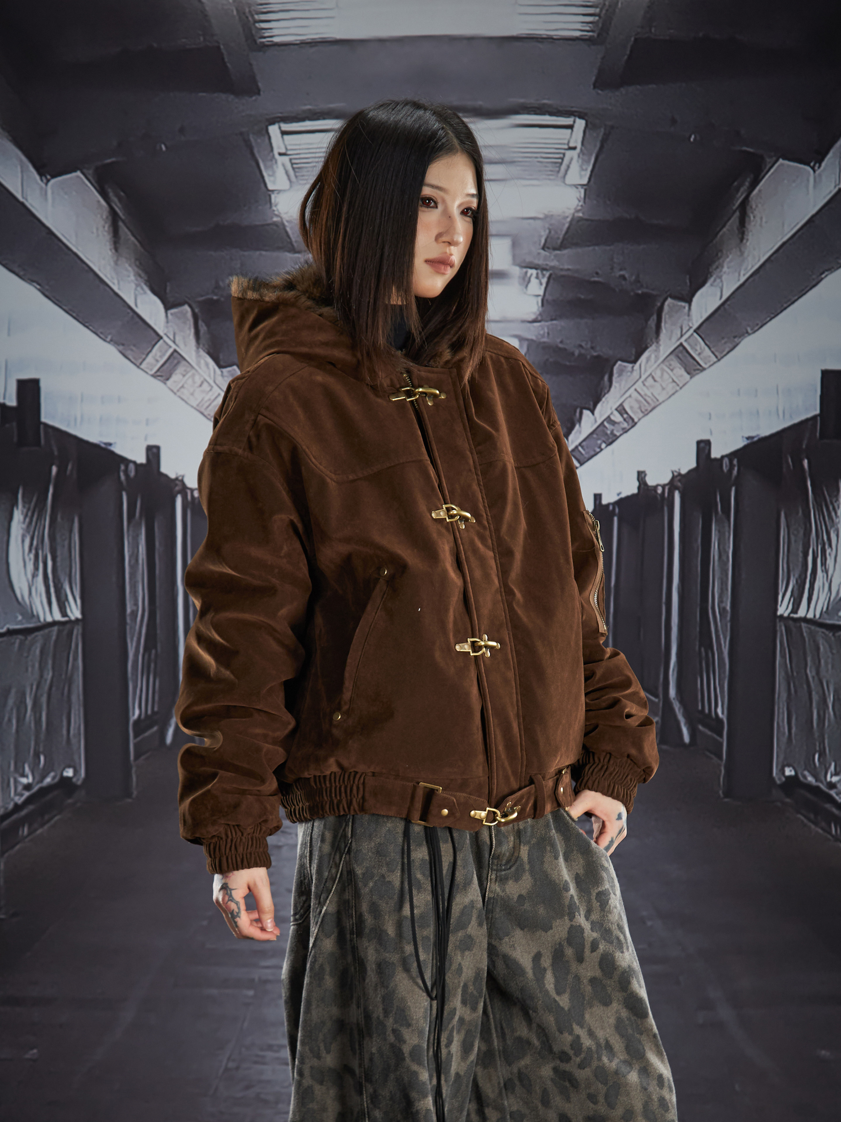 Fake Fur Lining Hooded Metal Buckle Padded Jacket WN22807