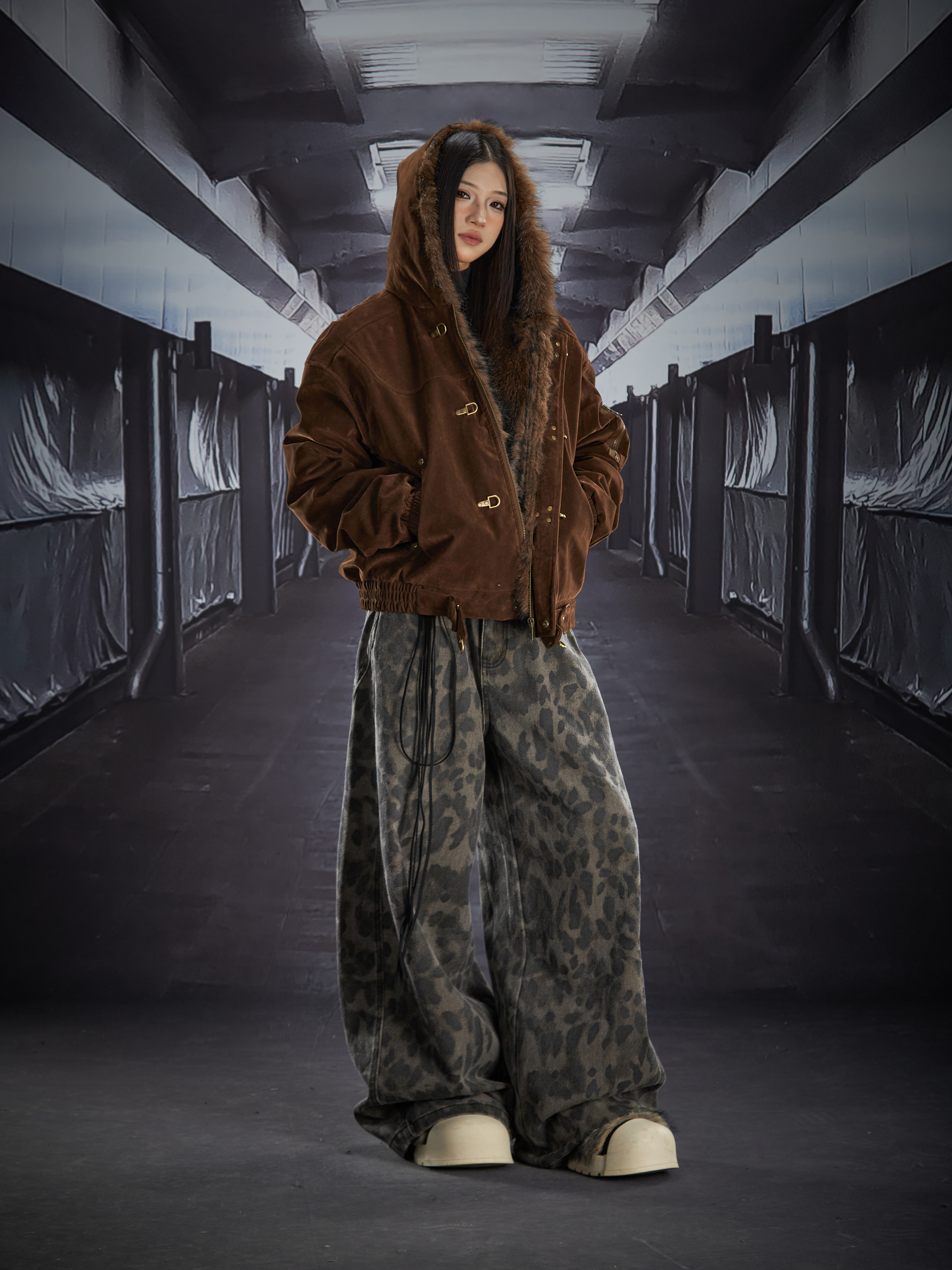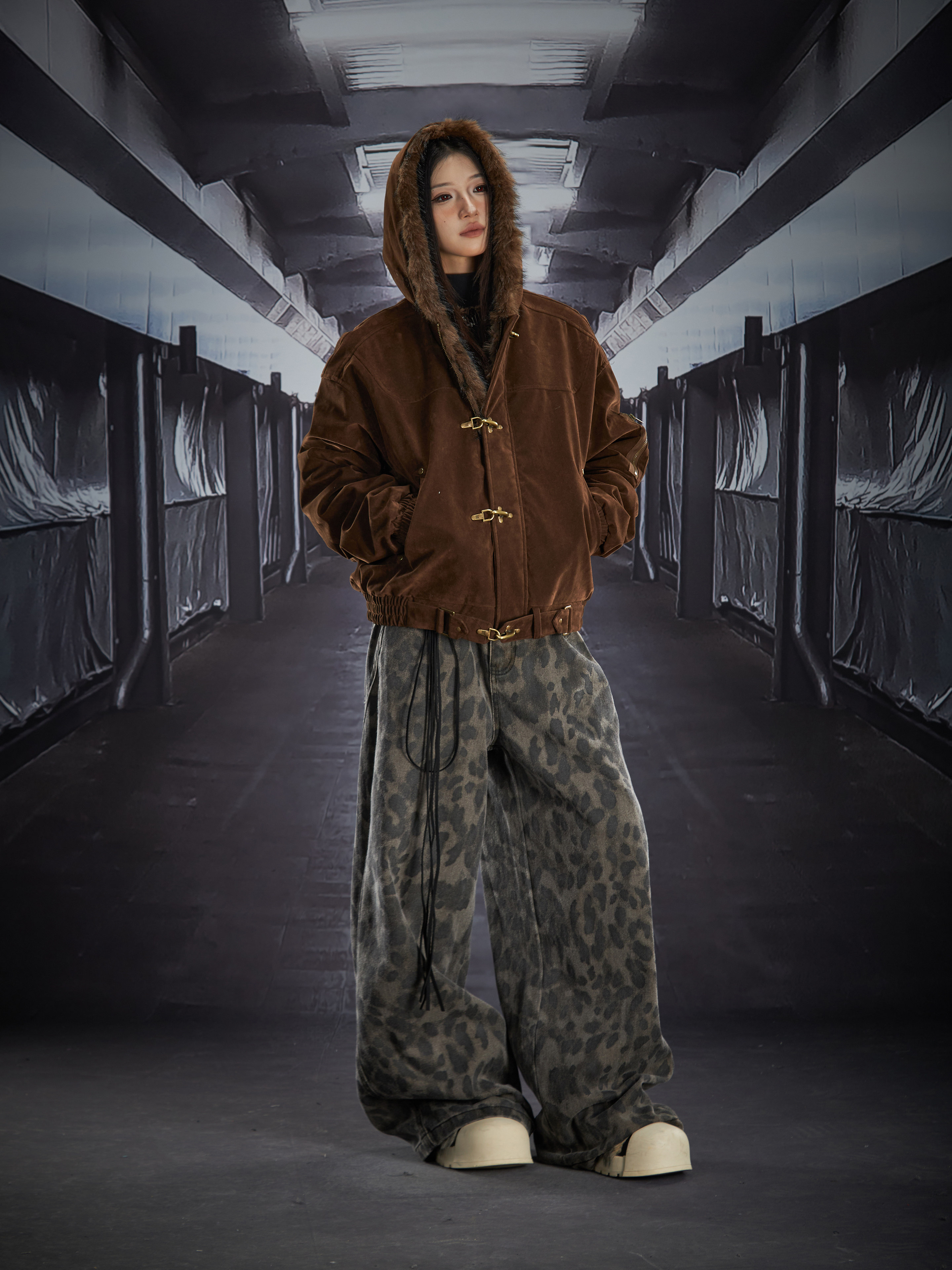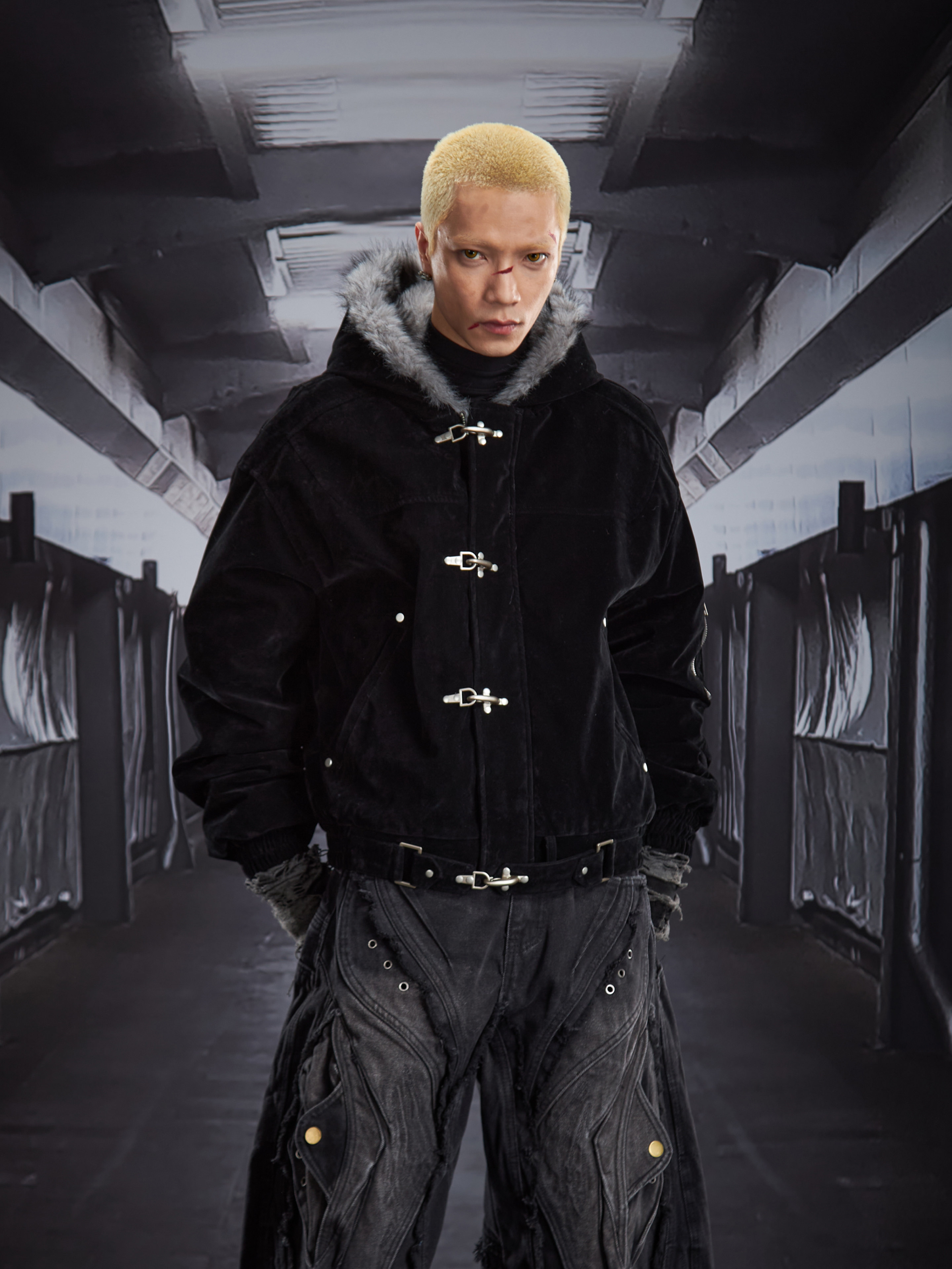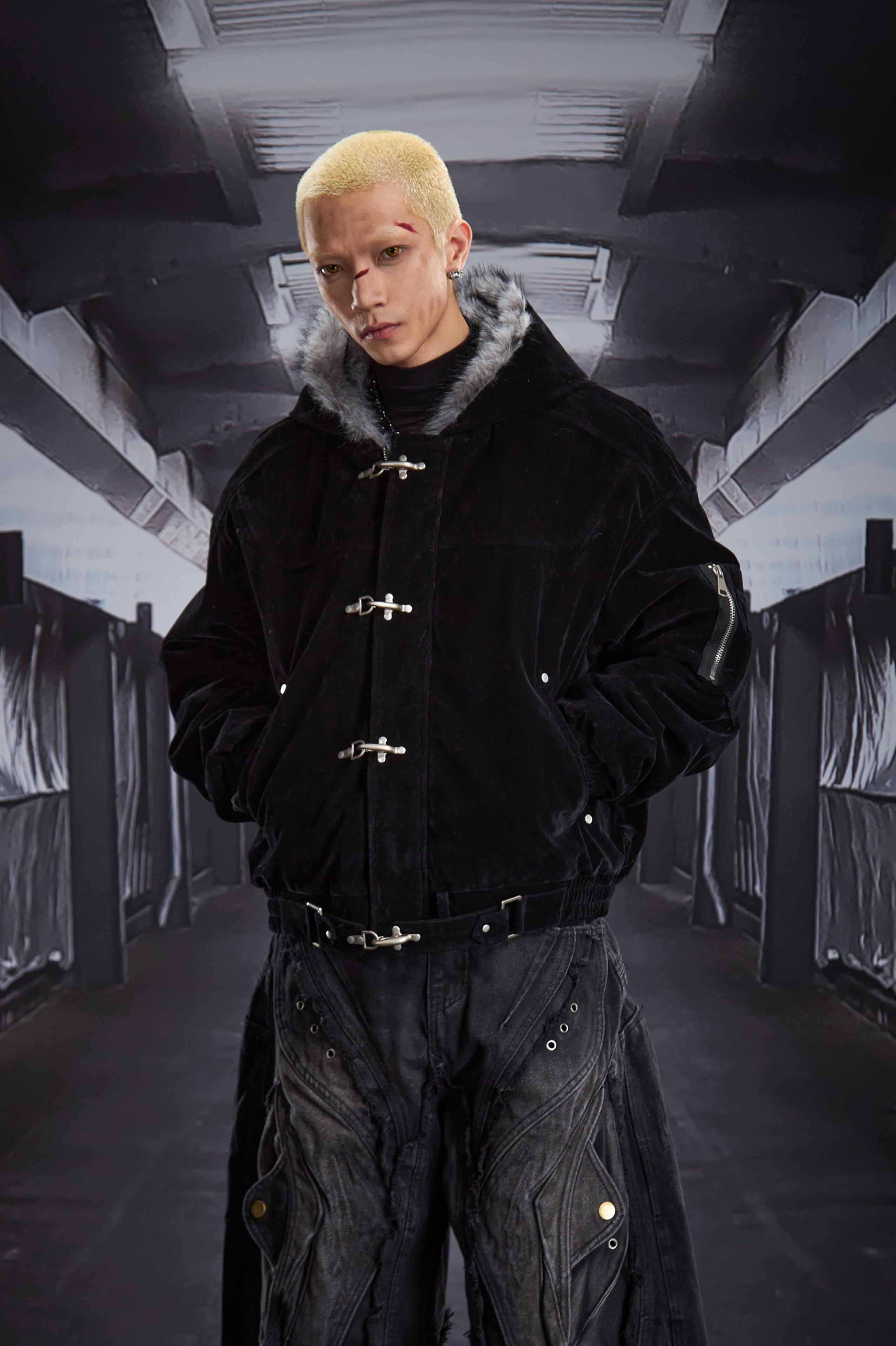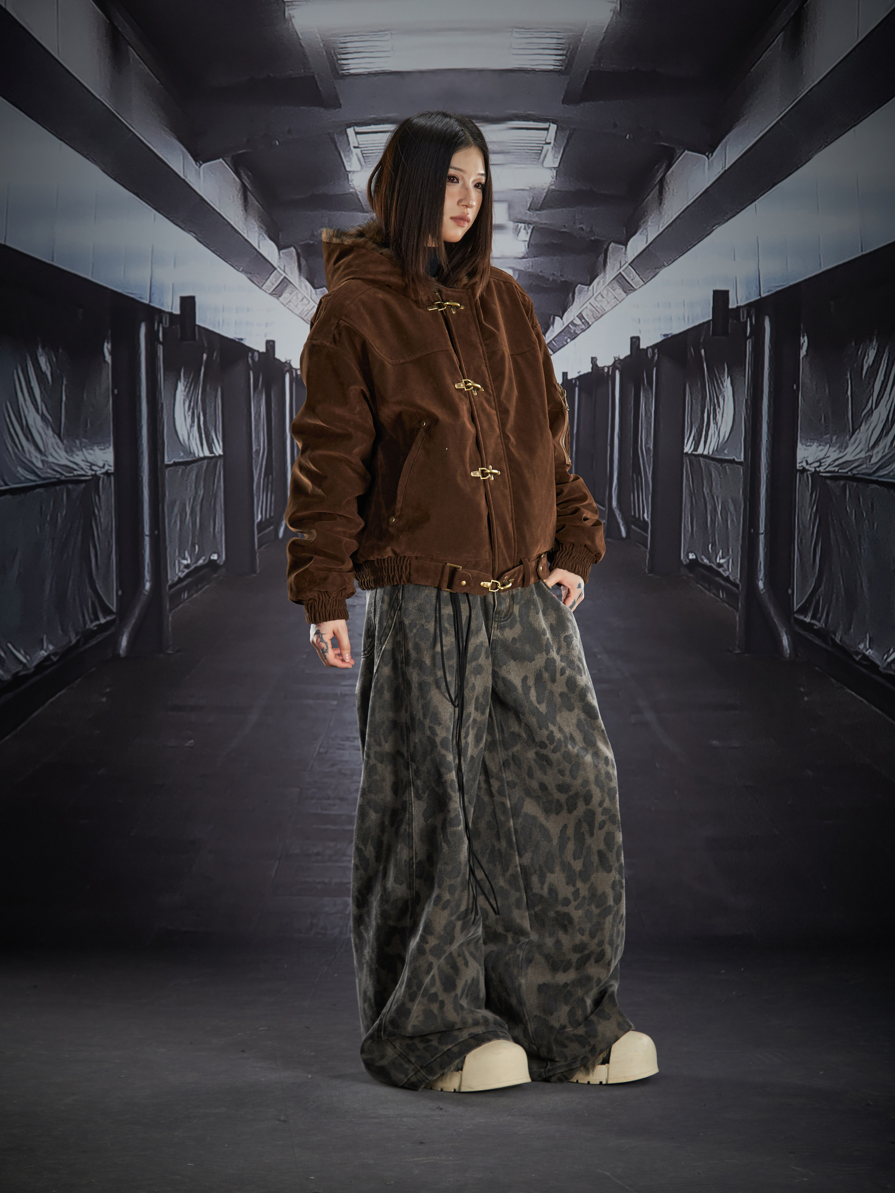Fake Fur Lining Hooded Metal Buckle Padded Jacket WN22807