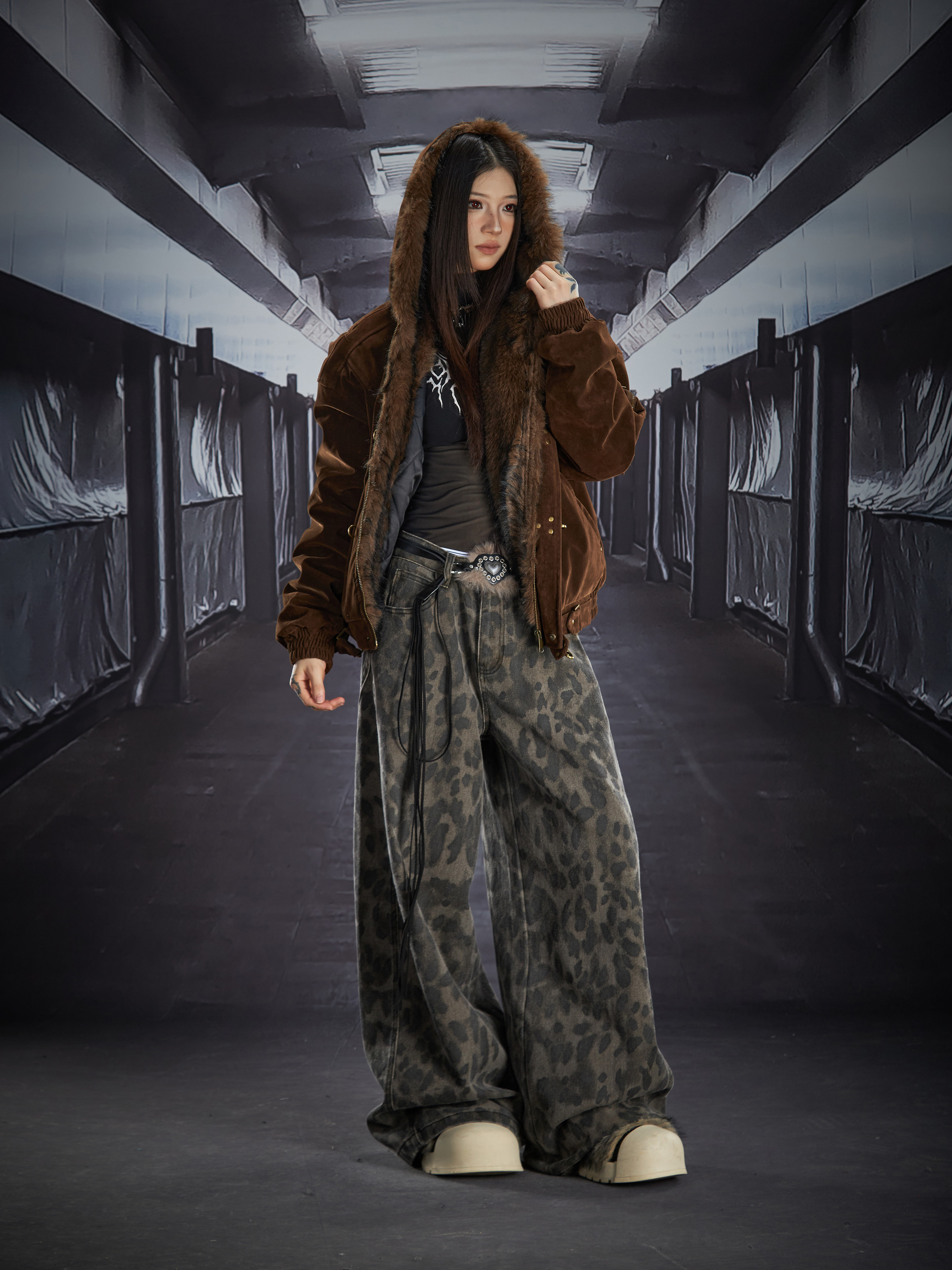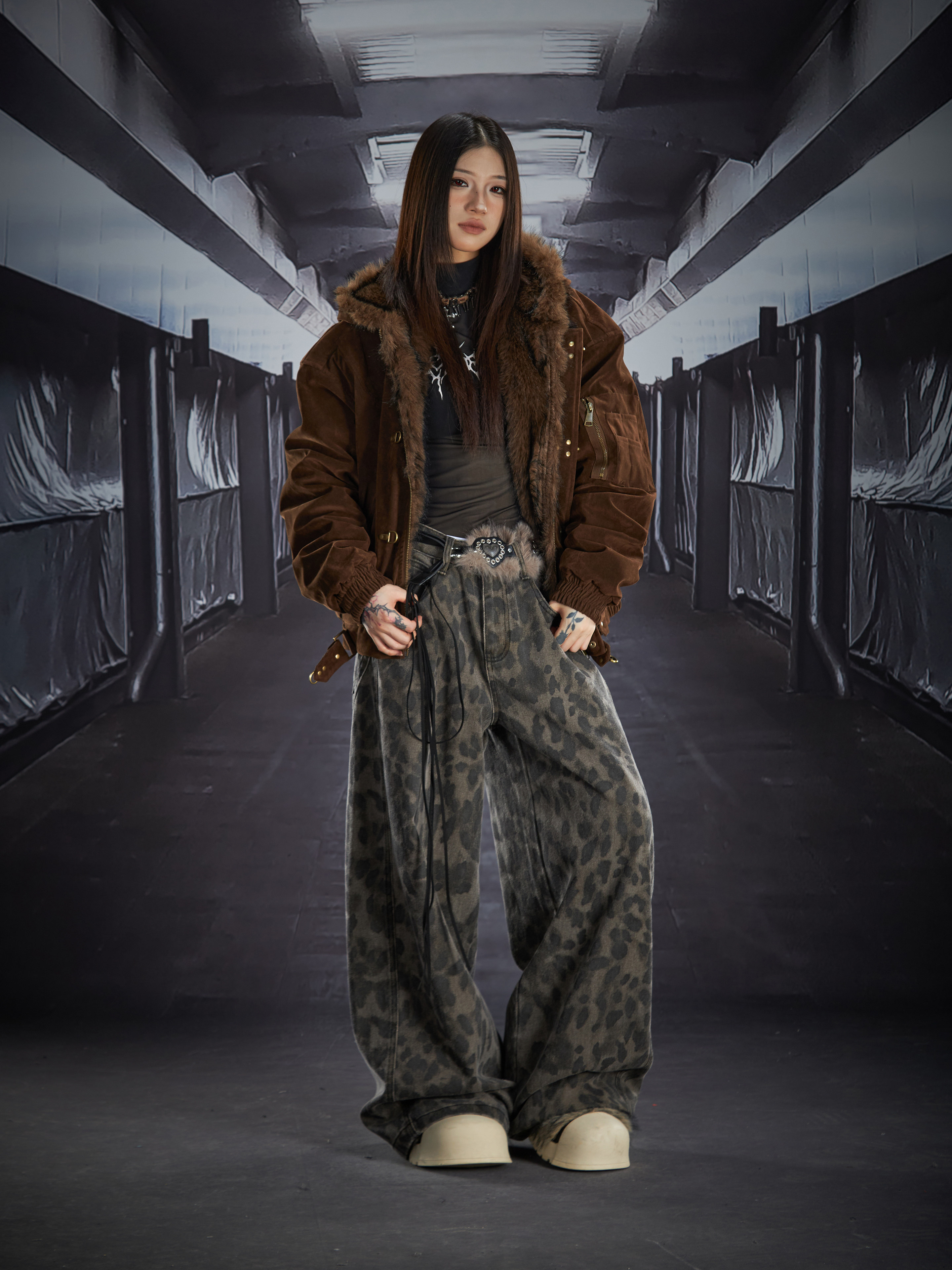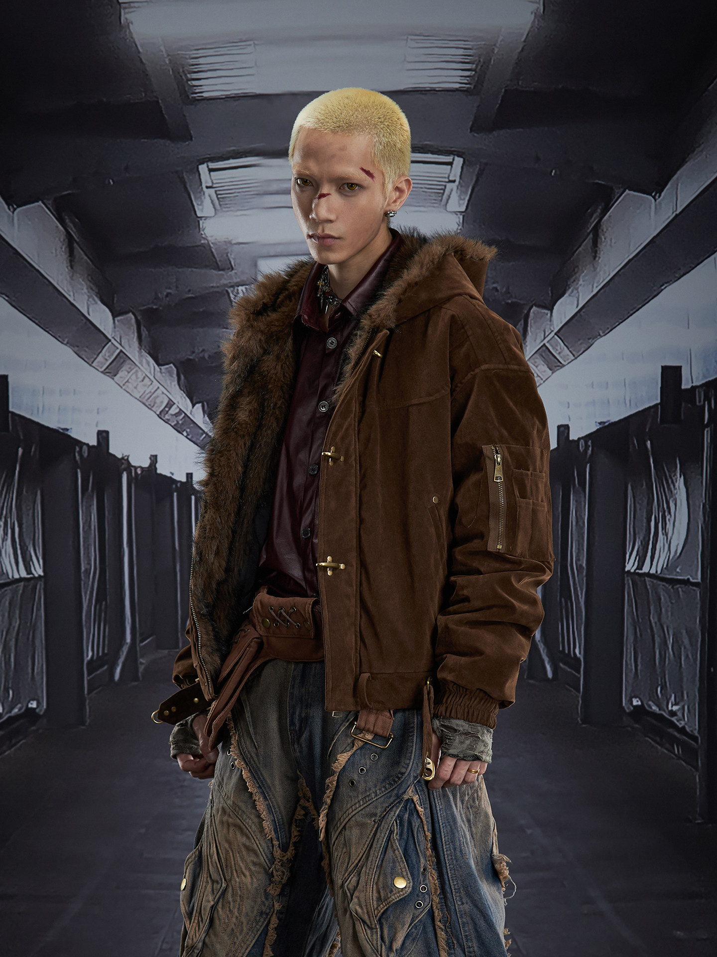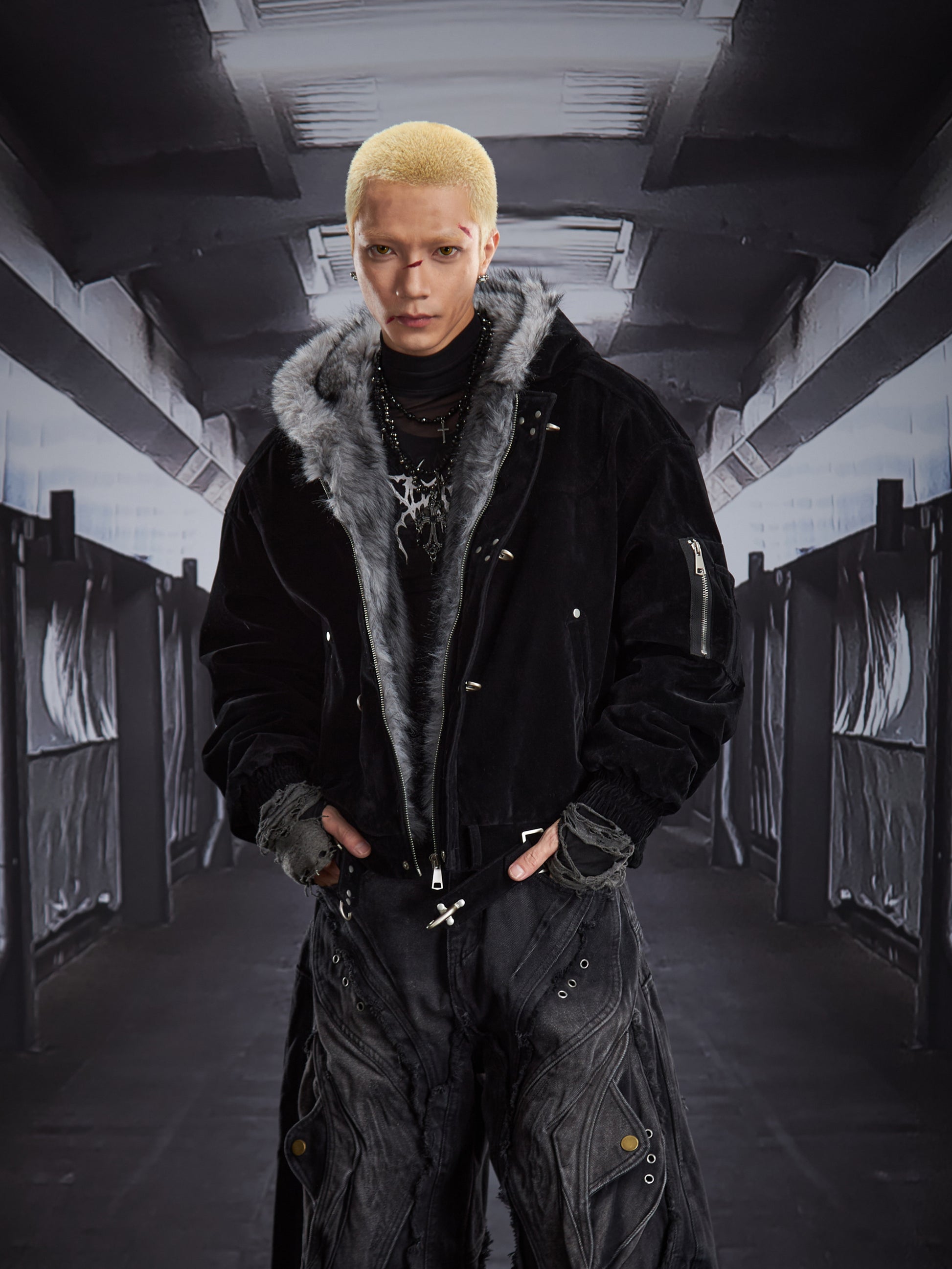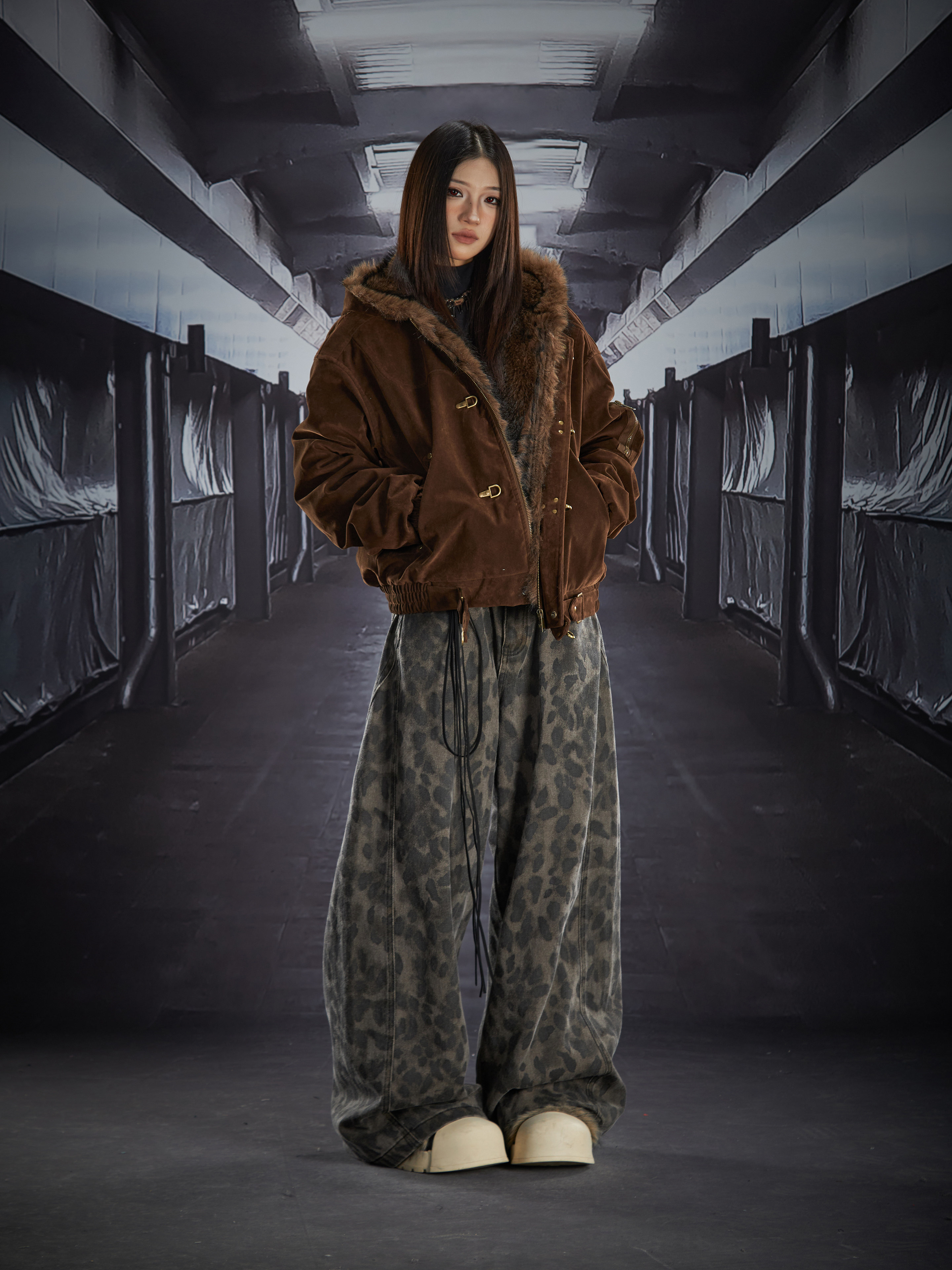 Fake Fur Lining Hooded Metal Buckle Padded Jacket WN22807