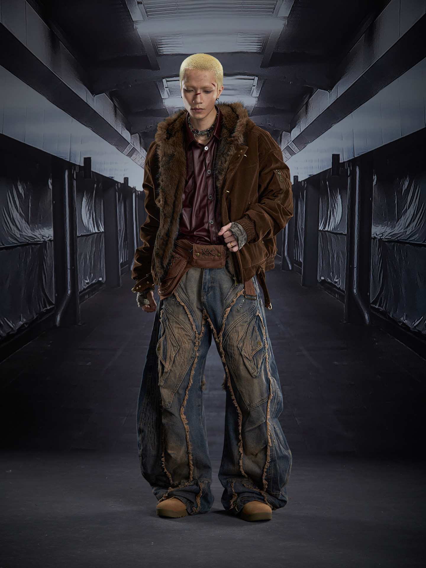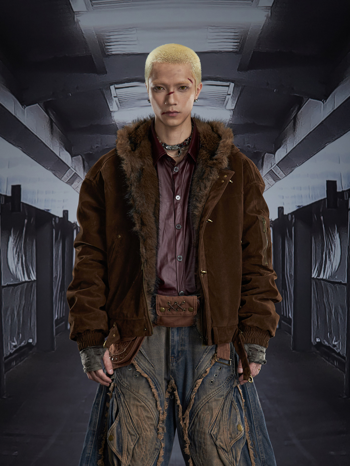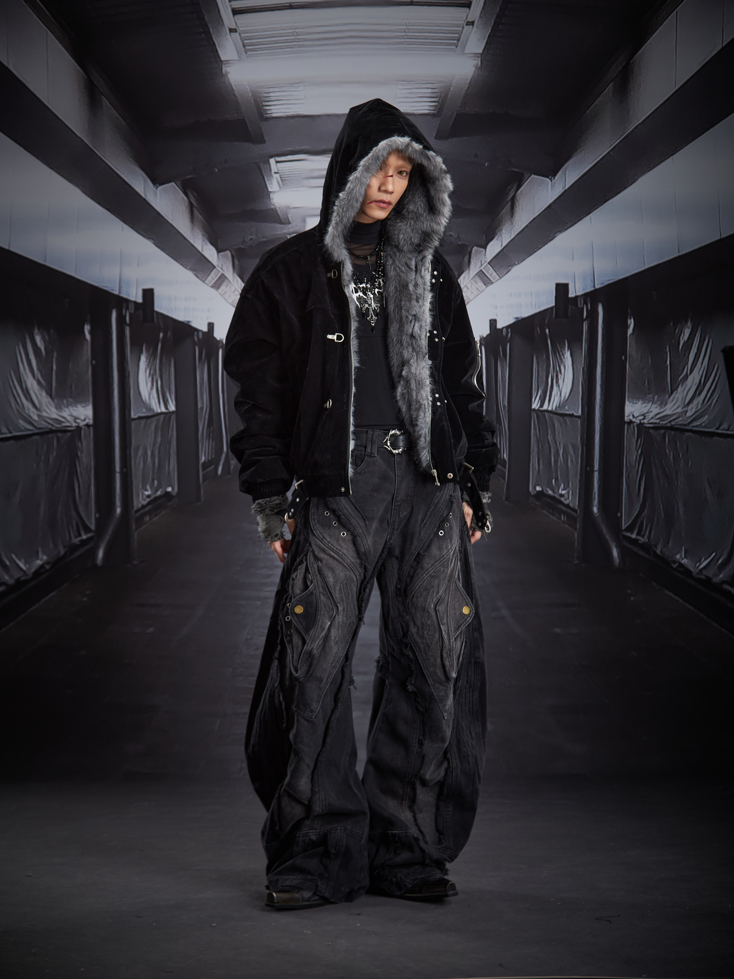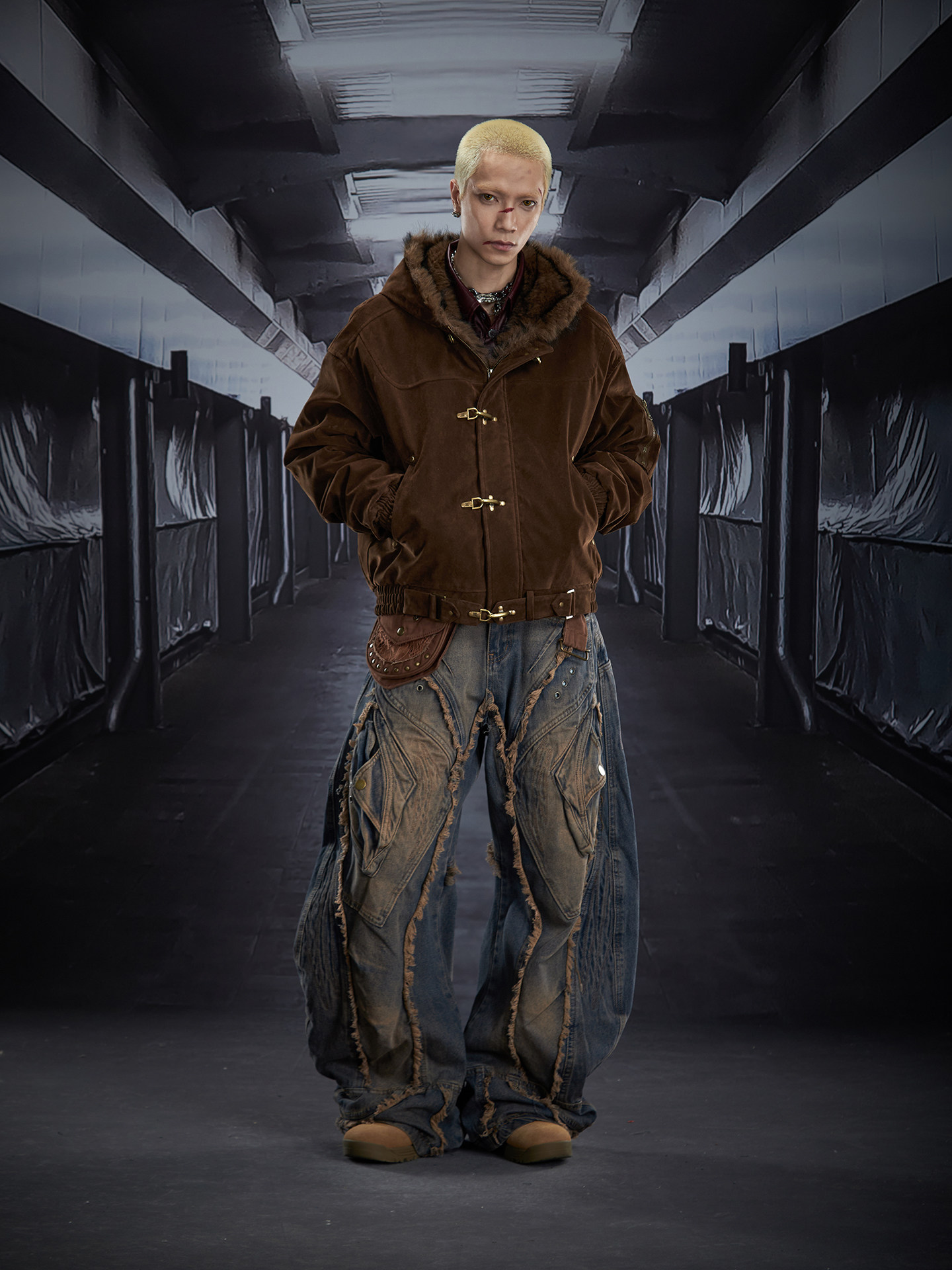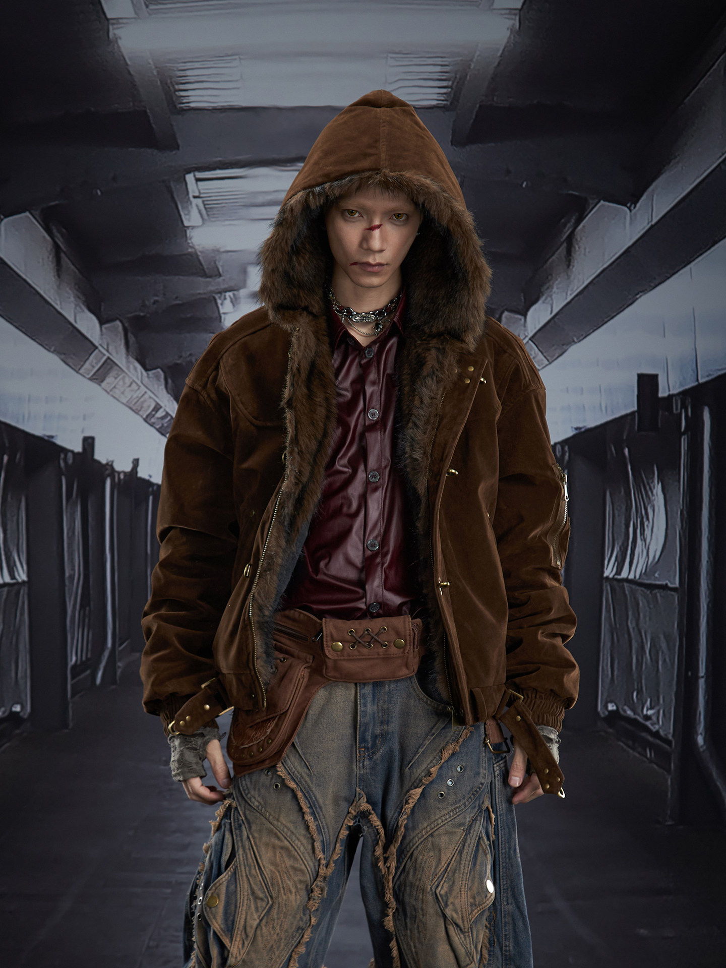 Fake Fur Lining Hooded Metal Buckle Padded Jacket WN22807