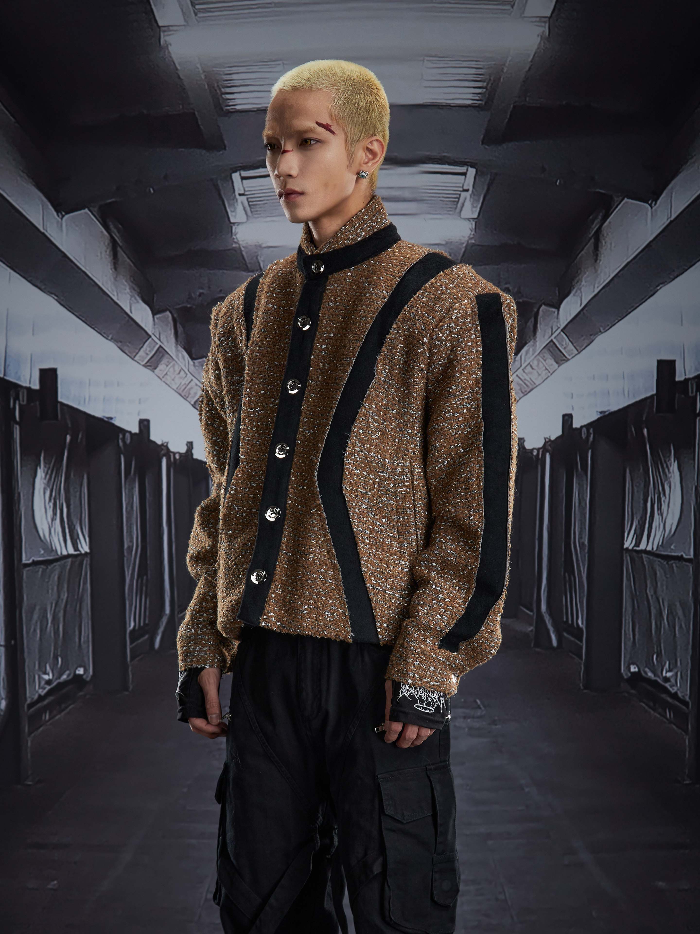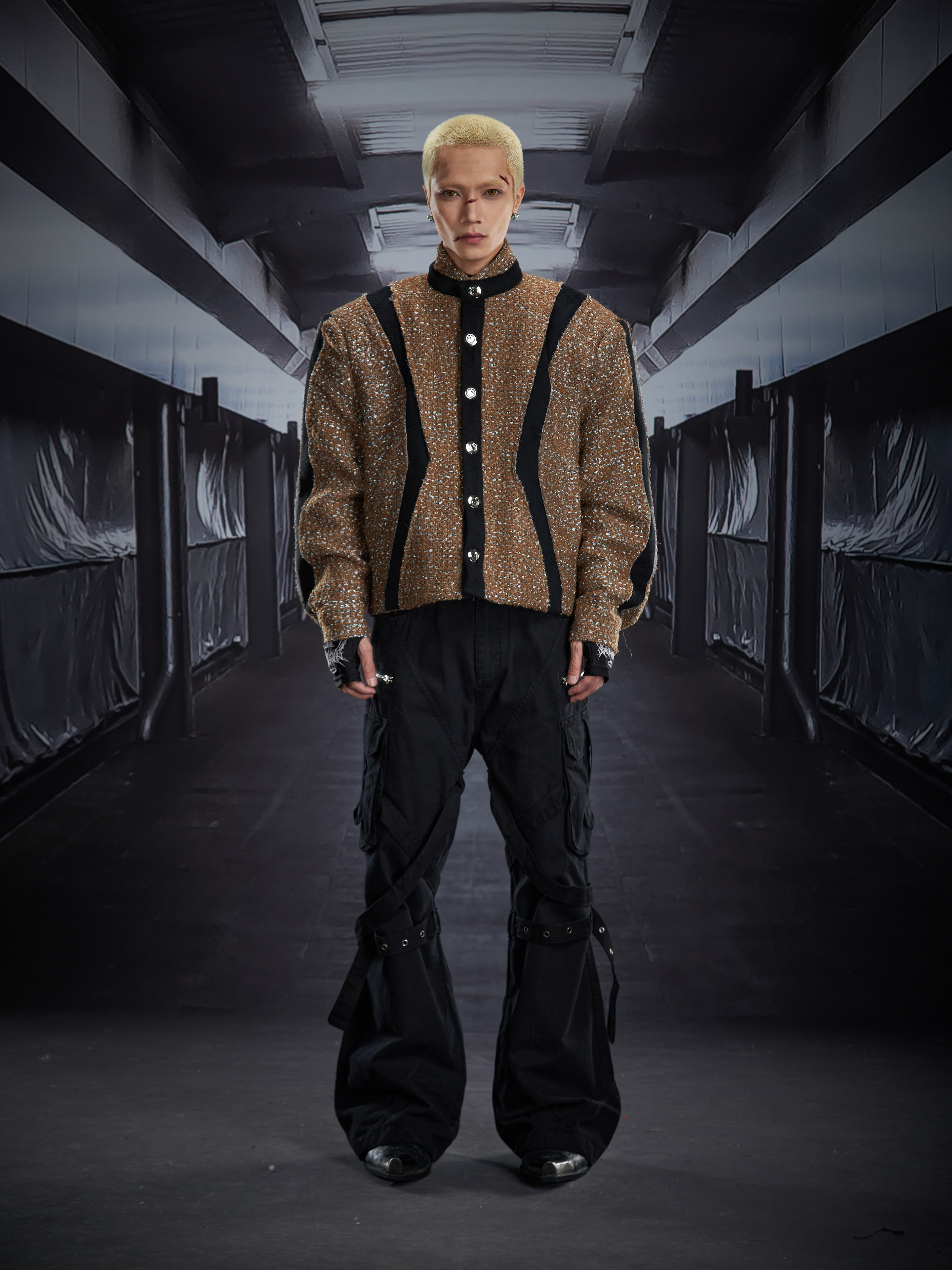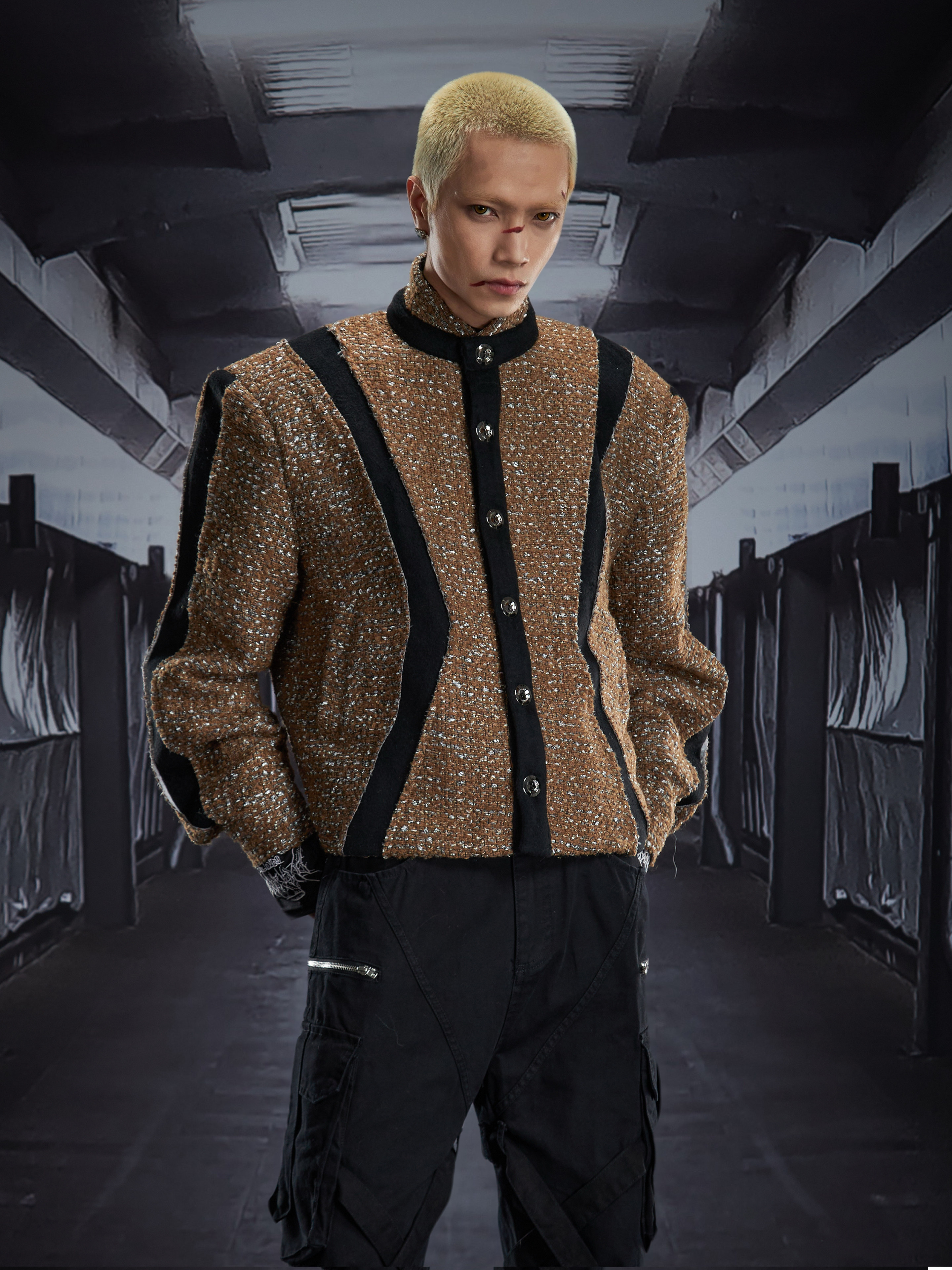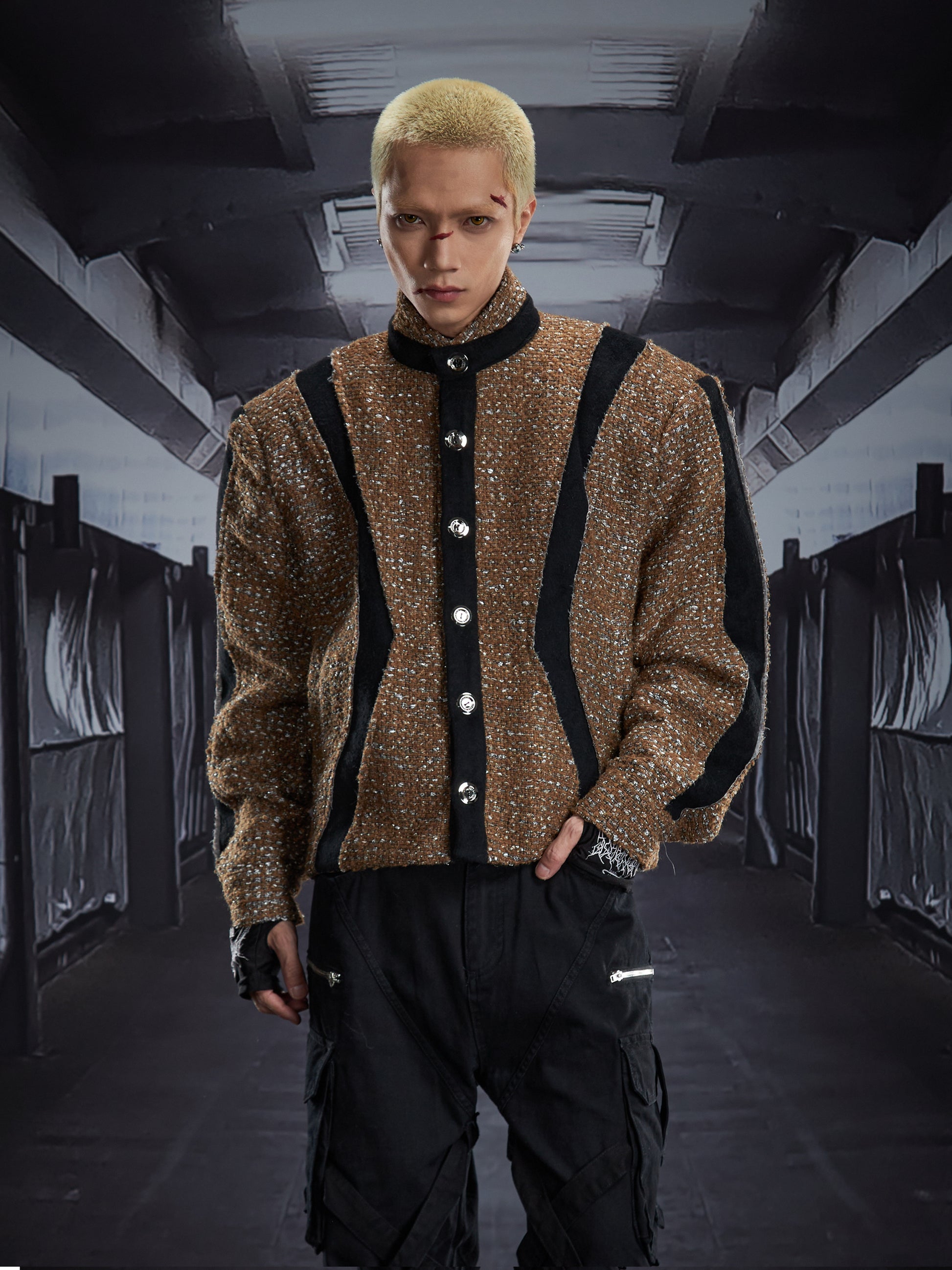 Contrast Panel Button High-Neck Padded Jacket WN22823