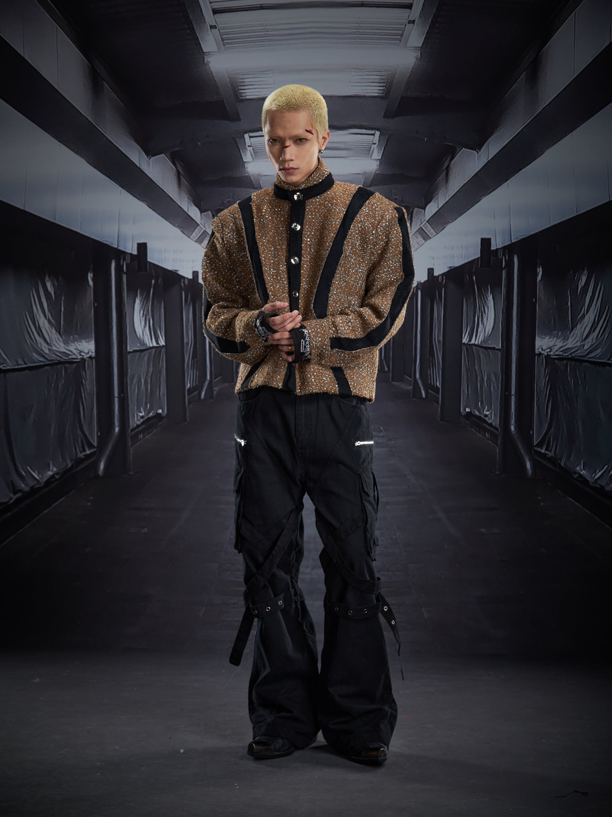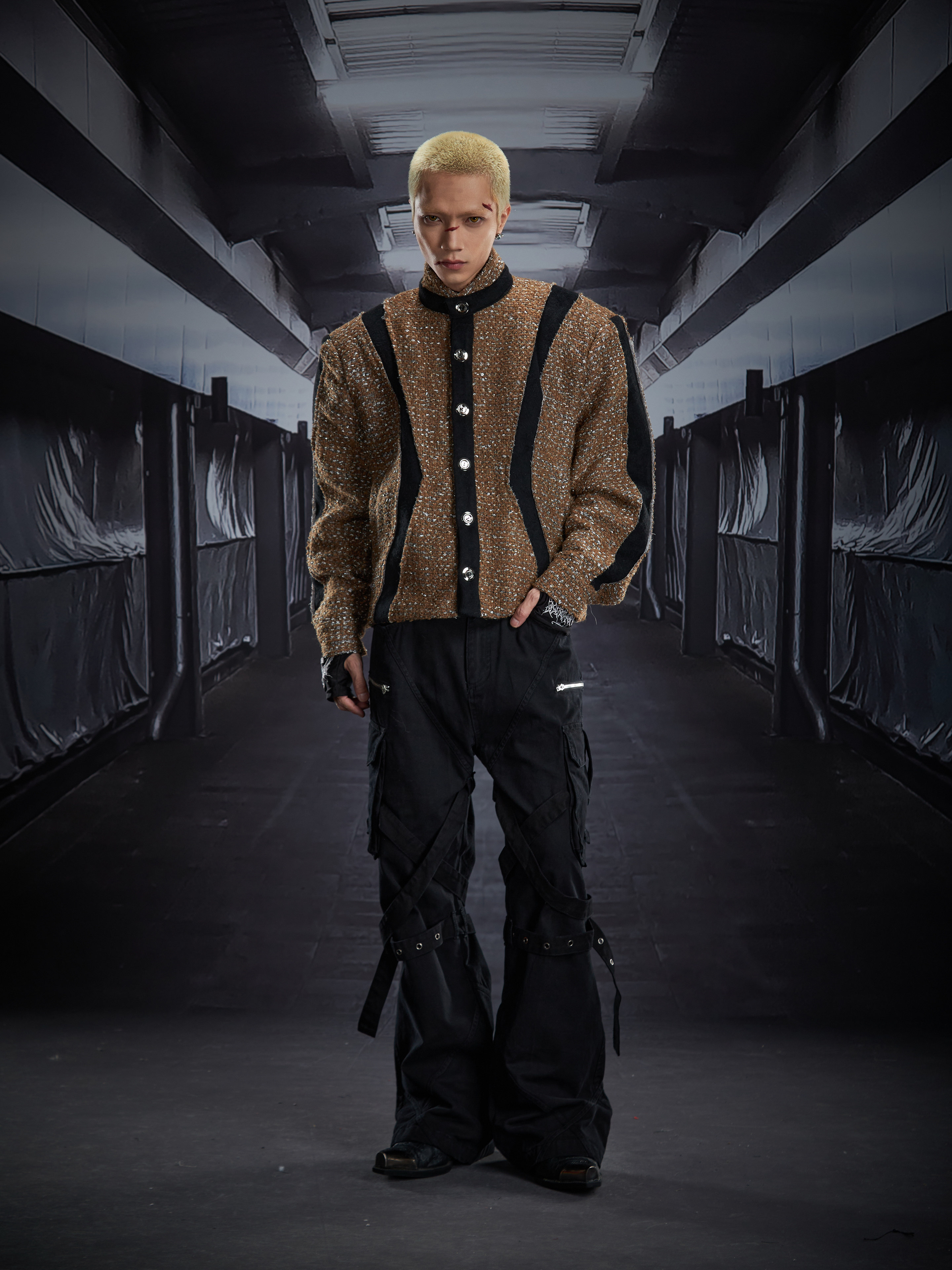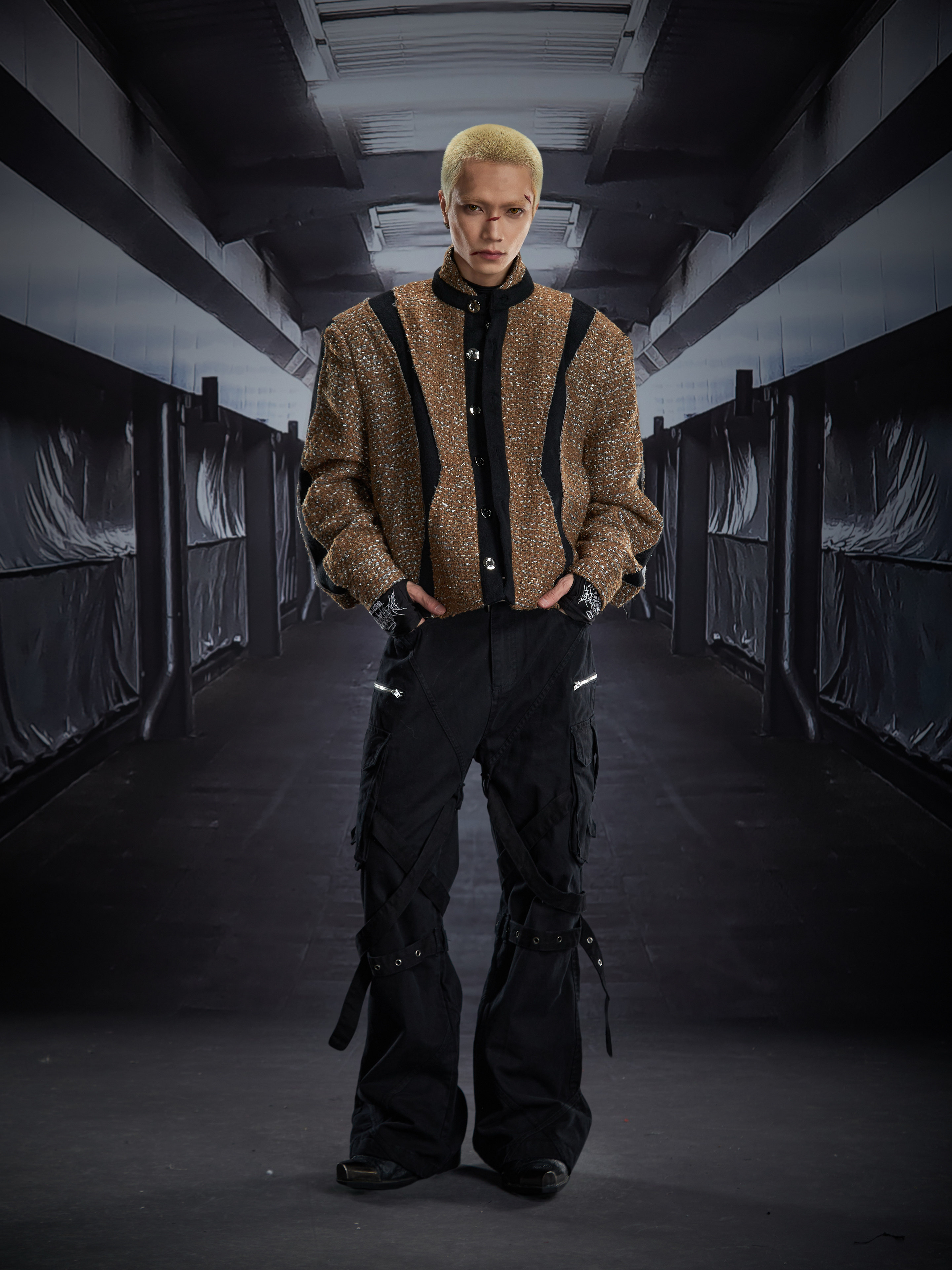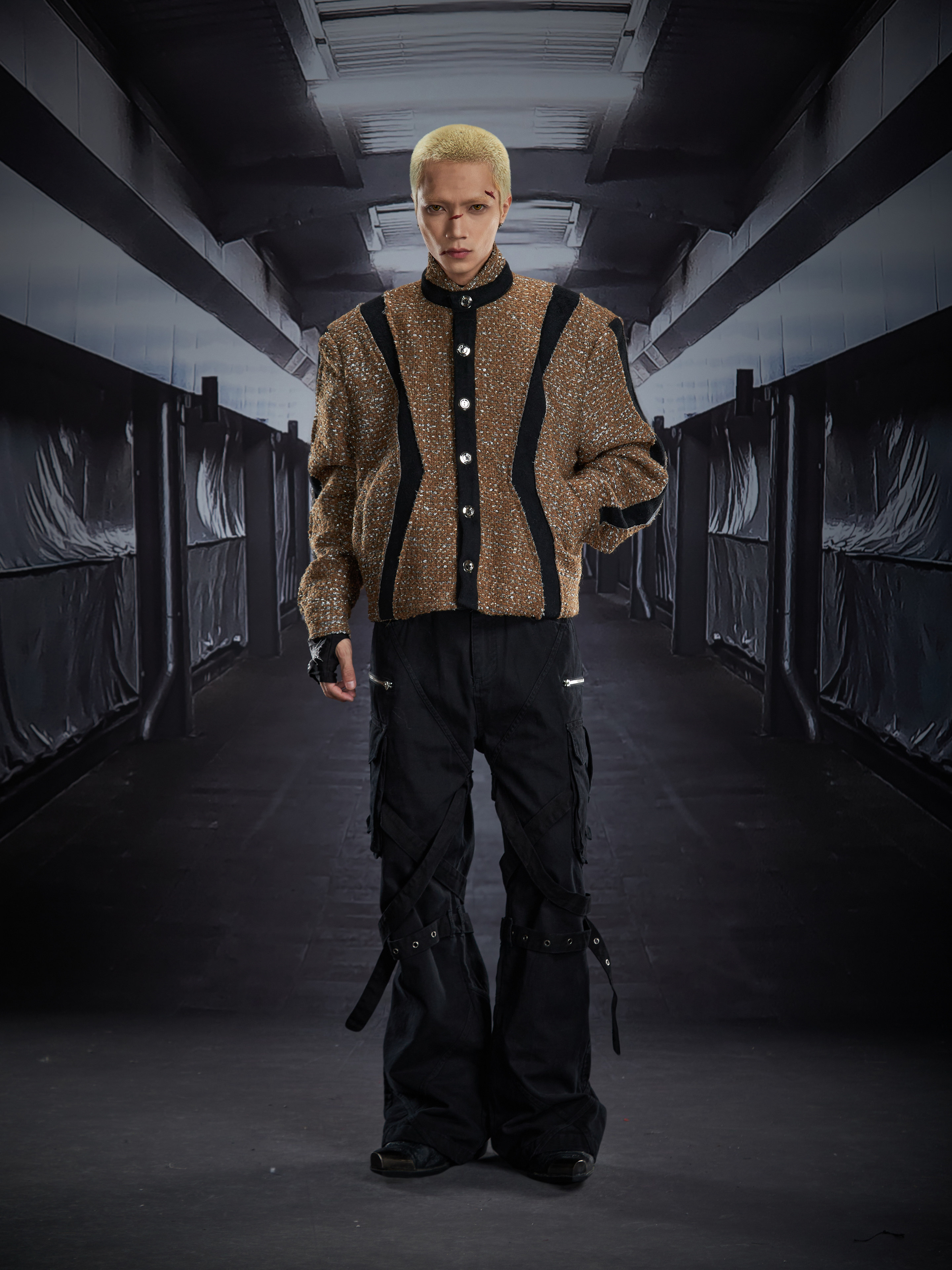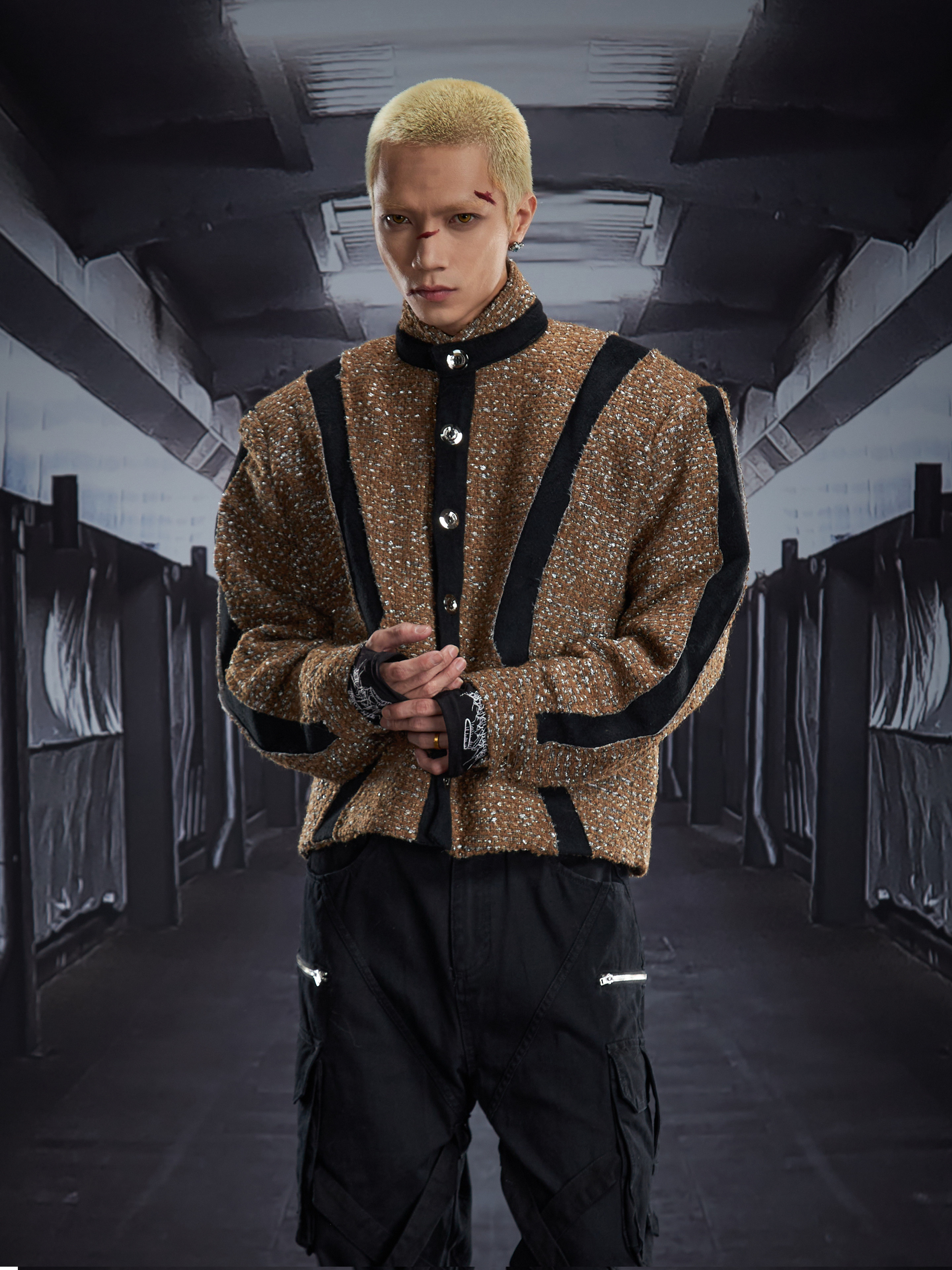 Contrast Panel Button High-Neck Padded Jacket WN22823