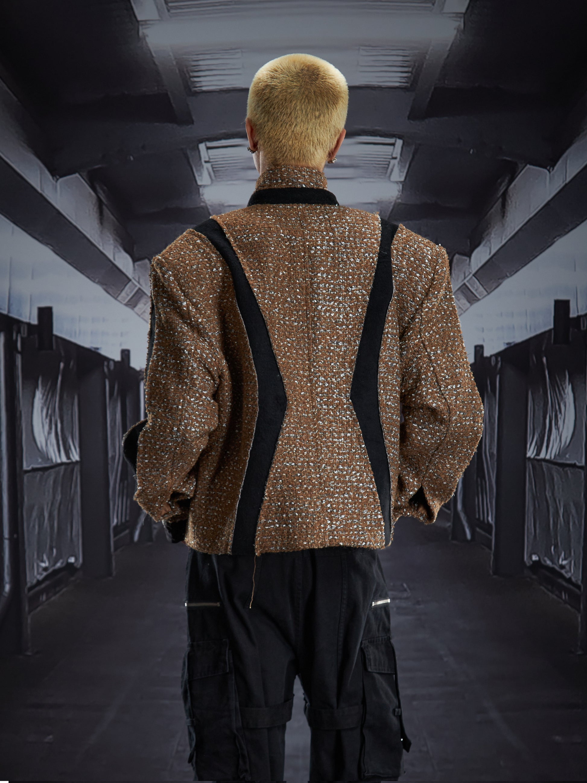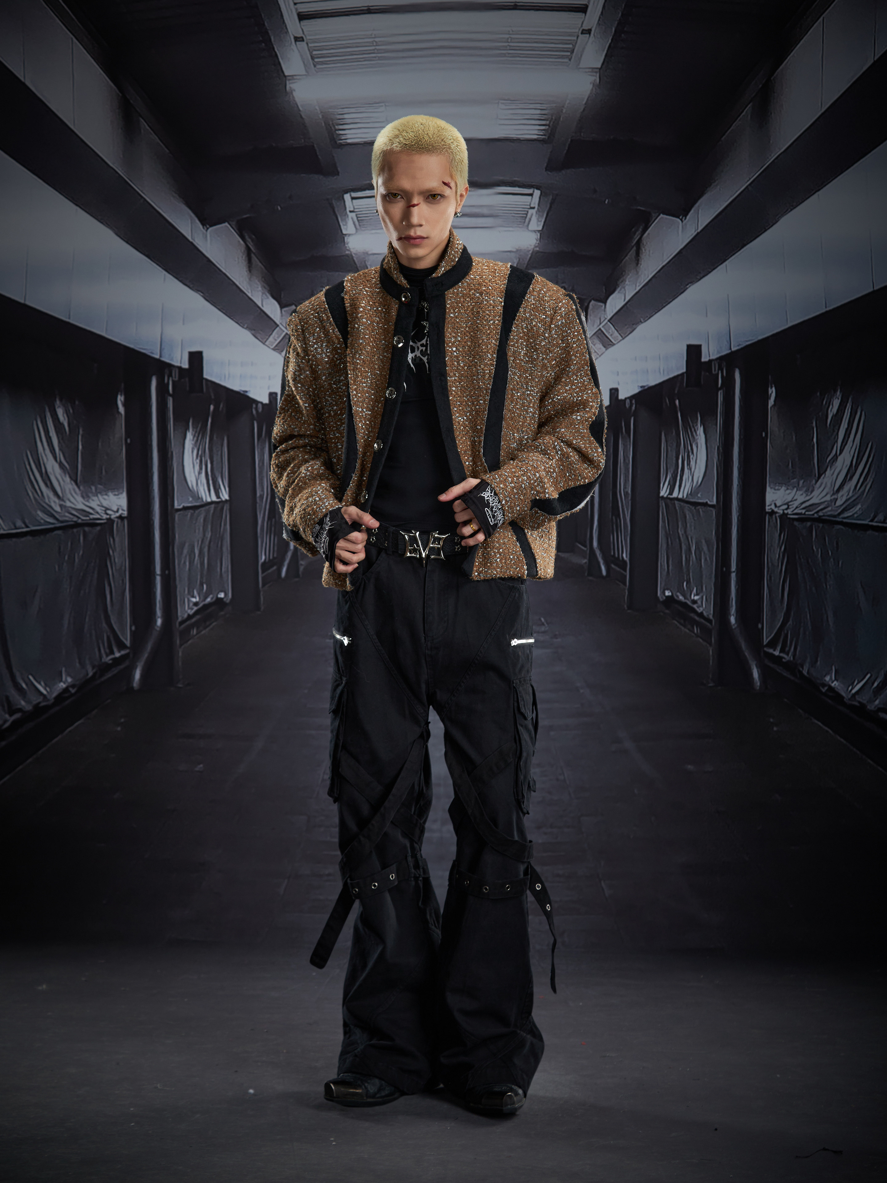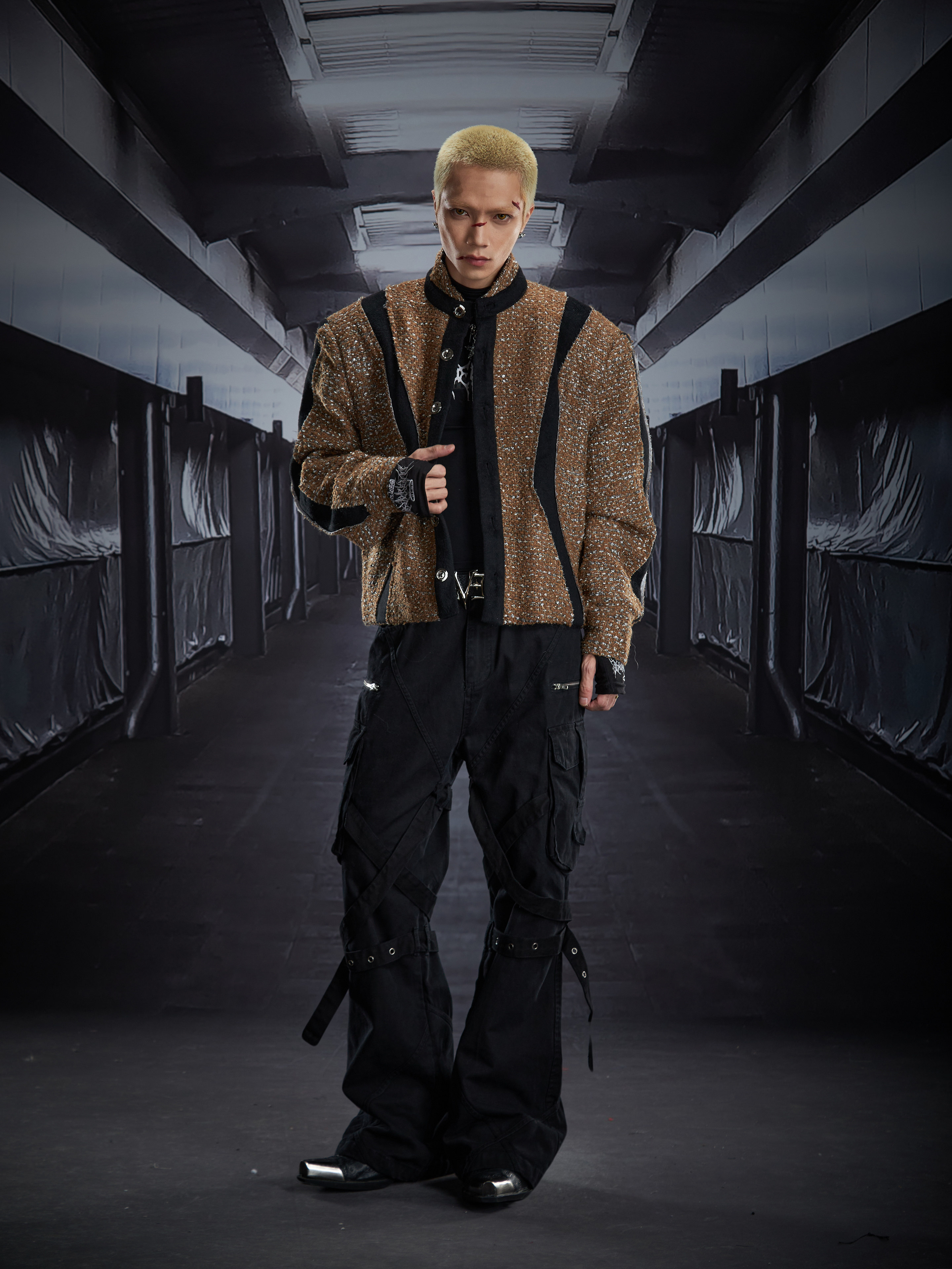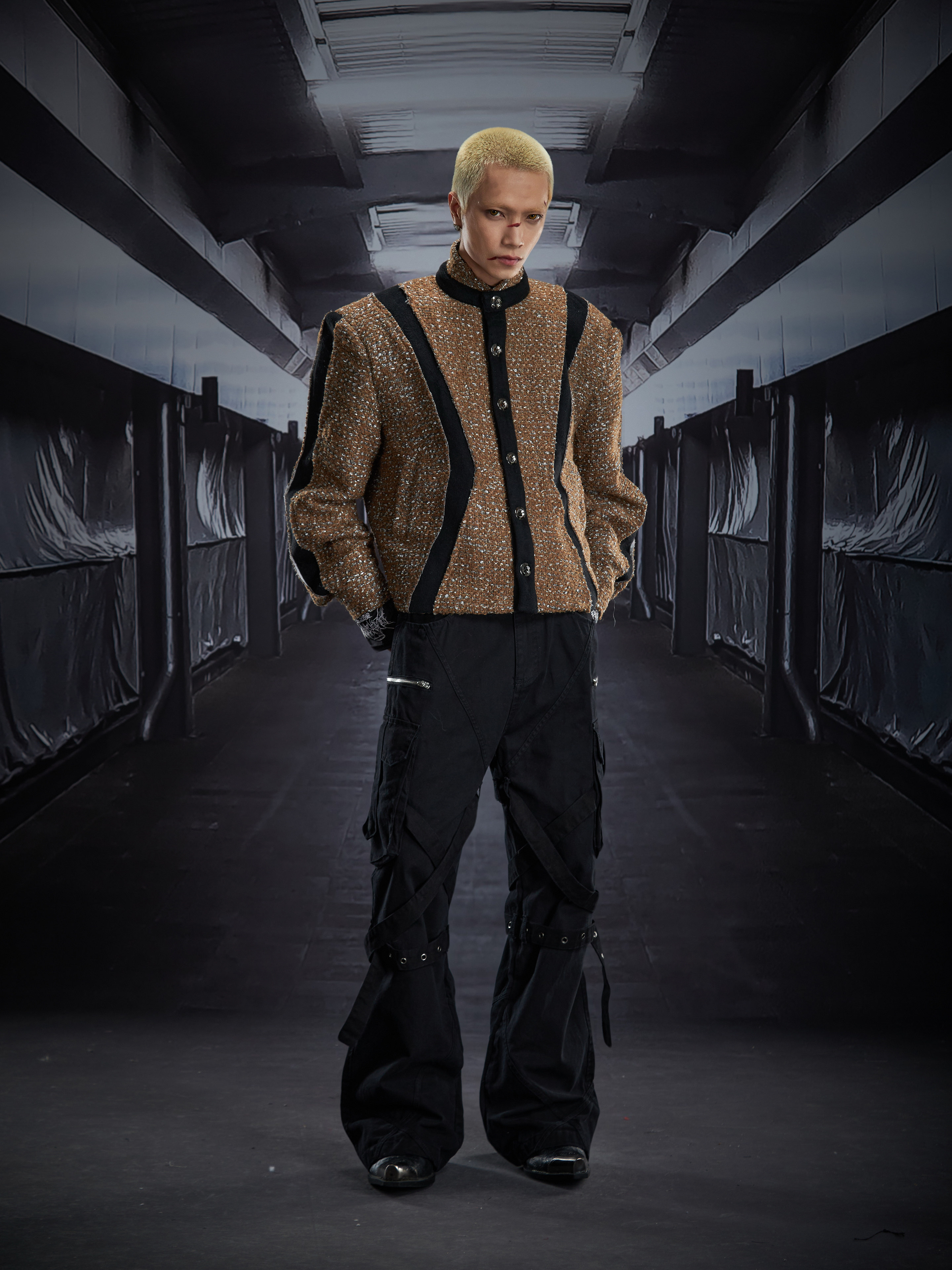 Contrast Panel Button High-Neck Padded Jacket WN22823