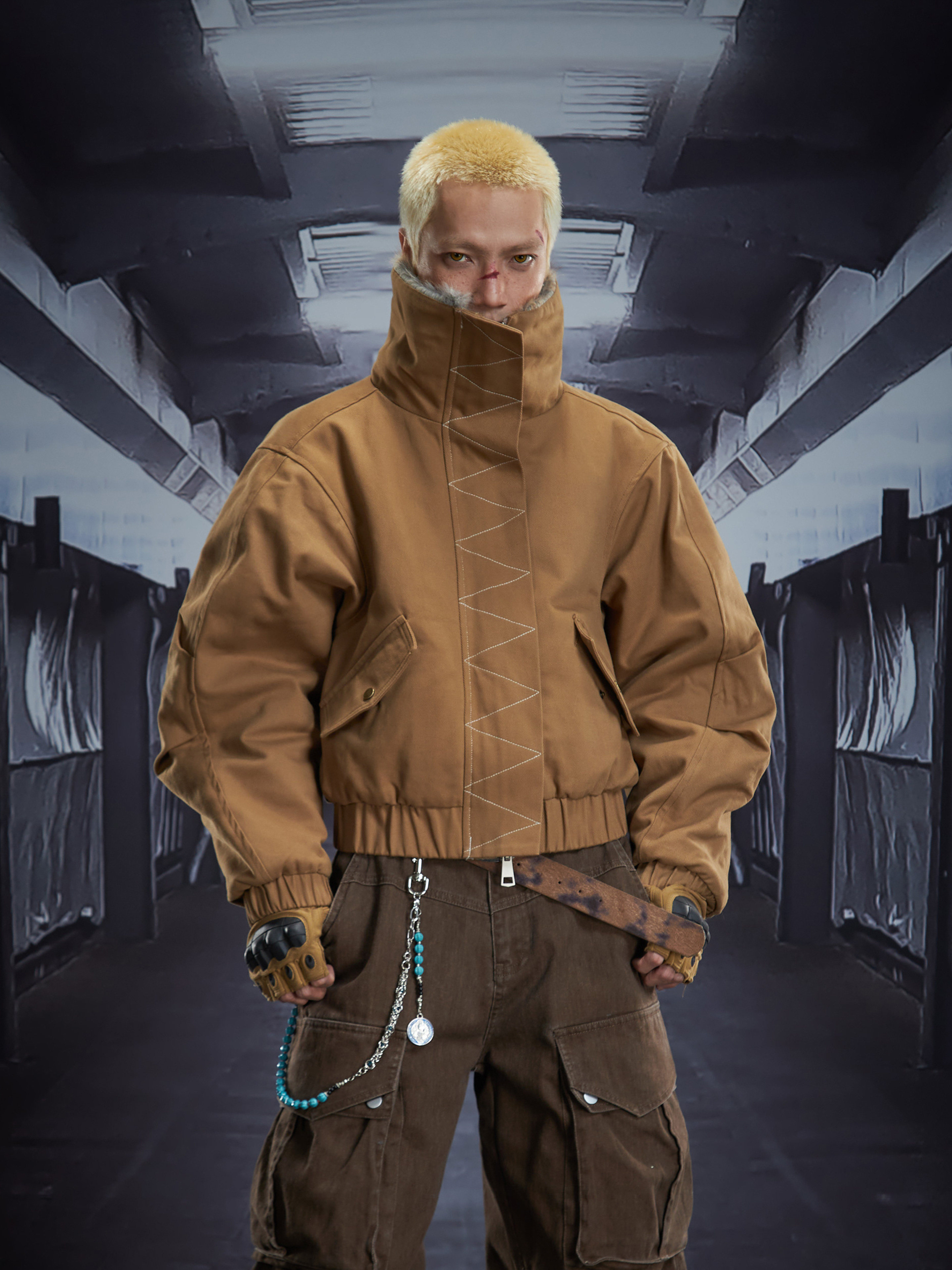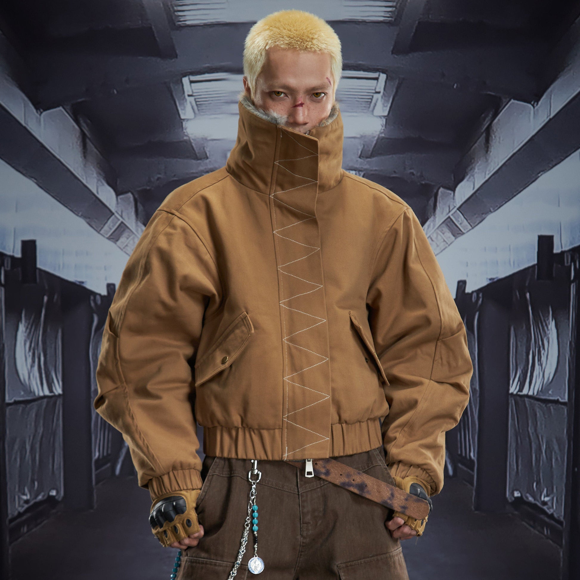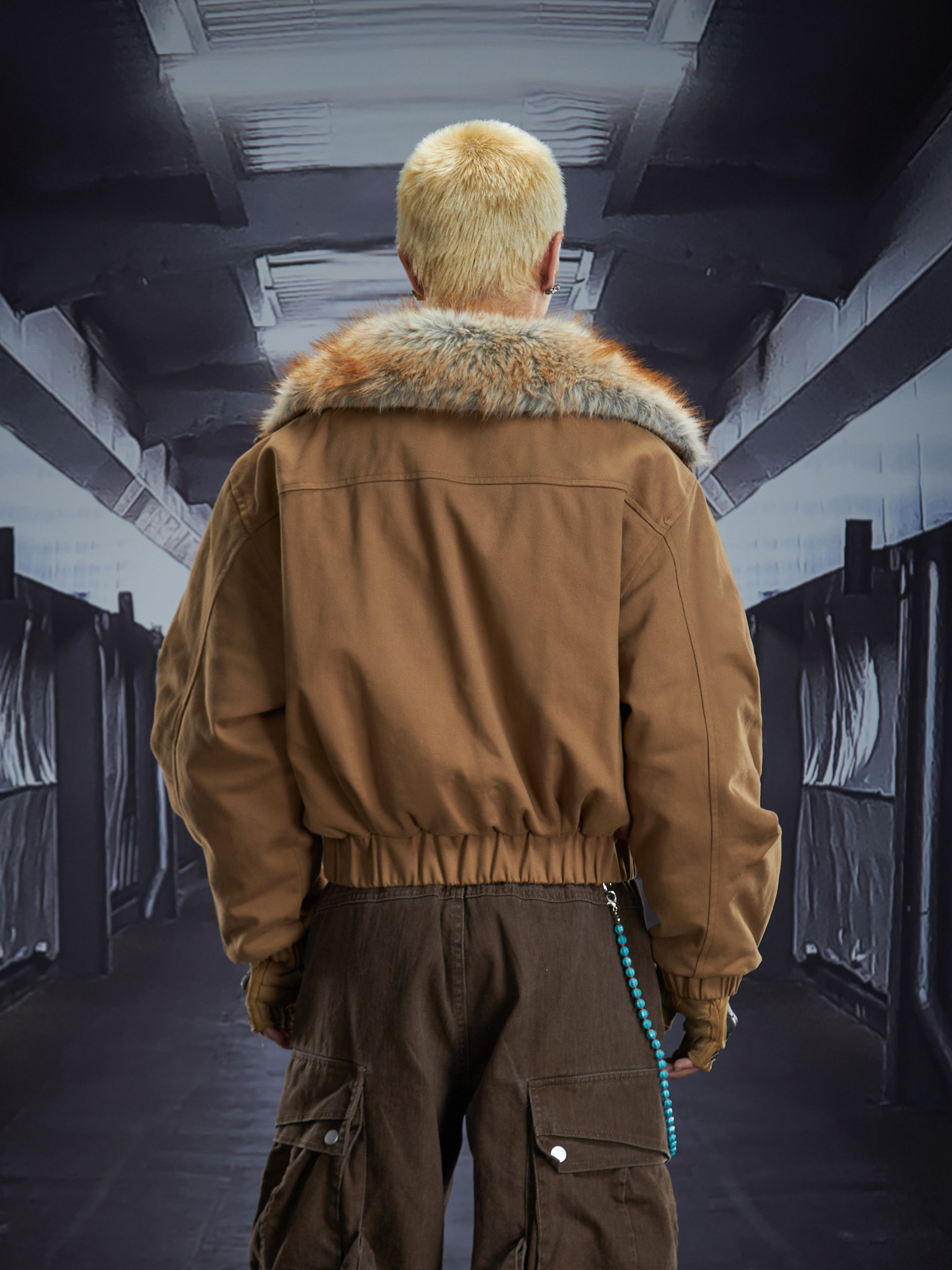 Fake Fur Collar High-Neck Zipper Cropped Puffer Jacket WN22849