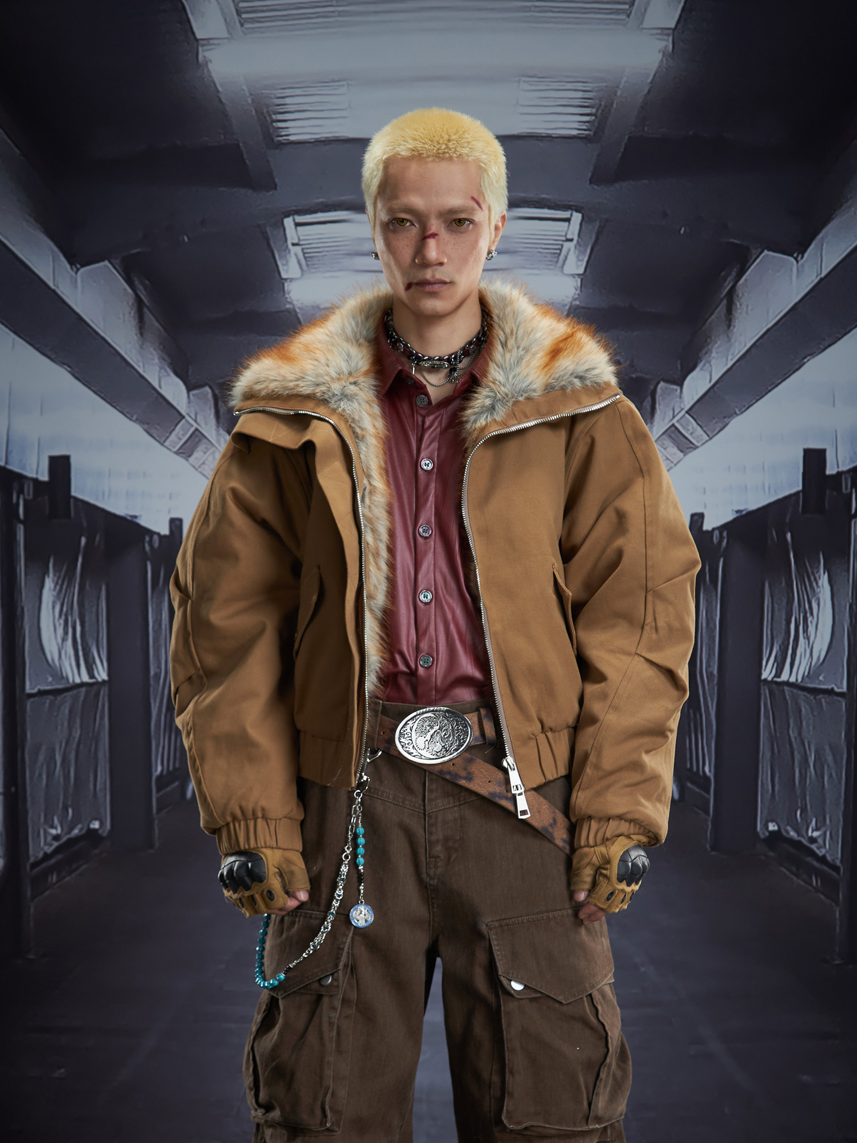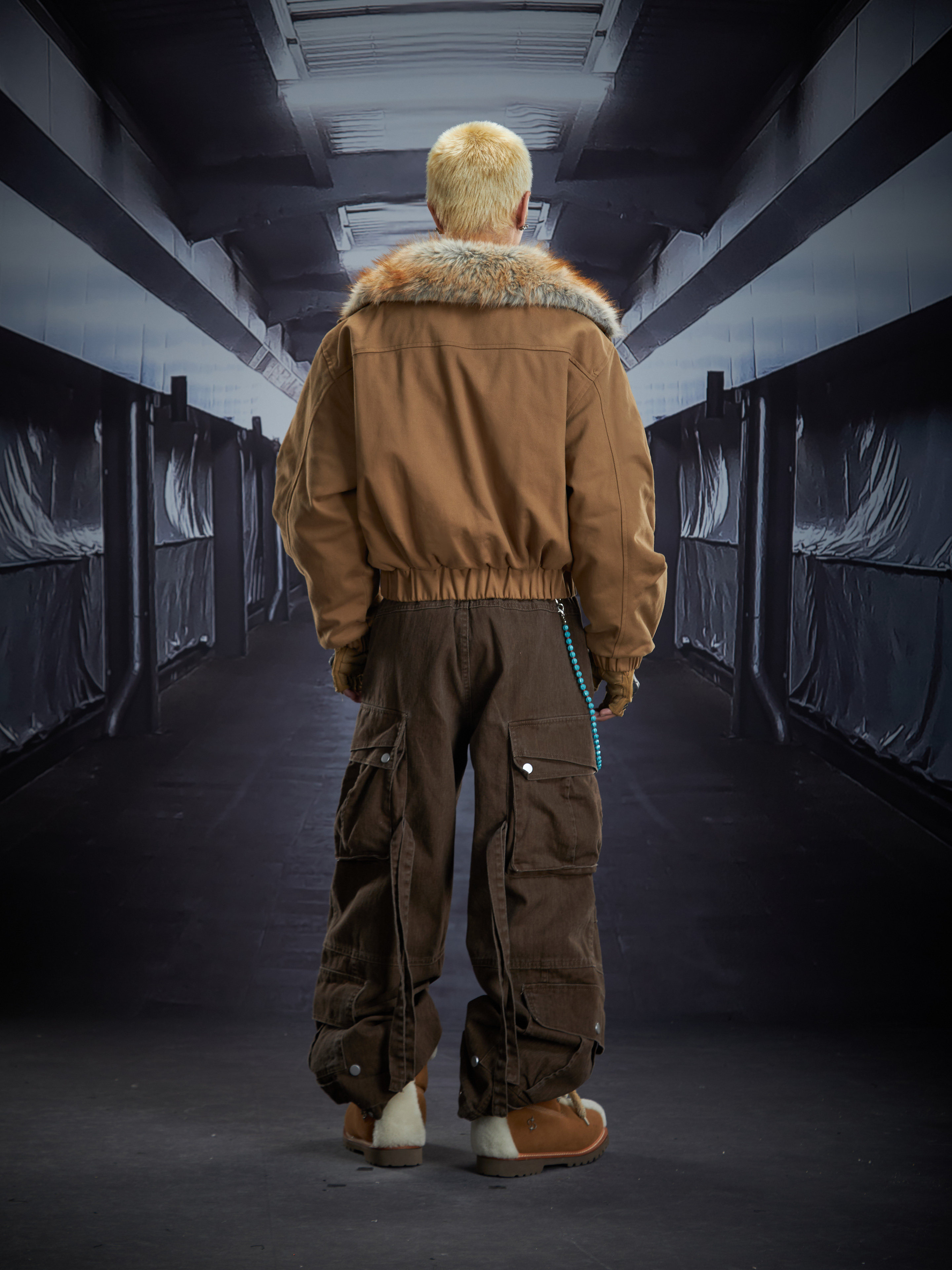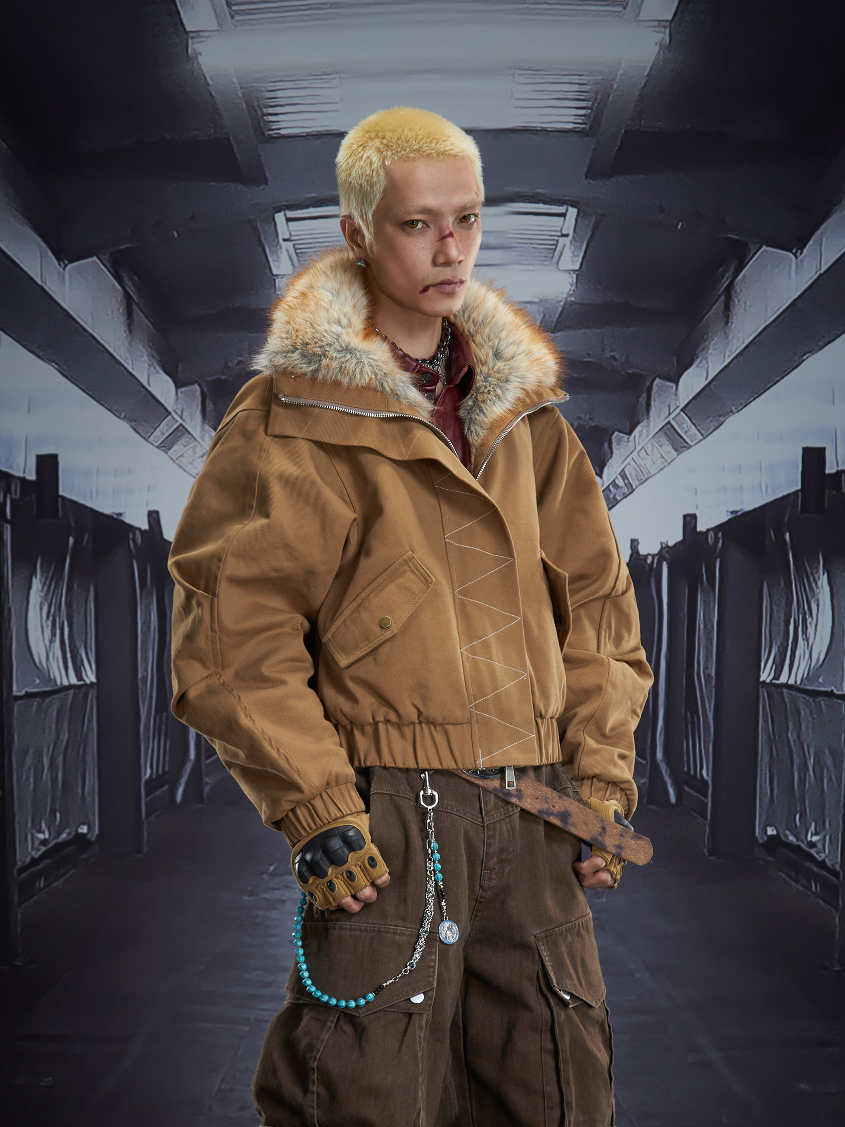 Fake Fur Collar High-Neck Zipper Cropped Puffer Jacket WN22849