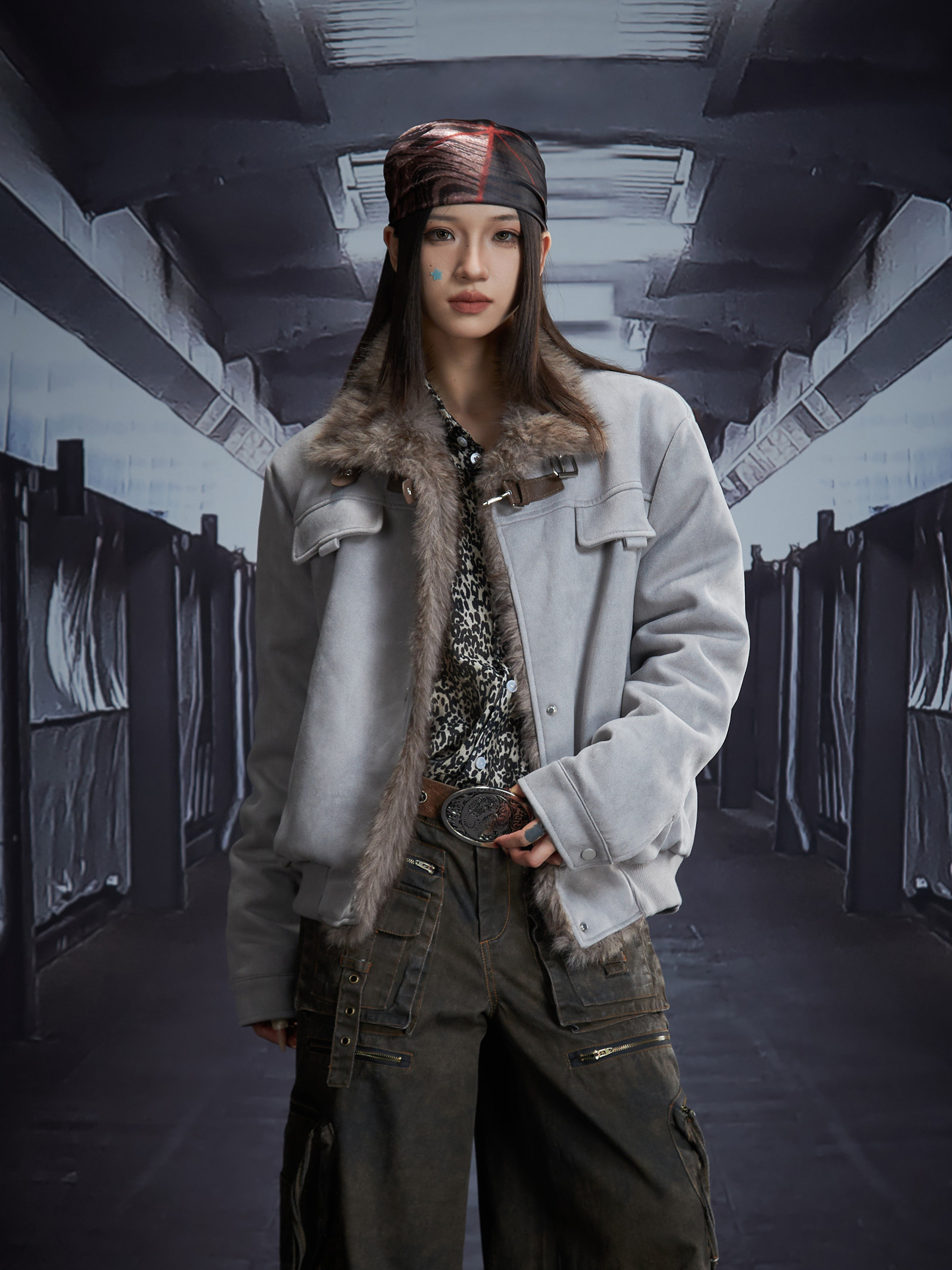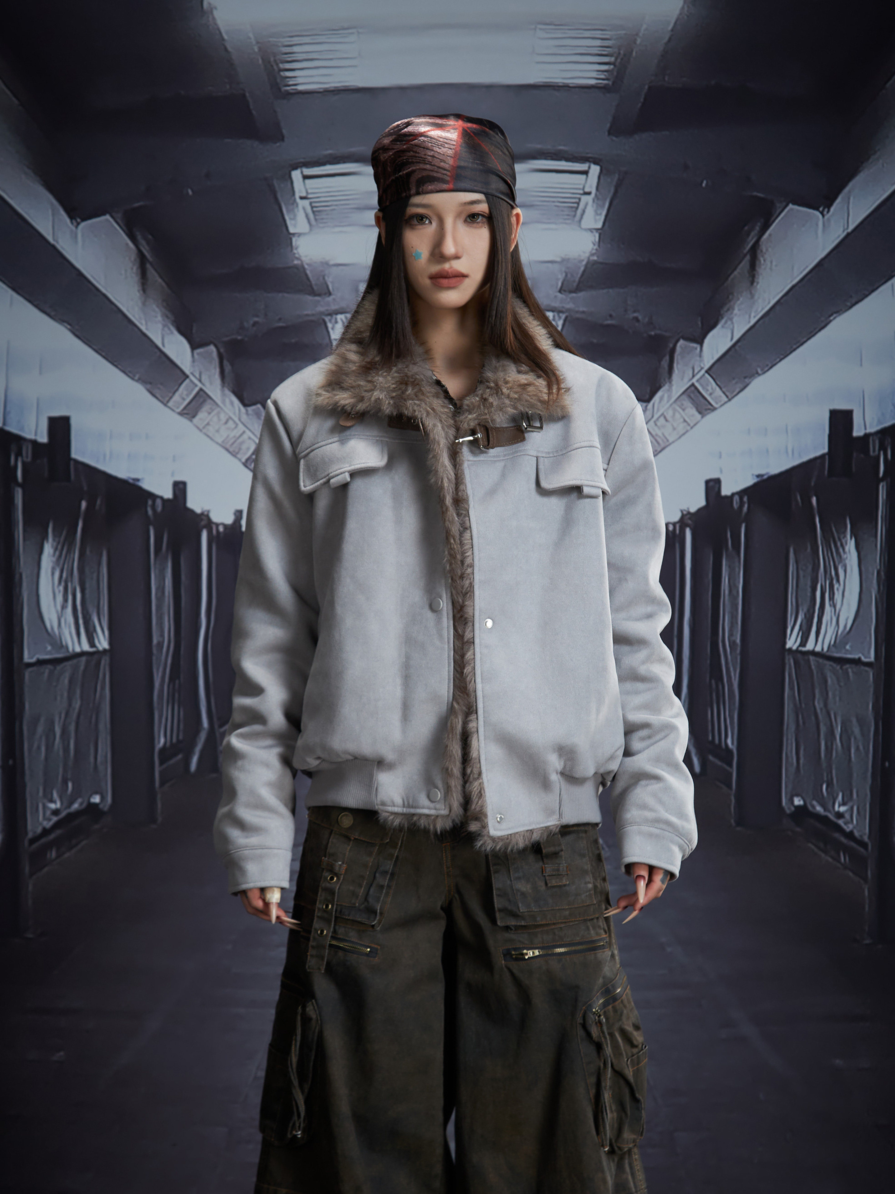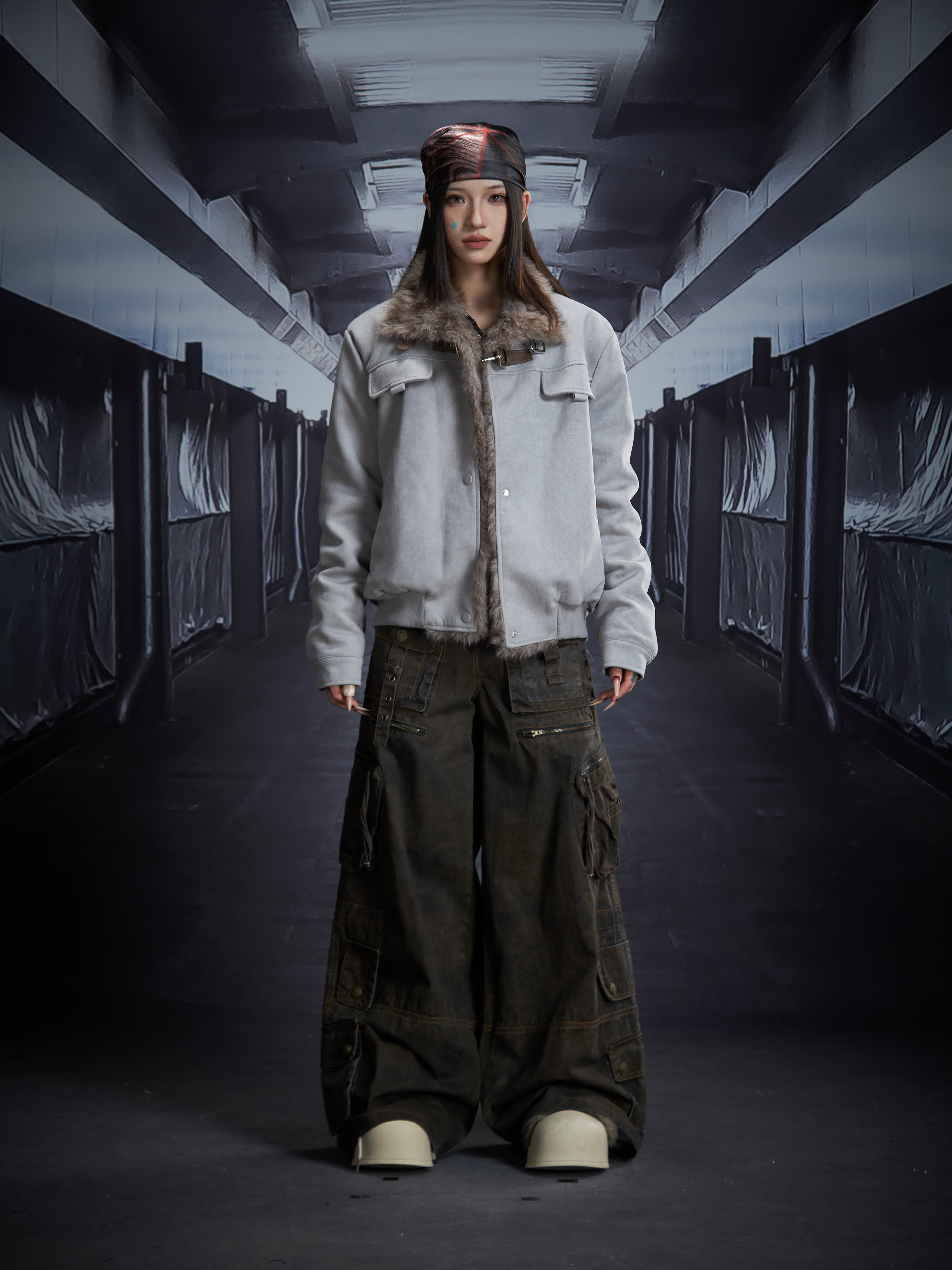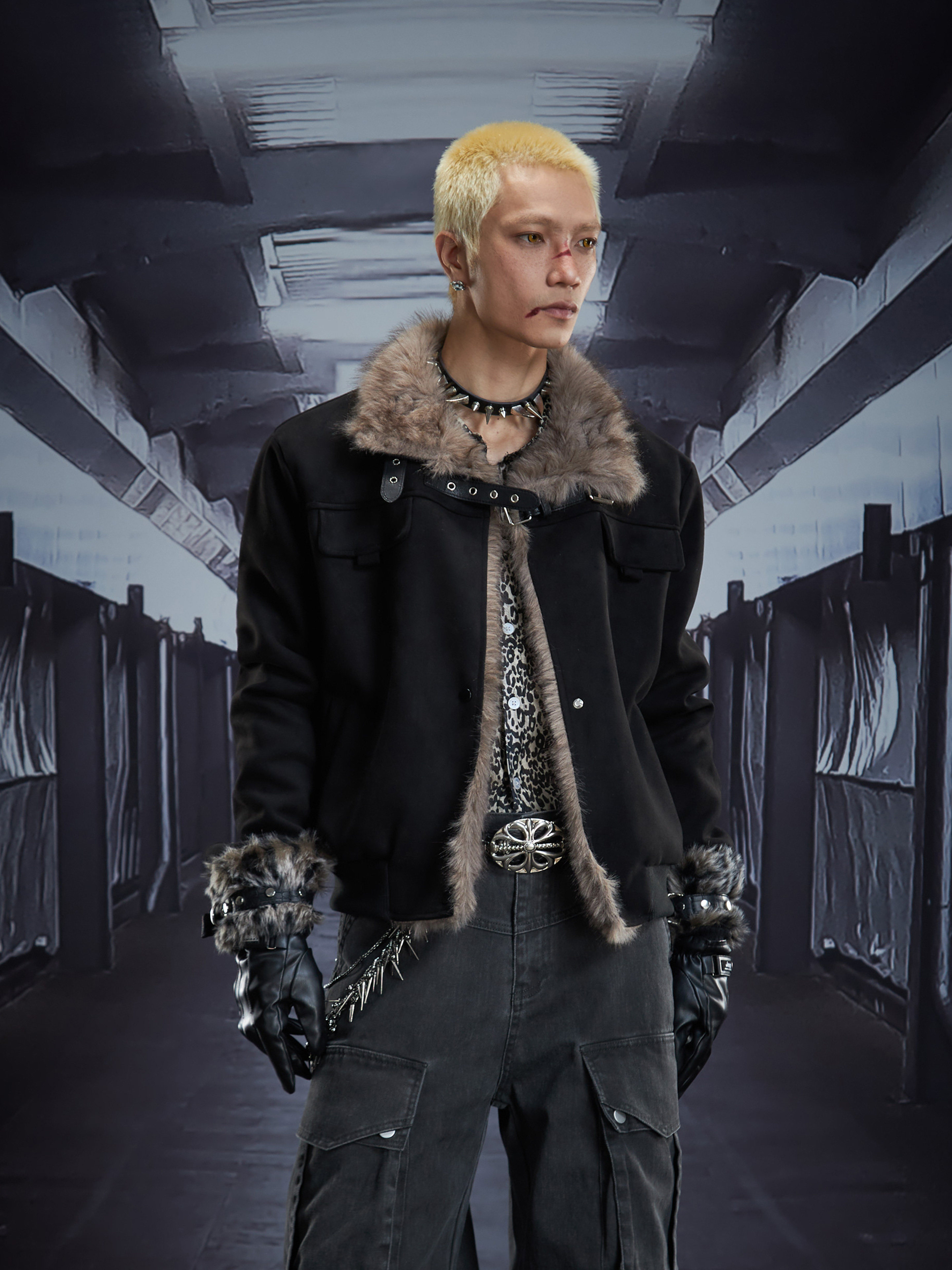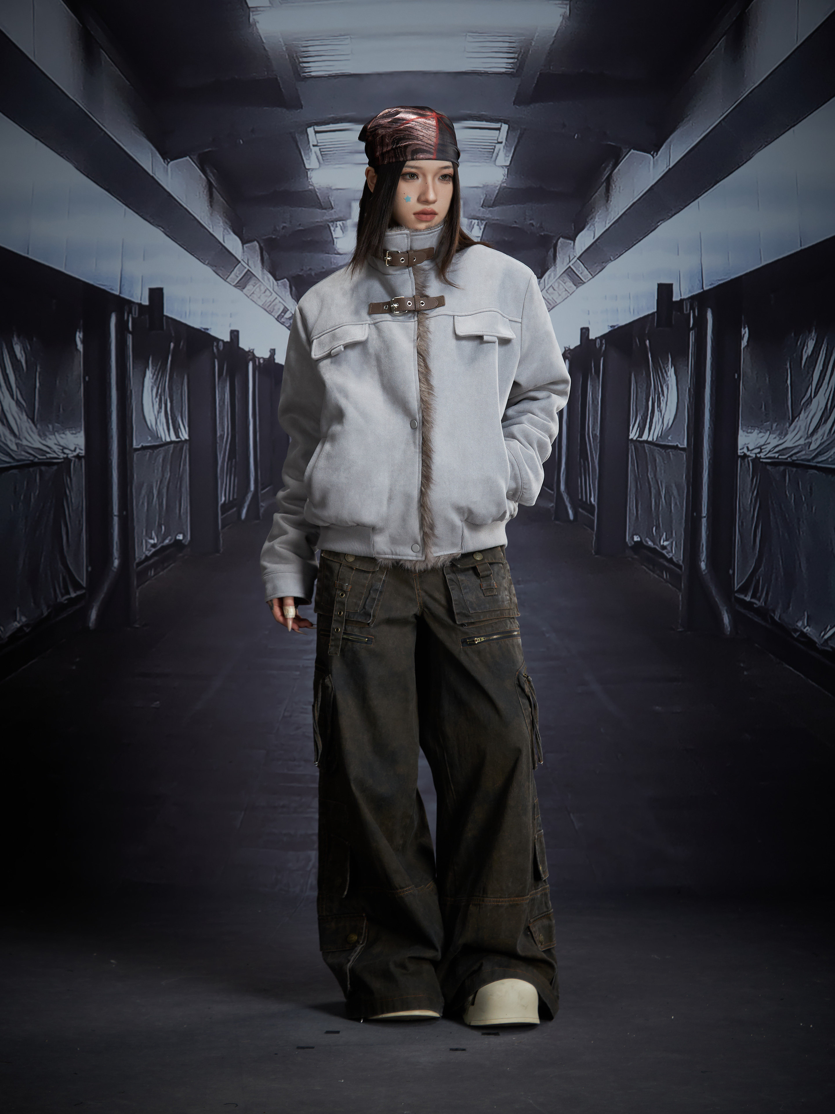 Fur Collar Metal Buckle Snap Button Oversize Puffer Jacket WN22850