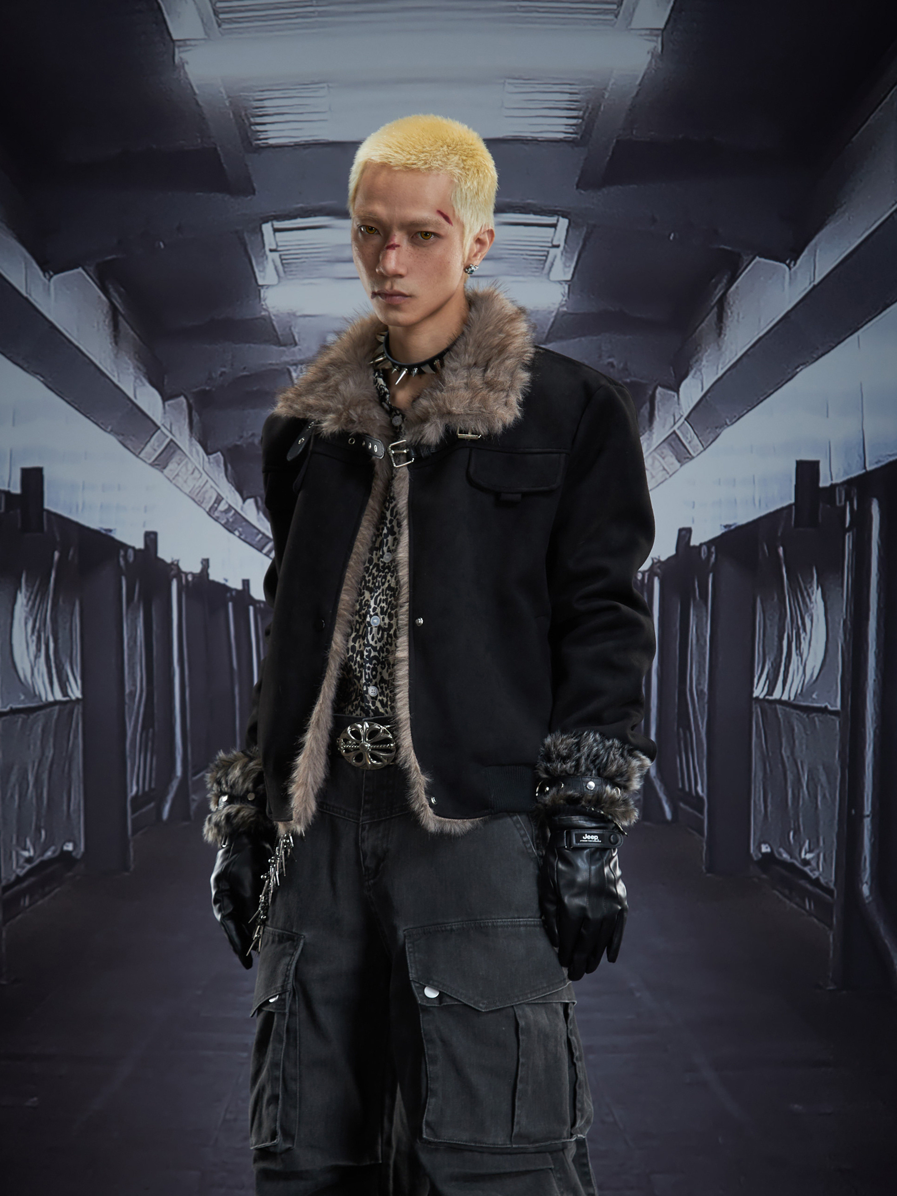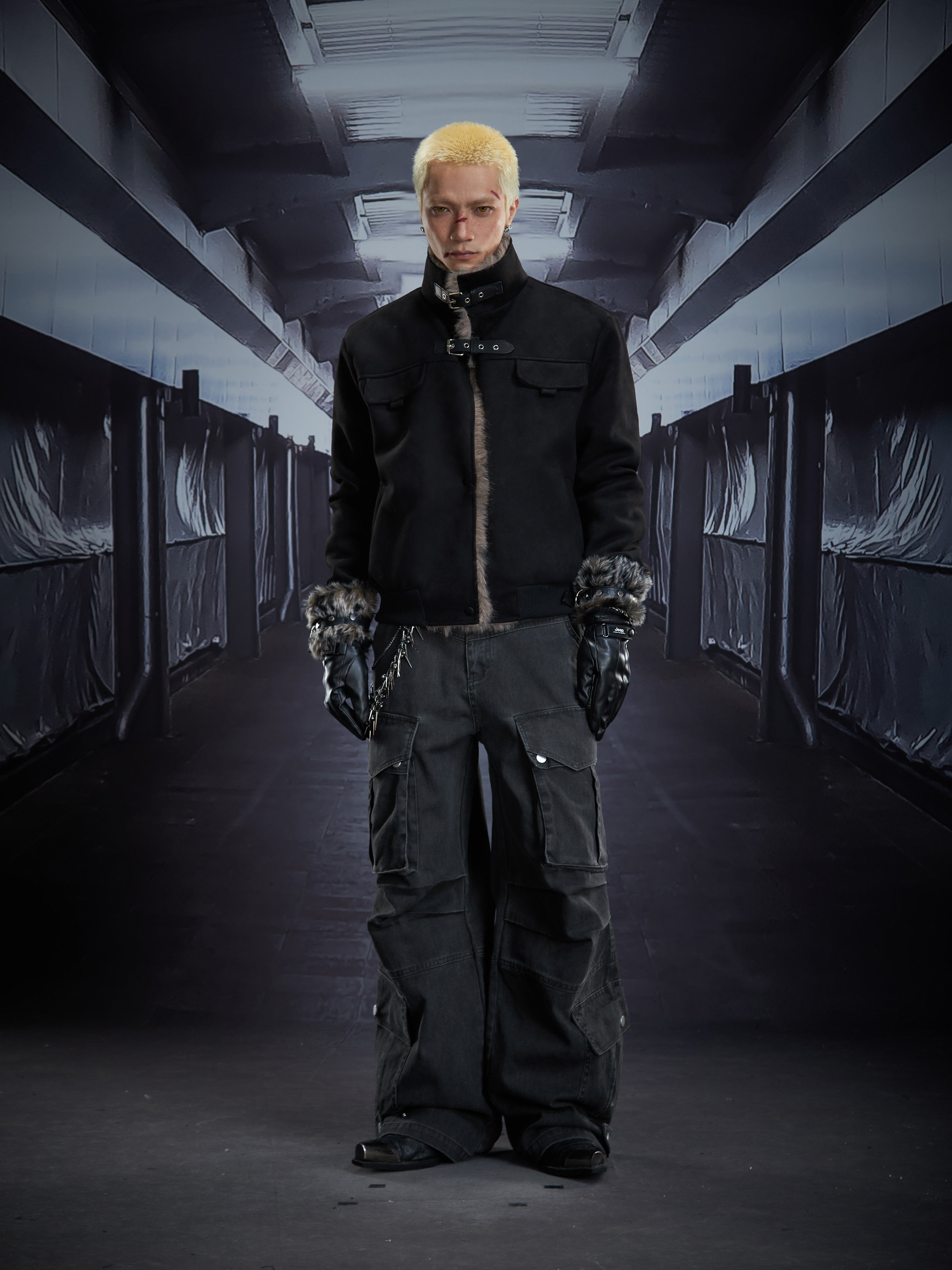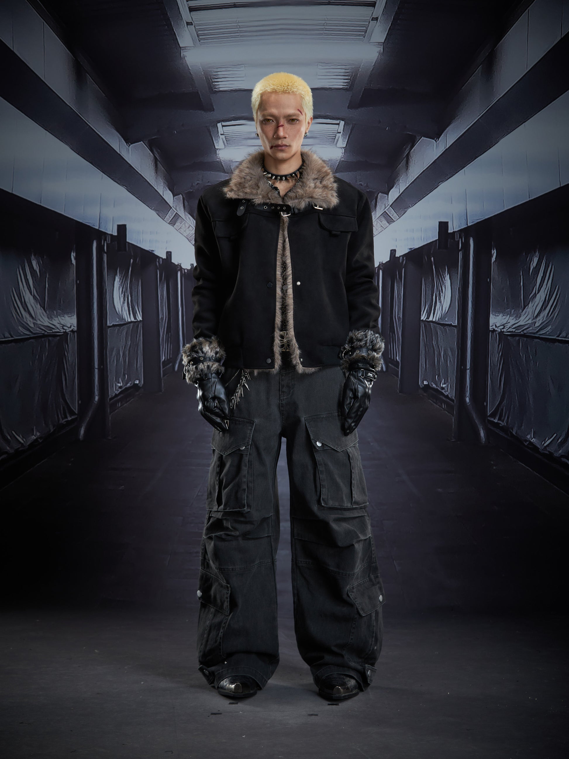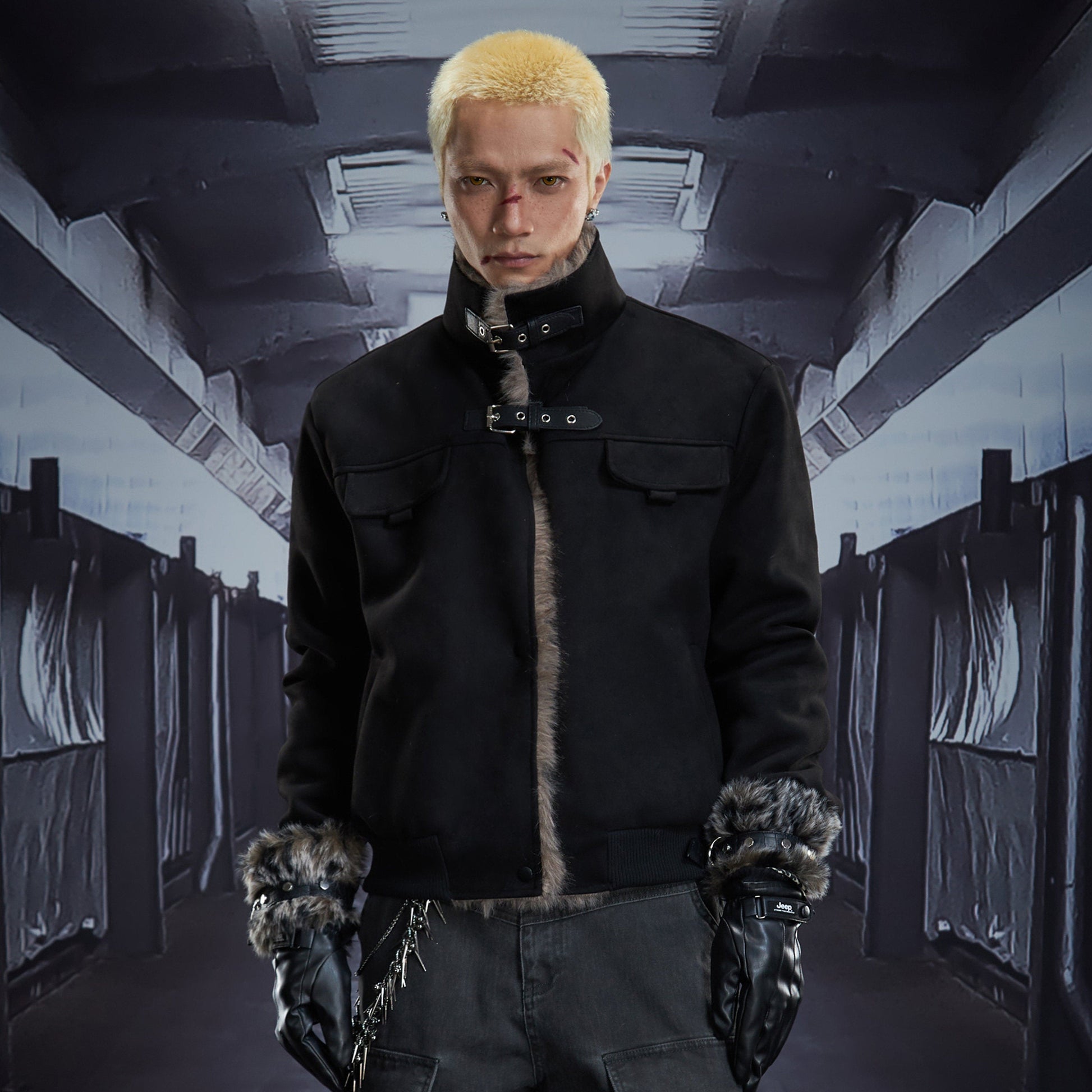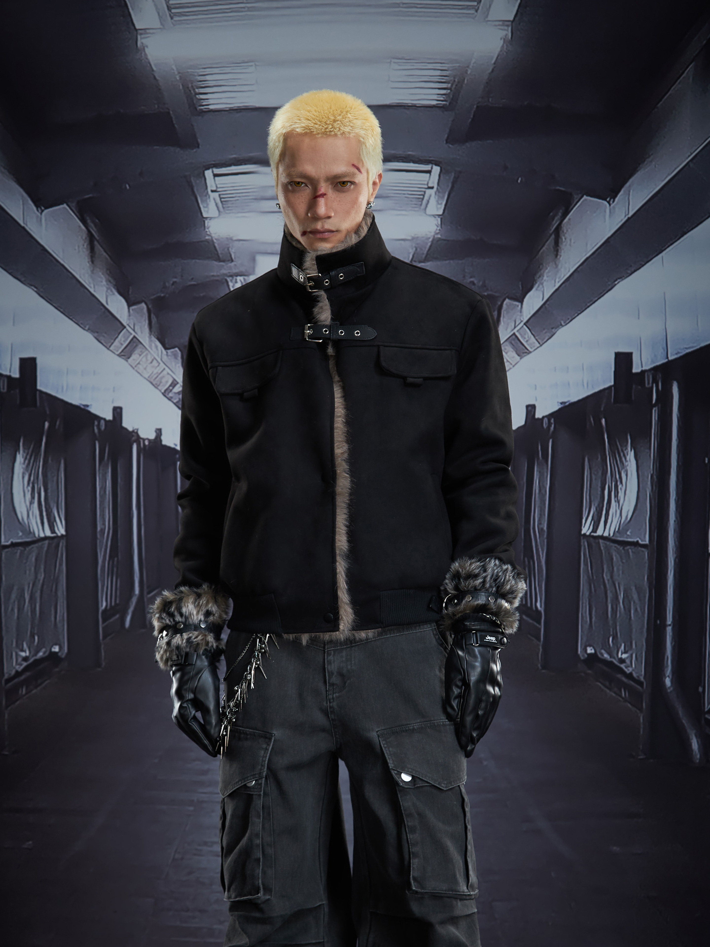 Fur Collar Metal Buckle Snap Button Oversize Puffer Jacket WN22850