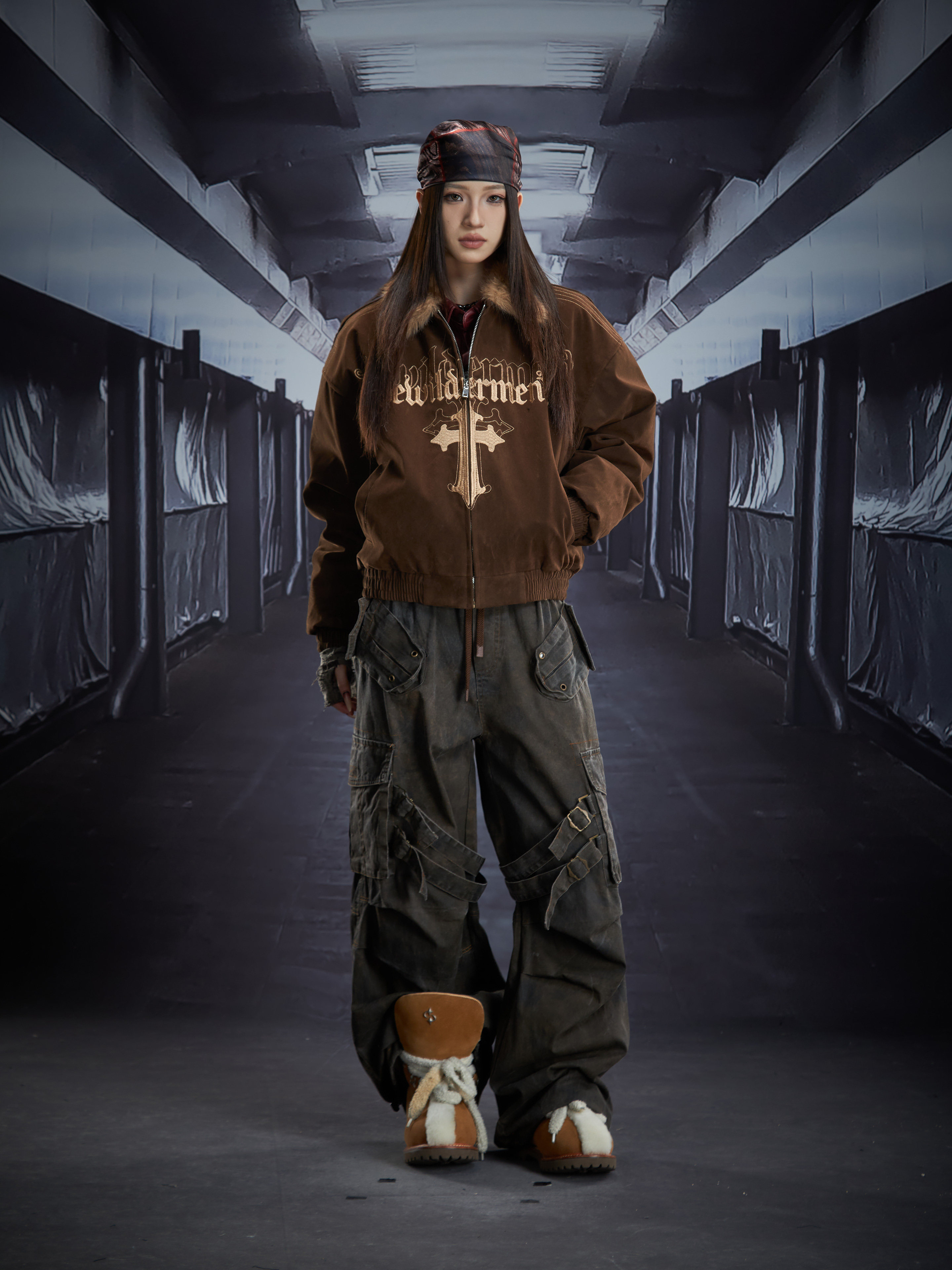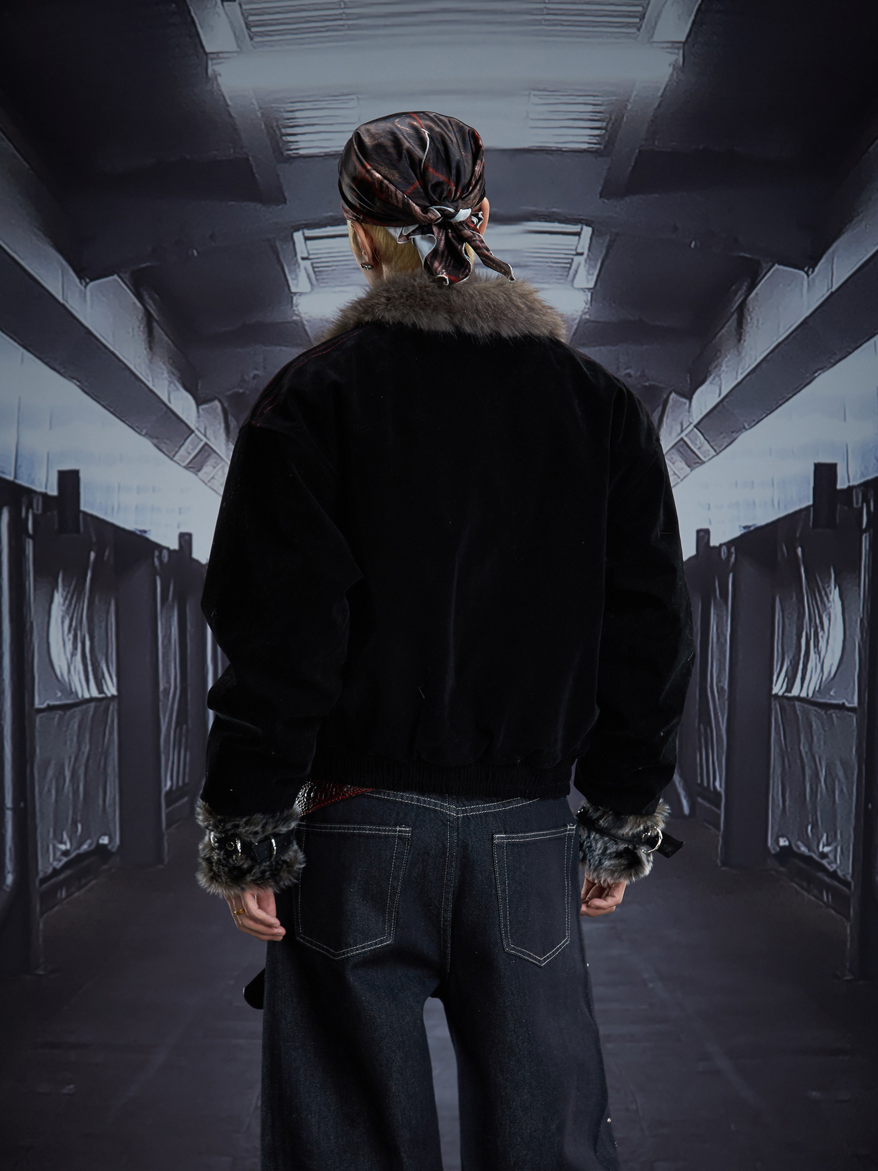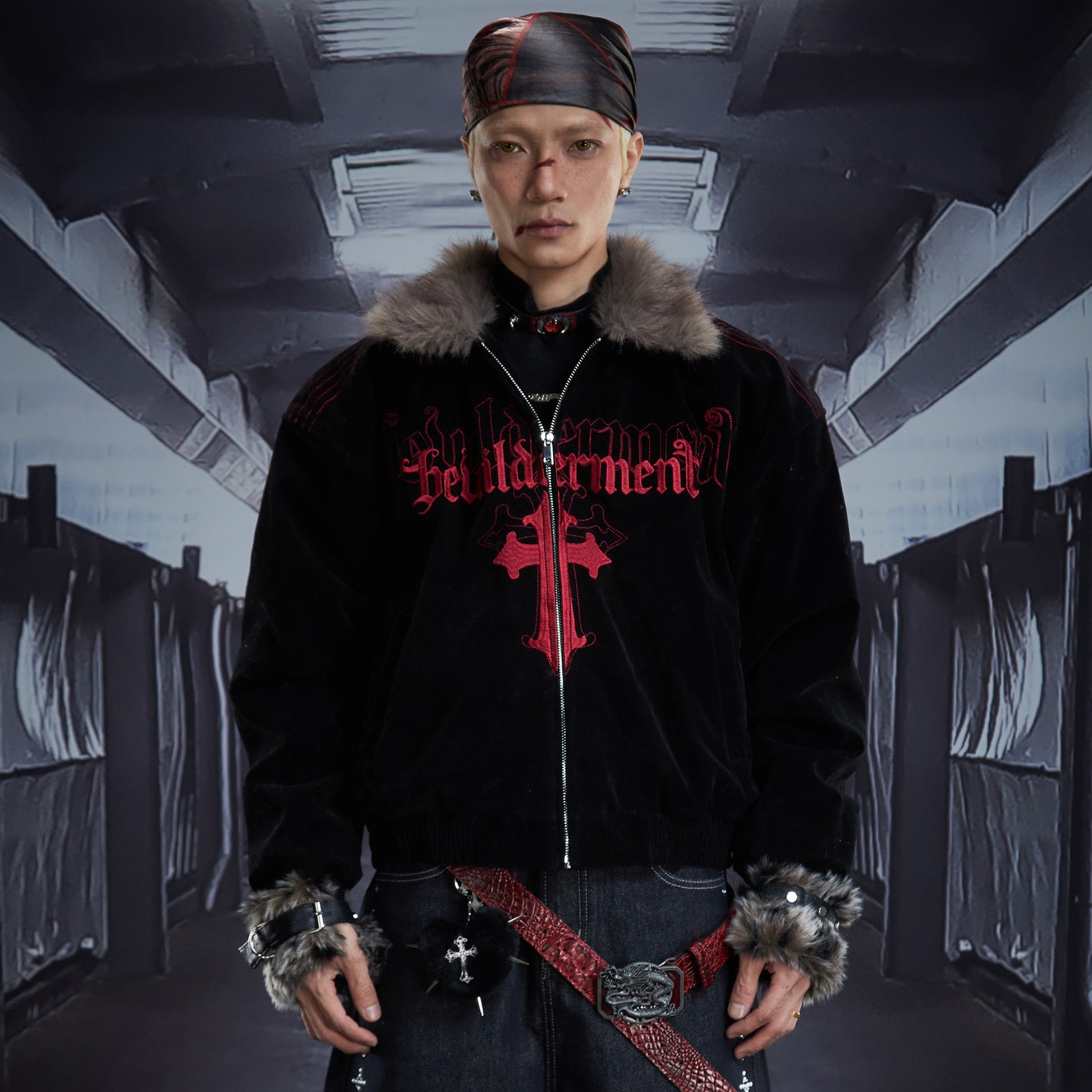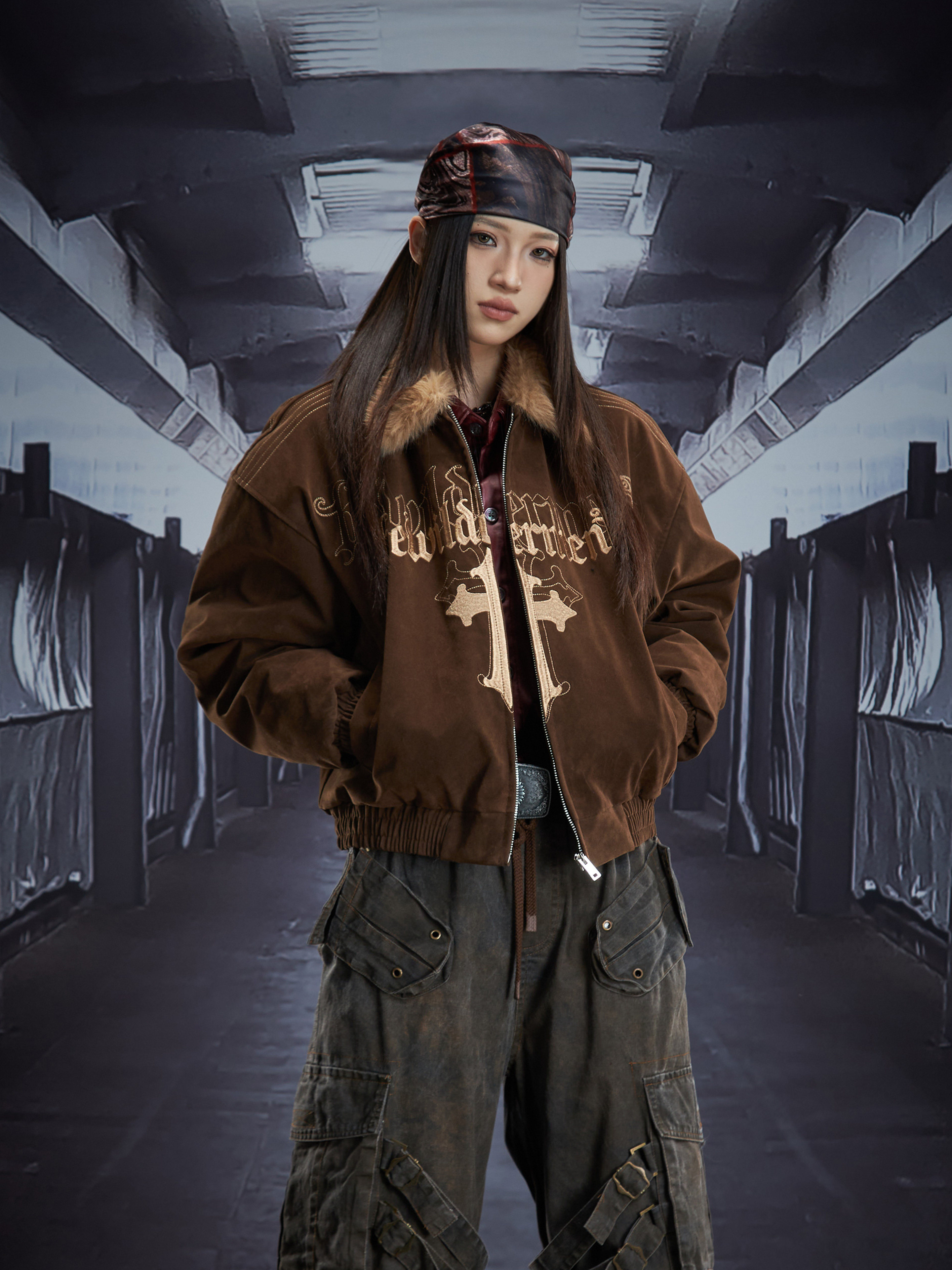 Cross Embroidery Fur Collar Oversize Padded Jacket WN22853