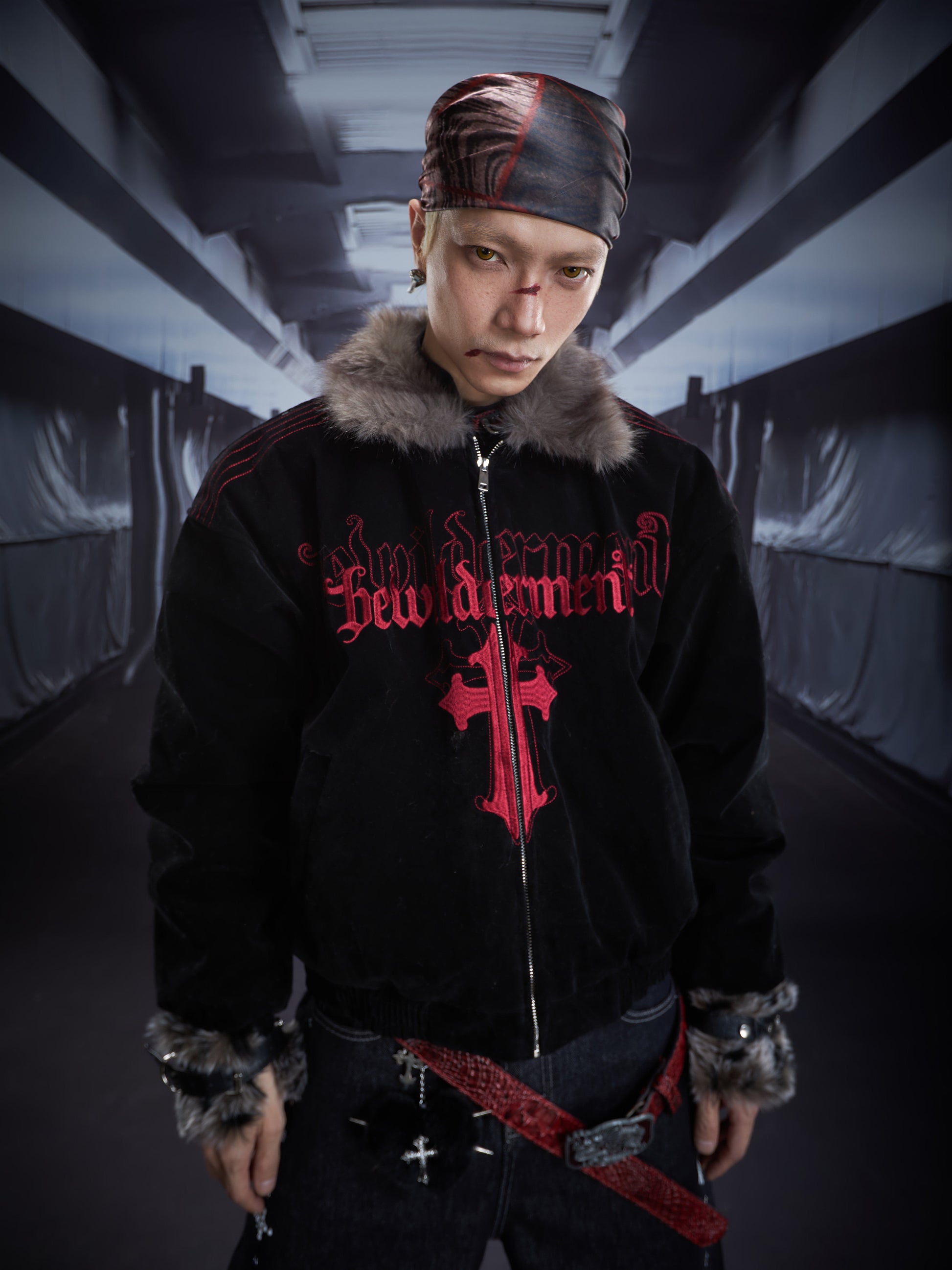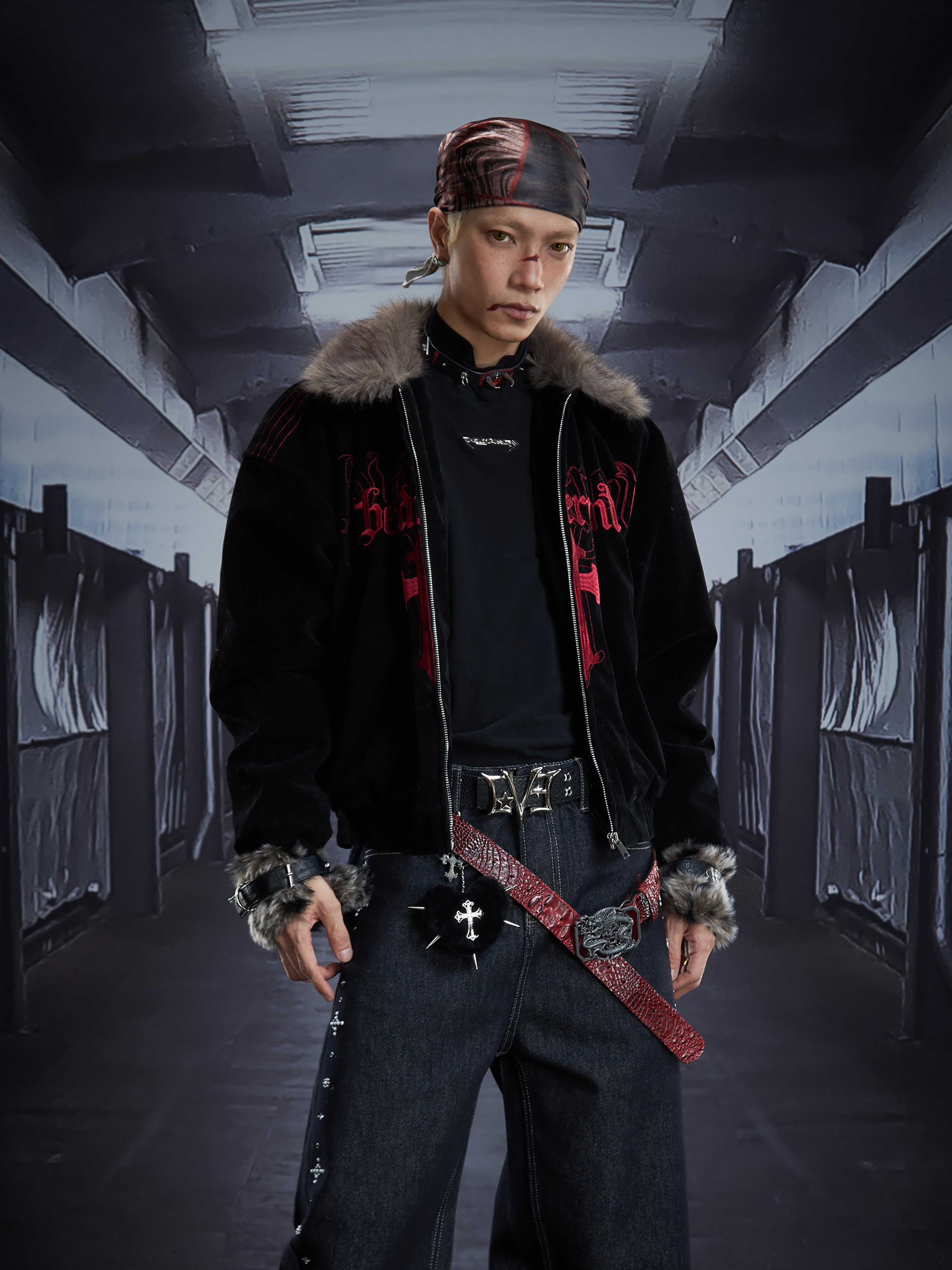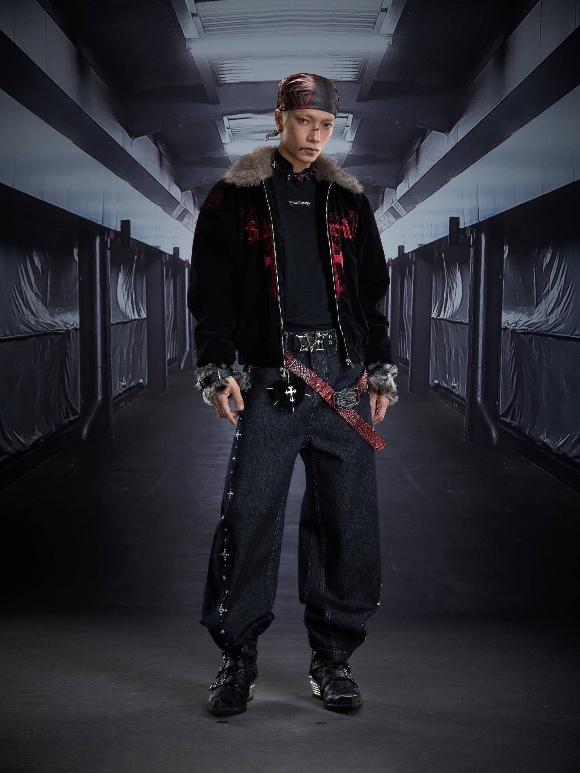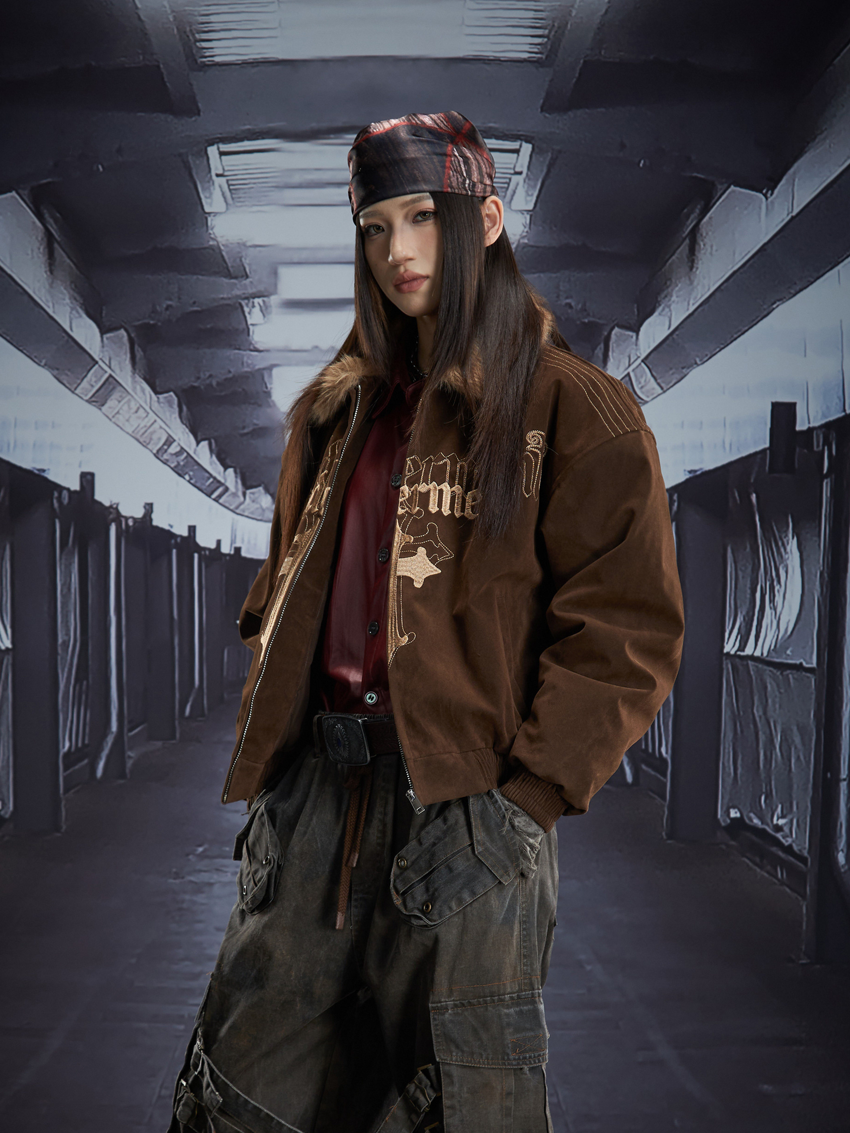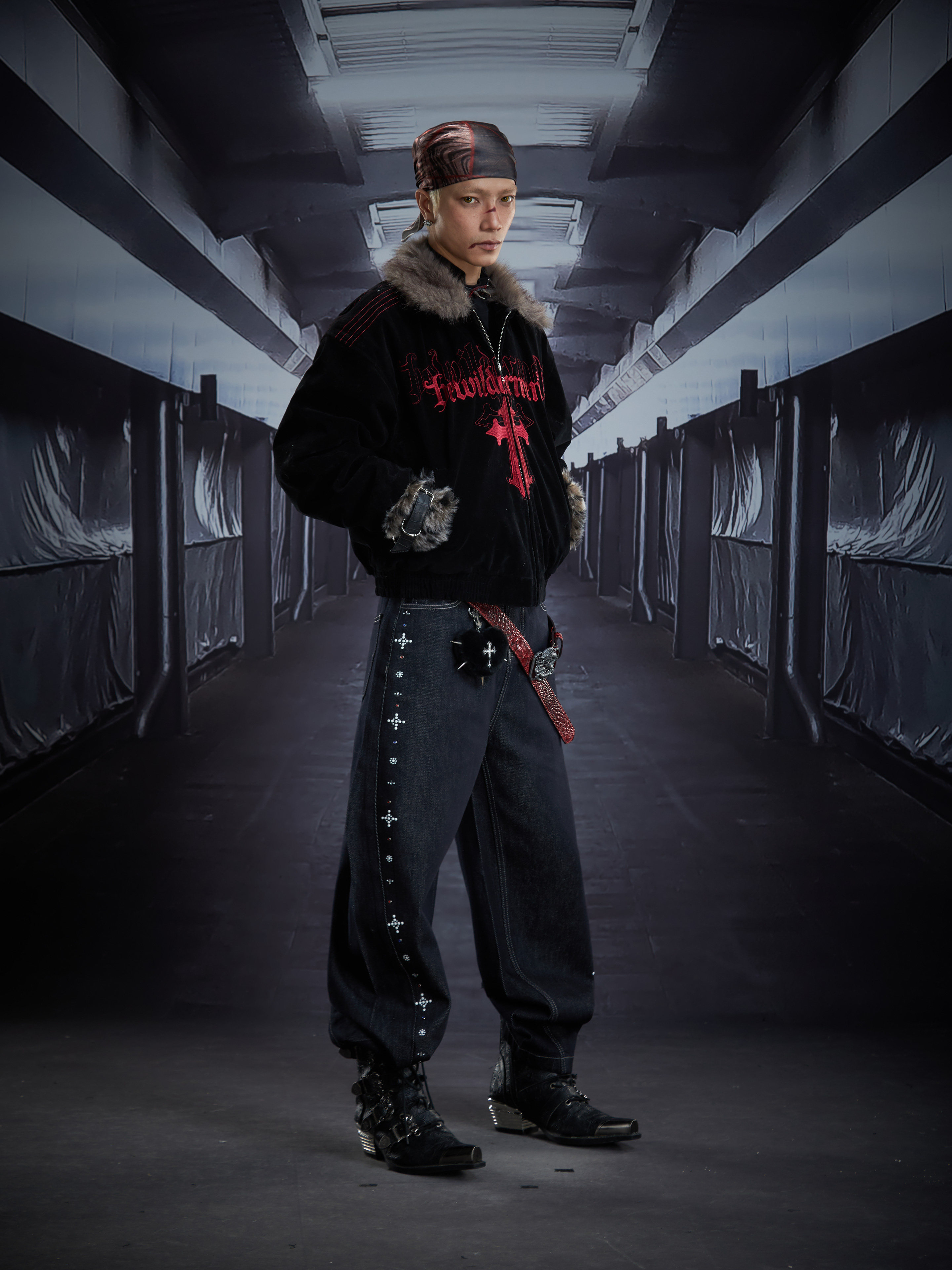 Cross Embroidery Fur Collar Oversize Padded Jacket WN22853