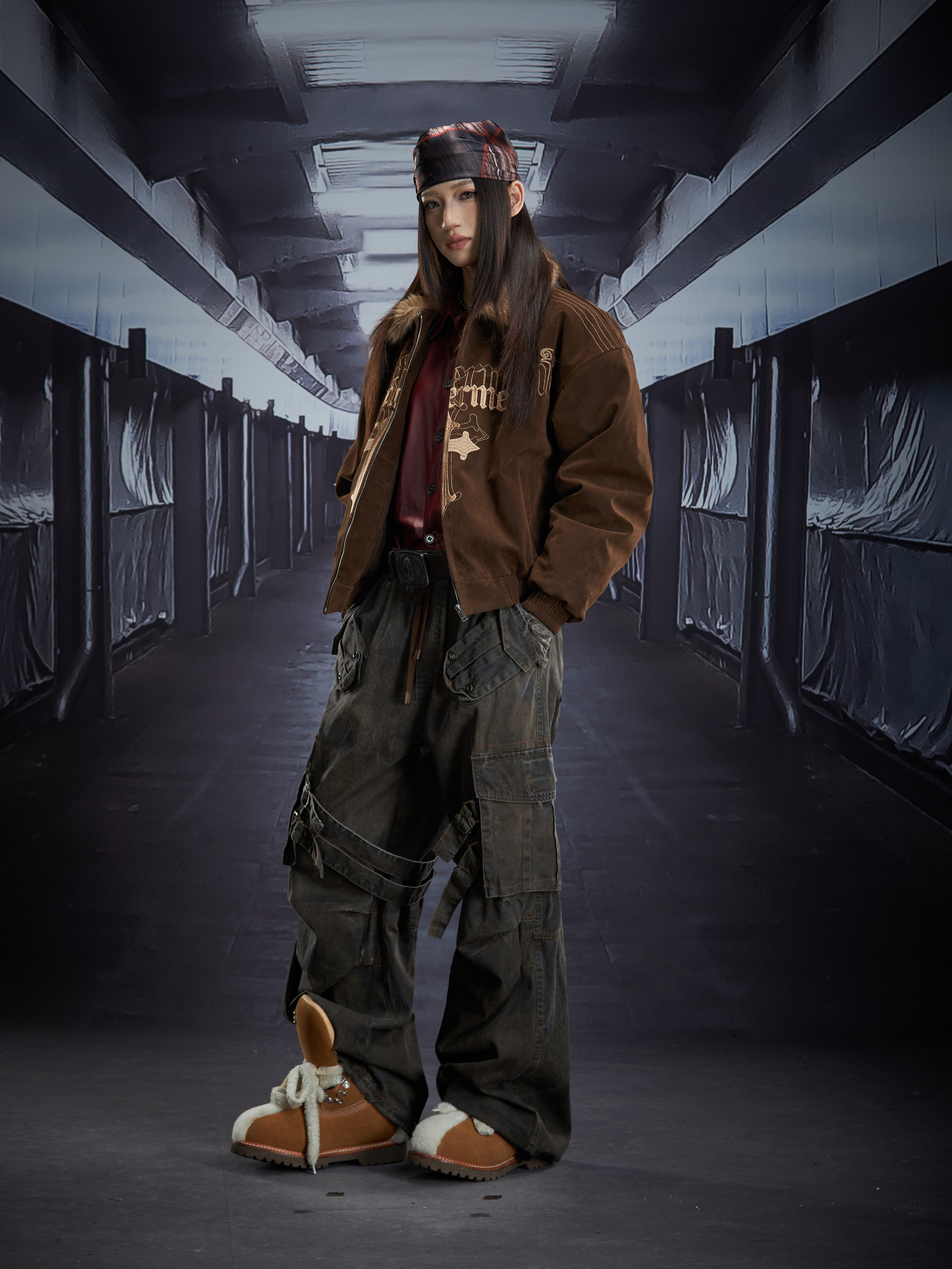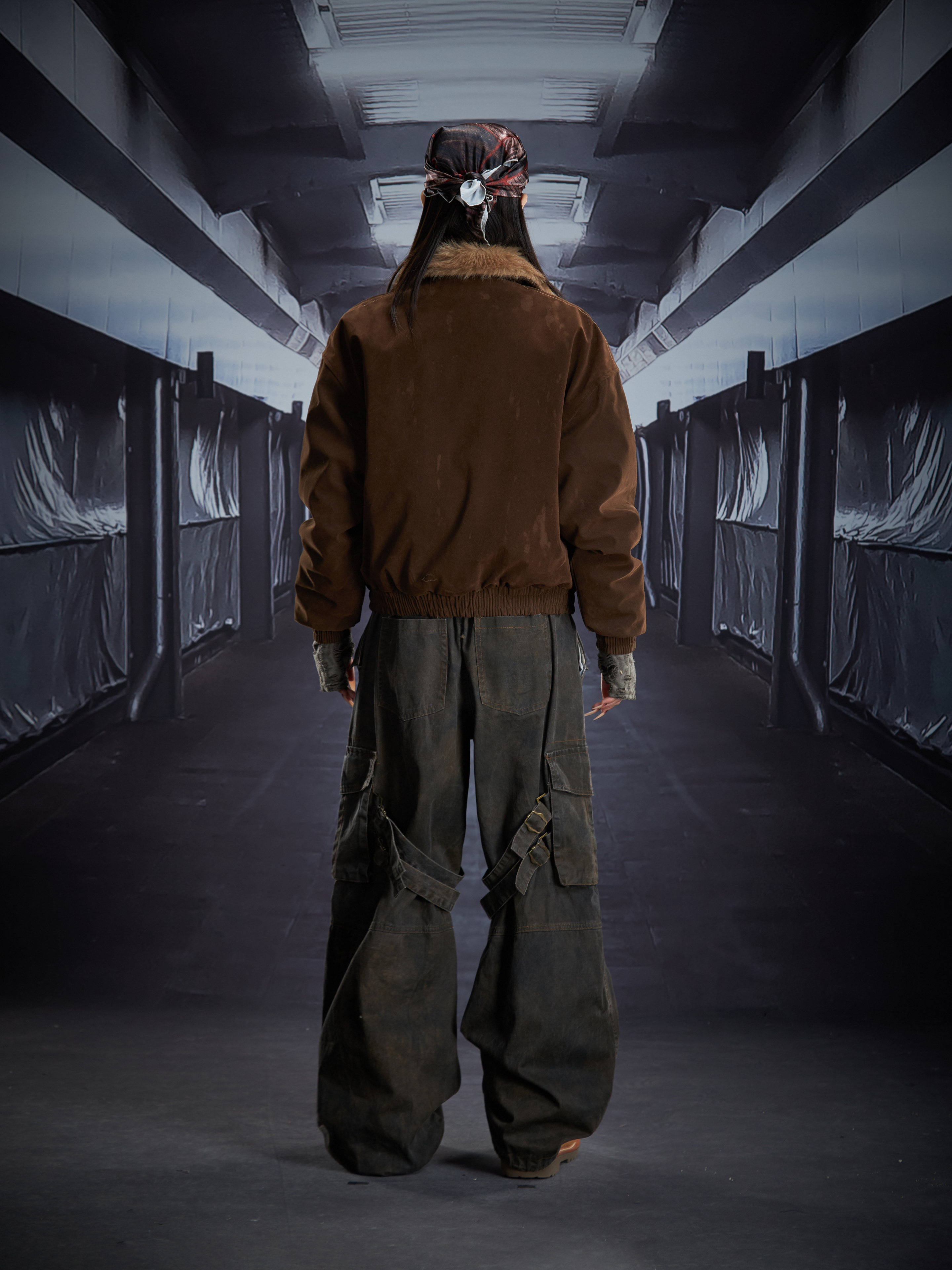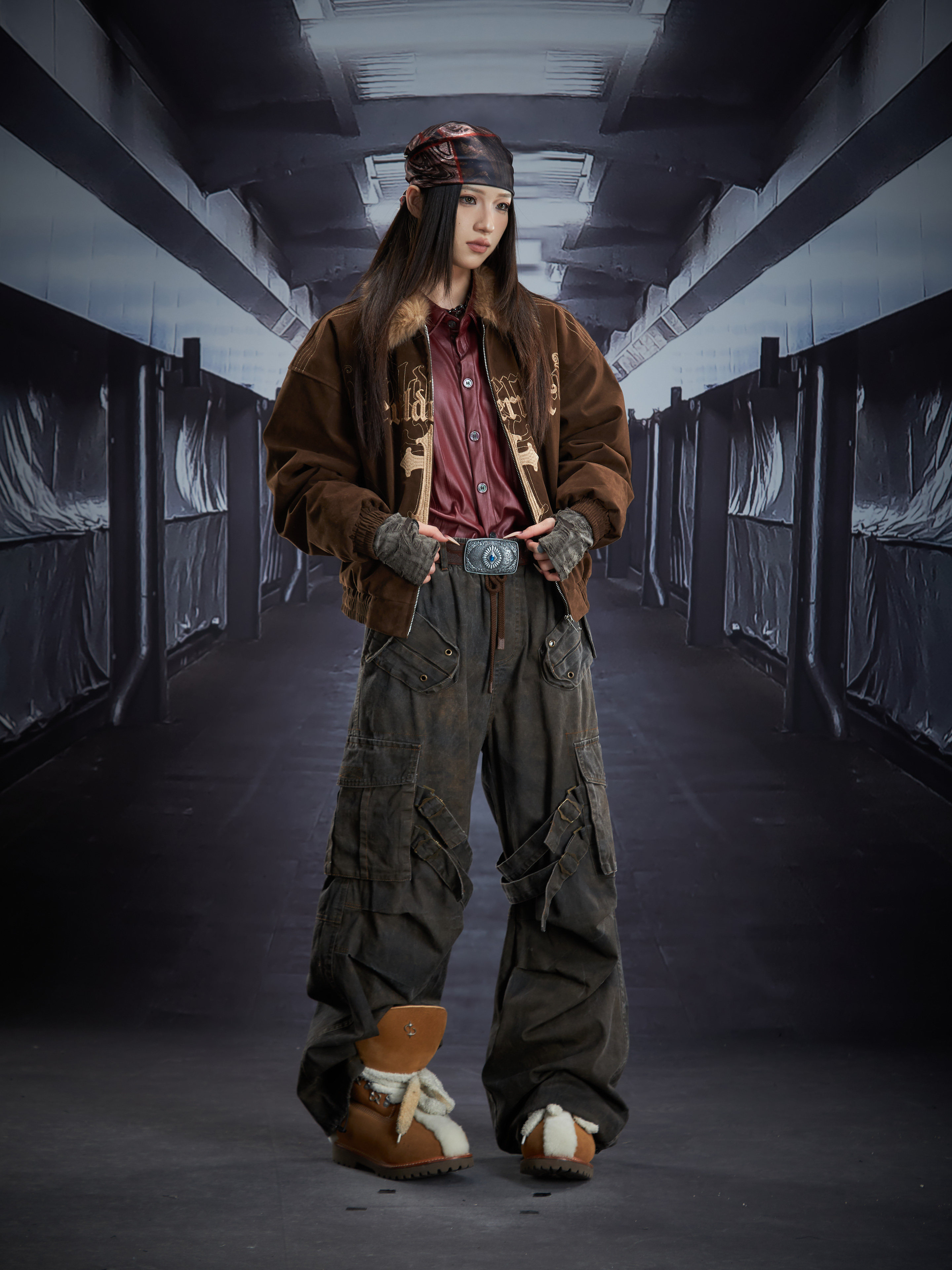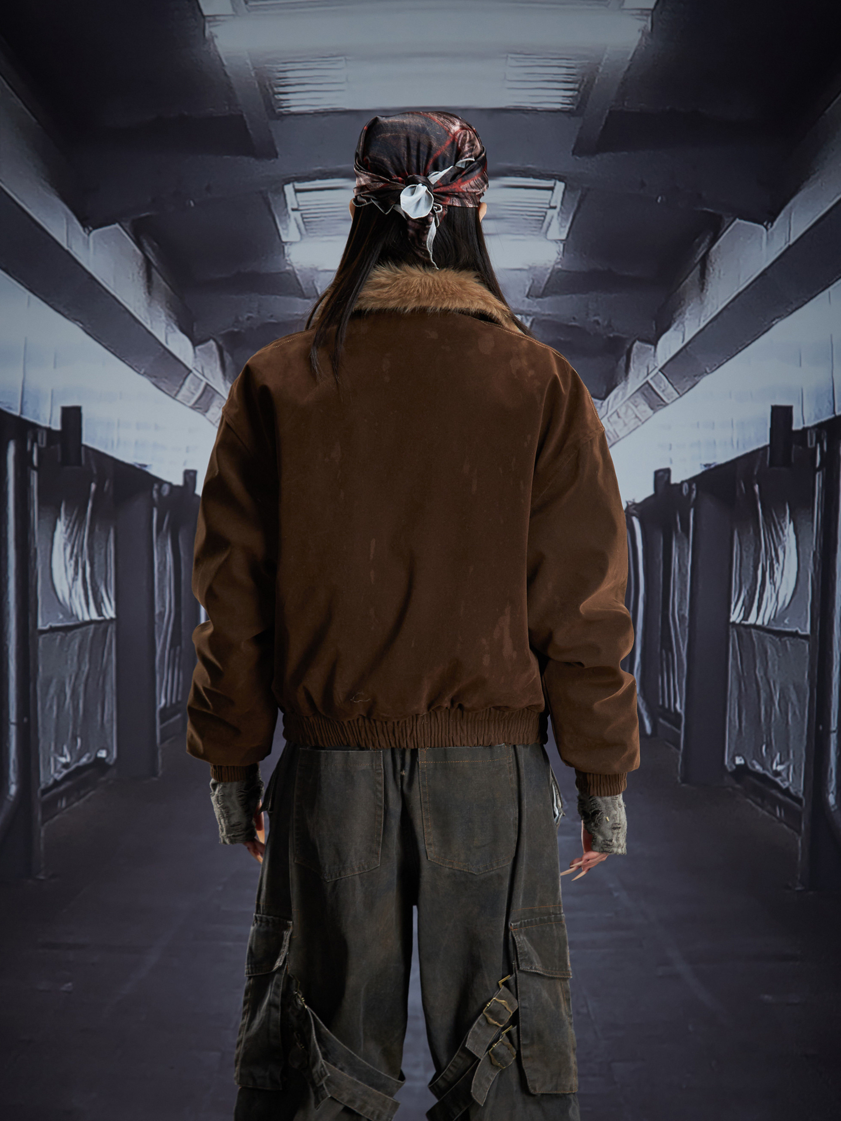 Cross Embroidery Fur Collar Oversize Padded Jacket WN22853