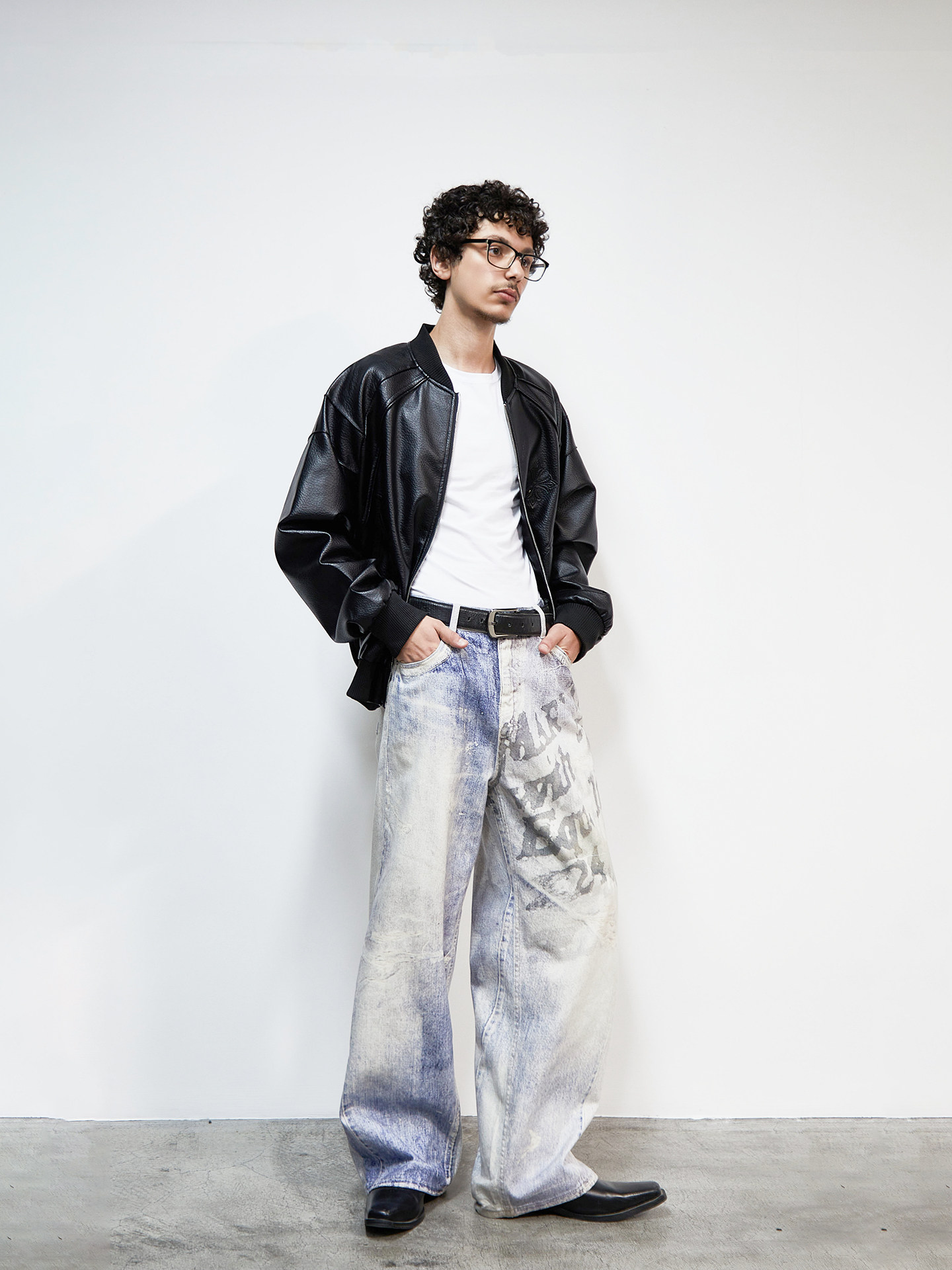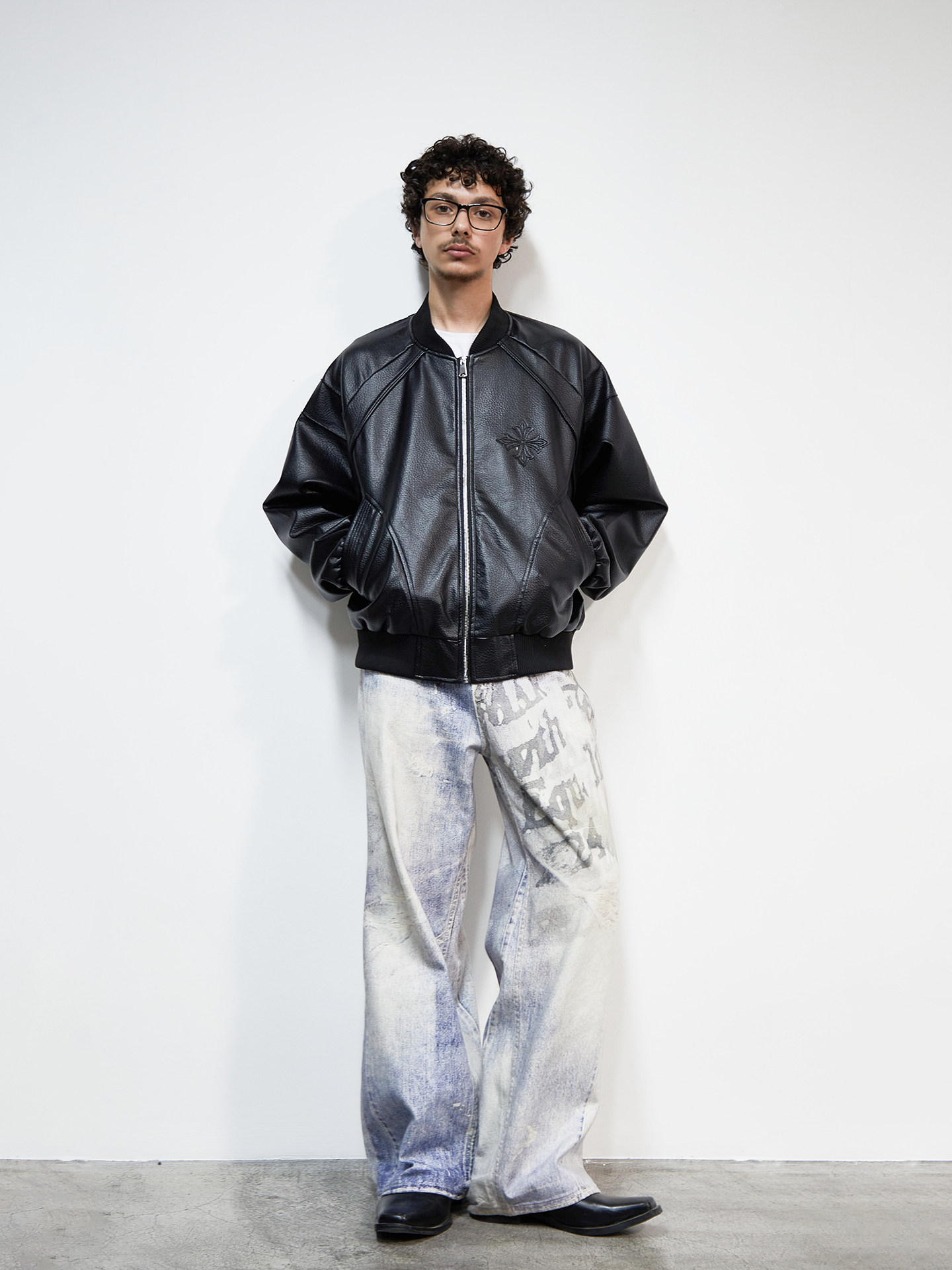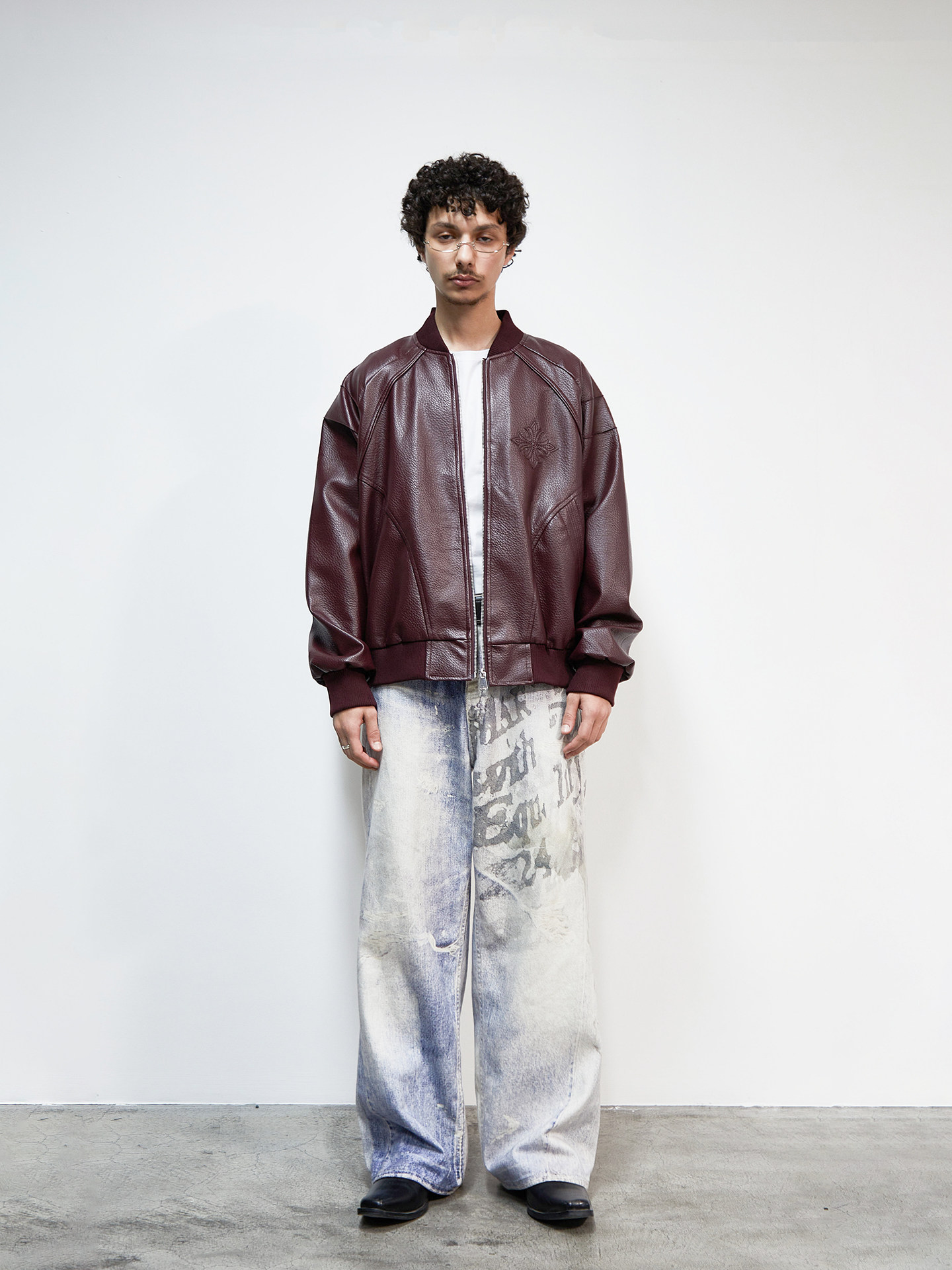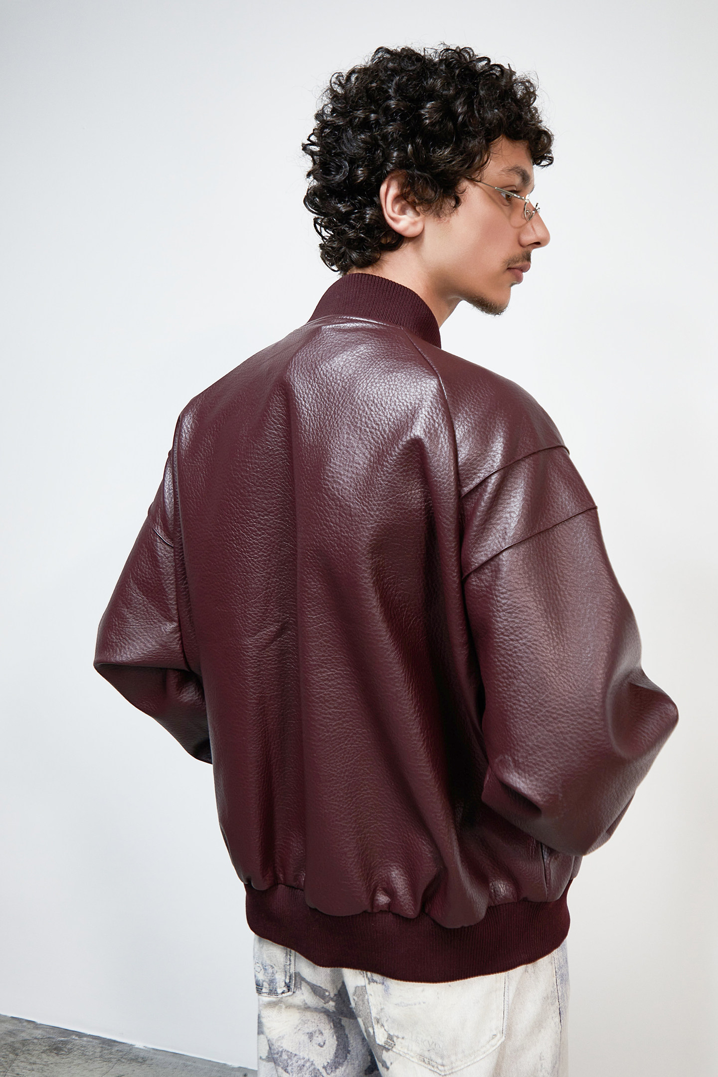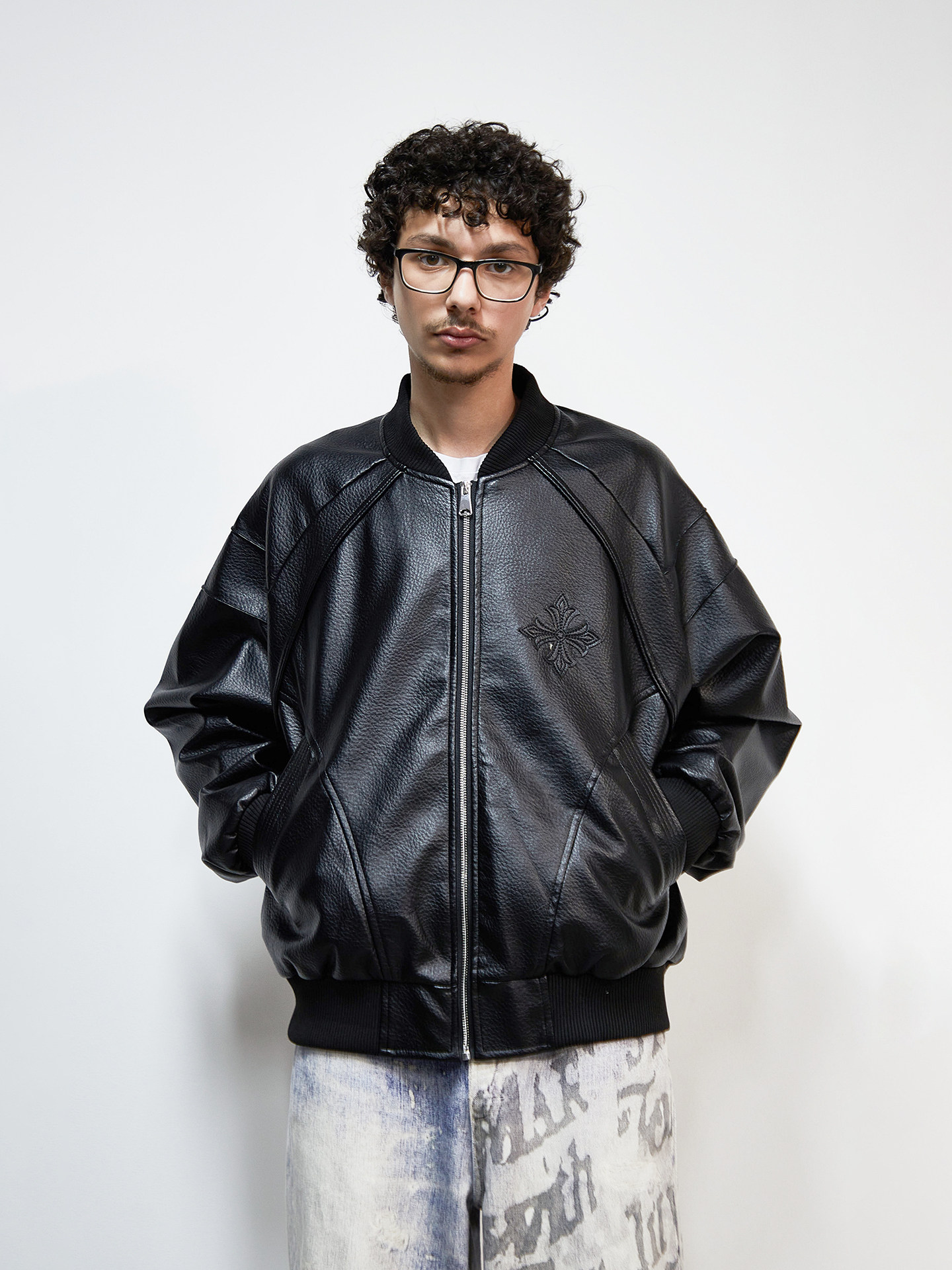 PU Leather Embroidery Baseball Collar Oversize Jacket WN22922