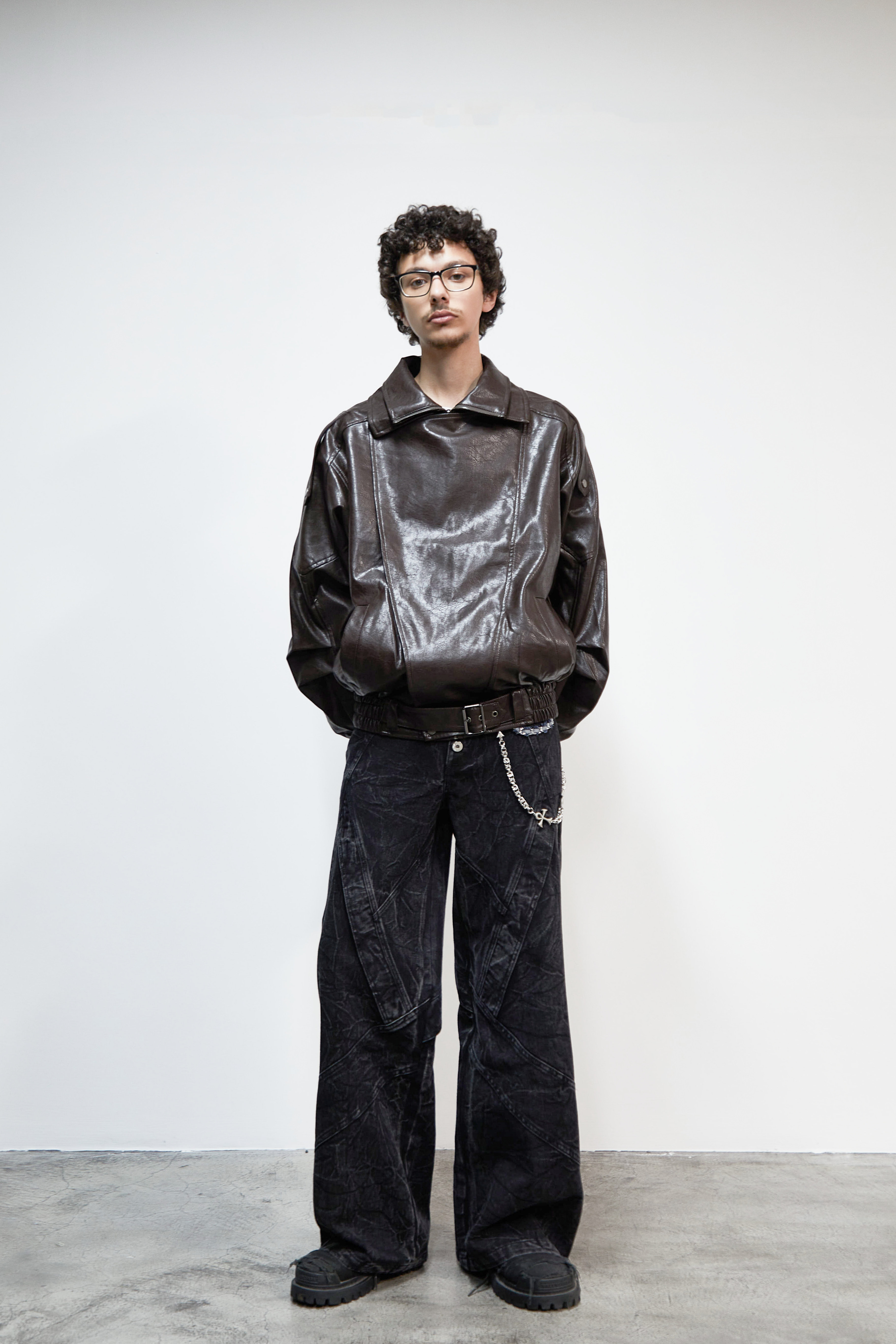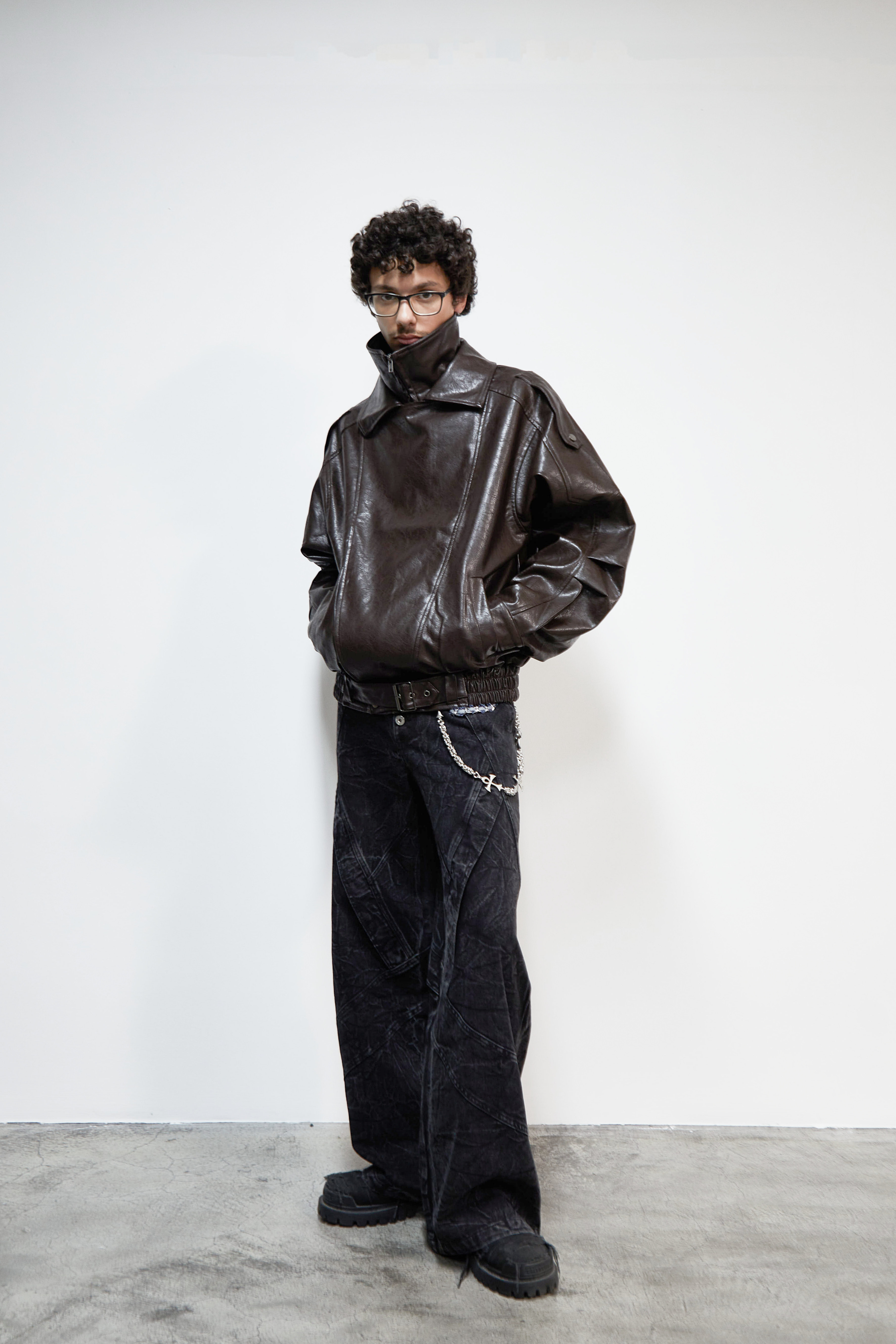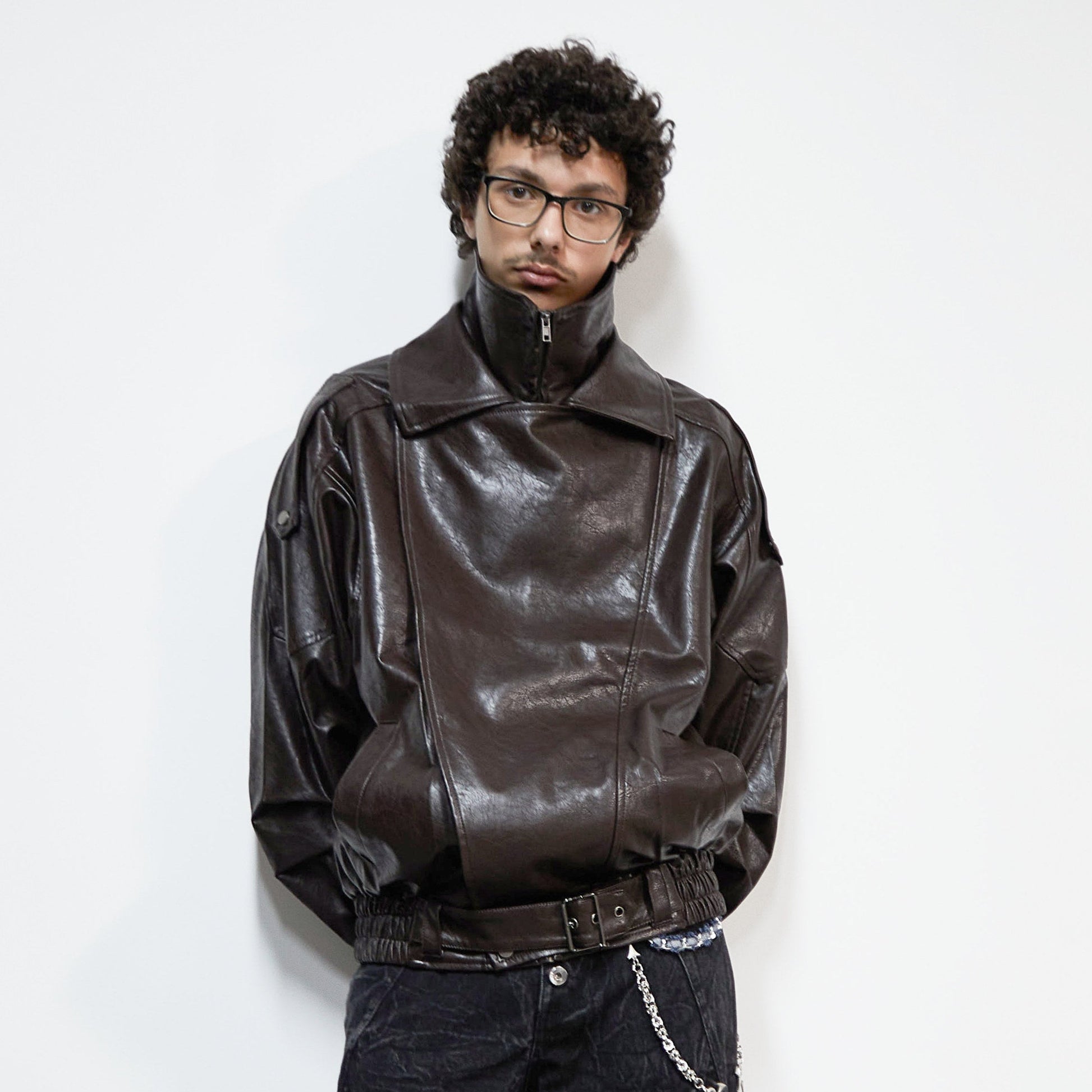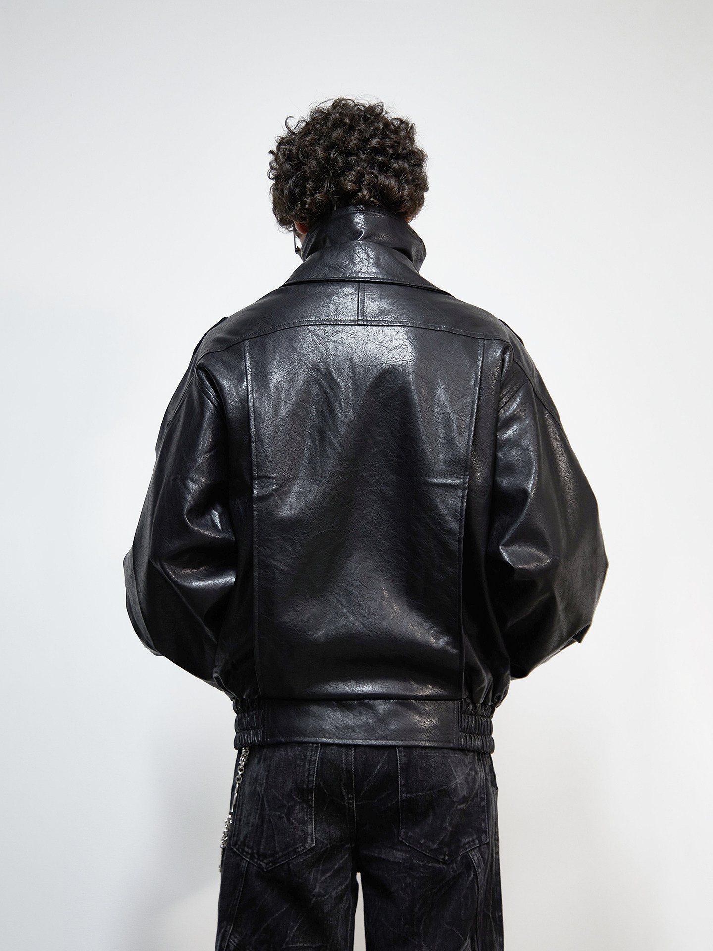 PU Leather Lapel Collar Utility Short Jacket WN22925