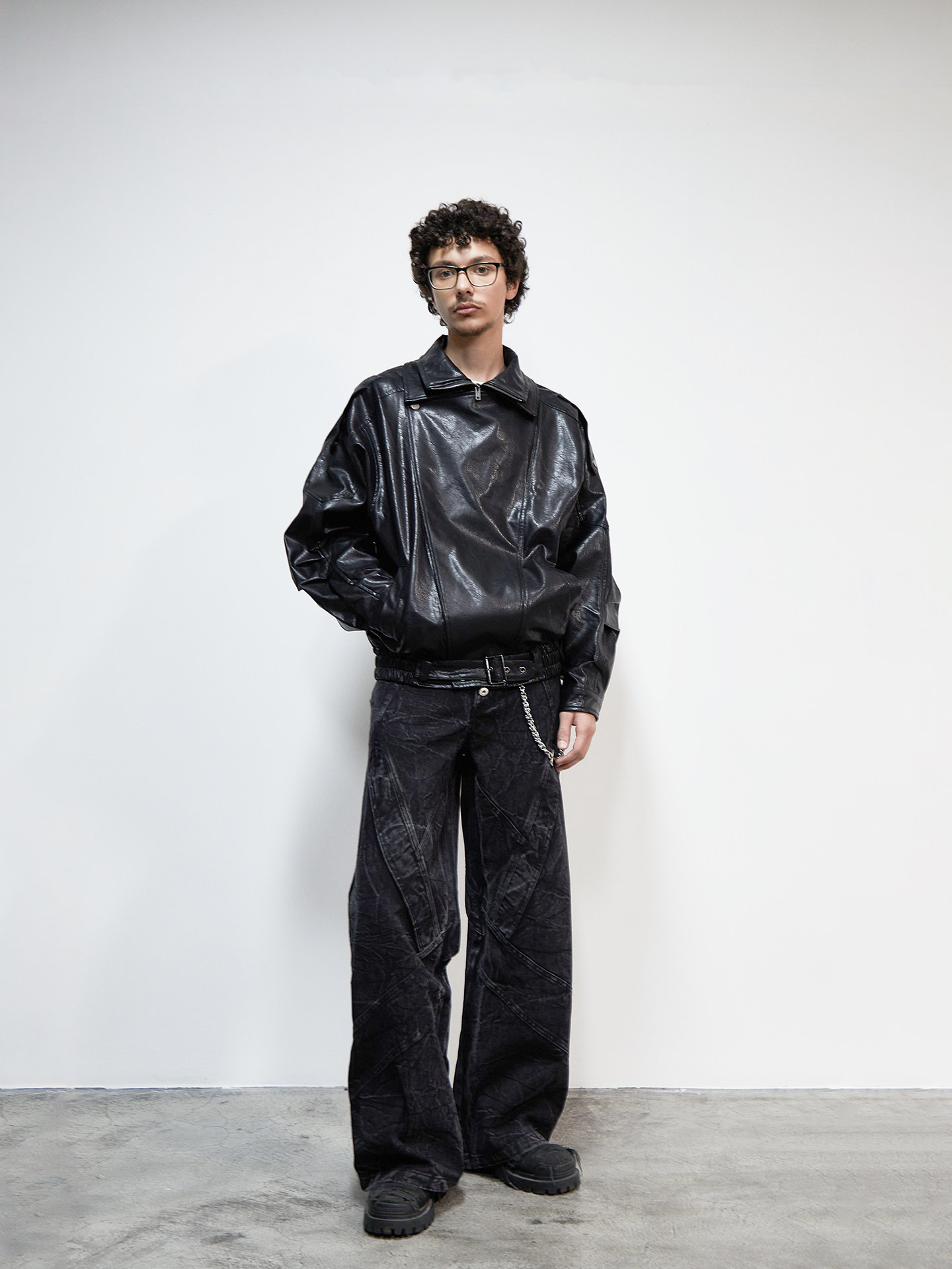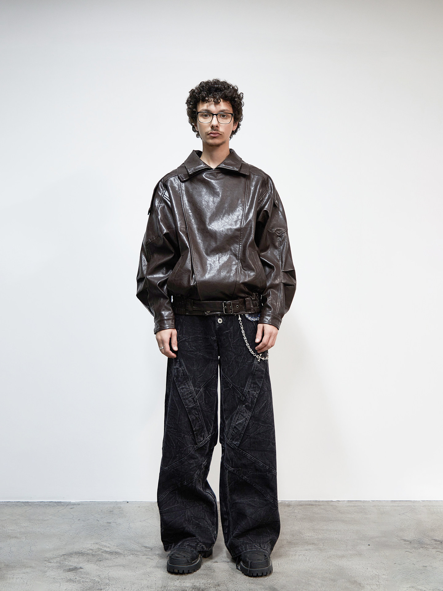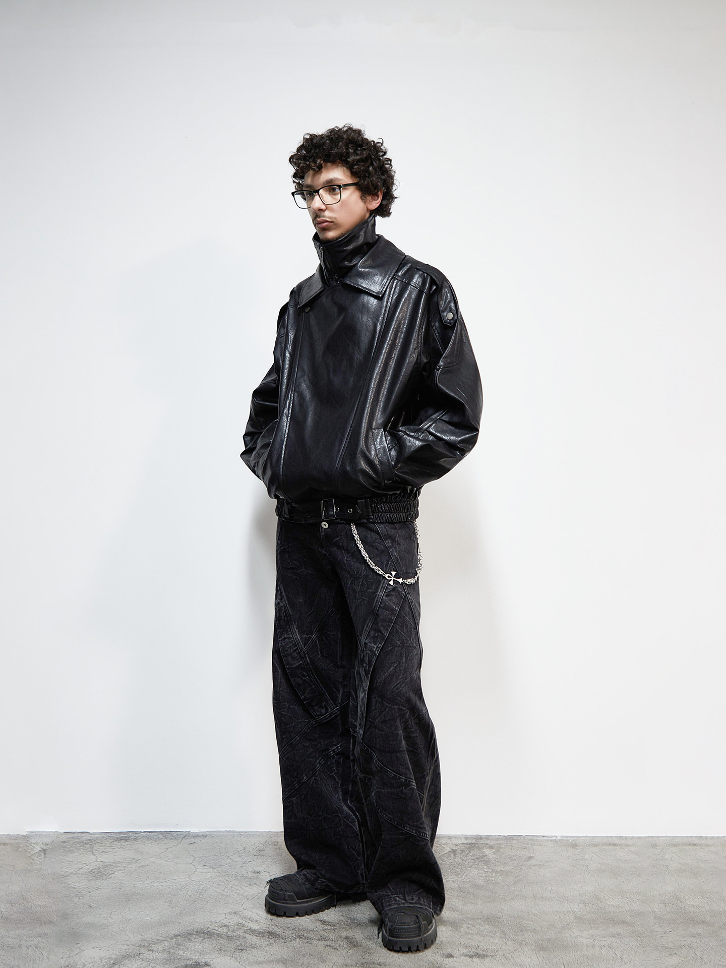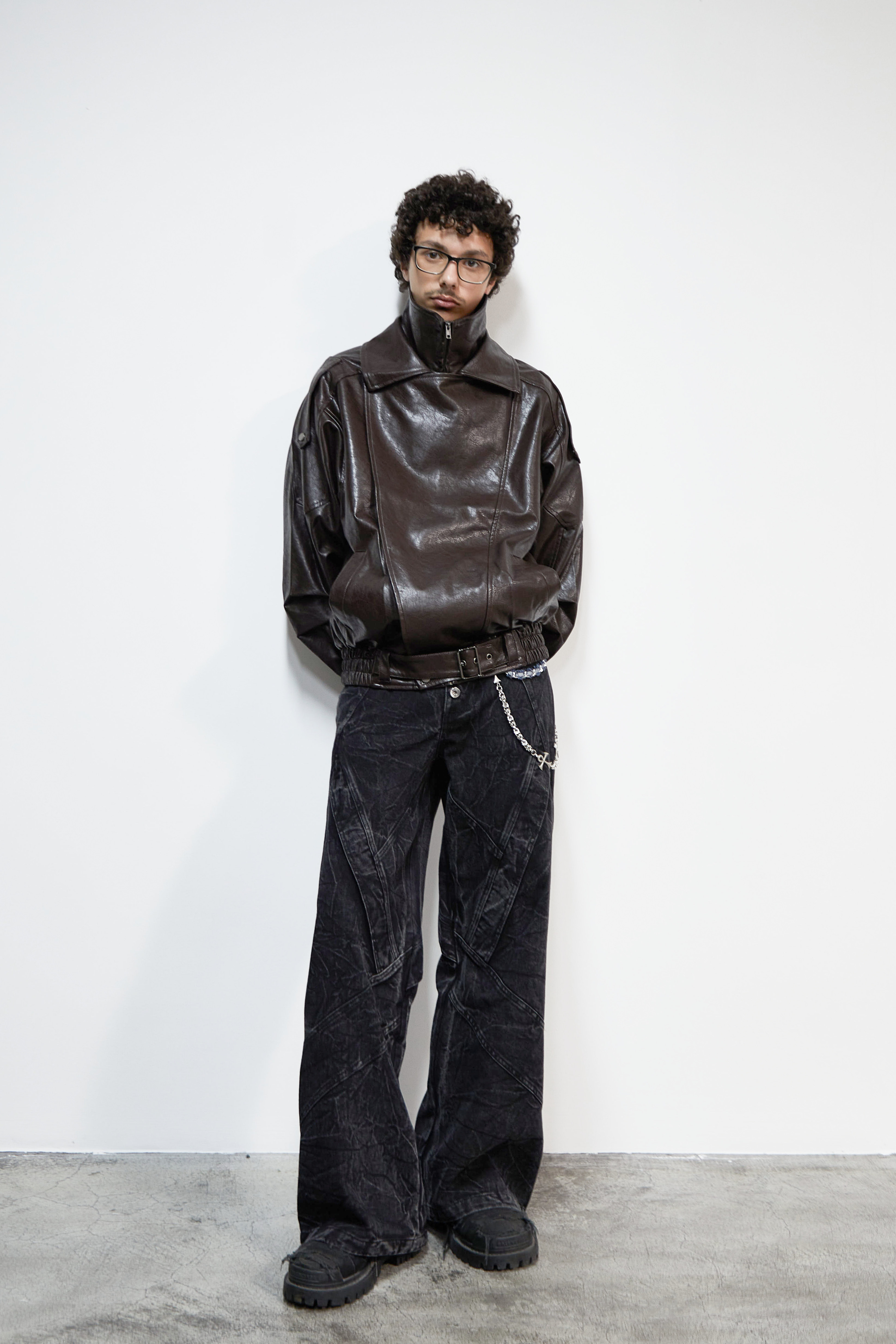 PU Leather Lapel Collar Utility Short Jacket WN22925