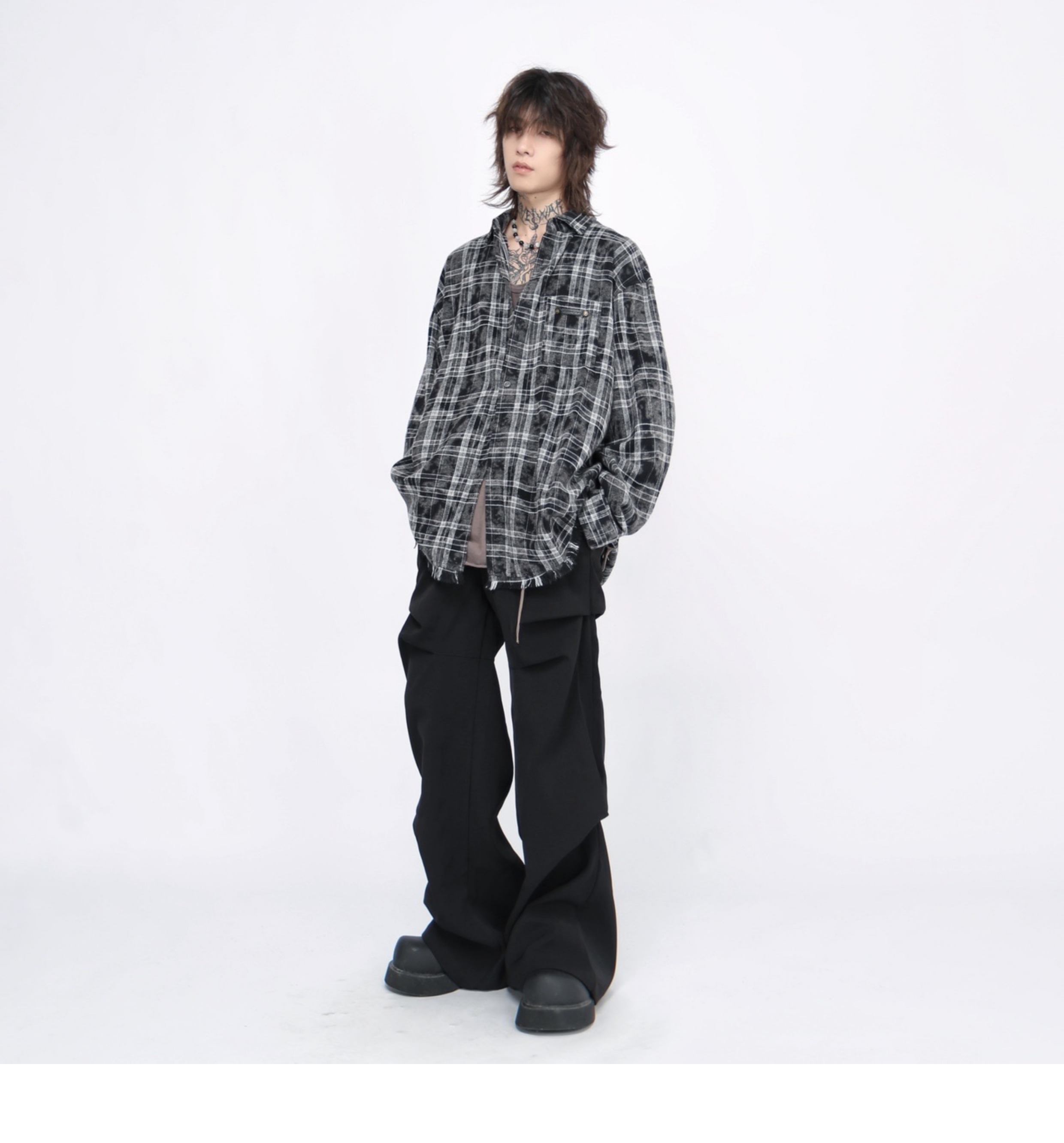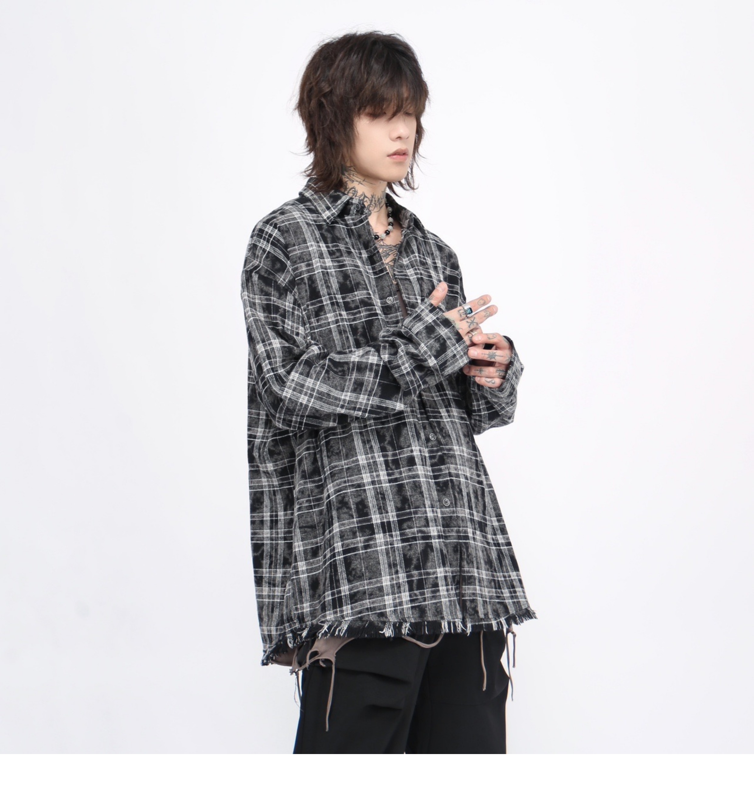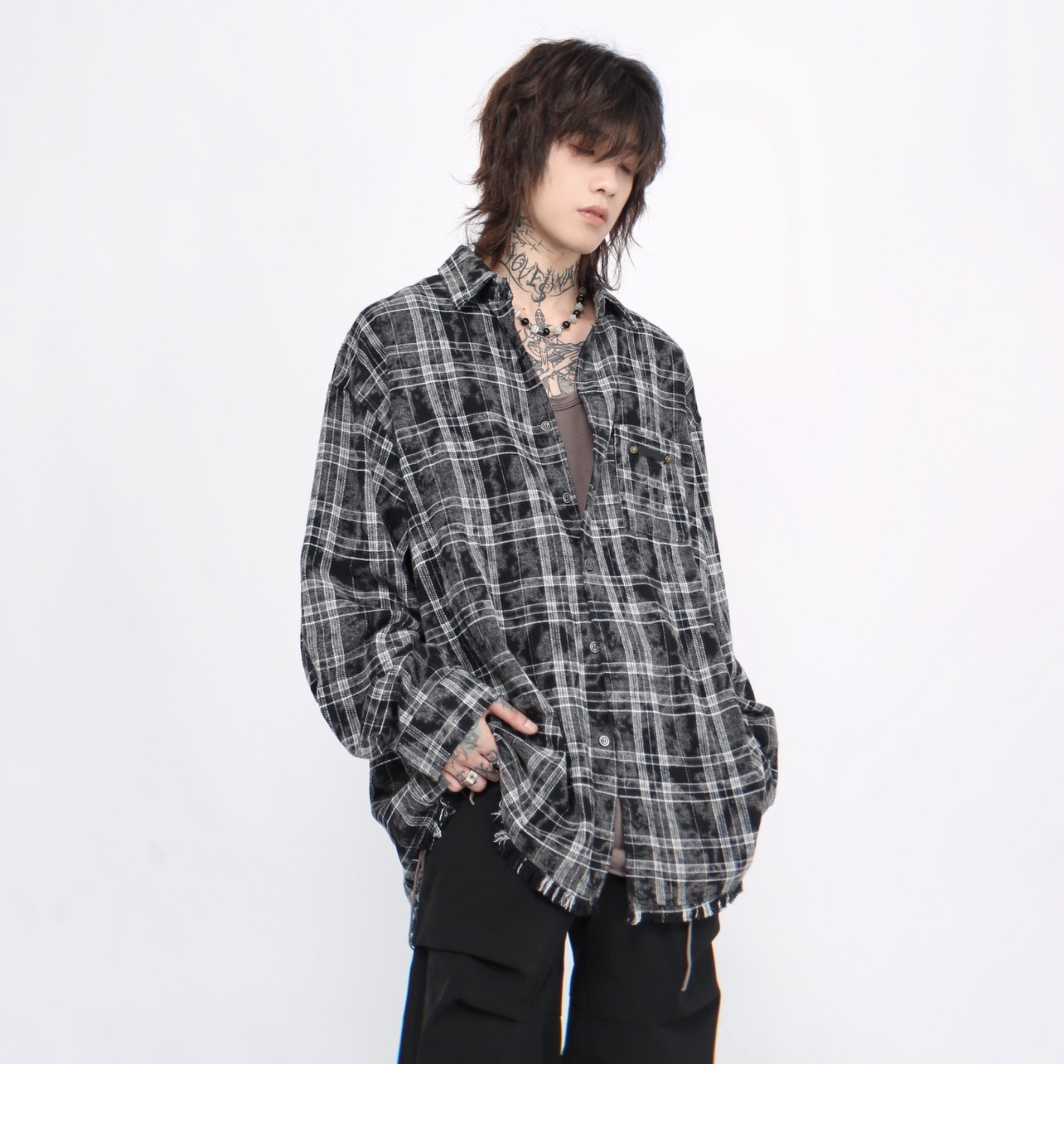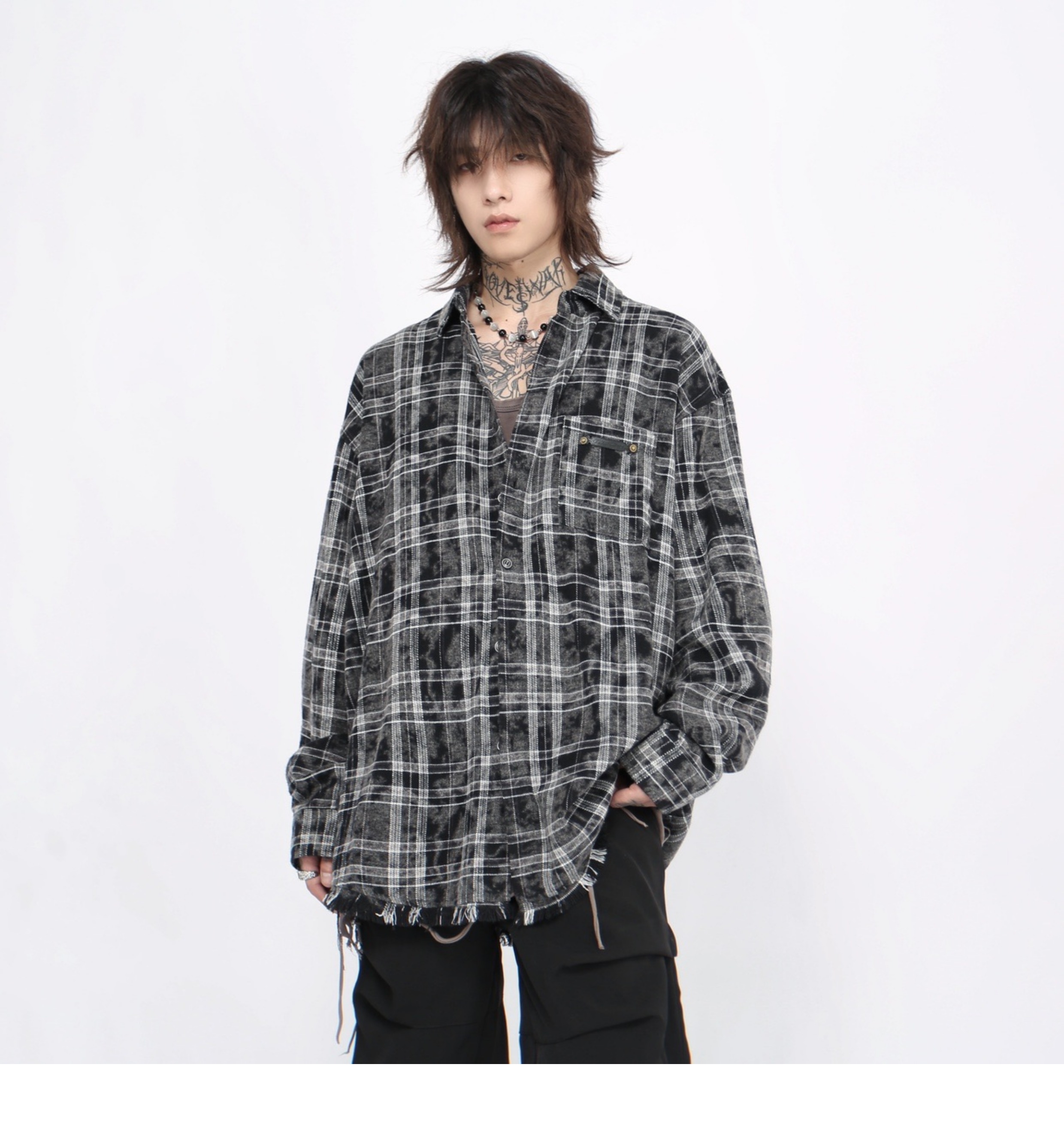 Oversize Damage Plaid Long Sleeve Shirt WN6957