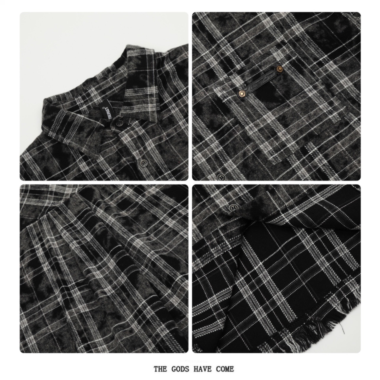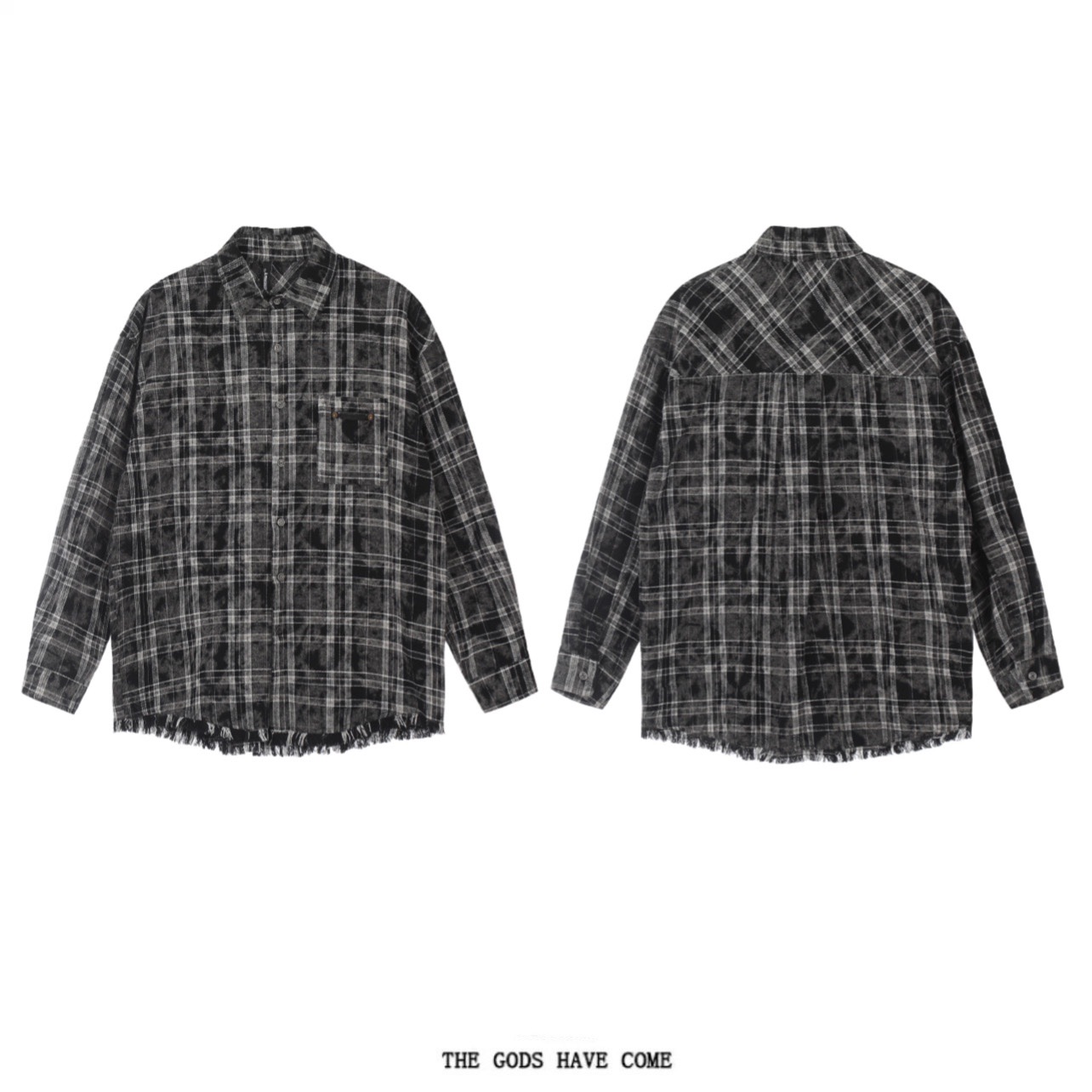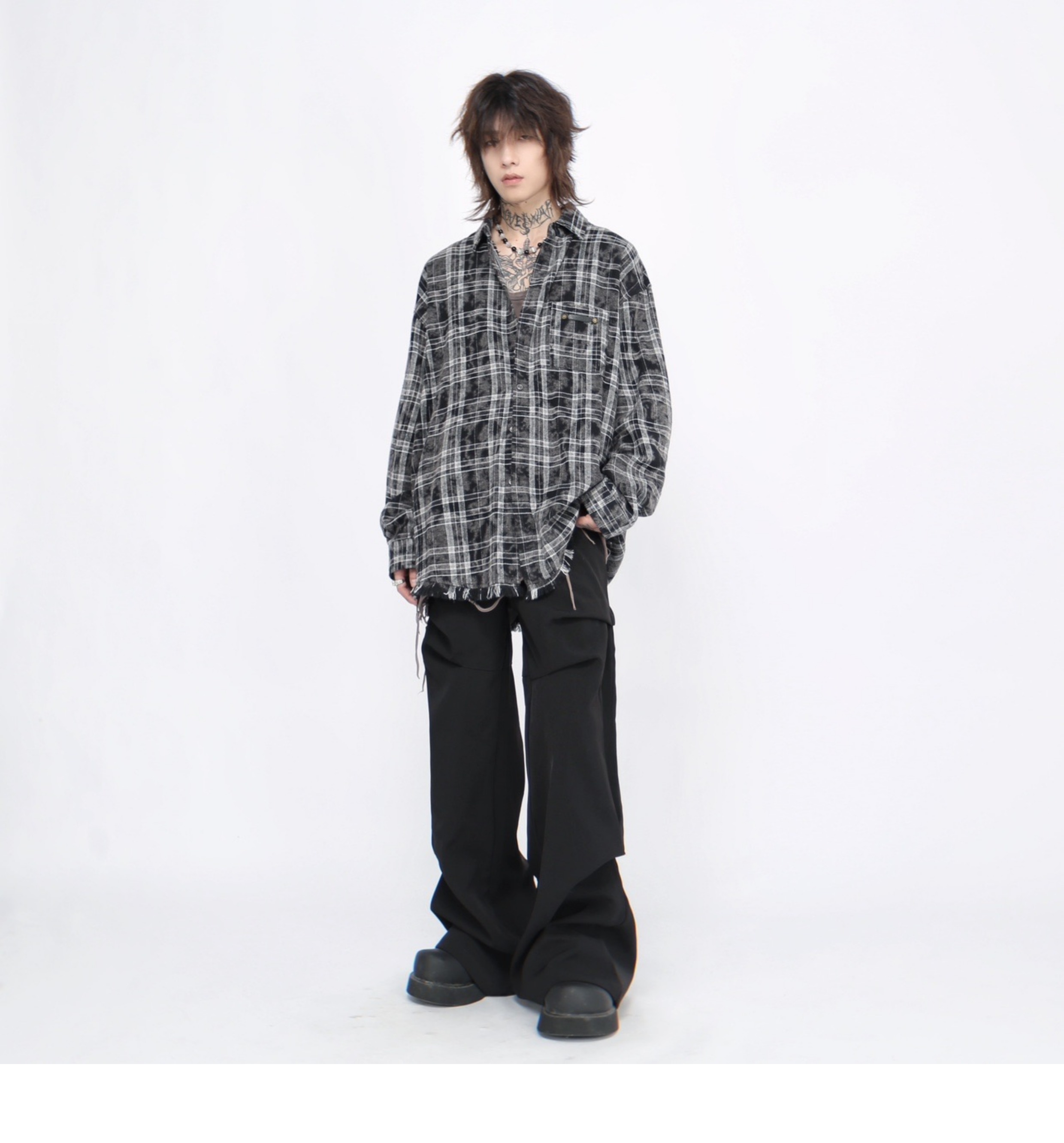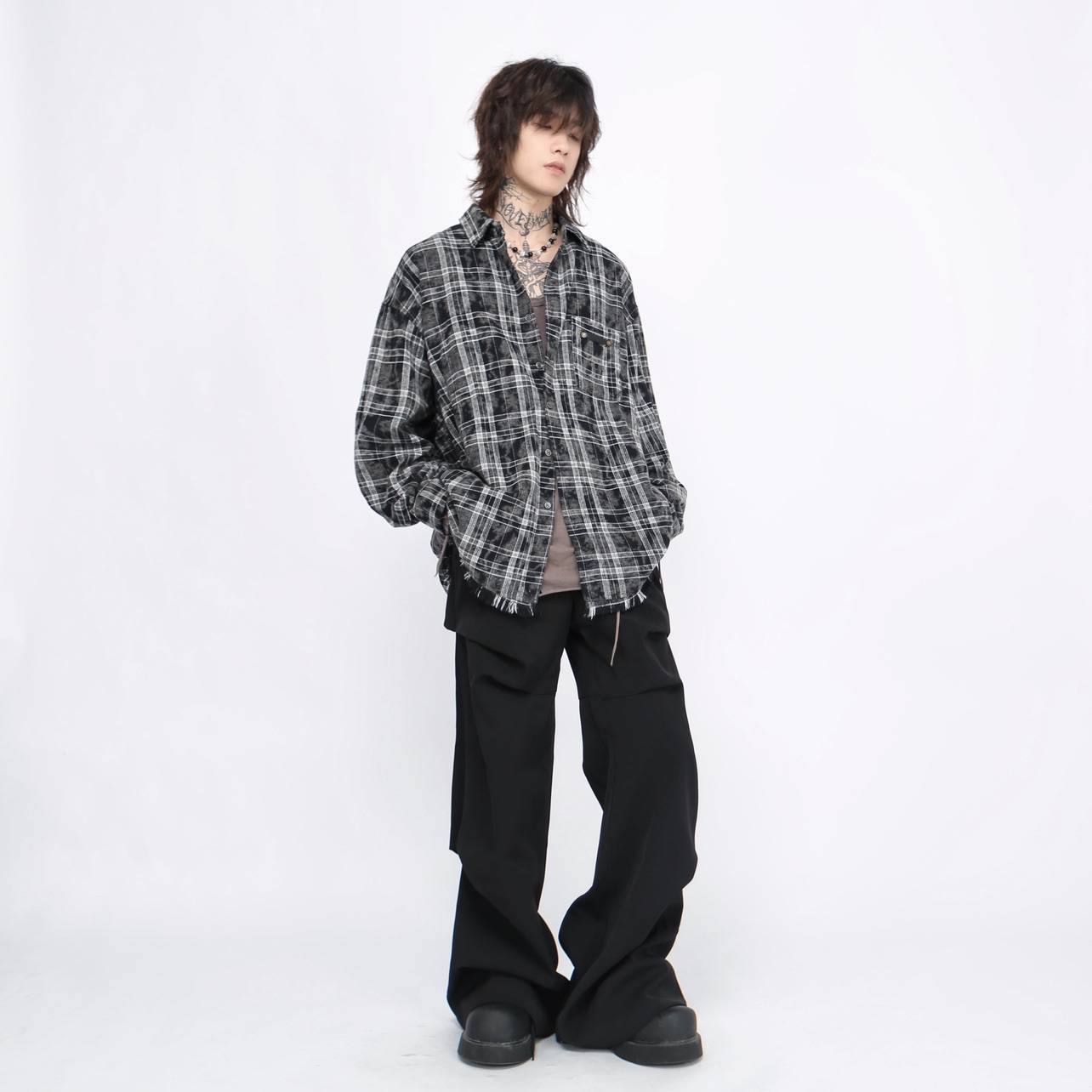 Oversize Damage Plaid Long Sleeve Shirt WN6957