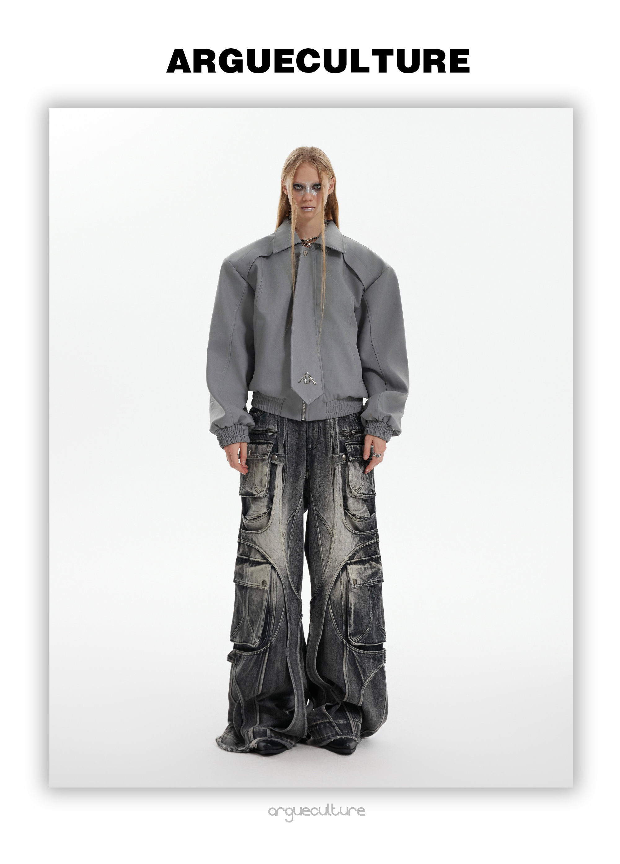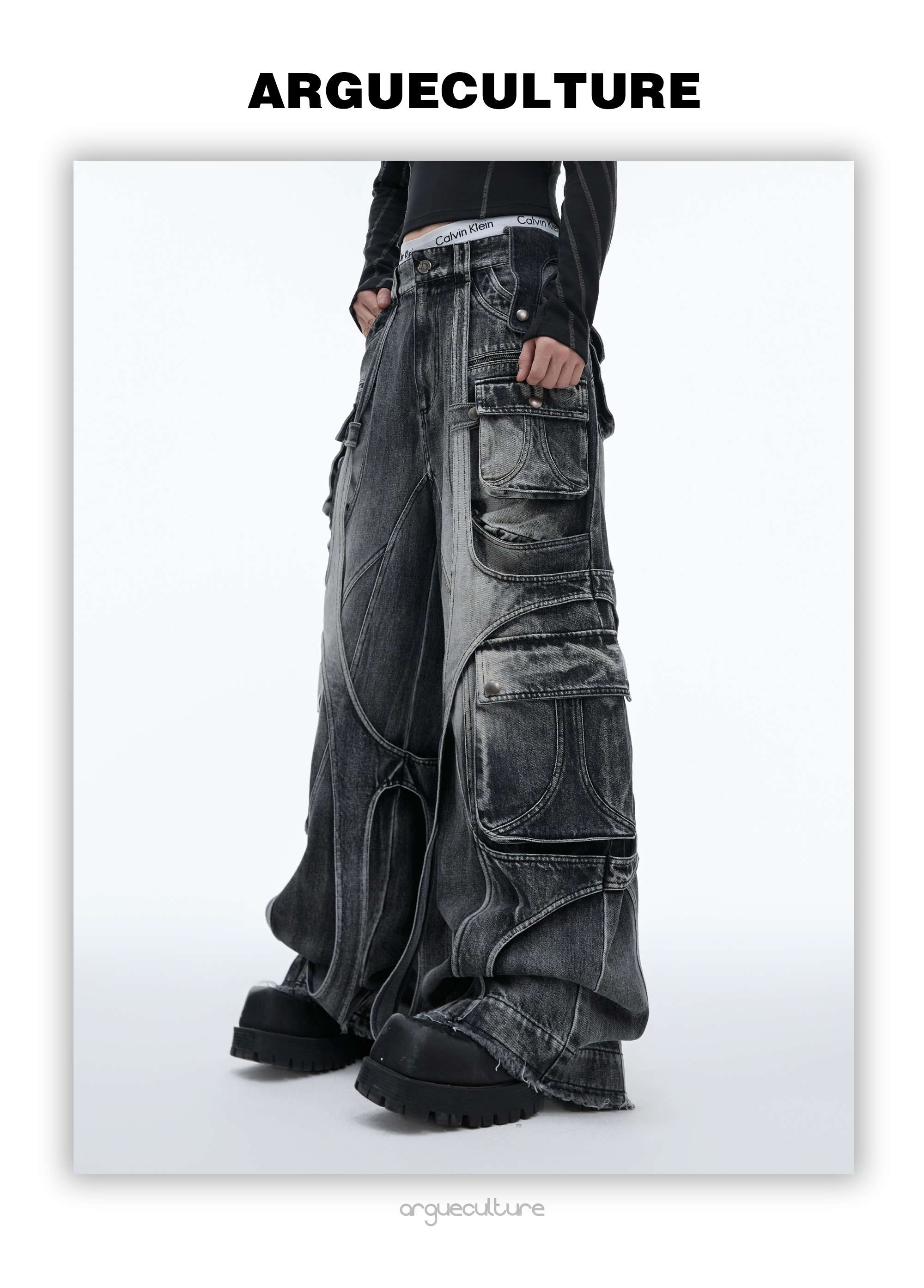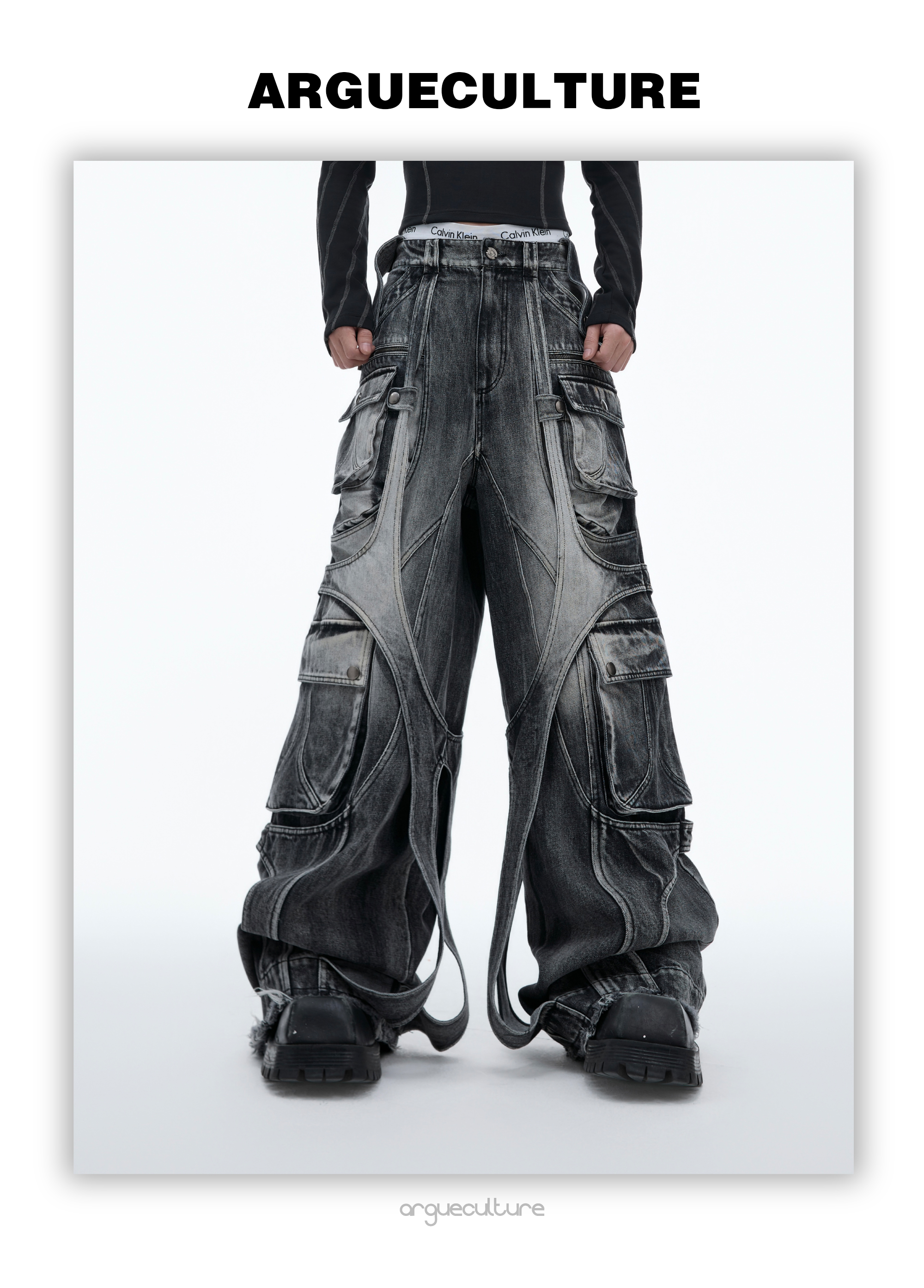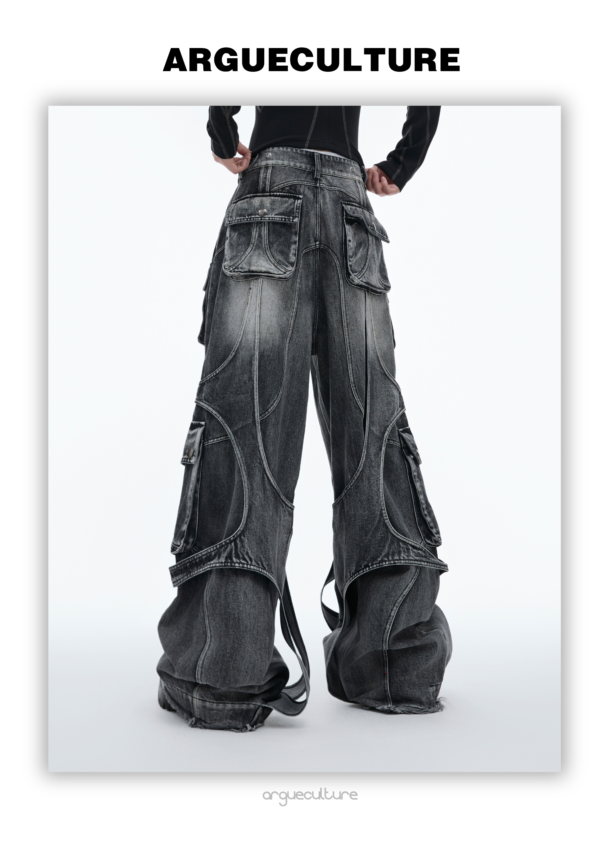Multi Pocket Heavyweight Wide Leg Cargo Denim Jeans WN8679