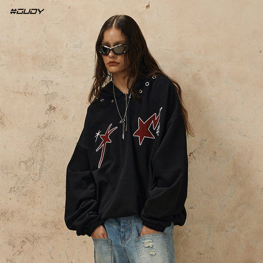 Half Zipper Patchwork Embroidery Hoodie WN12434