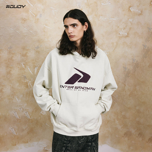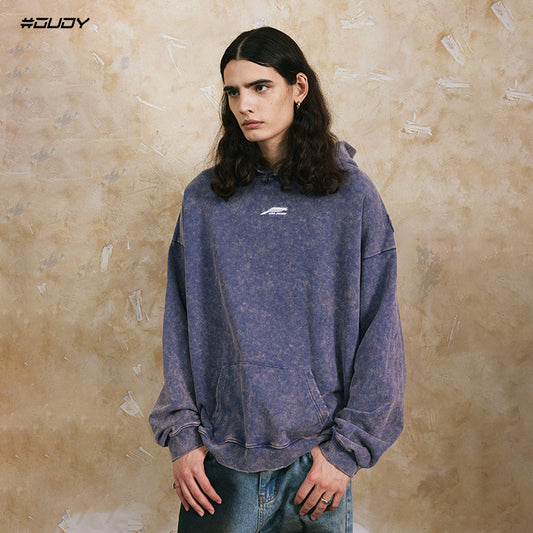 Washed Embroidery Fleece-Lined Pullover Hoodie WN12427