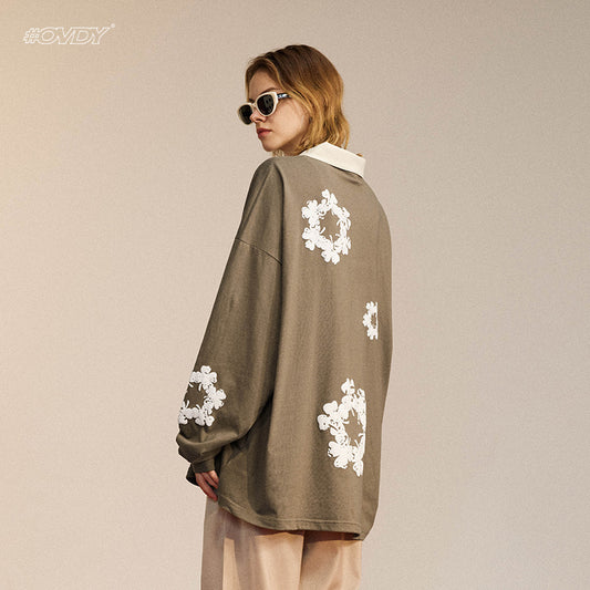 Foam Print Snowflake Long Sleeve Polo Shirt WN12483