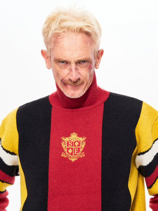Badge Embroidery Colorblock High-Neck Knit Sweater WN22151