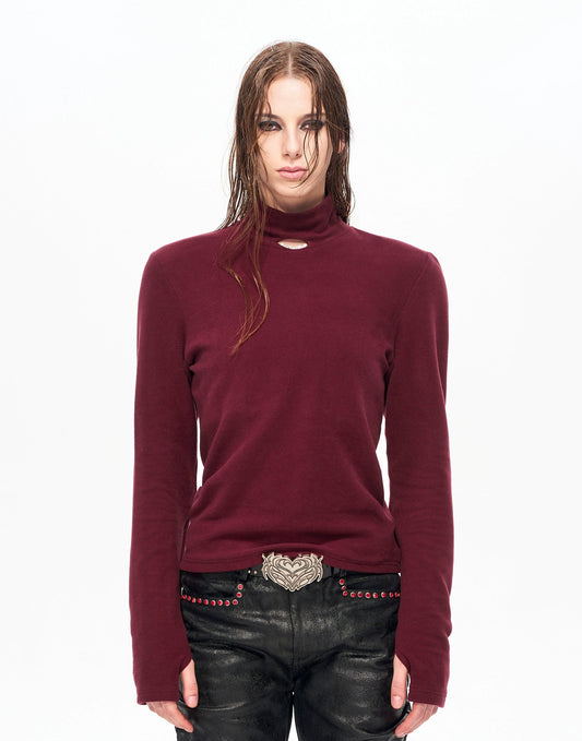 High-Neck Pearl Detail Long Sleeve T-Shirt WN22122
