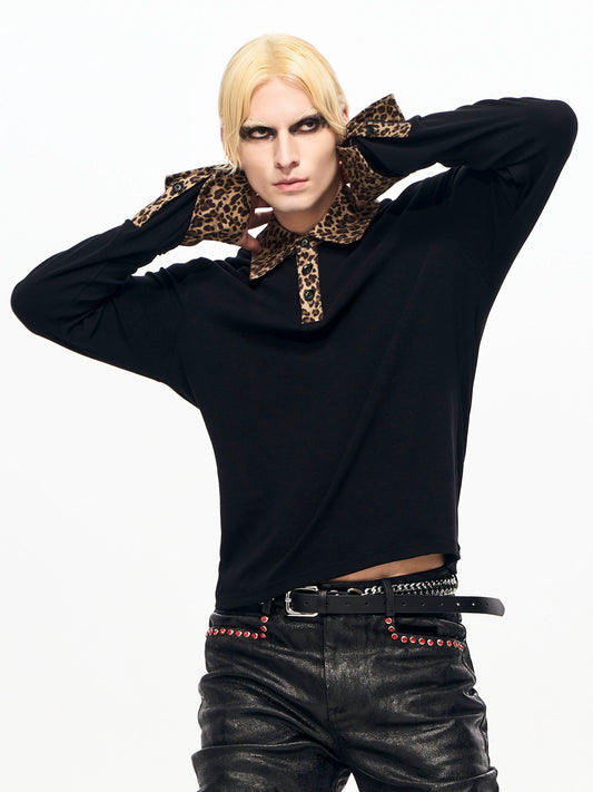 Leopard Polo Collar Long Sleeve T-Shirt WN22142
