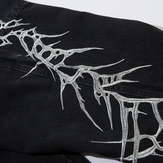 Thorn Embroidery Straight Denim Jeans WN12687